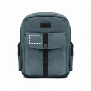 Laptop Rucksack aus vorgewaschener Canvas-Baumwolle. Das Hauptfach ist gefüttert und hat 2 gepolsterte Trennwände, welche für ein Laptop bis zu 15'6'' und ein Tablet bis zu 10'5'' genutzt werden können. 1 Vordertasche und 2 Seitentaschen. Gepolsterte Rückseite mit Rückenstützsystem und gepolsterten Schultergurten. Enthält ein Band für den Transport am Trolley und ein veredelbares Plättchen aus PU. 300 x 420 x 120 mm | Plättchen: 60 x 30 mm