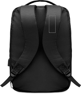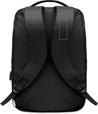 13' Laptop Rucksack aus 300D RPET Polyester. Innenfach mit Platz für einen 16' Laptop. Inkl. USB-Ladekabel. Gepolsterte Schultergurte.