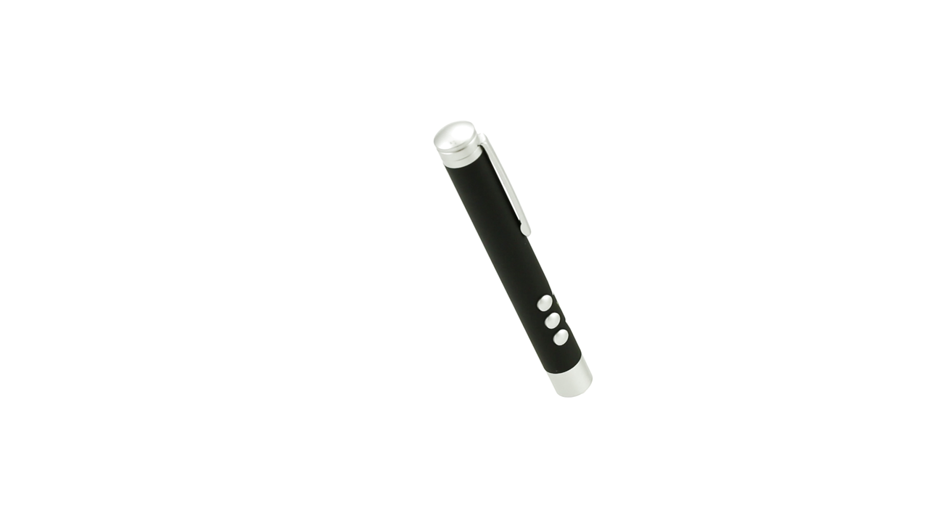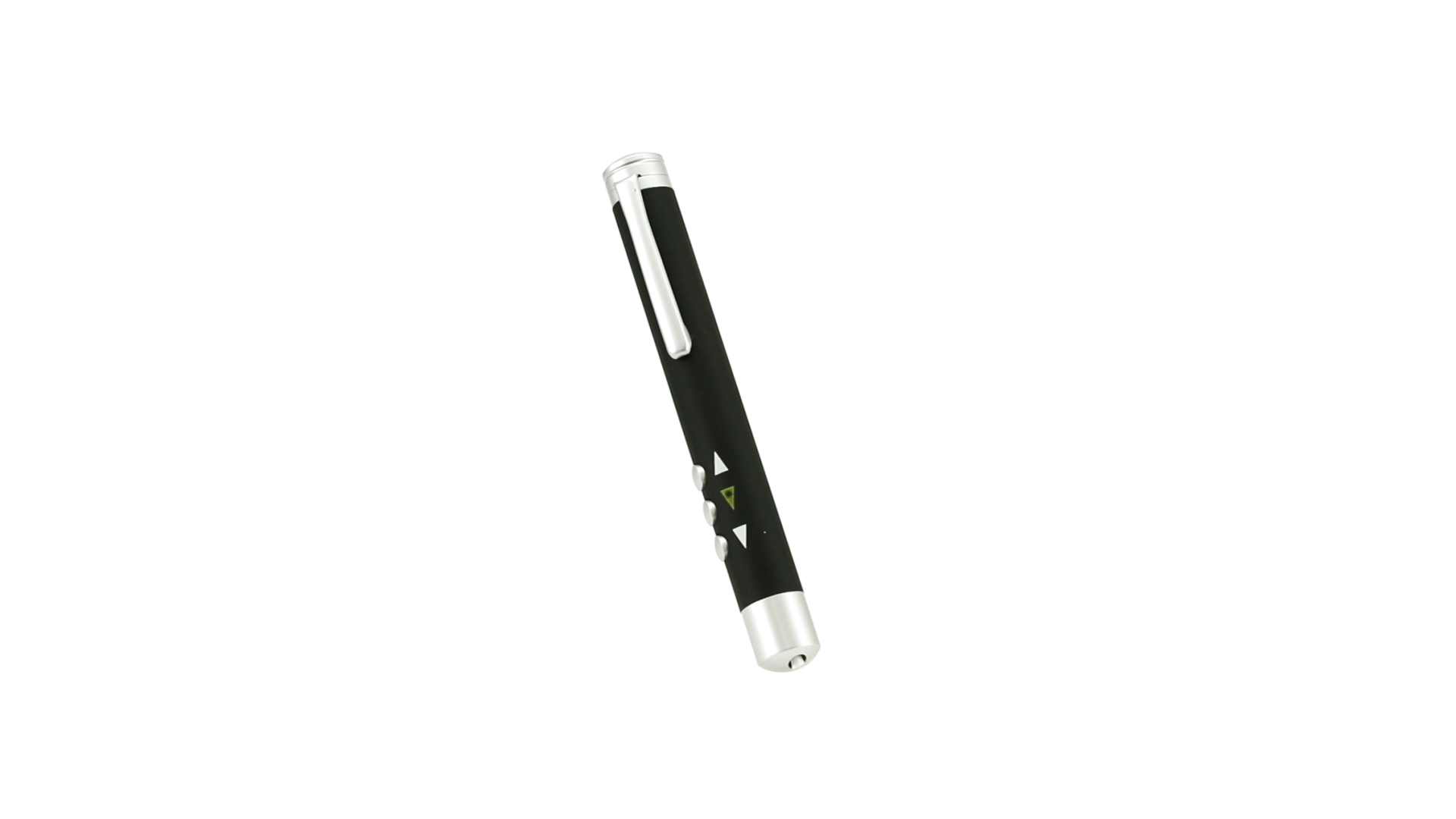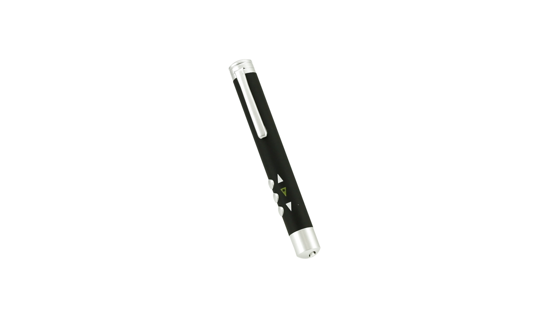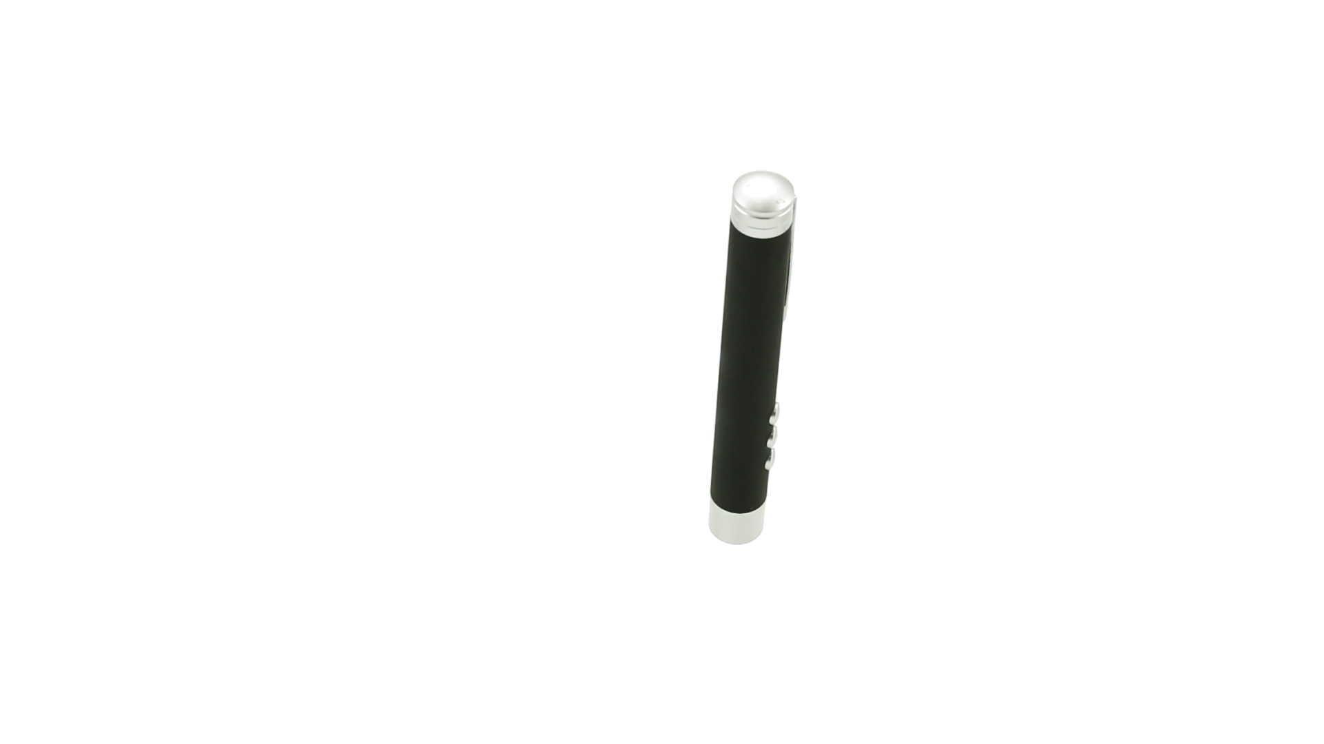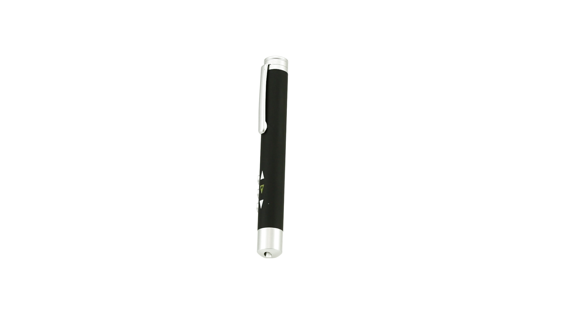 Laserpointer der Klasse 2 mit aussergewöhnlichem Design, USB-Anschluss und geschmeidigem Gehäuse. Speziell entwickelt für PowerPoint- und Keynote-Präsentationen dank der LED-Leuchte und der seitlichen Tasten mit Vorwärts-, Pause- und Rückwärtsfunktion. Knopfzellen inklusive. Präsentiert in einer eleganten und robusten Schachtel aus schwarzem Karton, mit weichem Schaumstoff mit Stanzung im Inneren.