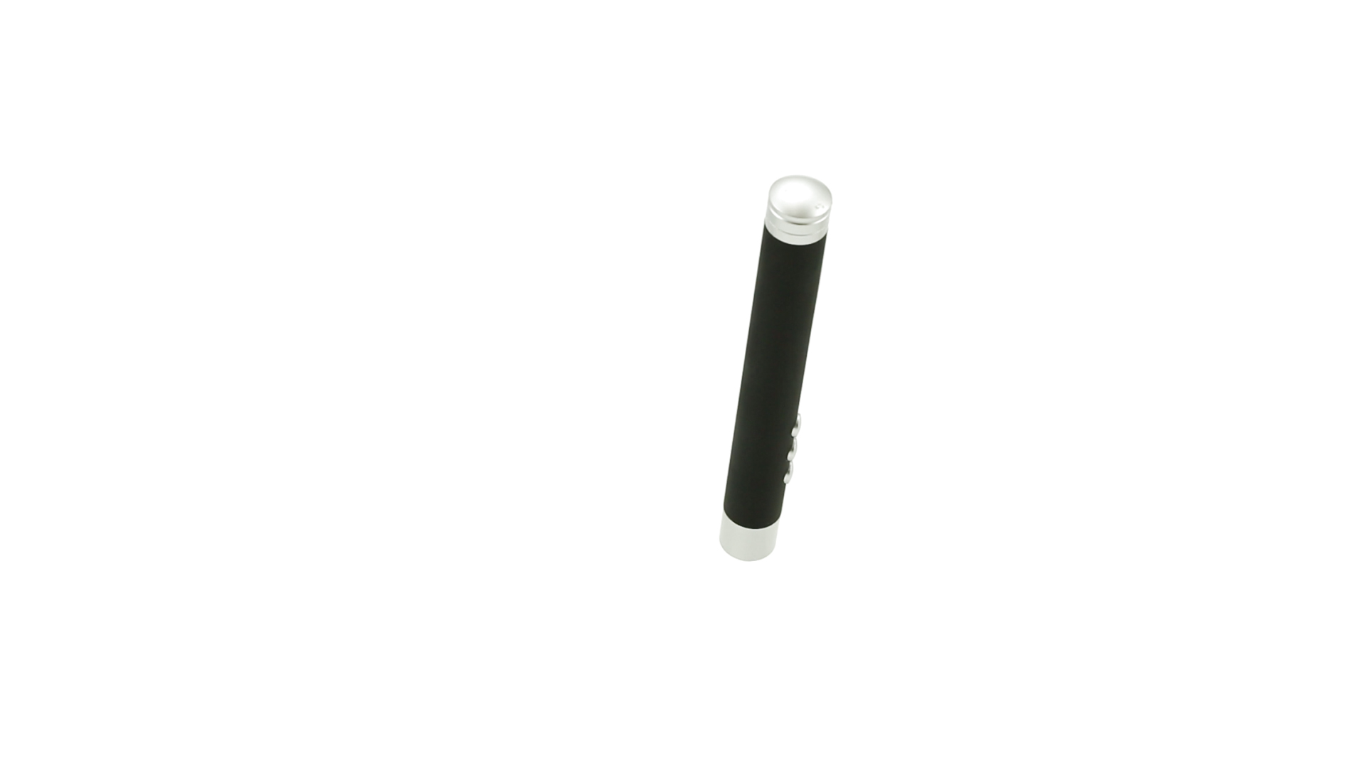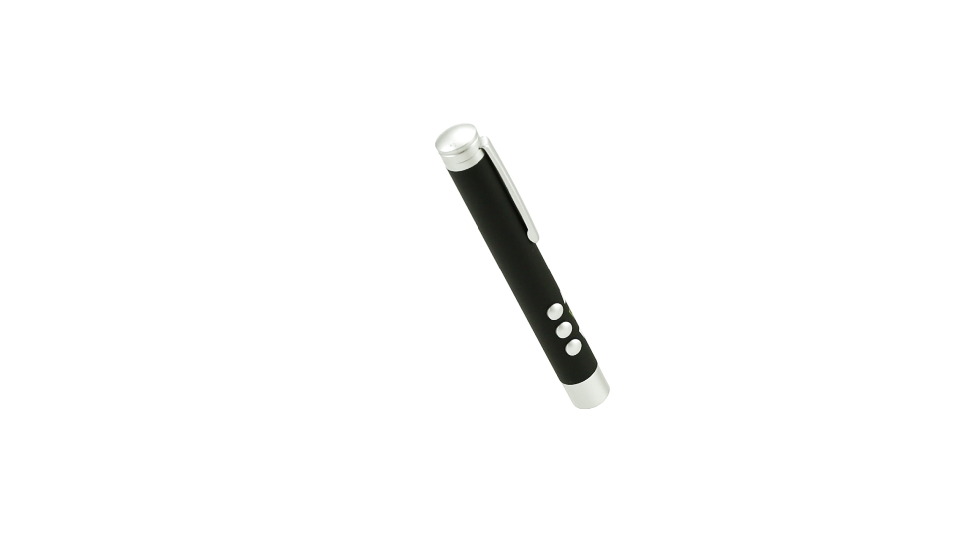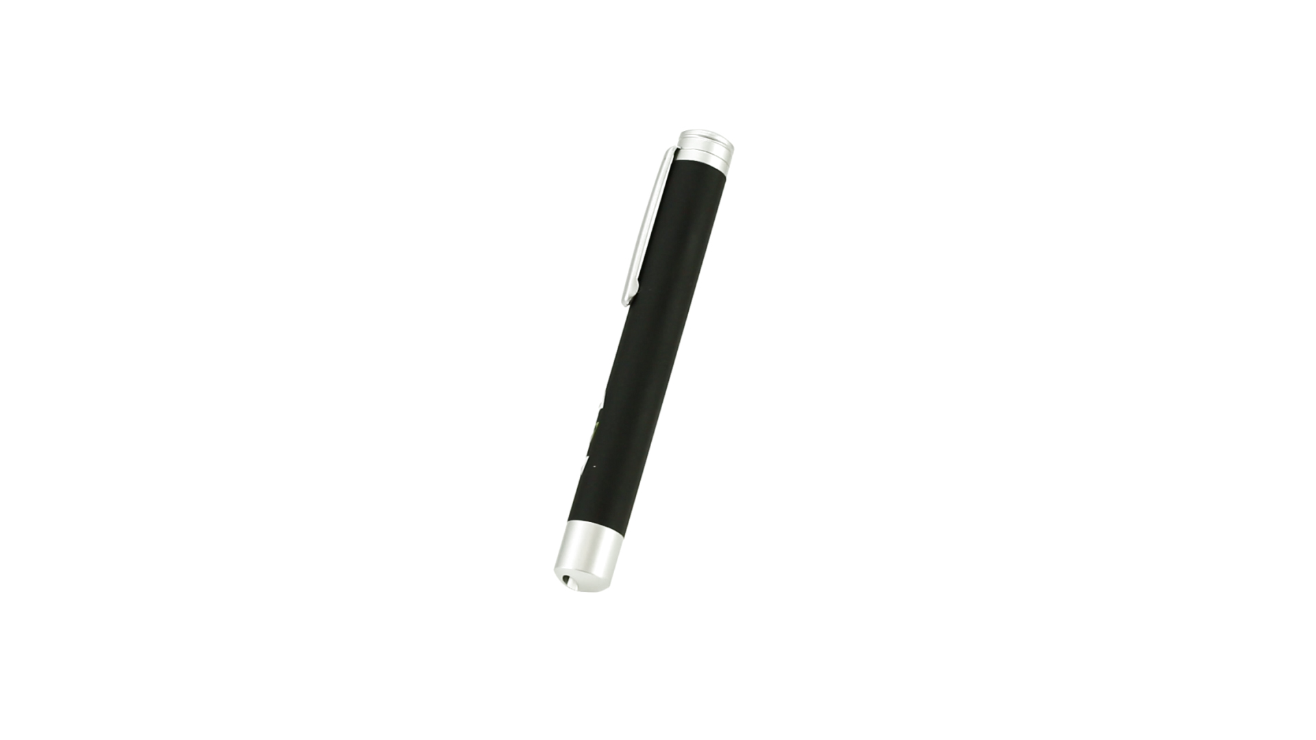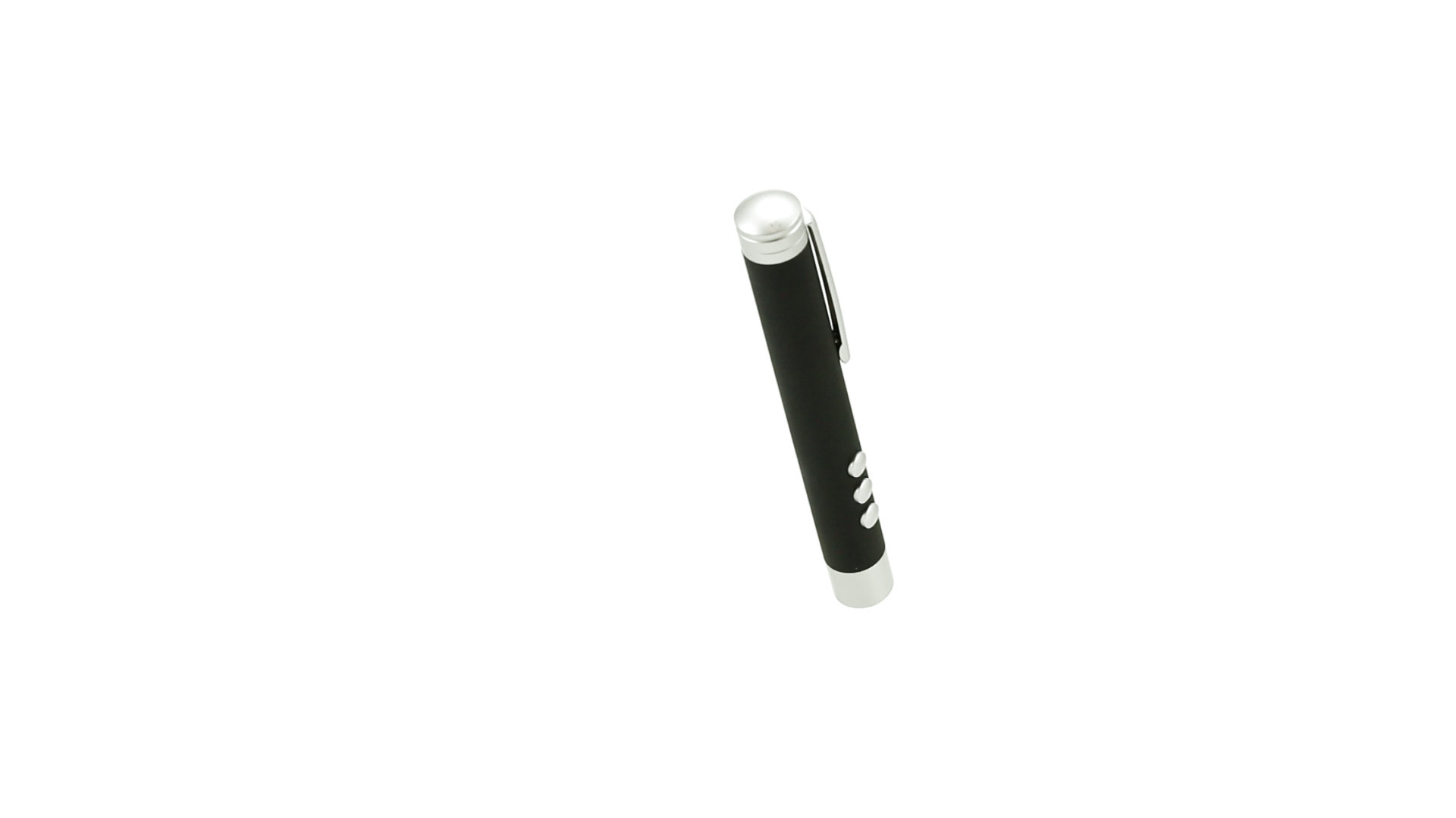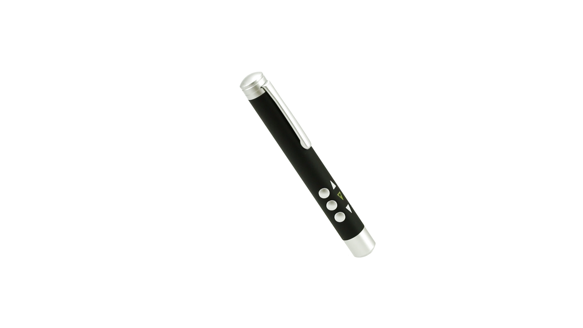 Laserpointer der Klasse 2 mit aussergewöhnlichem Design, USB-Anschluss und geschmeidigem Gehäuse. Speziell entwickelt für PowerPoint- und Keynote-Präsentationen dank der LED-Leuchte und der seitlichen Tasten mit Vorwärts-, Pause- und Rückwärtsfunktion. Knopfzellen inklusive. Präsentiert in einer eleganten und robusten Schachtel aus schwarzem Karton, mit weichem Schaumstoff mit Stanzung im Inneren.