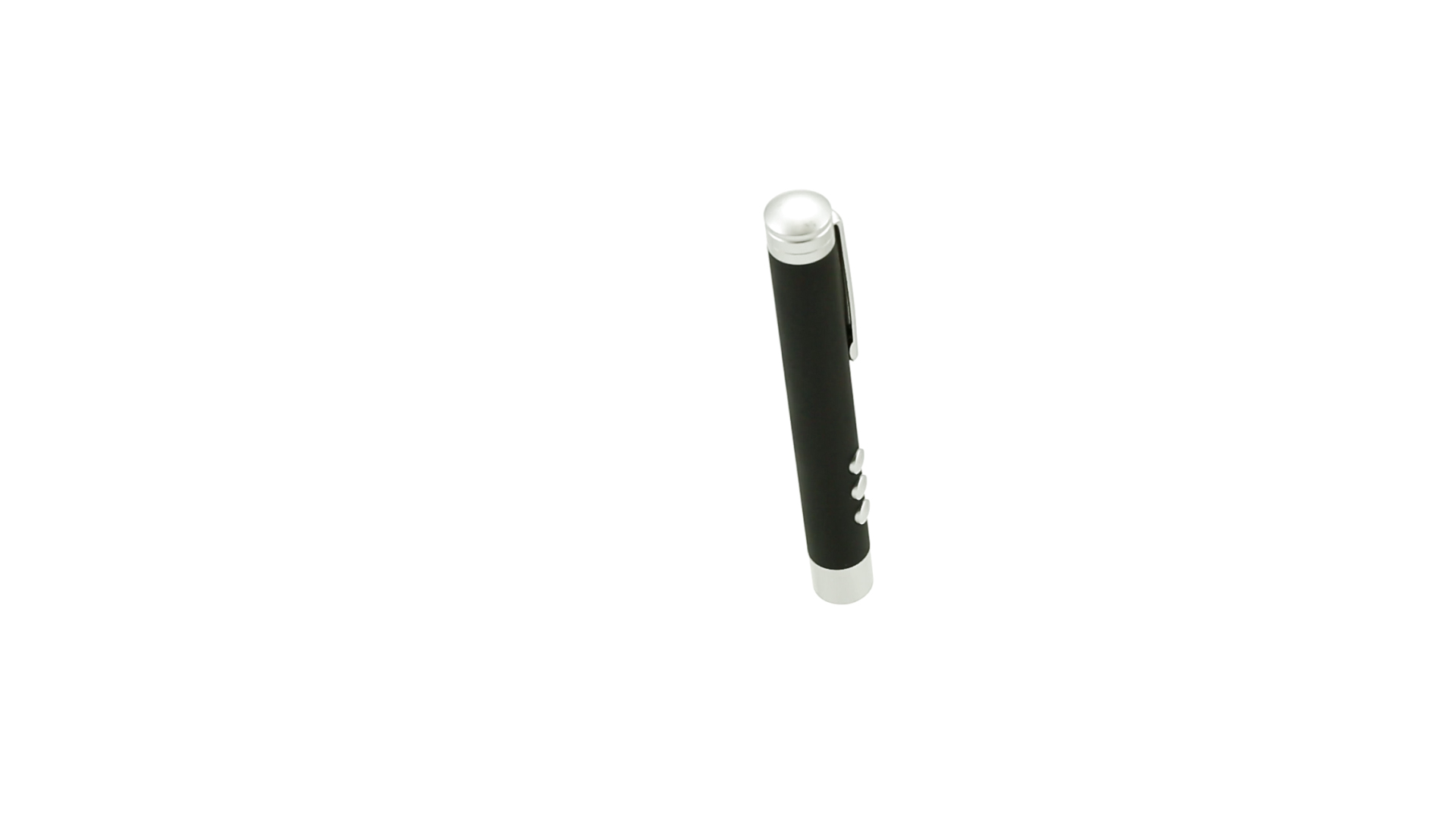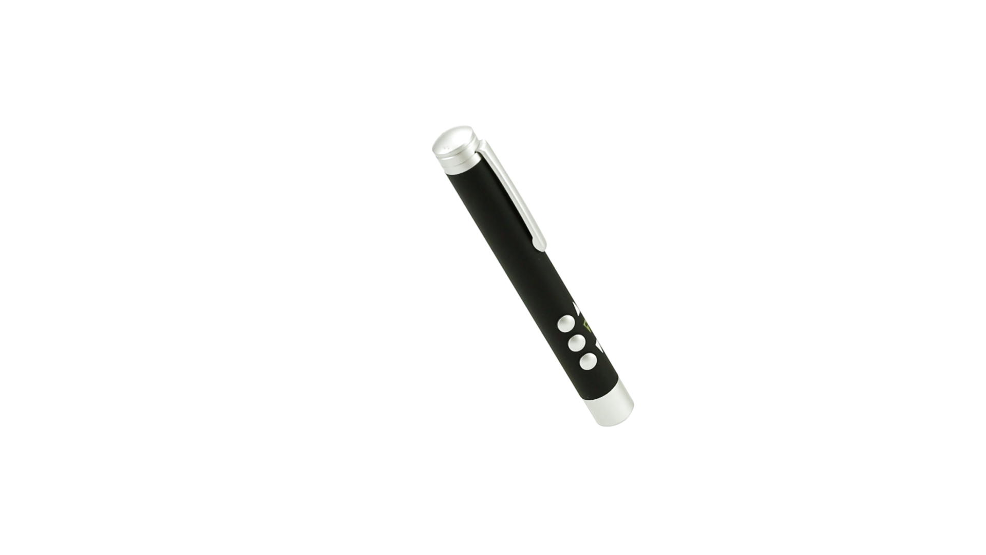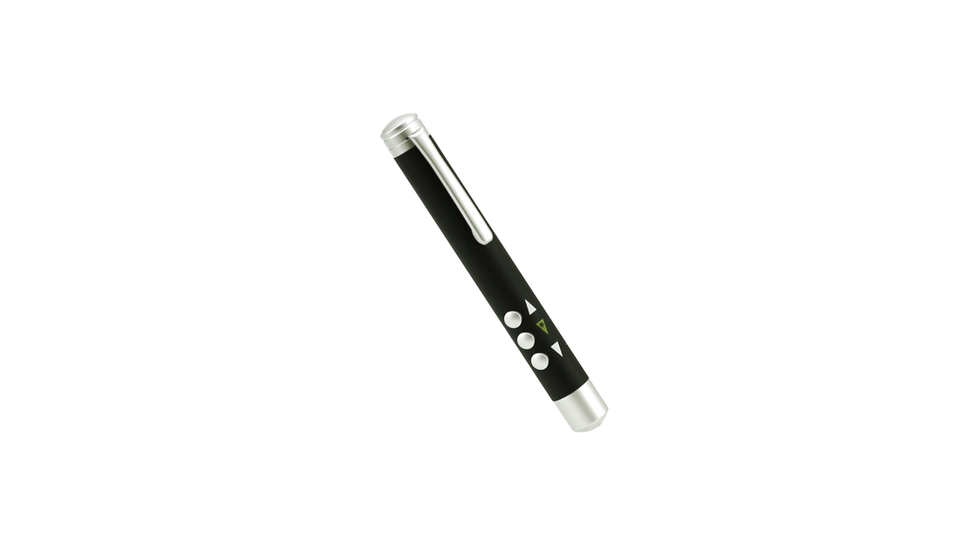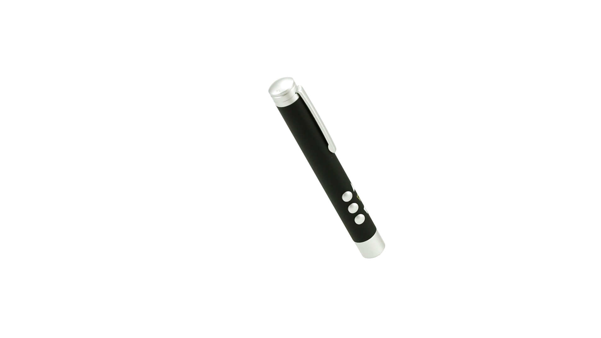 Laserpointer der Klasse 2 mit aussergewöhnlichem Design, USB-Anschluss und geschmeidigem Gehäuse. Speziell entwickelt für PowerPoint- und Keynote-Präsentationen dank der LED-Leuchte und der seitlichen Tasten mit Vorwärts-, Pause- und Rückwärtsfunktion. Knopfzellen inklusive. Präsentiert in einer eleganten und robusten Schachtel aus schwarzem Karton, mit weichem Schaumstoff mit Stanzung im Inneren.