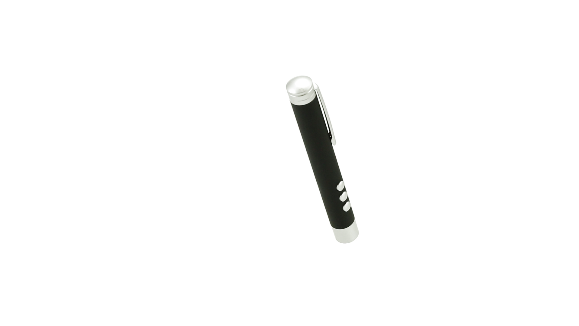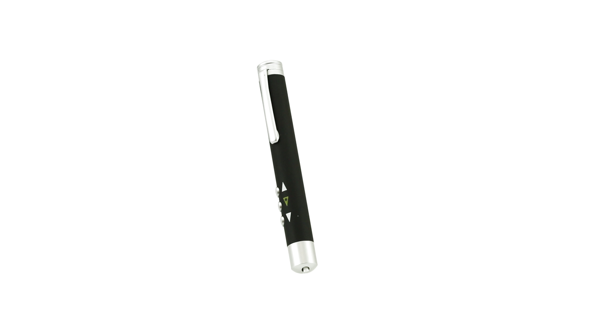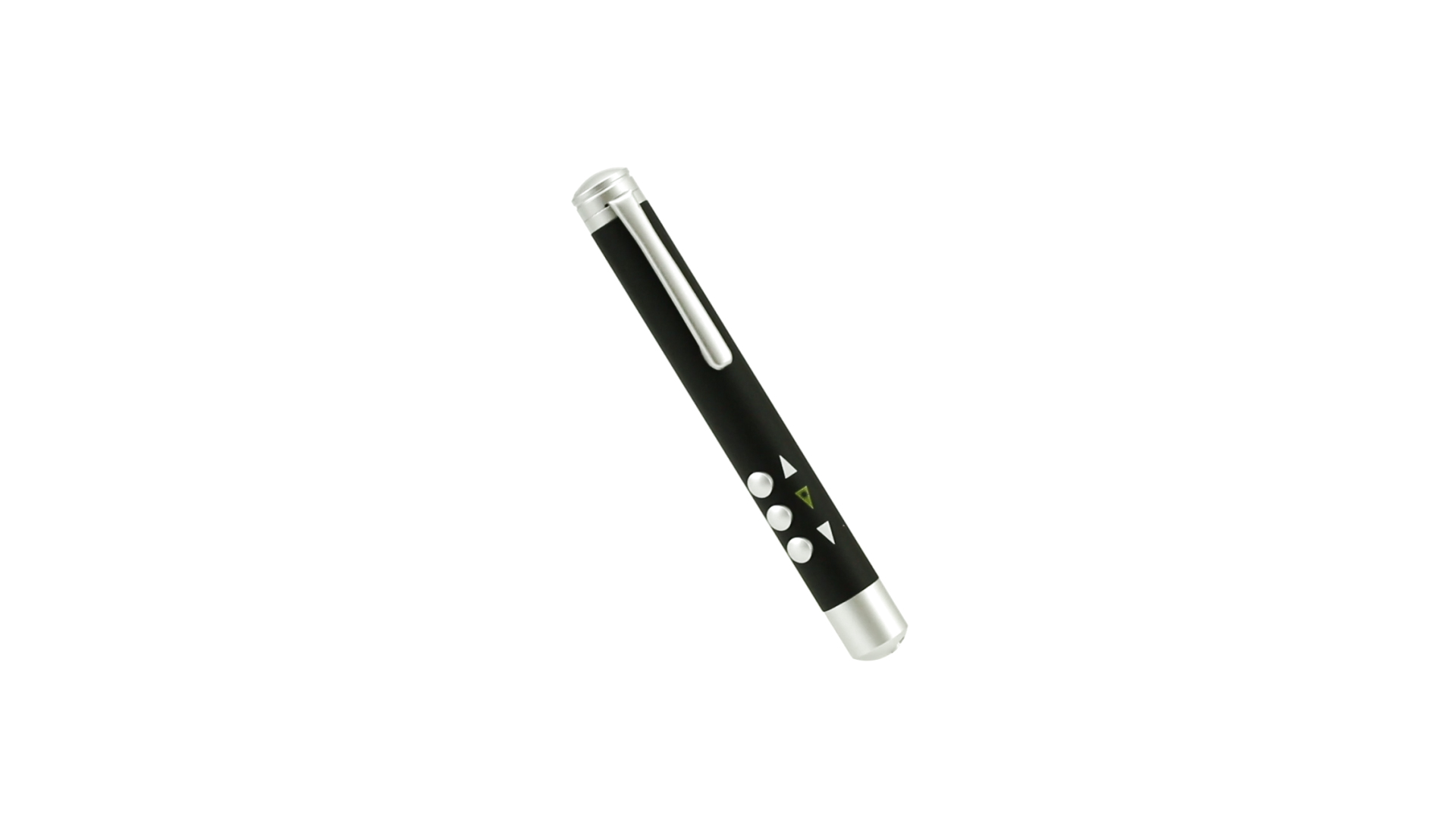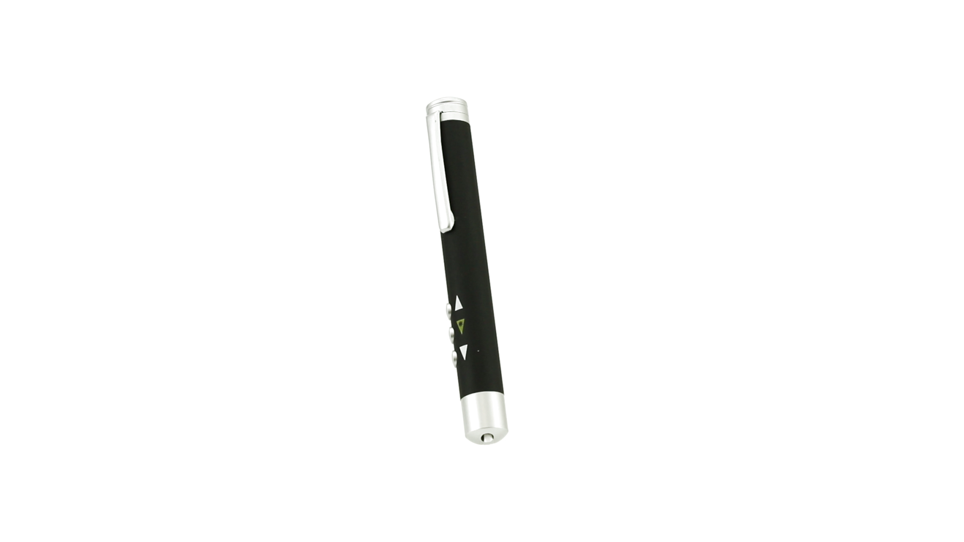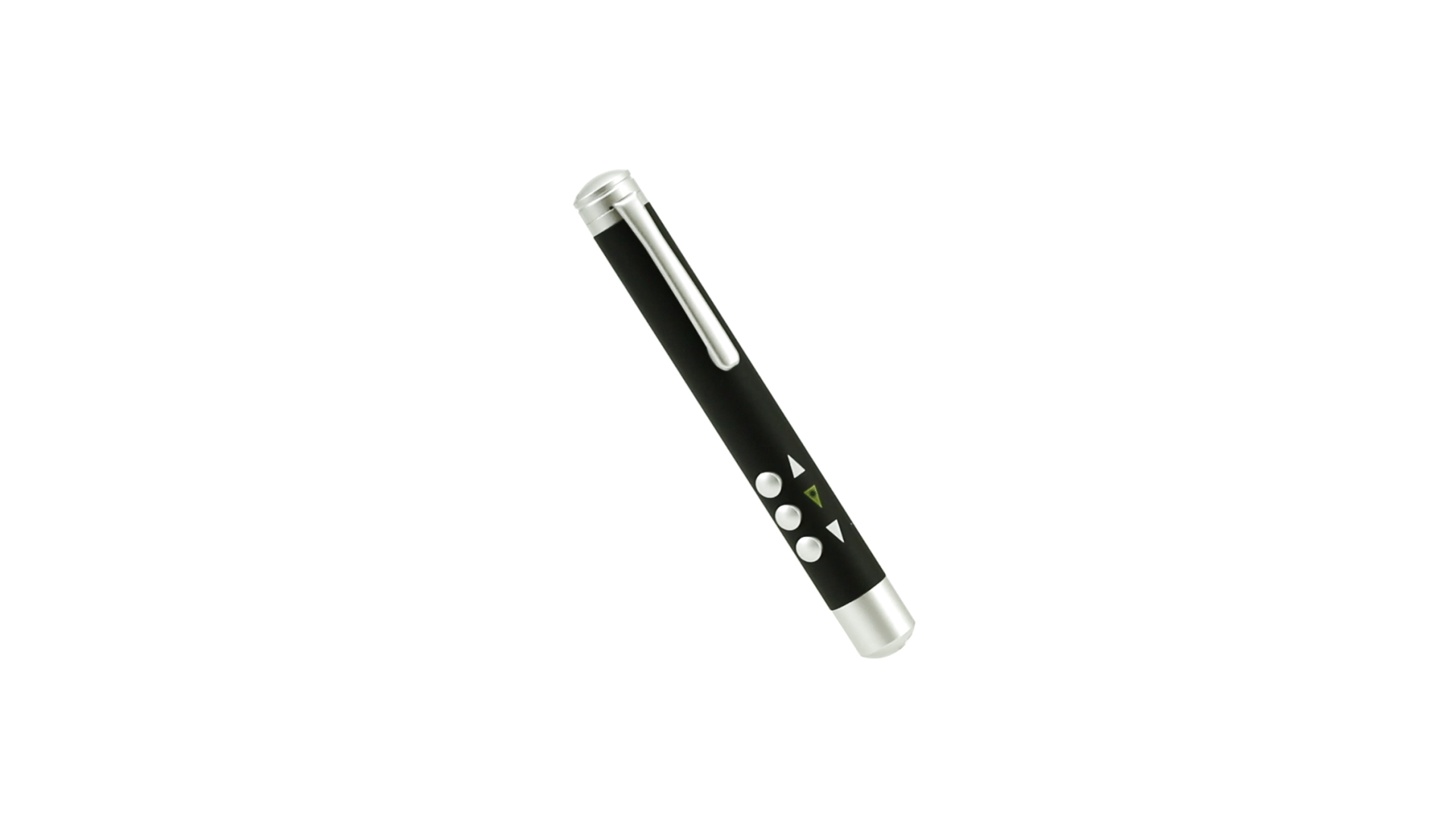 Laserpointer der Klasse 2 mit aussergewöhnlichem Design, USB-Anschluss und geschmeidigem Gehäuse. Speziell entwickelt für PowerPoint- und Keynote-Präsentationen dank der LED-Leuchte und der seitlichen Tasten mit Vorwärts-, Pause- und Rückwärtsfunktion. Knopfzellen inklusive. Präsentiert in einer eleganten und robusten Schachtel aus schwarzem Karton, mit weichem Schaumstoff mit Stanzung im Inneren.
