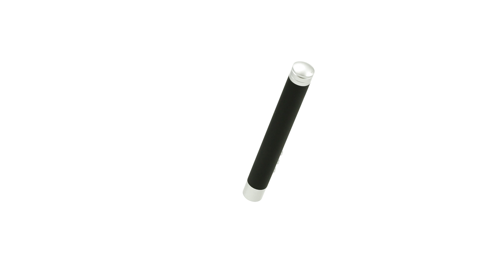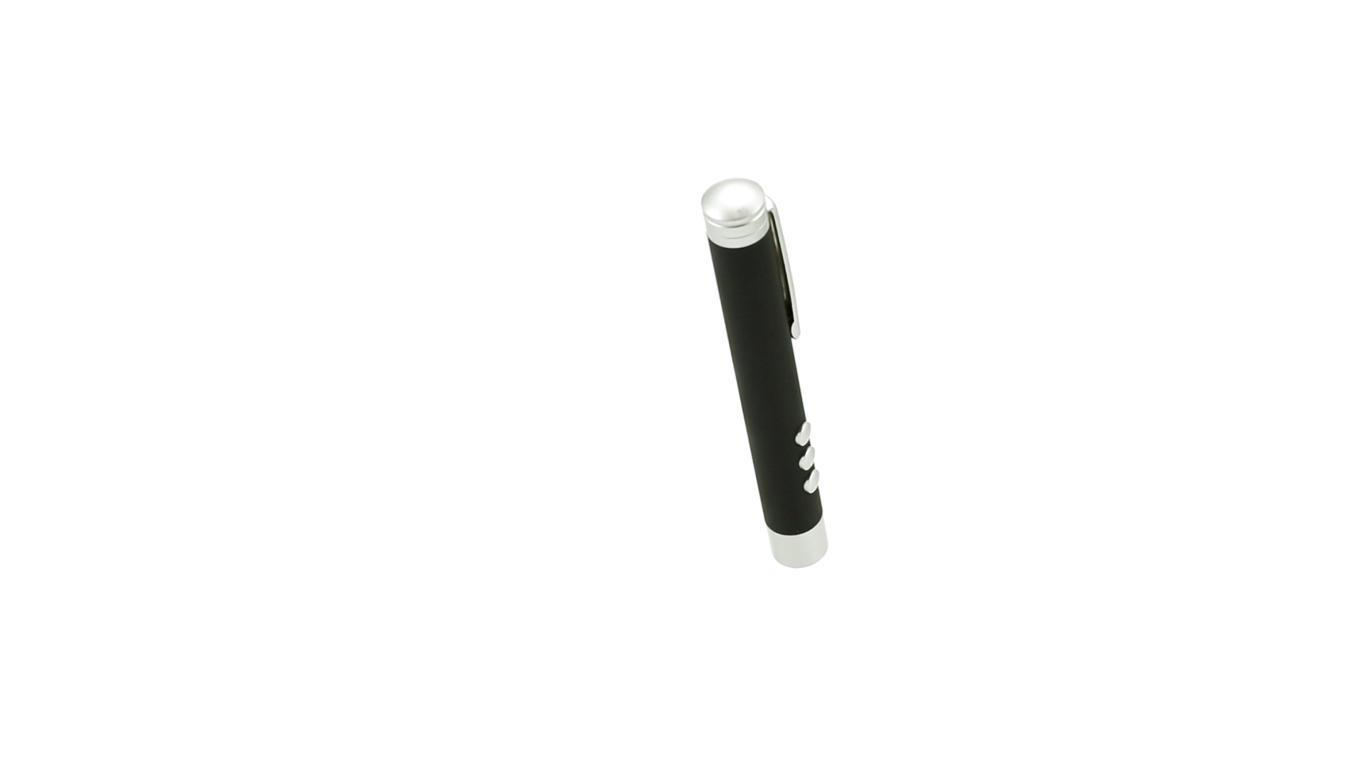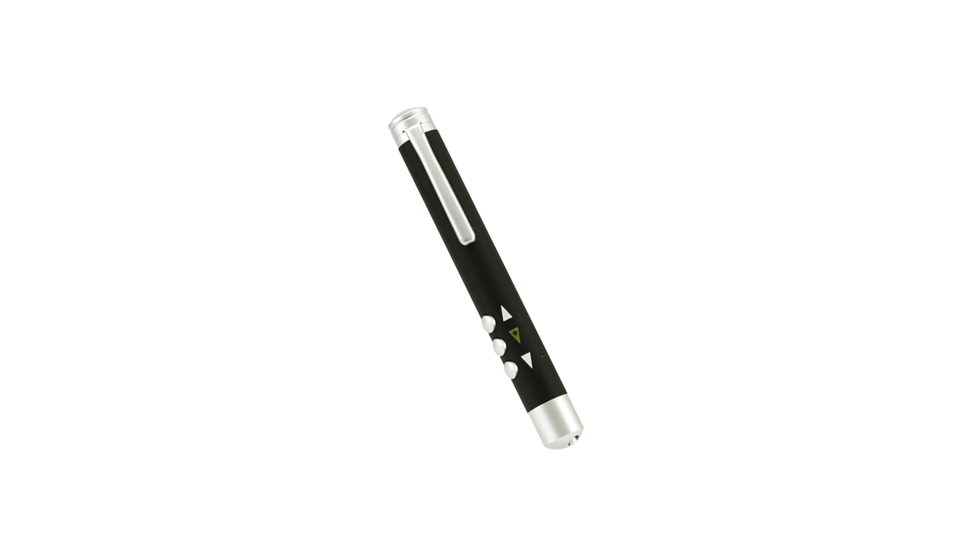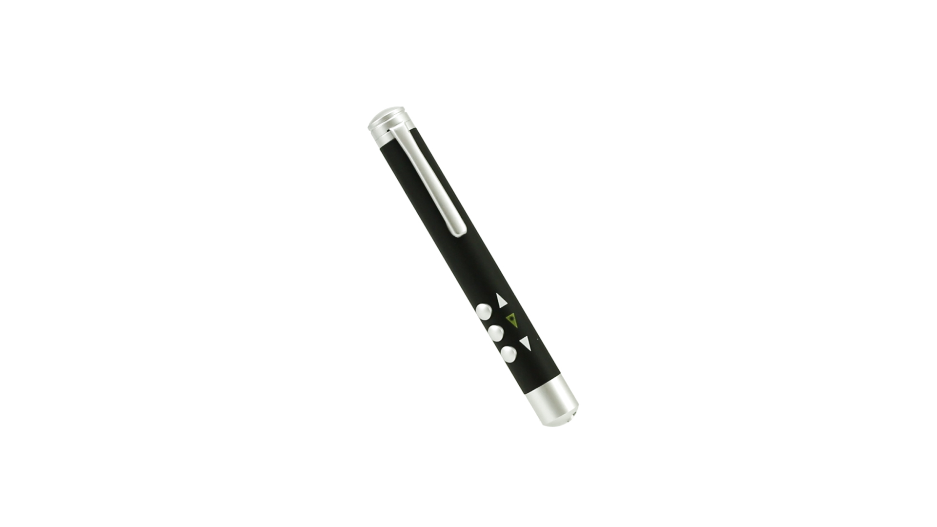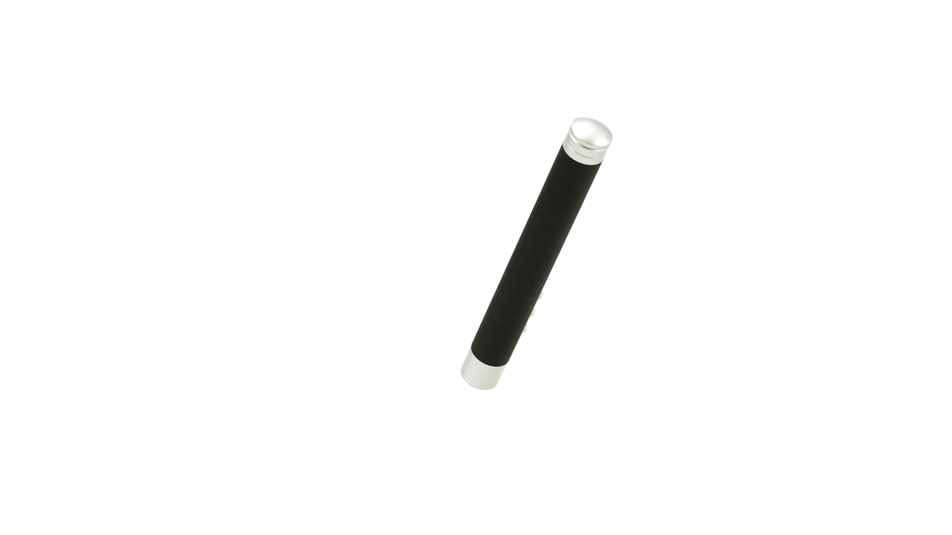 Laserpointer der Klasse 2 mit aussergewöhnlichem Design, USB-Anschluss und geschmeidigem Gehäuse. Speziell entwickelt für PowerPoint- und Keynote-Präsentationen dank der LED-Leuchte und der seitlichen Tasten mit Vorwärts-, Pause- und Rückwärtsfunktion. Knopfzellen inklusive. Präsentiert in einer eleganten und robusten Schachtel aus schwarzem Karton, mit weichem Schaumstoff mit Stanzung im Inneren.