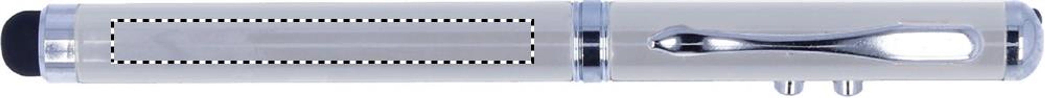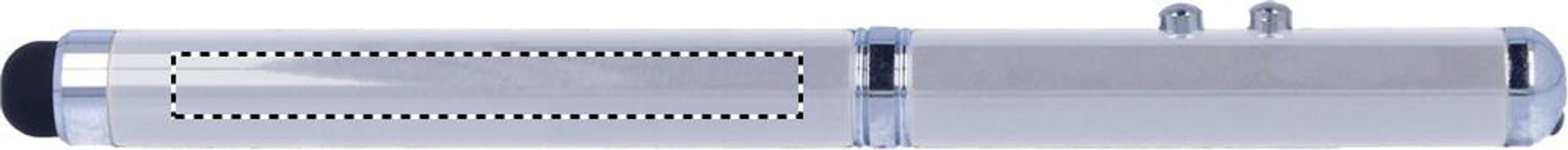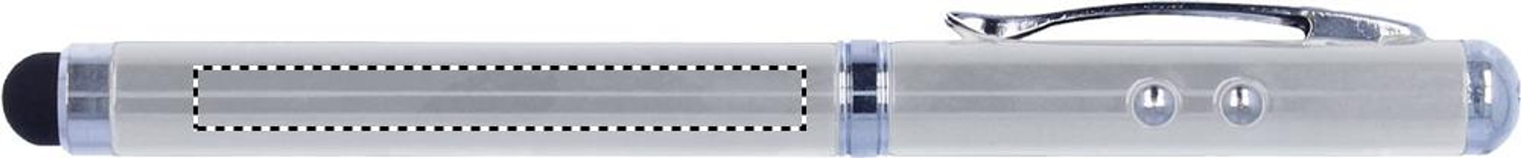 Multifunktioneller Laserpointer aus Metall. Mit Kugelschreiber, LED-Licht und Stylus. Lieferung in einer Metallbox. Inklusive 3 Knopfzellen. Schwarze Tinte.
