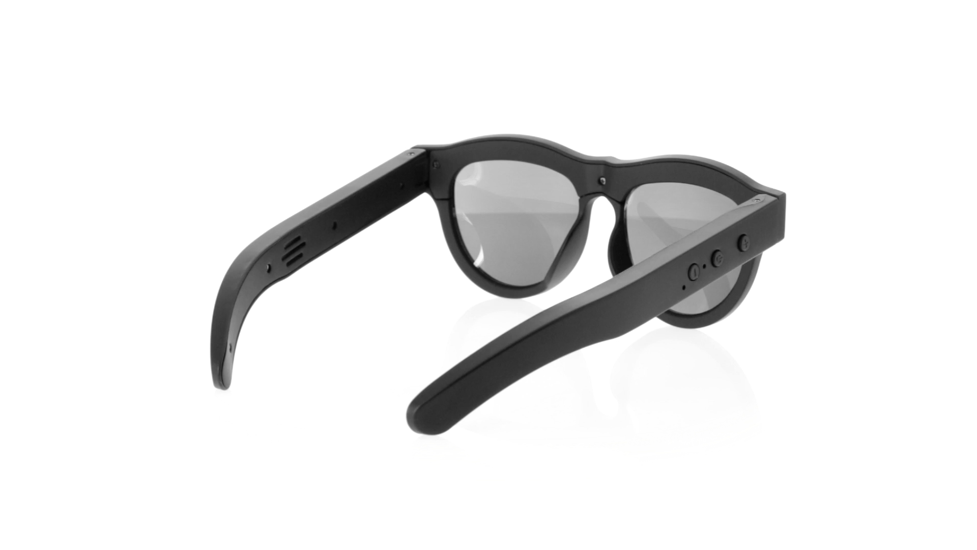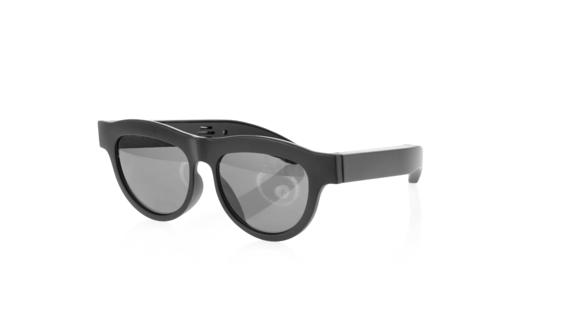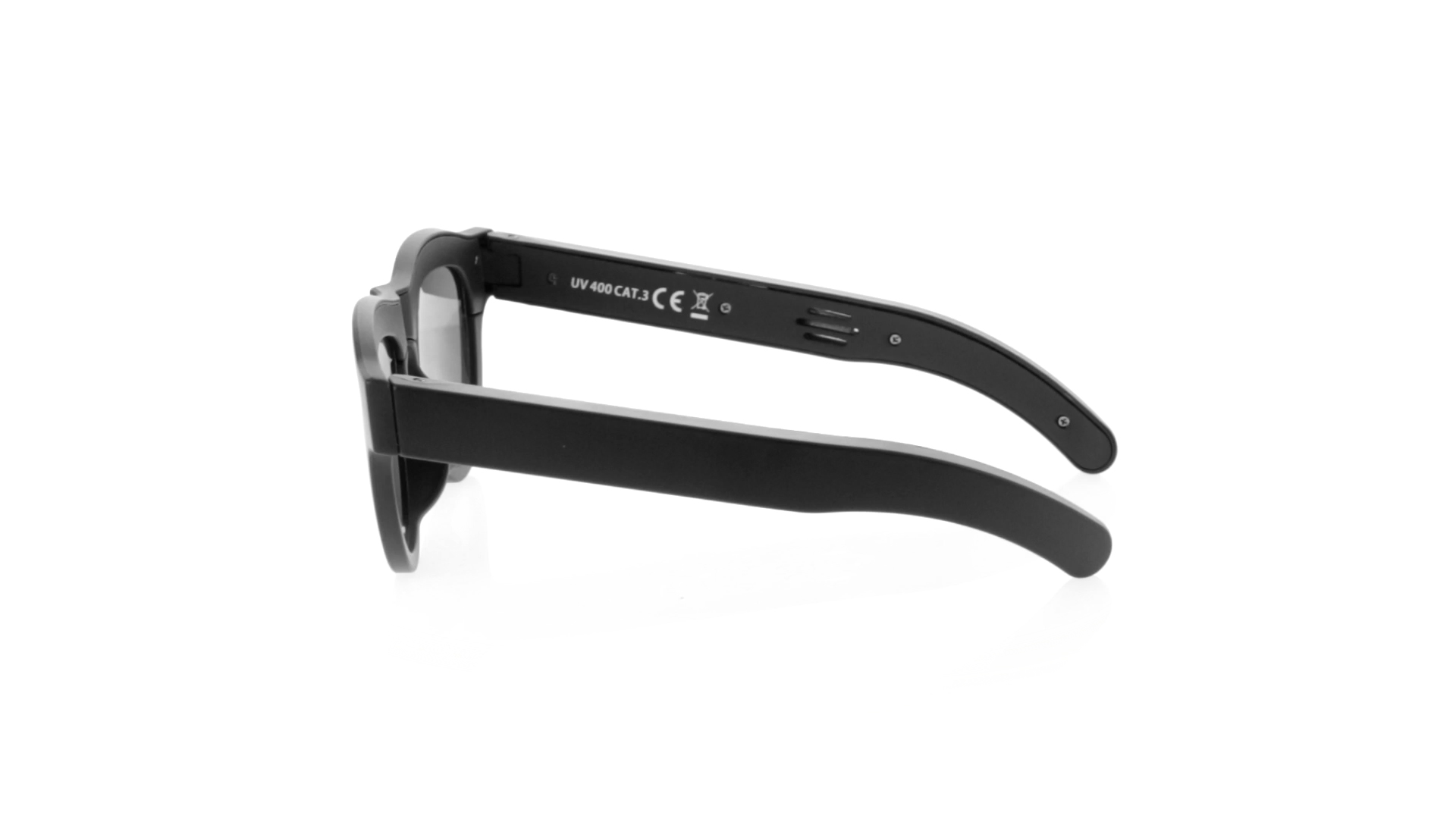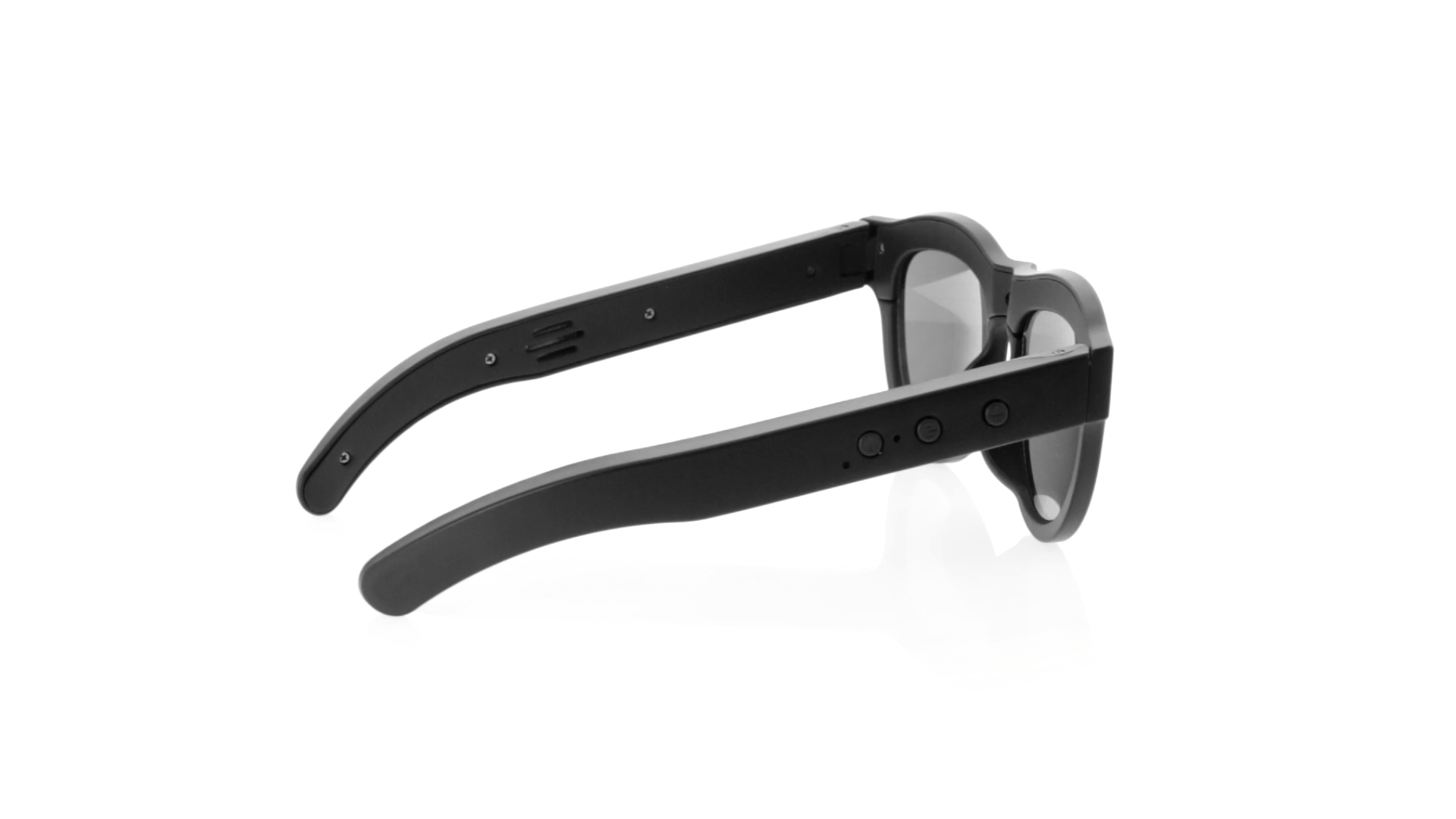 Sonnenbrille mit UV-400-Schutz und integriertem Bluetooth-Headset. Ultradünnes Design mit Bedientasten am Bügel. Mit 1 W Leistung und Freisprechfunktion. Aufladbar über USB-Kabel (inklusive). Präsentiert in einer resistenten Hülle mit transparentem Deckel.