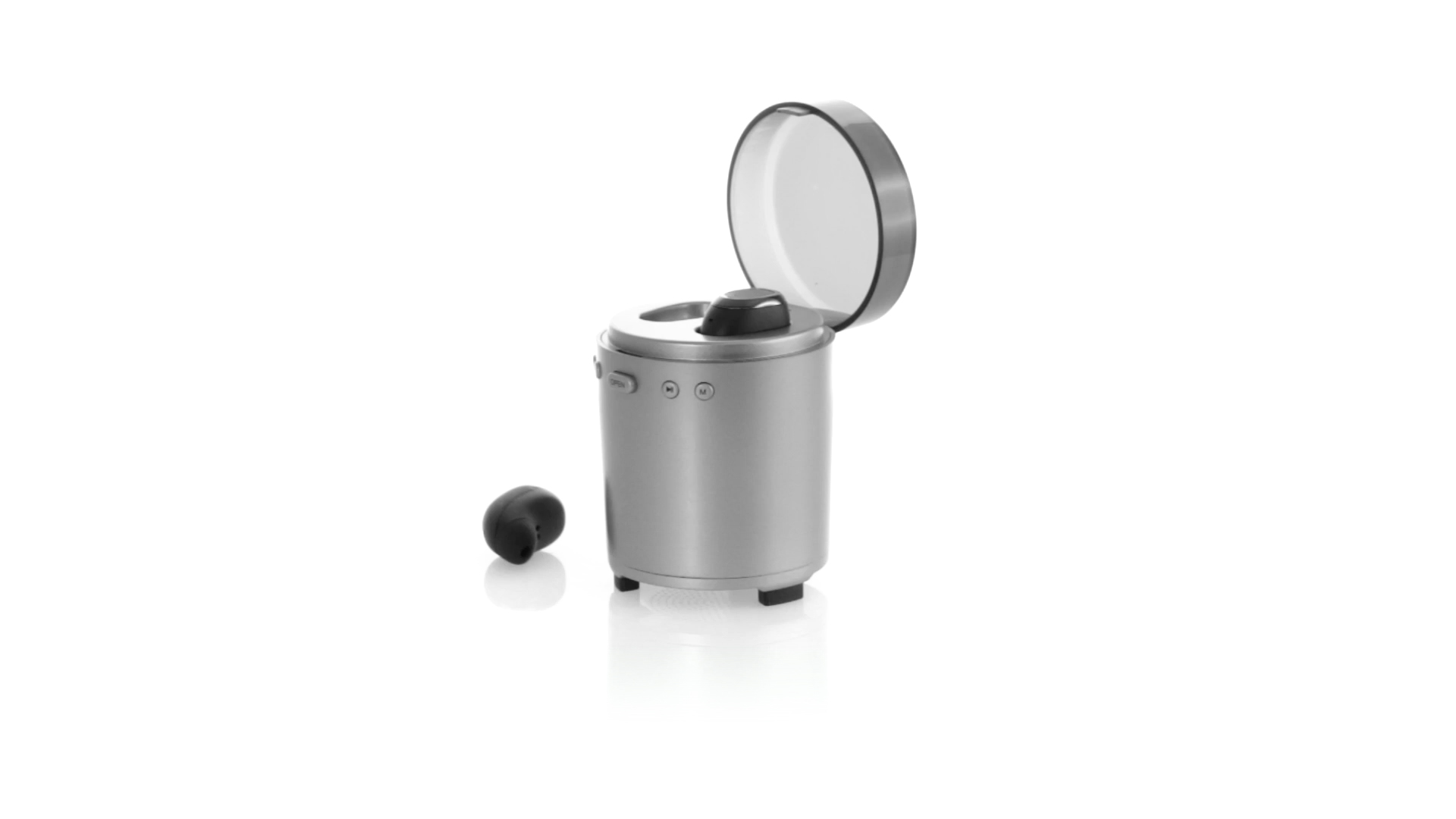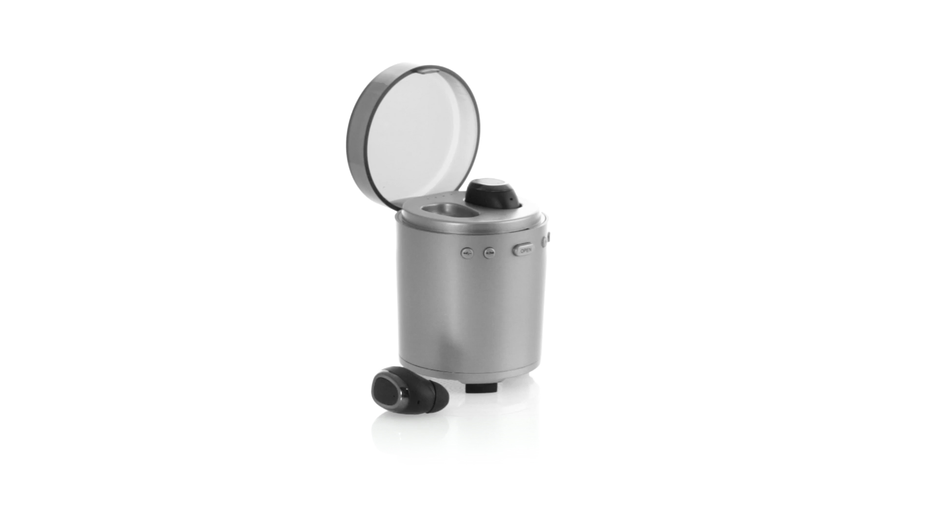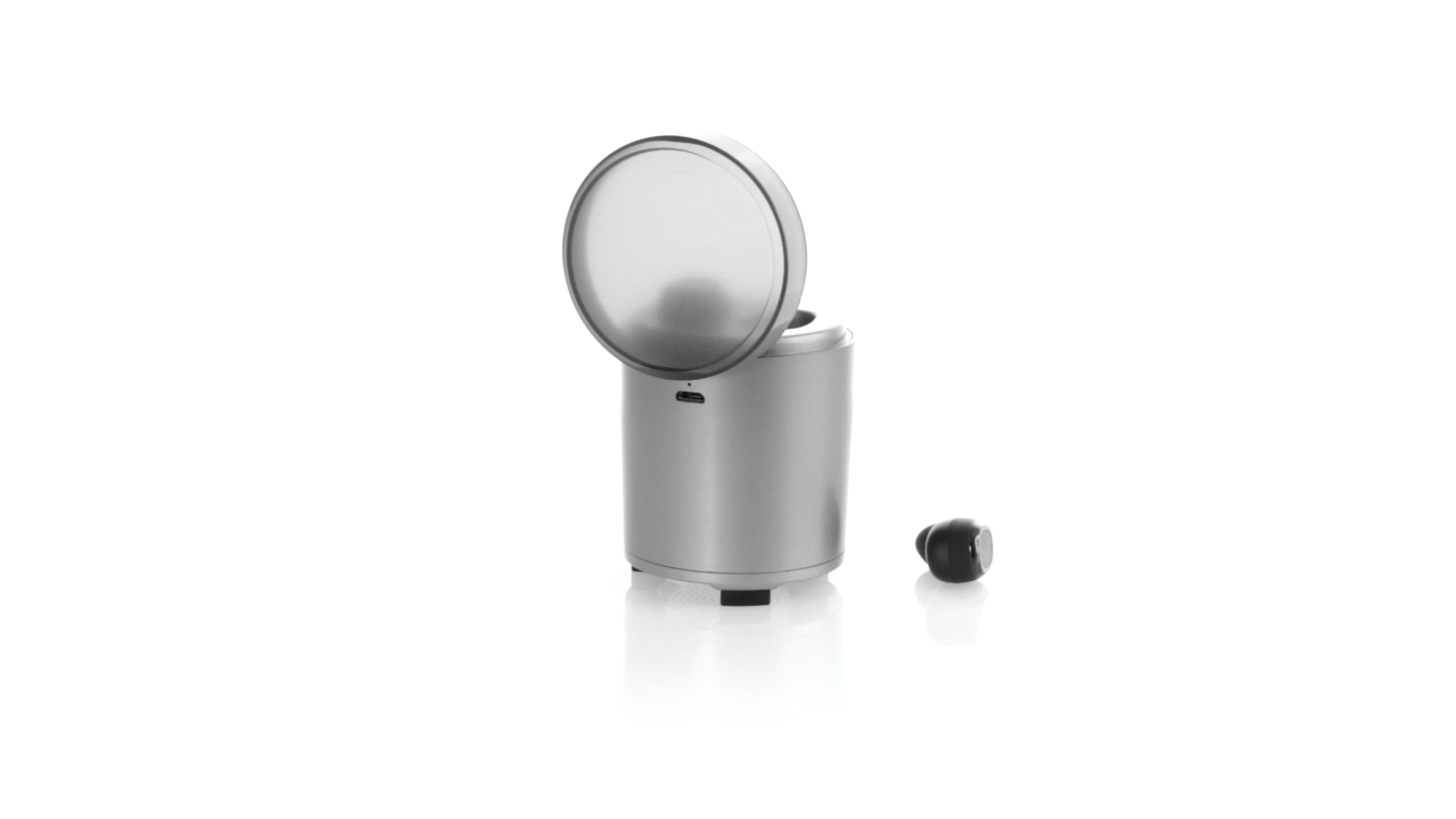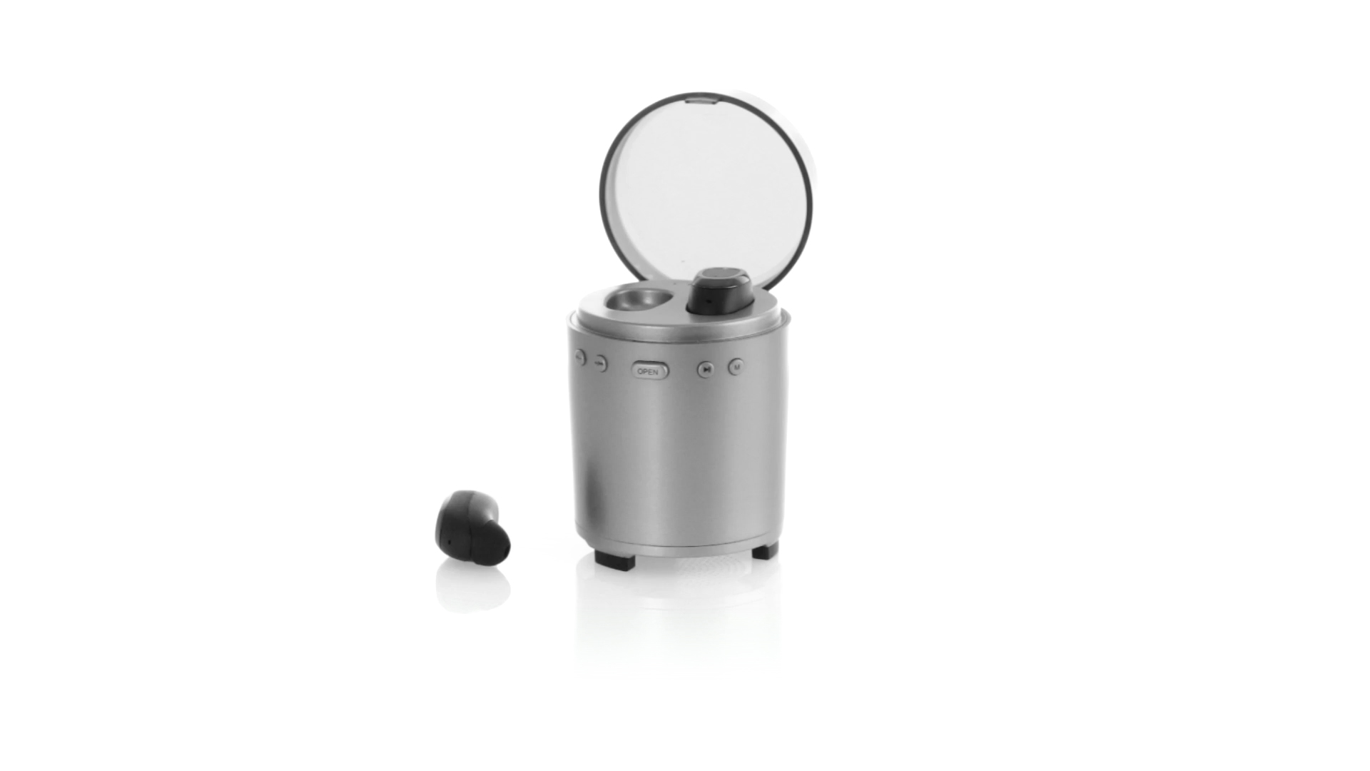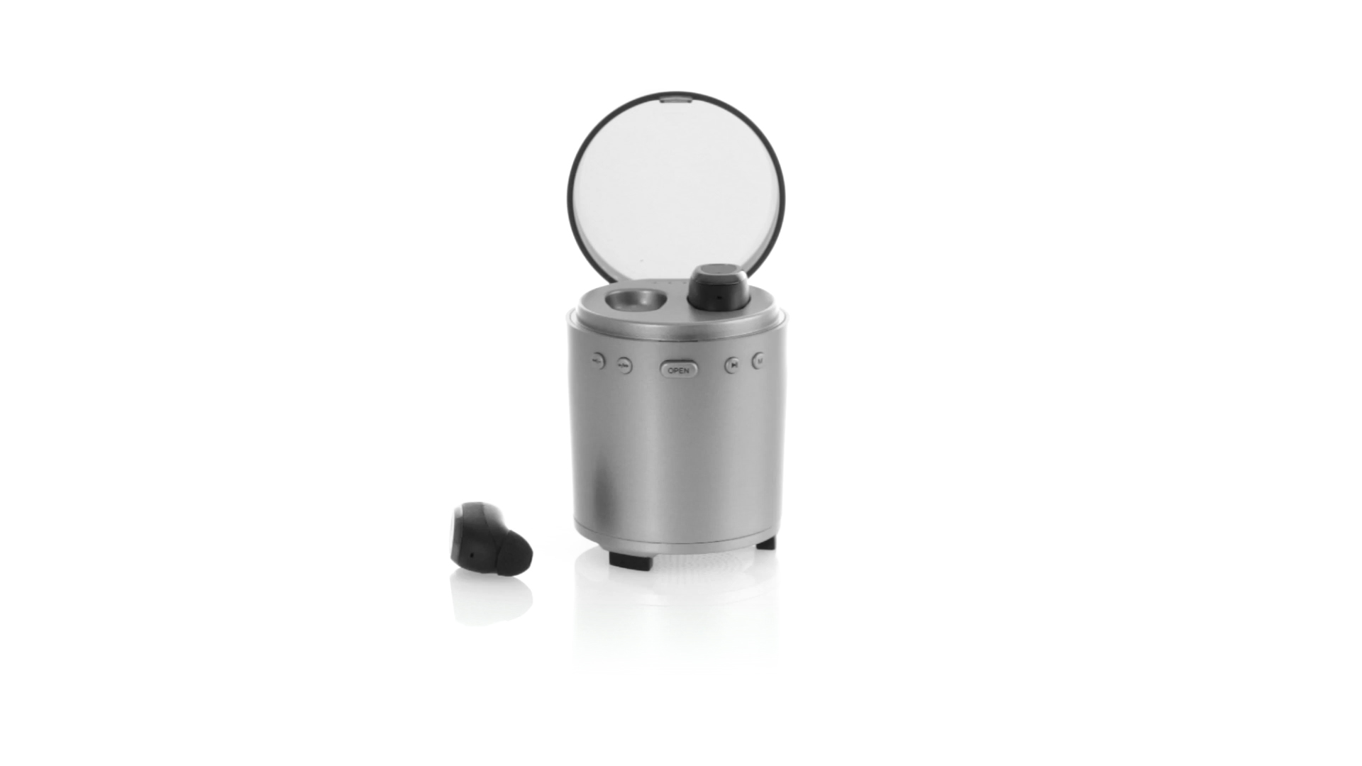 Bluetooth®-Lautsprecher mit integrierten In-Ear-Kopfhörern. Mit schlichtem Design in Schwarz/Silber, rutschfester Unterseite und im Lautsprecher integrierten Bedientasten. Bietet zudem Freisprechfunktion und FM-Radio. Ladestation für Kopfhörer mit Deckel und Ladeanzeige. Aufladbar über USB-Kabel (inklusive). Präsentiert in einer attraktiven Designbox.