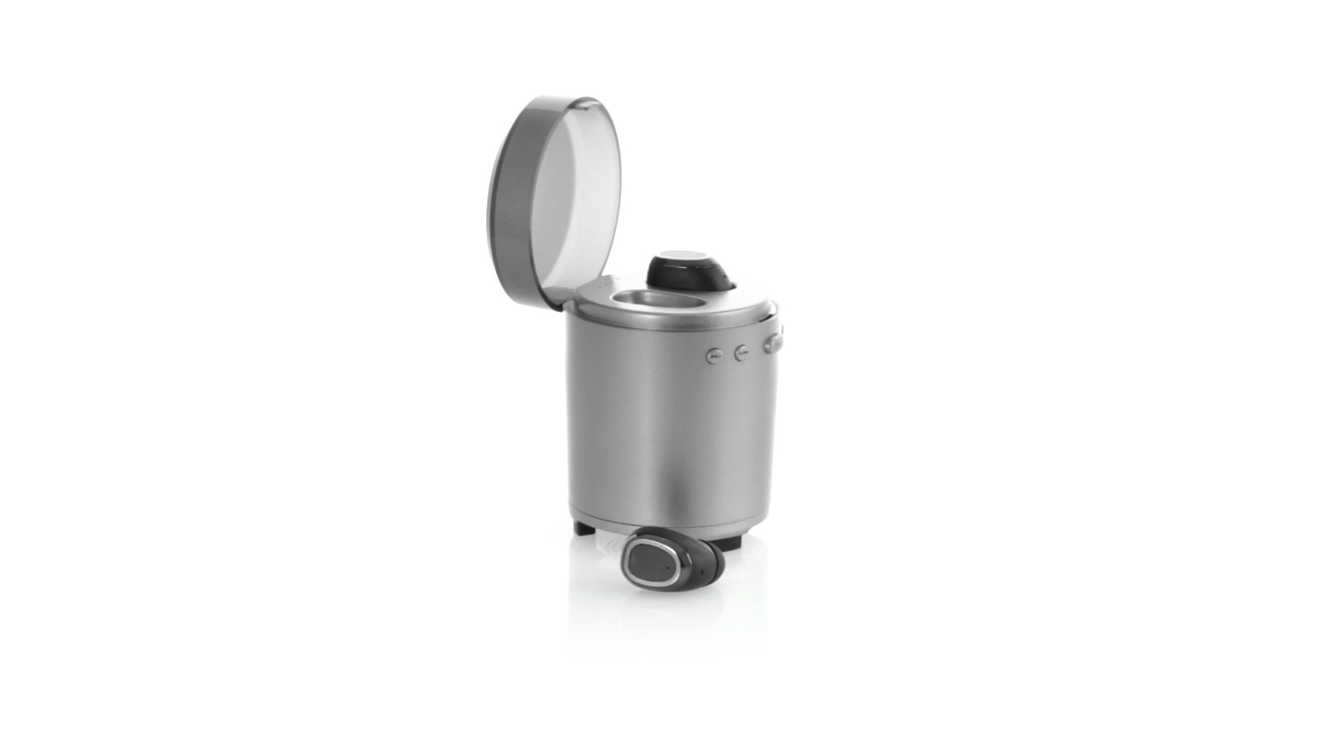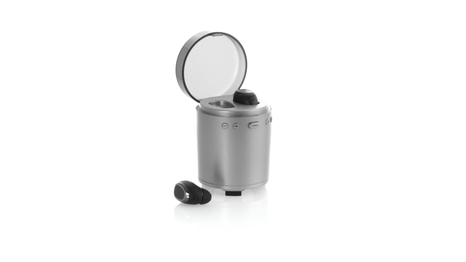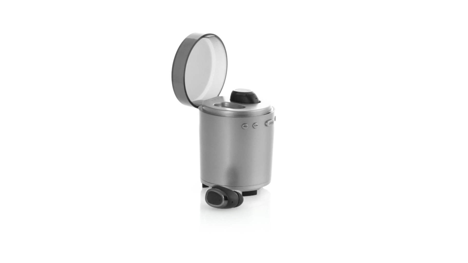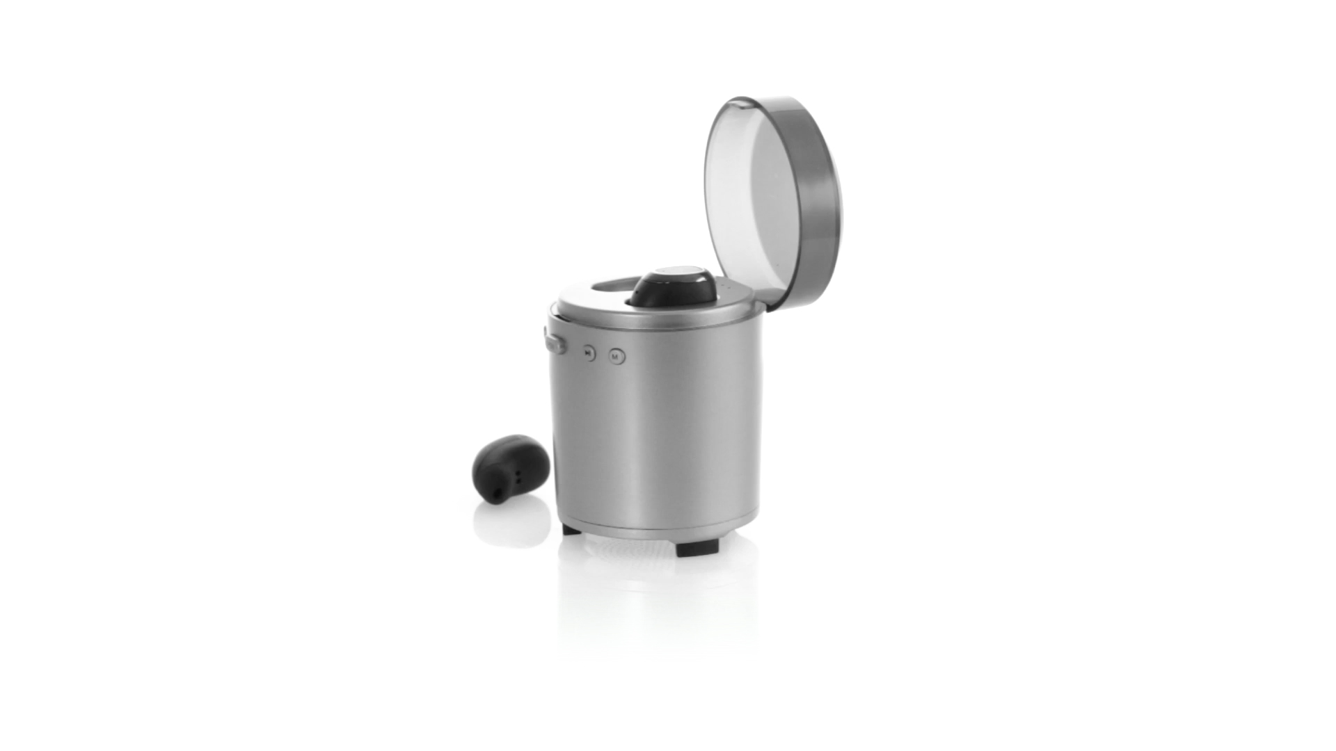 Bluetooth®-Lautsprecher mit integrierten In-Ear-Kopfhörern. Mit schlichtem Design in Schwarz/Silber, rutschfester Unterseite und im Lautsprecher integrierten Bedientasten. Bietet zudem Freisprechfunktion und FM-Radio. Ladestation für Kopfhörer mit Deckel und Ladeanzeige. Aufladbar über USB-Kabel (inklusive). Präsentiert in einer attraktiven Designbox.