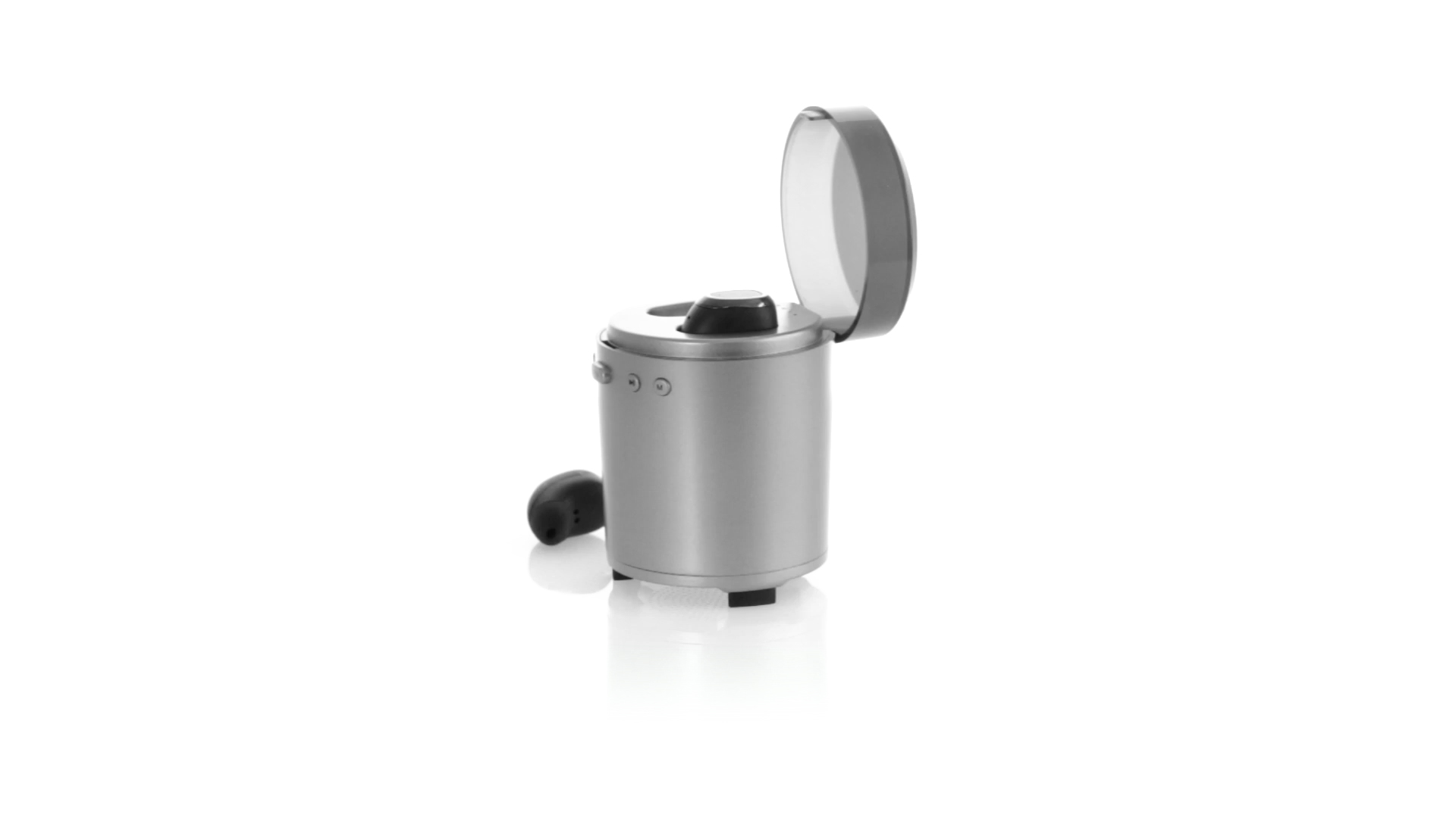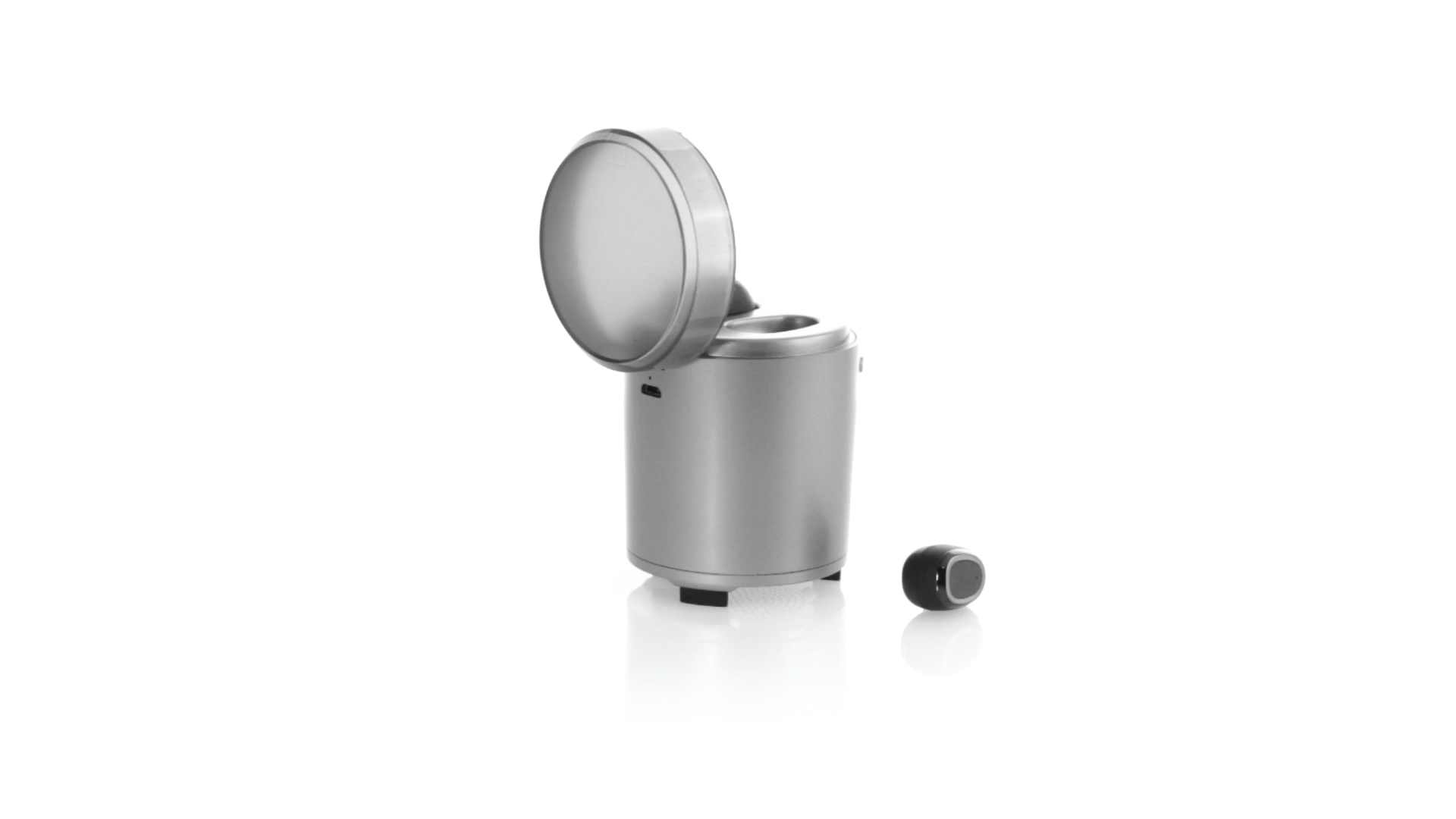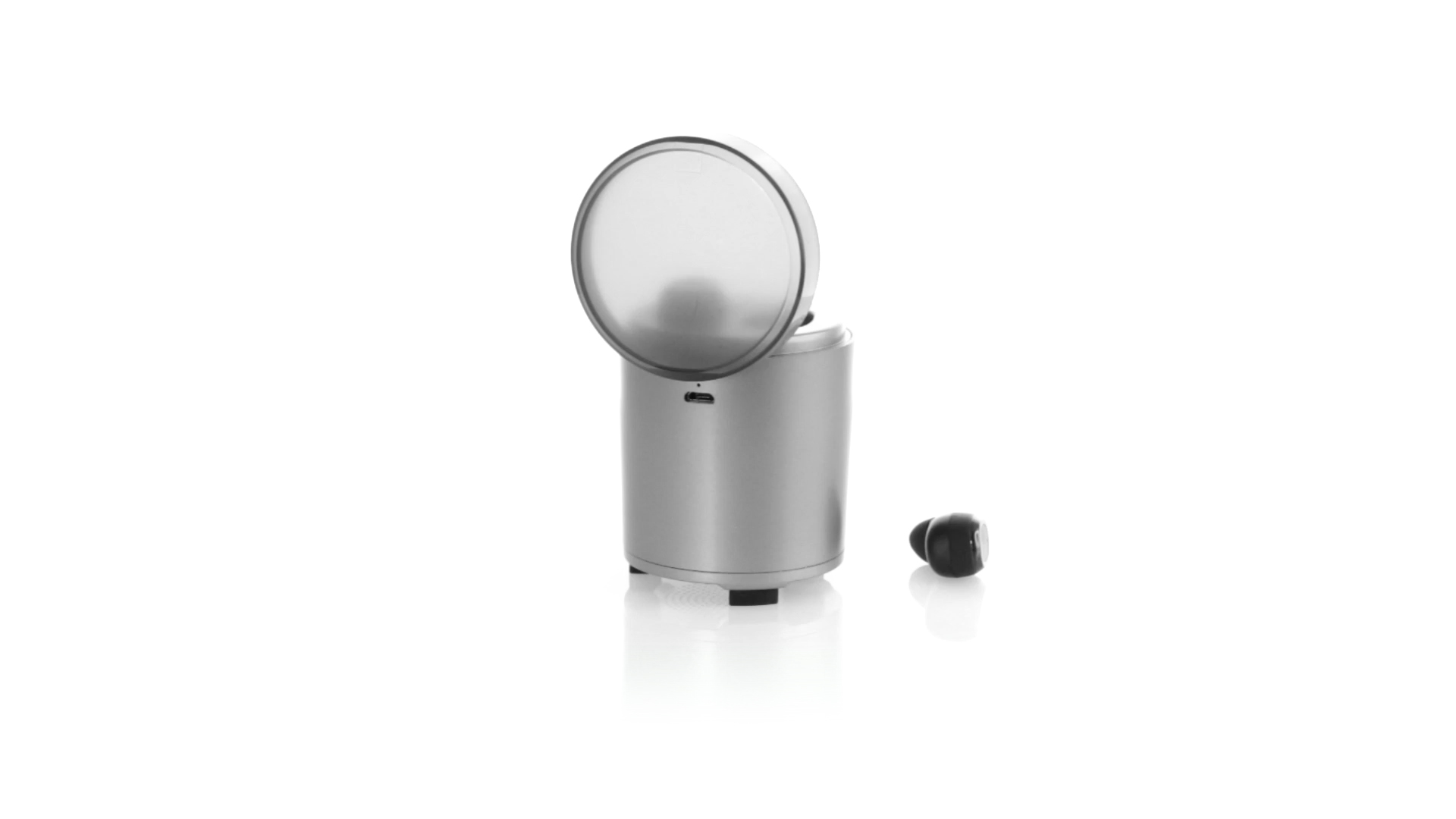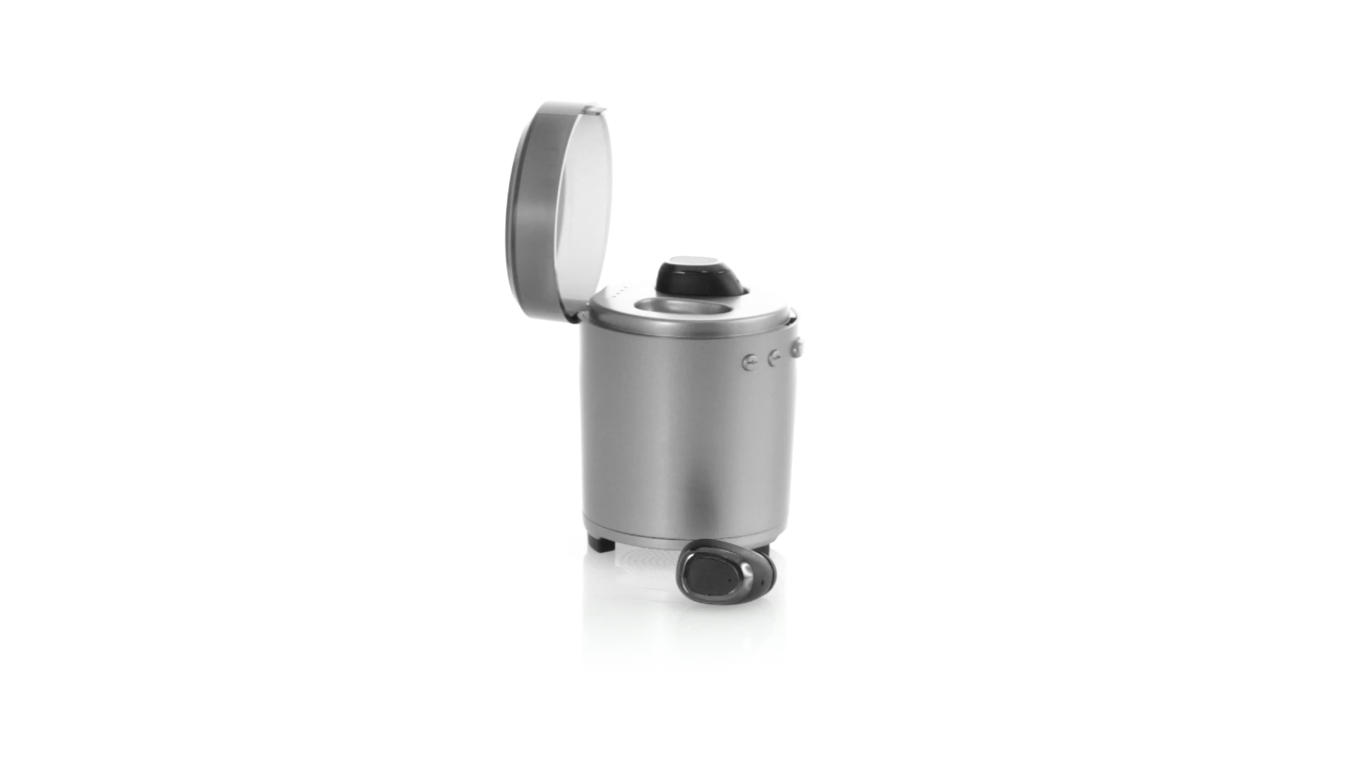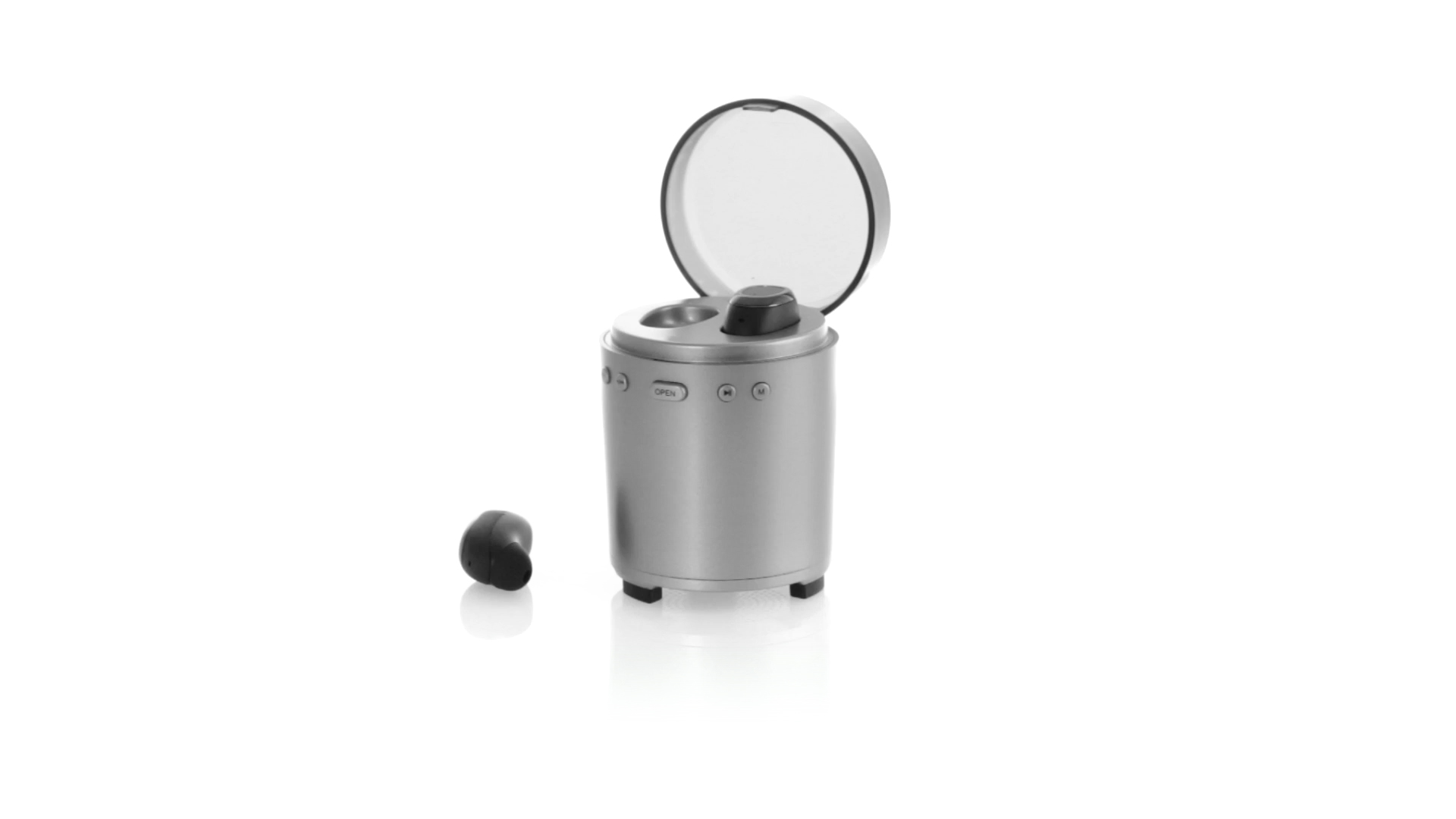 Bluetooth®-Lautsprecher mit integrierten In-Ear-Kopfhörern. Mit schlichtem Design in Schwarz/Silber, rutschfester Unterseite und im Lautsprecher integrierten Bedientasten. Bietet zudem Freisprechfunktion und FM-Radio. Ladestation für Kopfhörer mit Deckel und Ladeanzeige. Aufladbar über USB-Kabel (inklusive). Präsentiert in einer attraktiven Designbox.