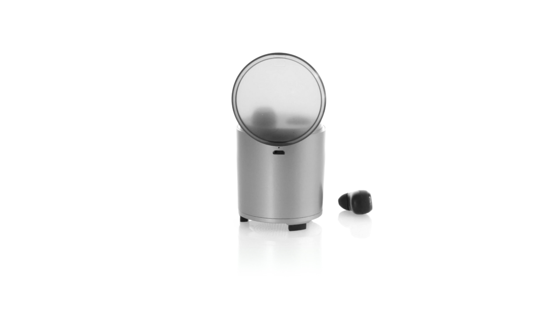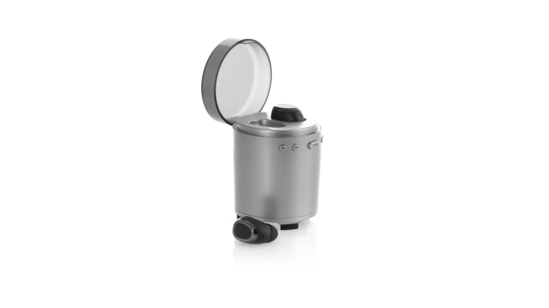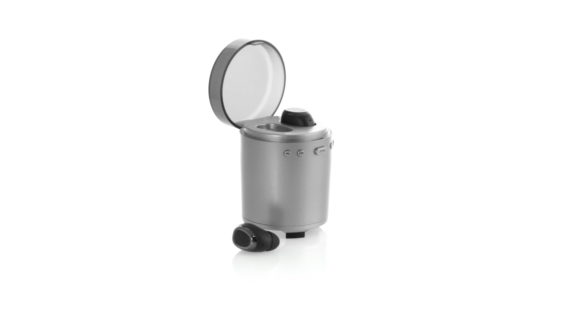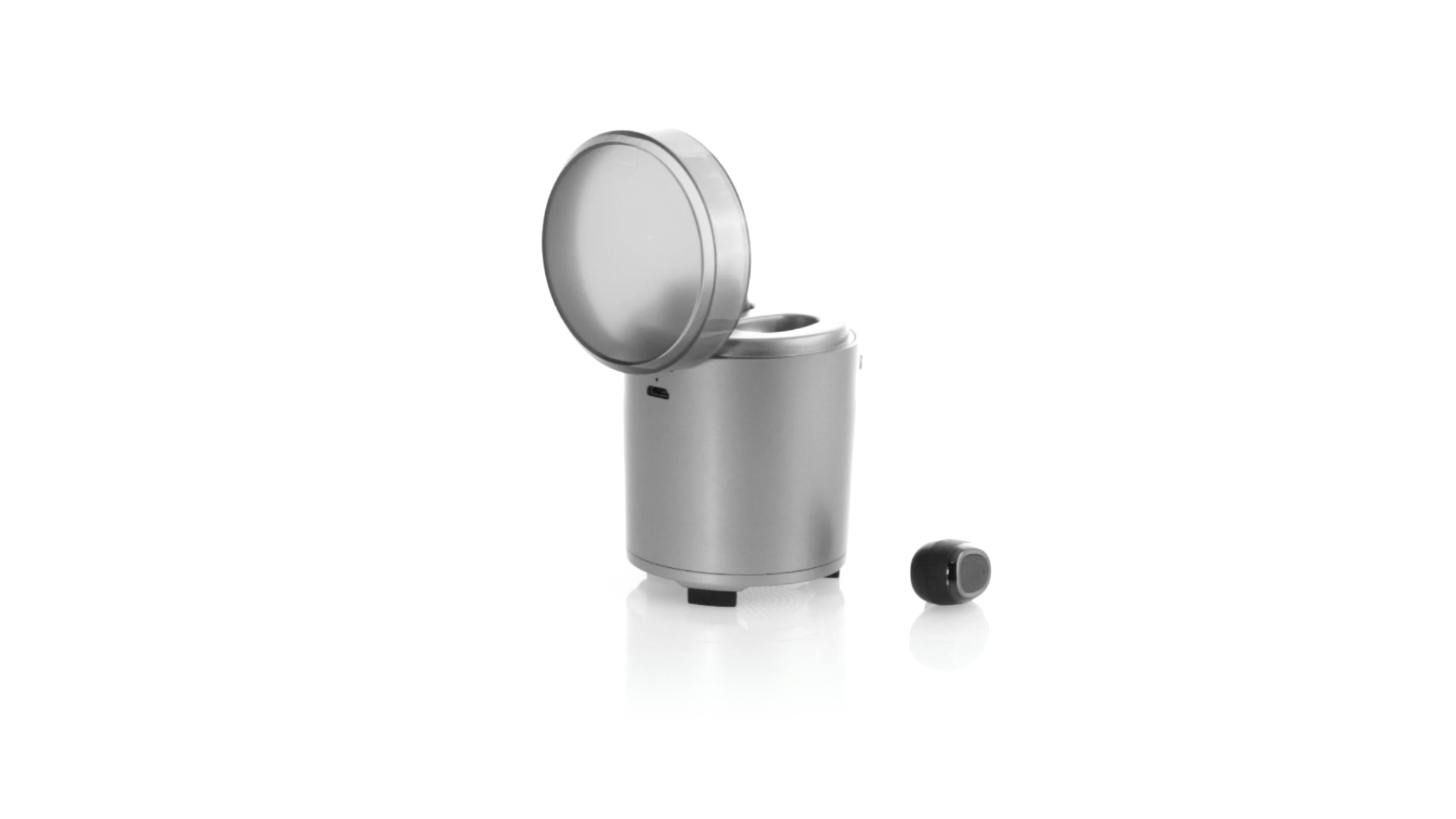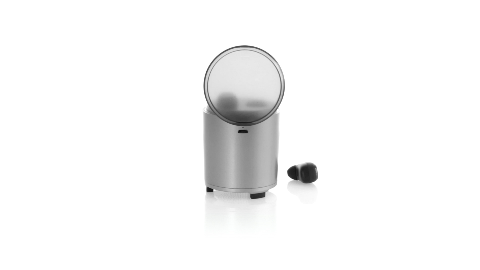 Bluetooth®-Lautsprecher mit integrierten In-Ear-Kopfhörern. Mit schlichtem Design in Schwarz/Silber, rutschfester Unterseite und im Lautsprecher integrierten Bedientasten. Bietet zudem Freisprechfunktion und FM-Radio. Ladestation für Kopfhörer mit Deckel und Ladeanzeige. Aufladbar über USB-Kabel (inklusive). Präsentiert in einer attraktiven Designbox.