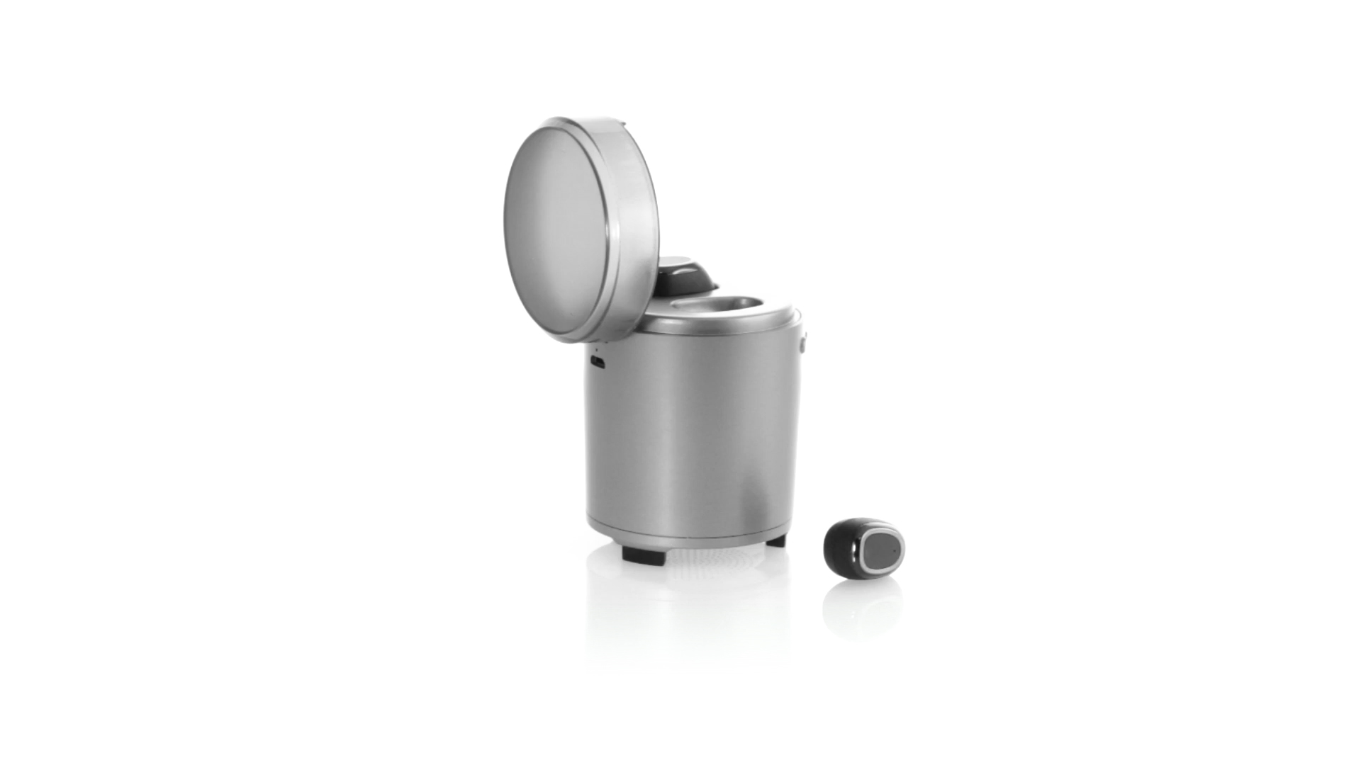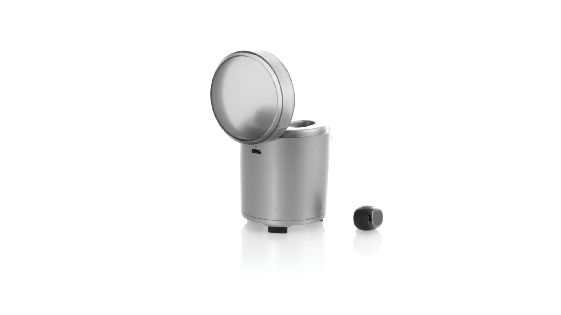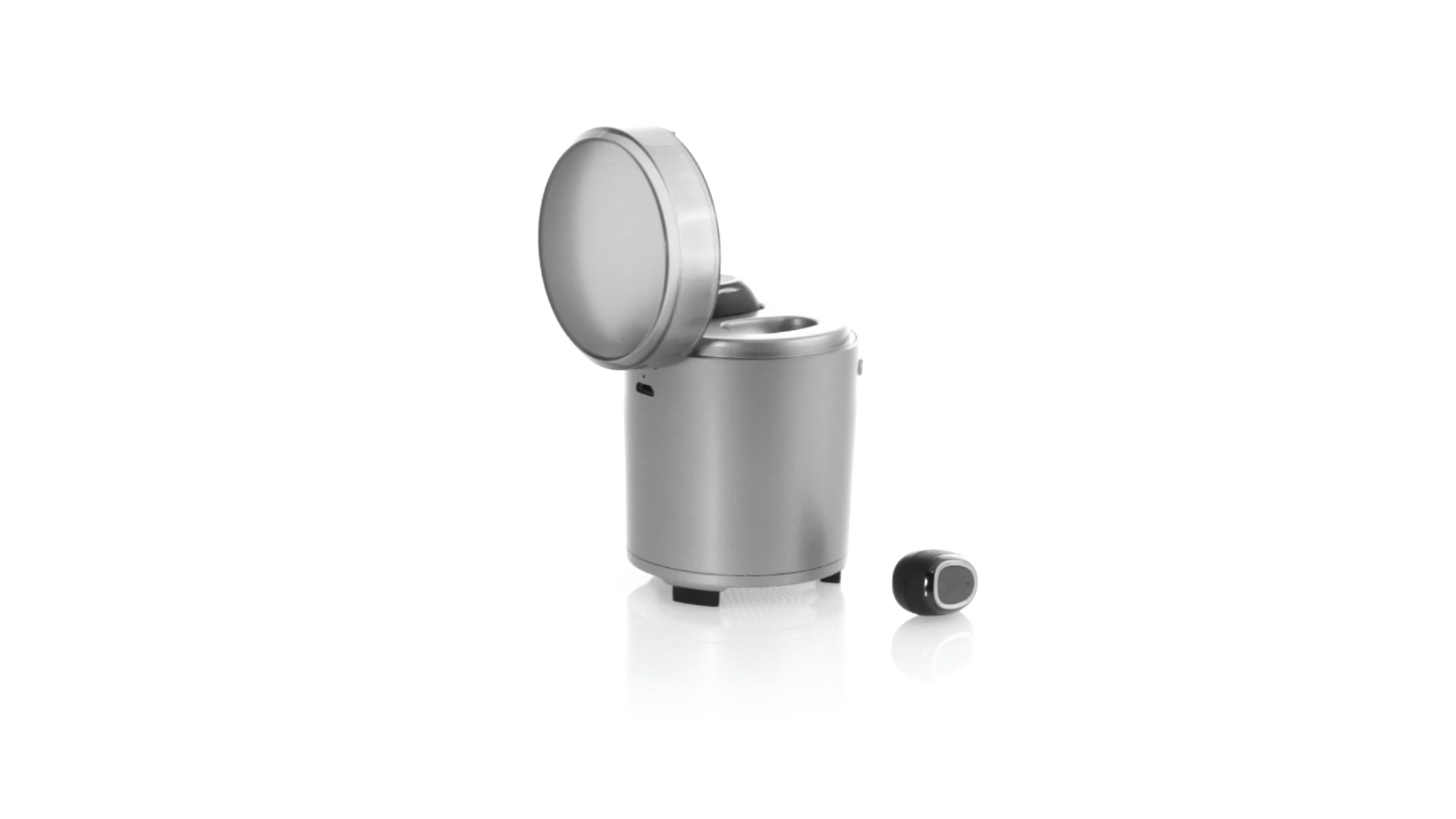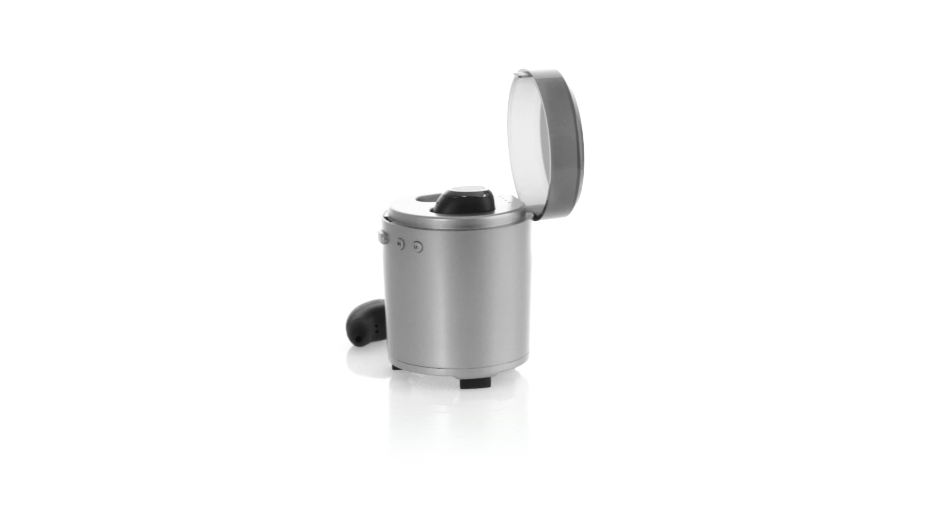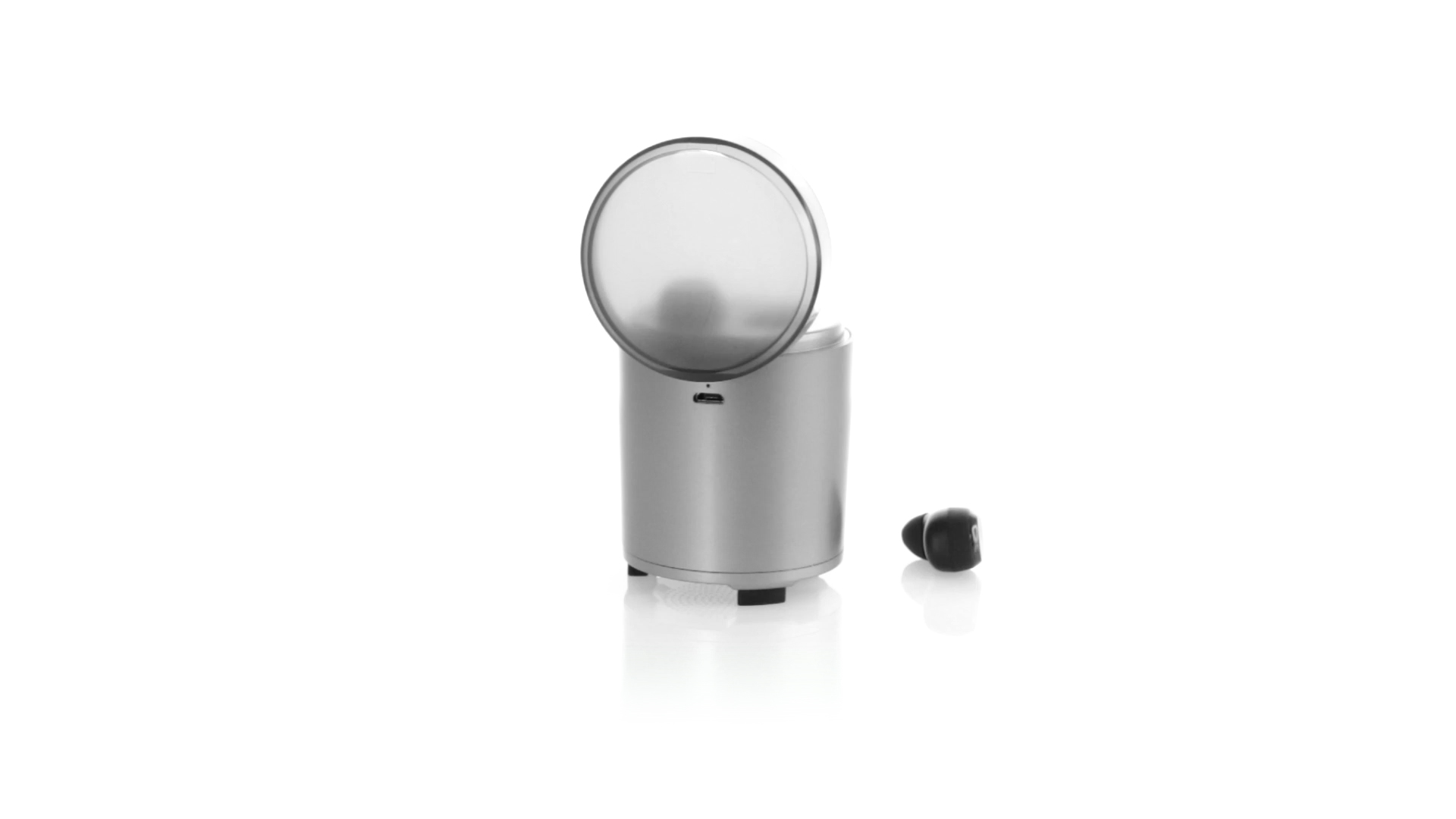 Bluetooth®-Lautsprecher mit integrierten In-Ear-Kopfhörern. Mit schlichtem Design in Schwarz/Silber, rutschfester Unterseite und im Lautsprecher integrierten Bedientasten. Bietet zudem Freisprechfunktion und FM-Radio. Ladestation für Kopfhörer mit Deckel und Ladeanzeige. Aufladbar über USB-Kabel (inklusive). Präsentiert in einer attraktiven Designbox.