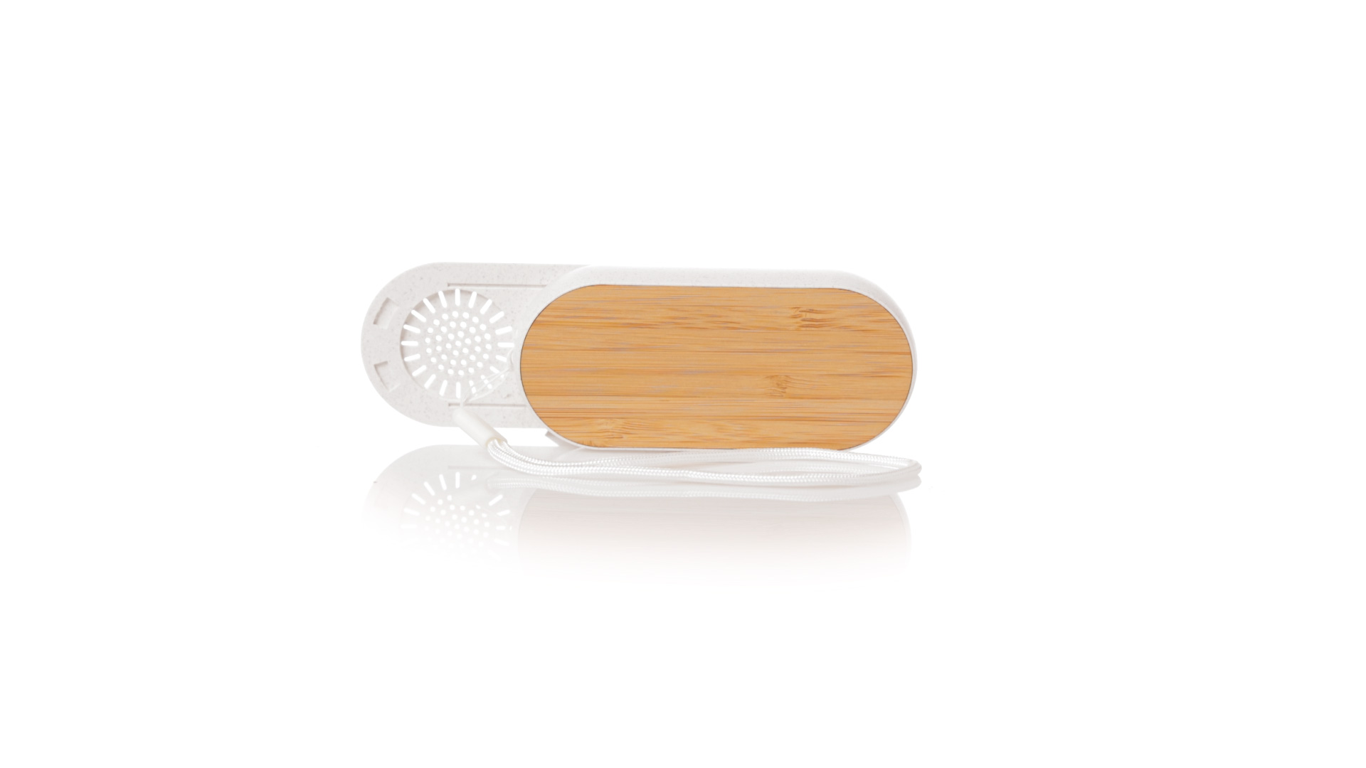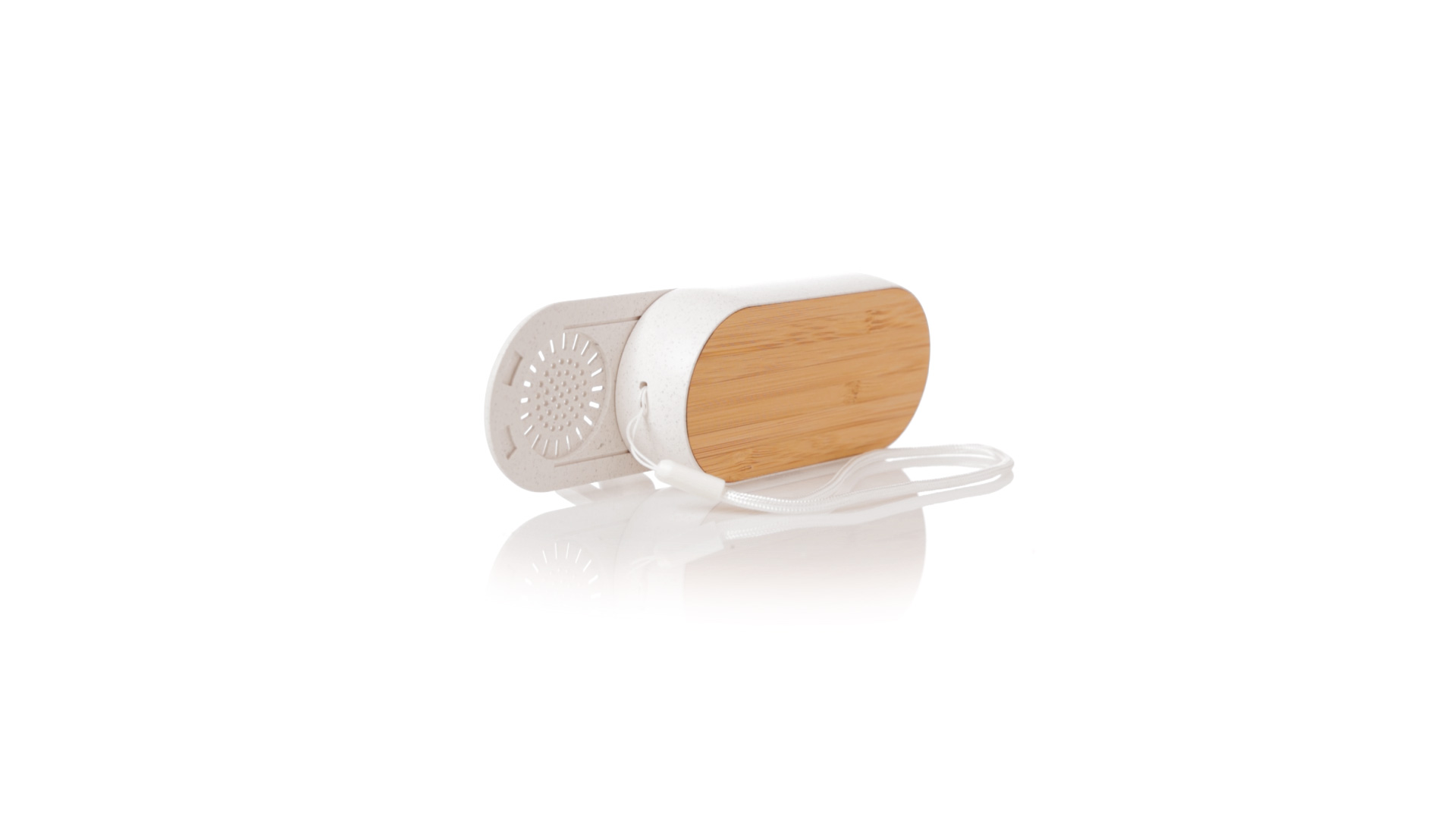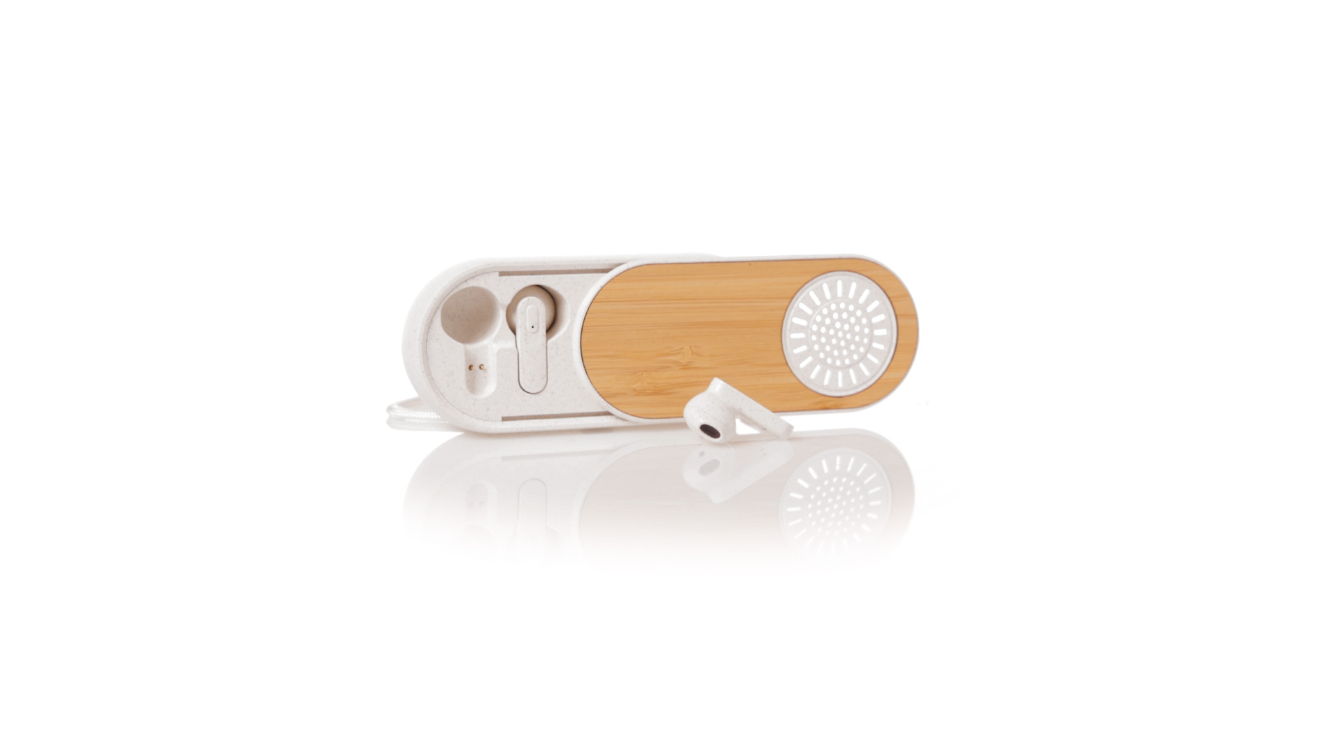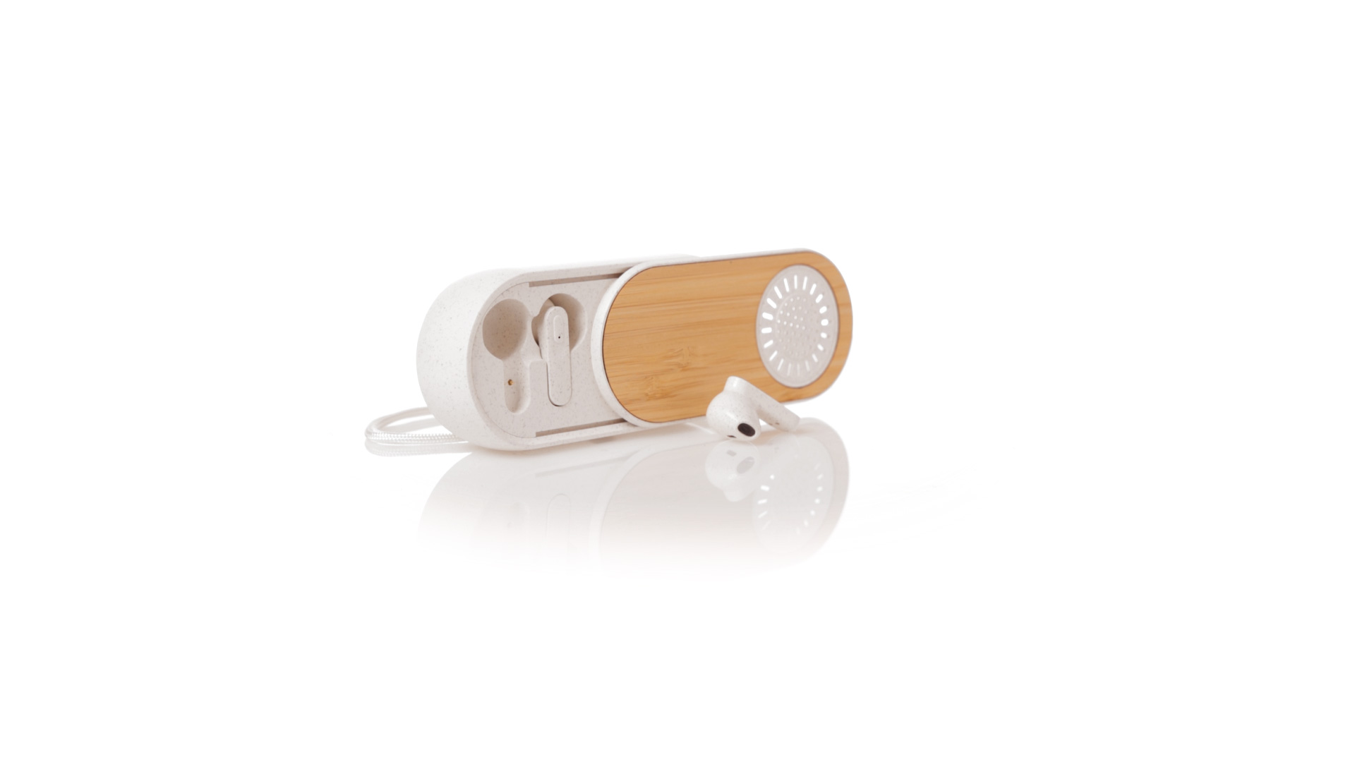 Lautsprecher-Kopfhörer aus Bambus und Weizenrohr. Mit Bluetooth® 5.0. Inhalt:In-Ear-Design-Kopfhörer mit integrierter Bedientaste, passender Ladestation und LED-Ladestatusleuchte. 3 W Bluetooth®-Freisprecheinrichtung und Freisprechfunktion.Wiederaufladbarer 30-mAh-Akku in jeder Hörmuschel und 300-mAh-Basis. Präsentiert in individueller Designbox mit Bedienungsanleitung in Englisch und Spanisch.Hergestellt aus pflanzlichen Elementen, um die Verwendung natürlicher Rohstoffe zu fördern und Schadstoffemissionen zu reduzieren.