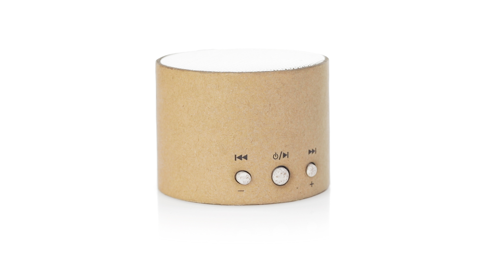 Kompakte Freisprecheinrichtung der Nature Line mit Bluetooth® 5.0-Verbindung. Hergestellt aus recyceltem Karton, der zur Erhaltung der Wälder beiträgt und den CO2-Fussabdruck erheblich reduziert, mit Kontrollknöpfen aus Weizenrohr. Bietet eine Leistung von 3 W, kompatibel mit iOS und Android. Inklusive Micro-USB-Ladekabel. Präsentiert in einer attraktiven Öko-Design-Box, mit Bedienungsanleitung in Englisch und Spanisch.