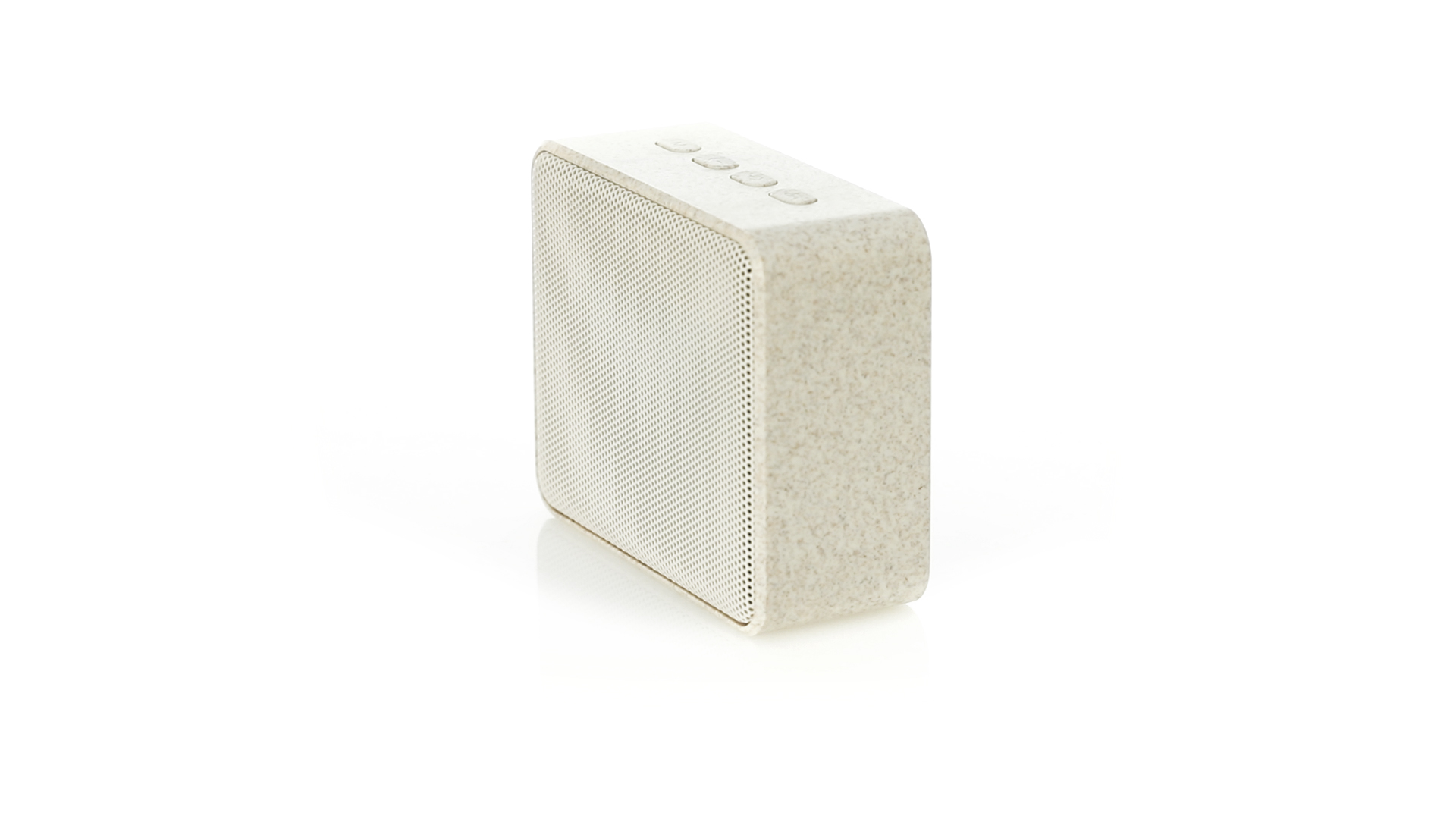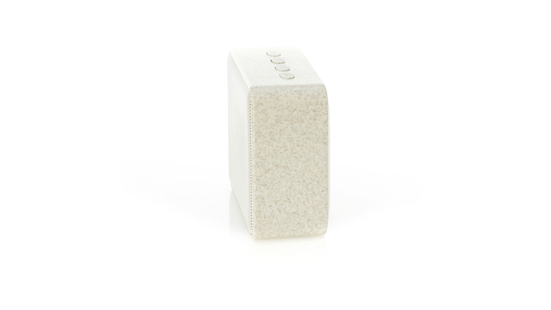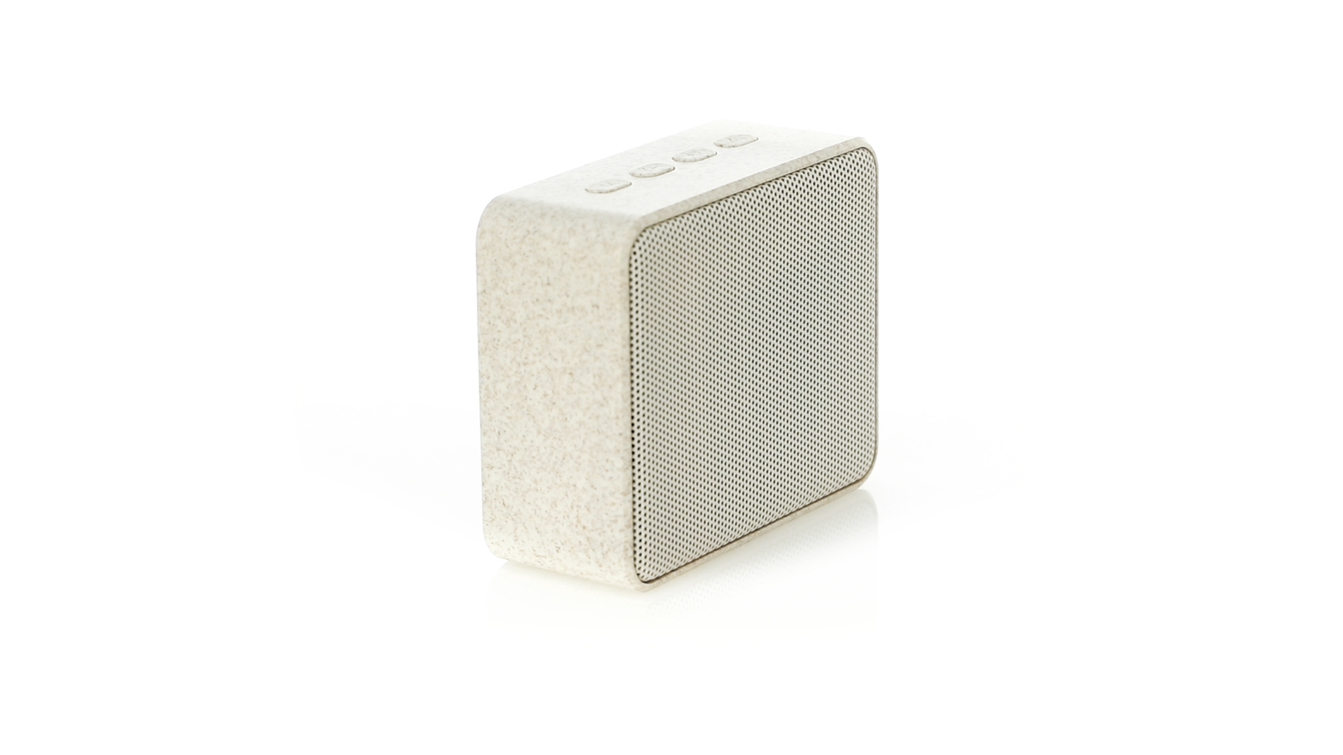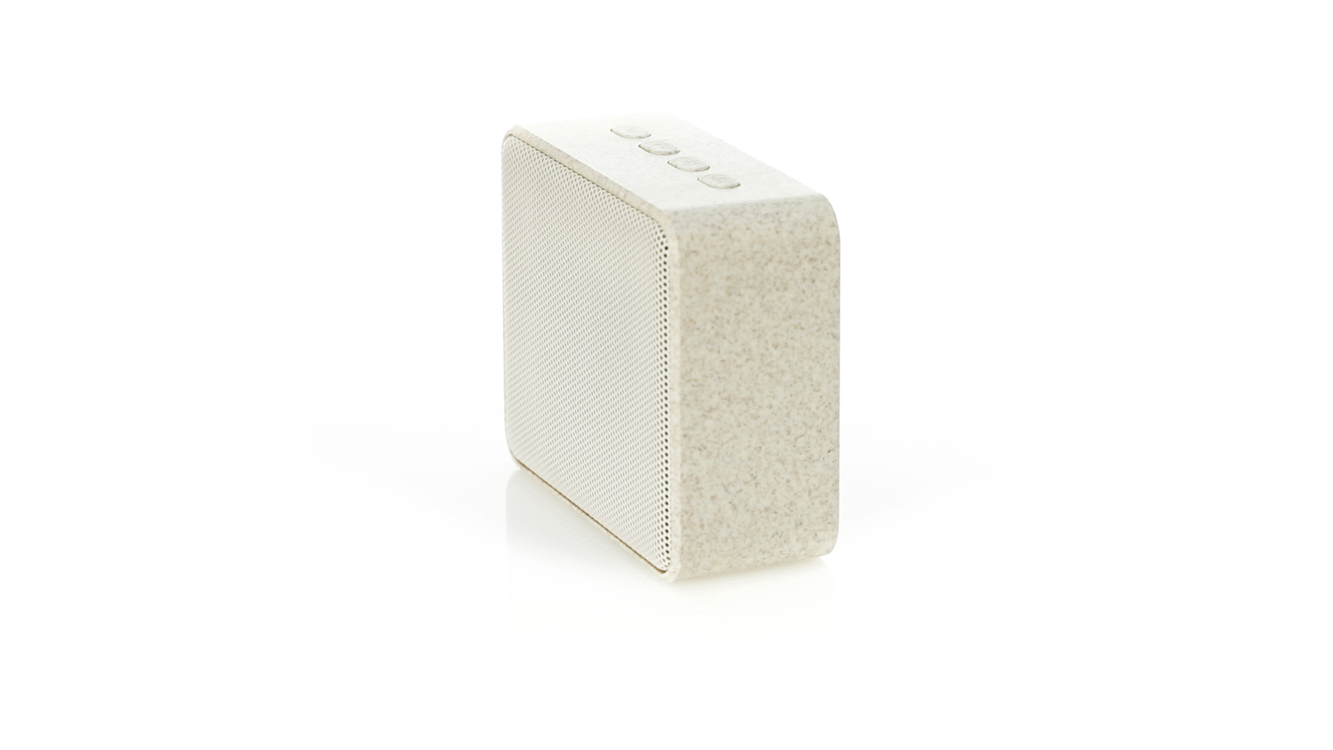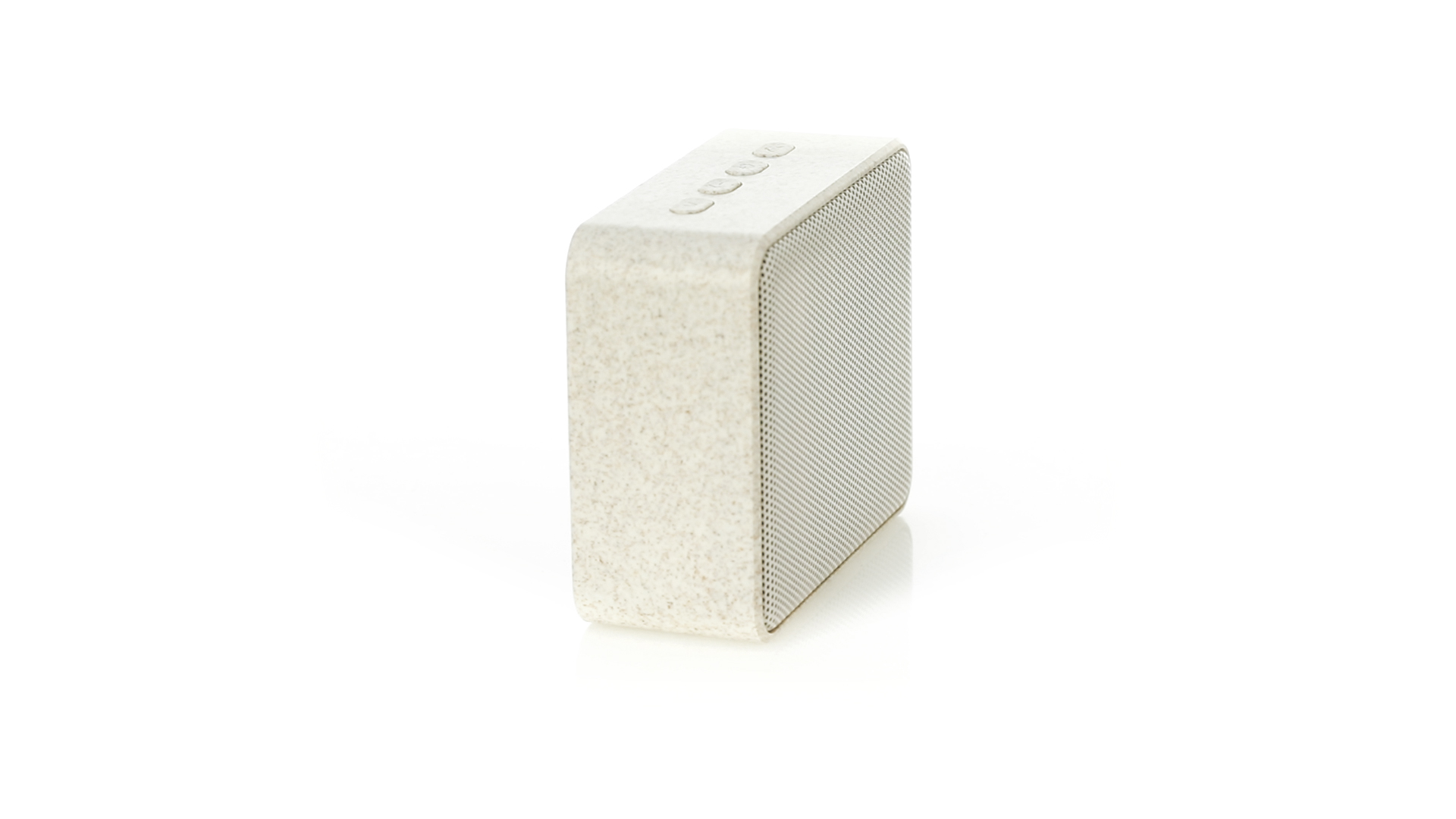 Naturlinie, Bluetooth® 5.0-Dockinglautsprecher. Schale aus Weizenstroh, um die Verwendung natürlicher Rohstoffe zu fördern und Schadstoffemissionen zu reduzieren, mit 3 W Schalleistung, mit USB-Player. Kompatibel mit iOS und Android, mit einem Mikro-USB-Ladekabel und in einer individuellen Öko-Design-Box. Mit rutschfesten Gummis an der Unterseite.