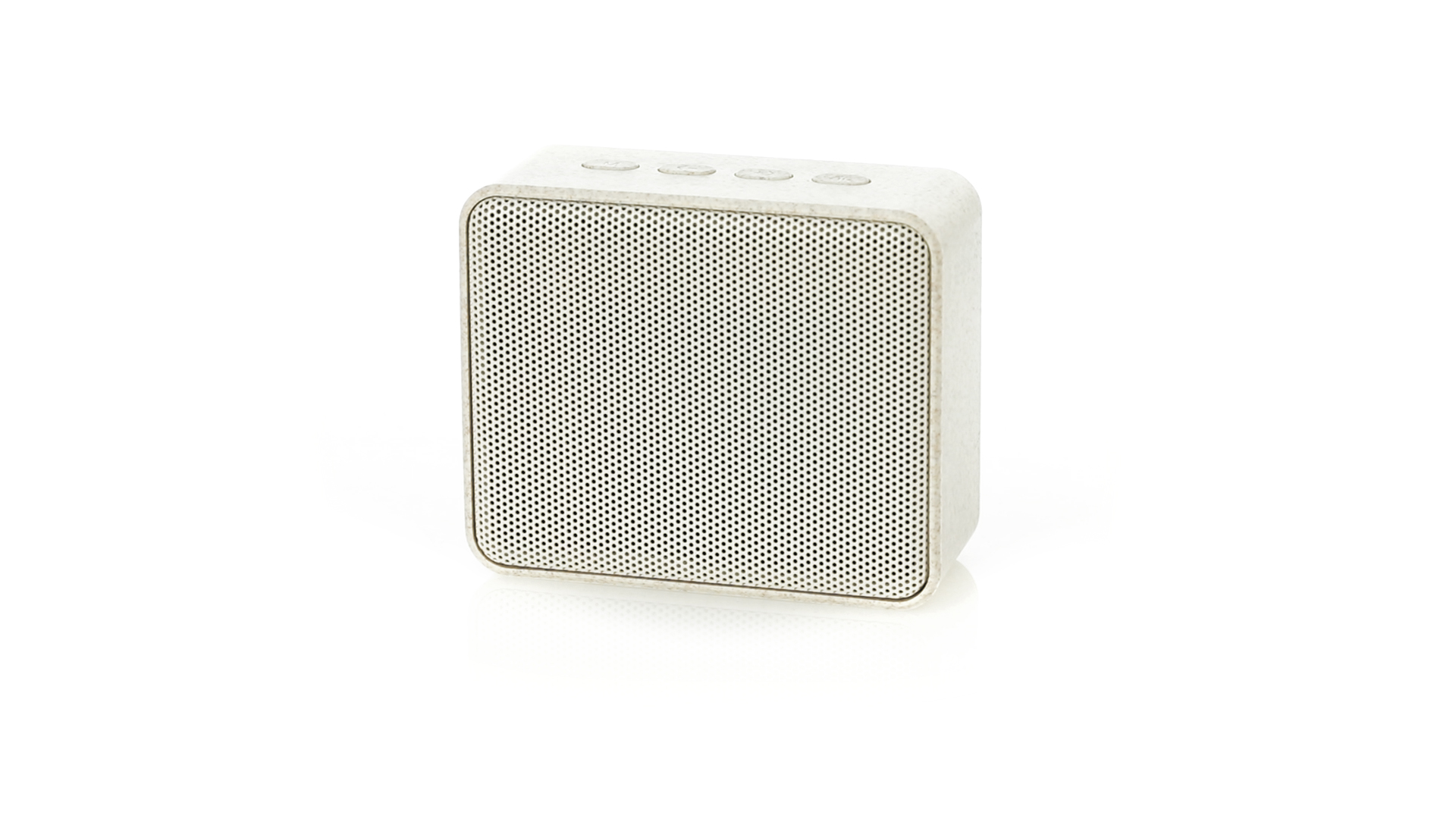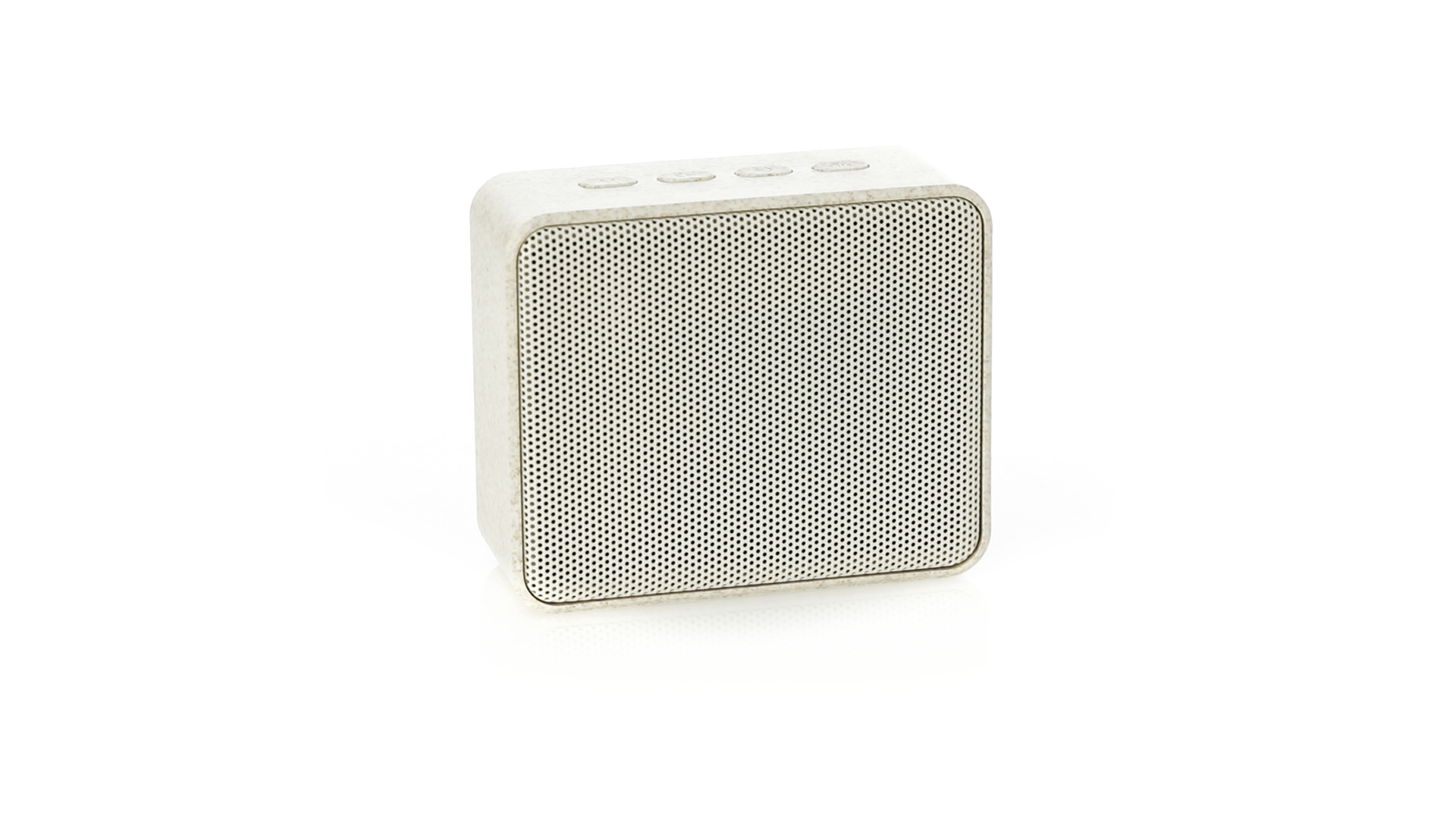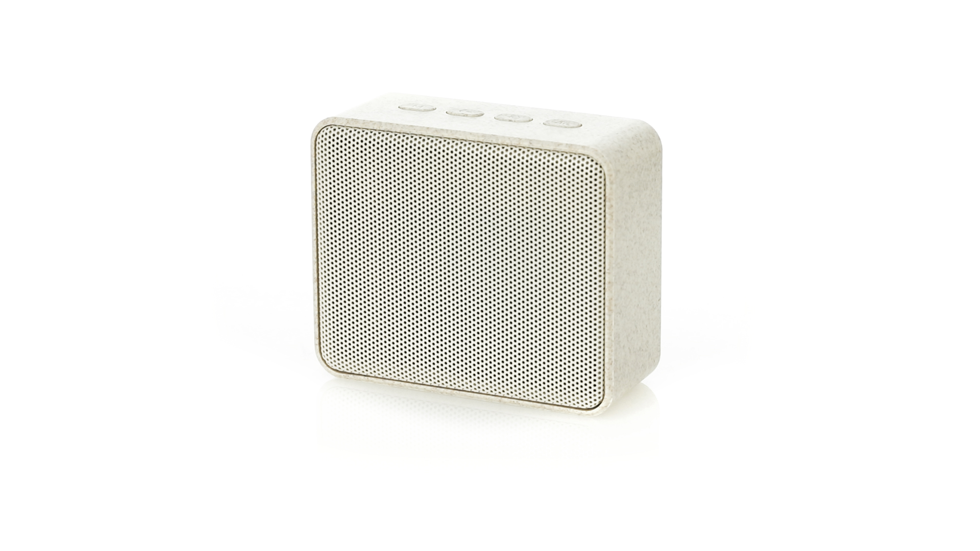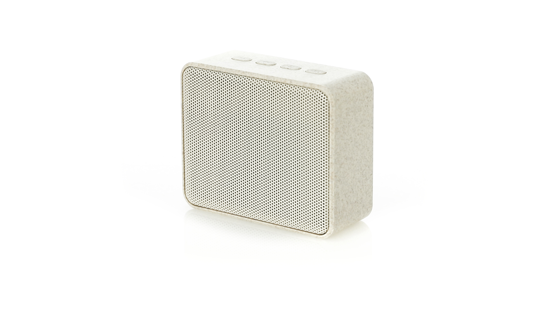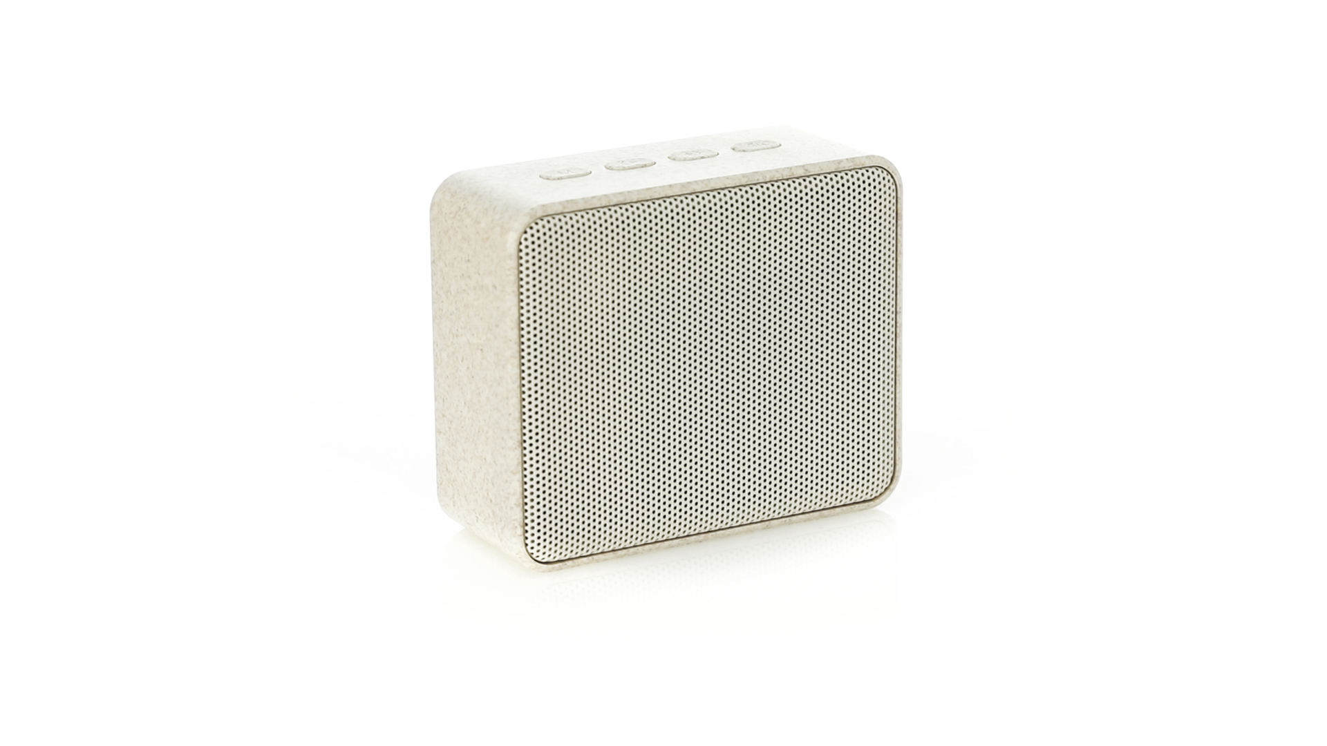 Naturlinie, Bluetooth® 5.0-Dockinglautsprecher. Schale aus Weizenstroh, um die Verwendung natürlicher Rohstoffe zu fördern und Schadstoffemissionen zu reduzieren, mit 3 W Schalleistung, mit USB-Player. Kompatibel mit iOS und Android, mit einem Mikro-USB-Ladekabel und in einer individuellen Öko-Design-Box. Mit rutschfesten Gummis an der Unterseite.
