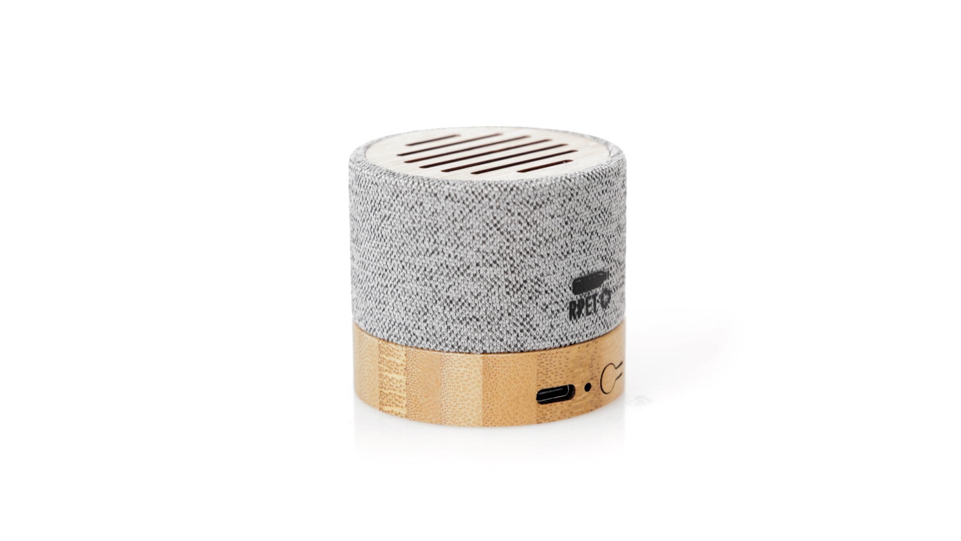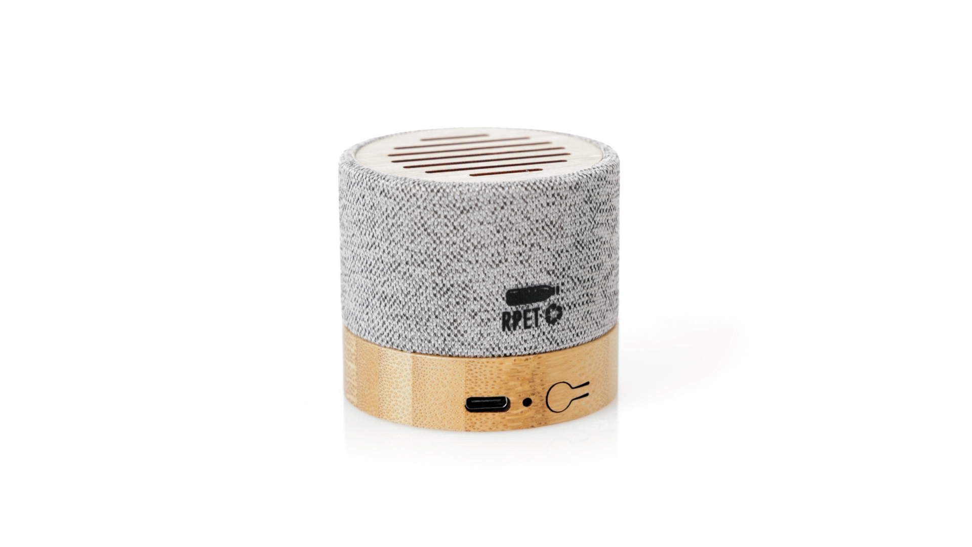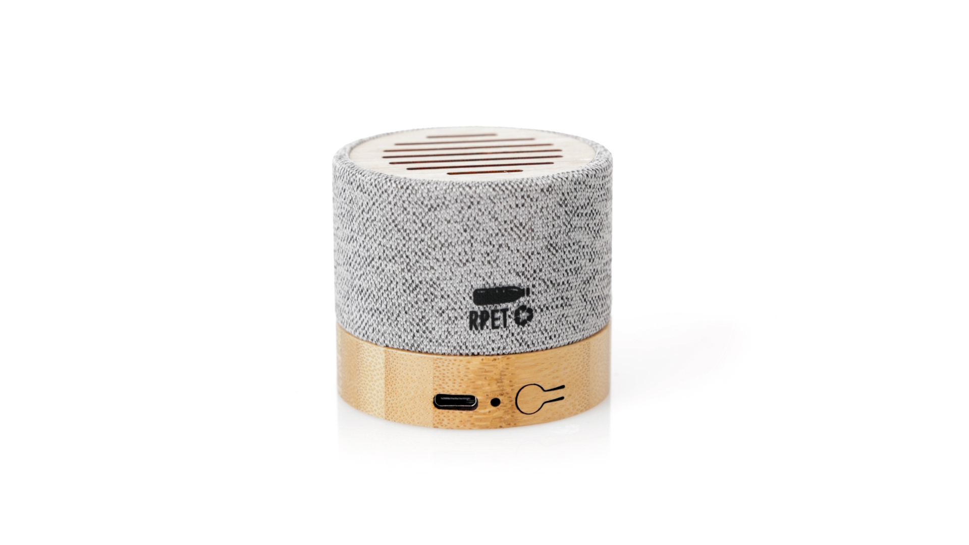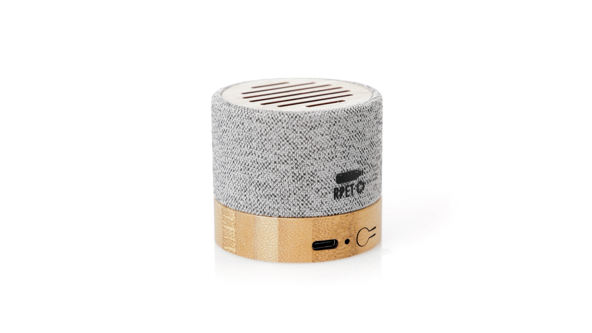 Kompakter Bluetooth®-Lautsprecher im Nature-Line-Design. Gehäuse aus Bambus und RPET-Material, hergestellt aus recyceltem Kunststoff, um die Wiederverwendung von Kunststoffabfällen zu fördern und zur Nachhaltigkeit des Planeten beizutragen. 3 W Leistung, 300 mAh Akku und Bluetooth® 5.0-Verbindung. Inklusive Typ-C-Ladekabel und Bedienungsanleitung in Englisch und Spanisch. Mit RPET-Logo und präsentiert in einer individuellen Kraft-Designbox.