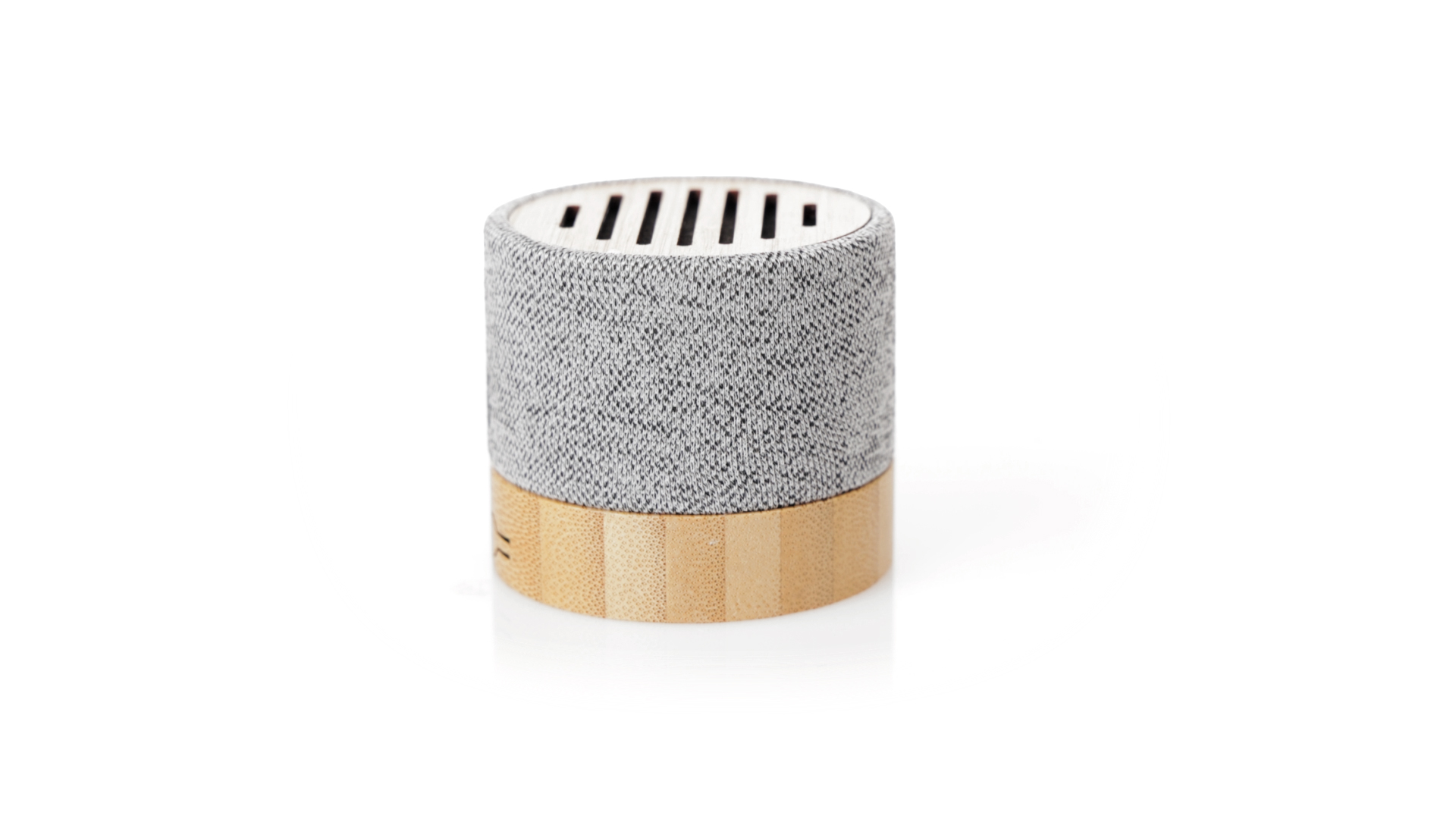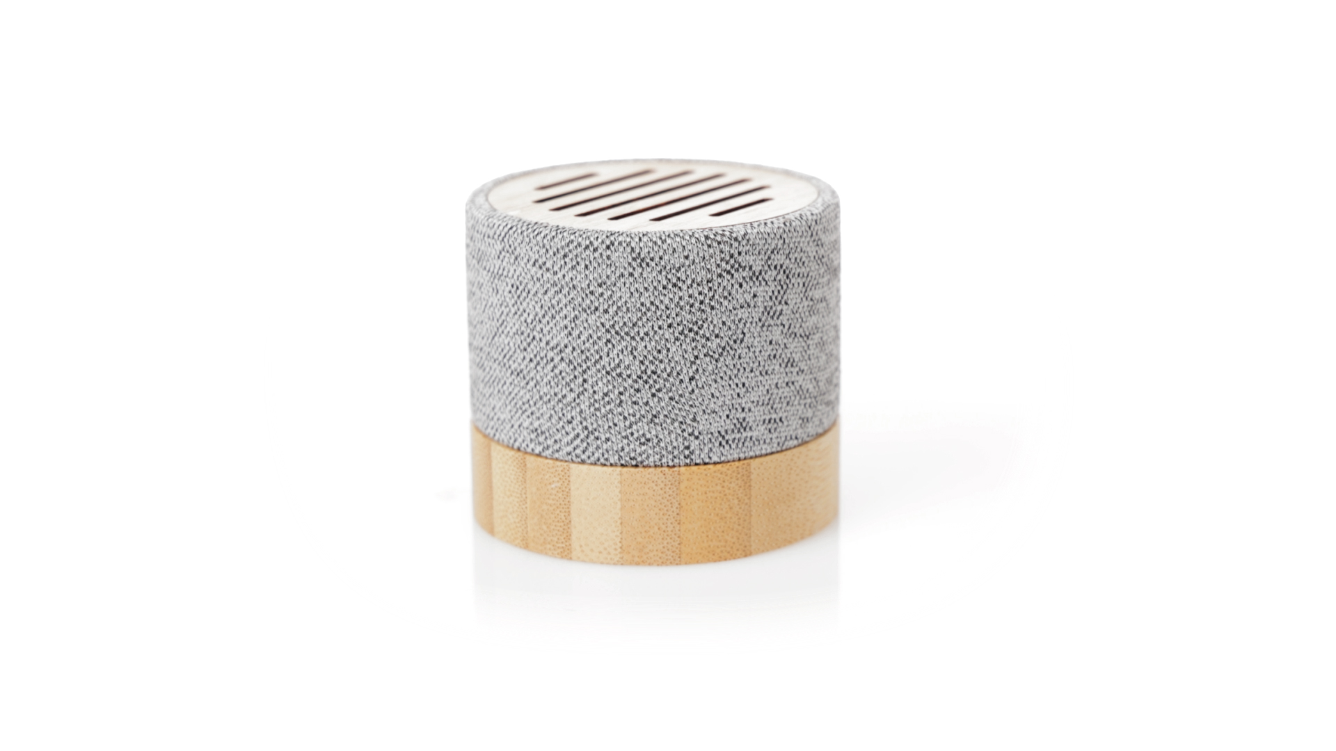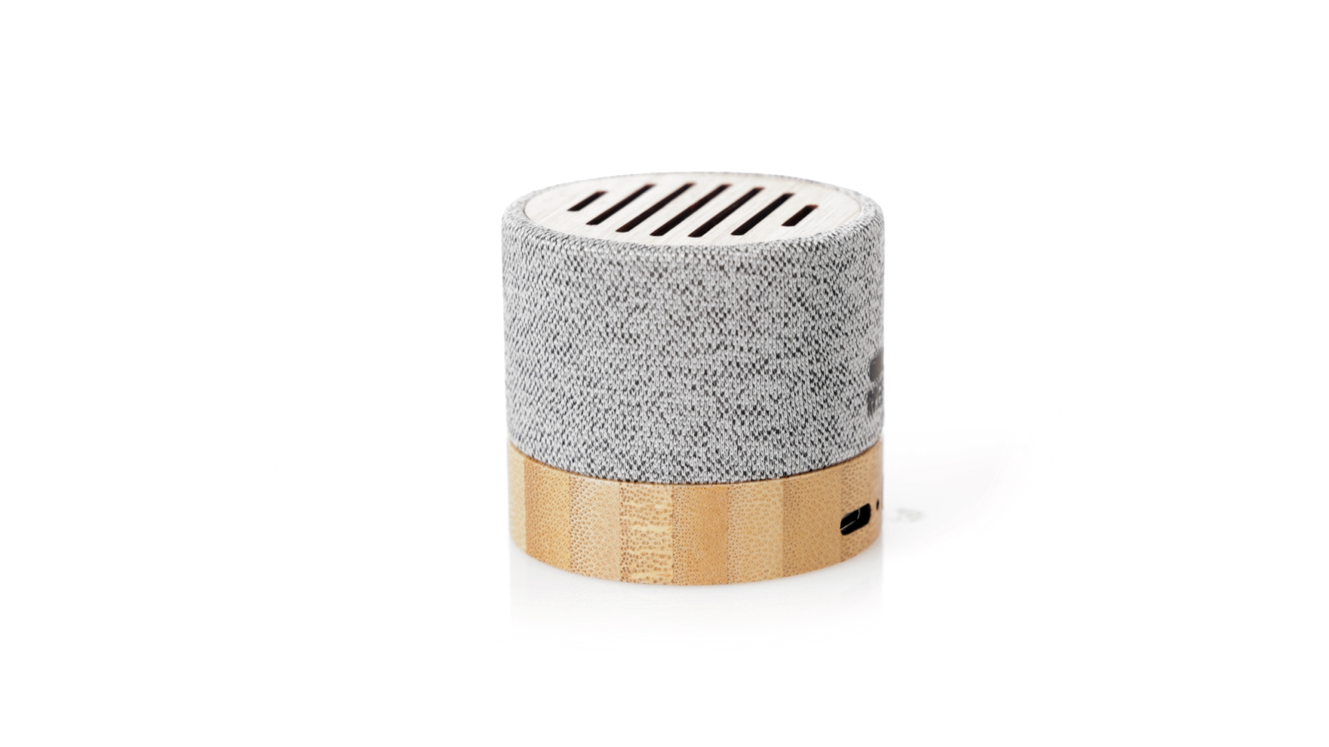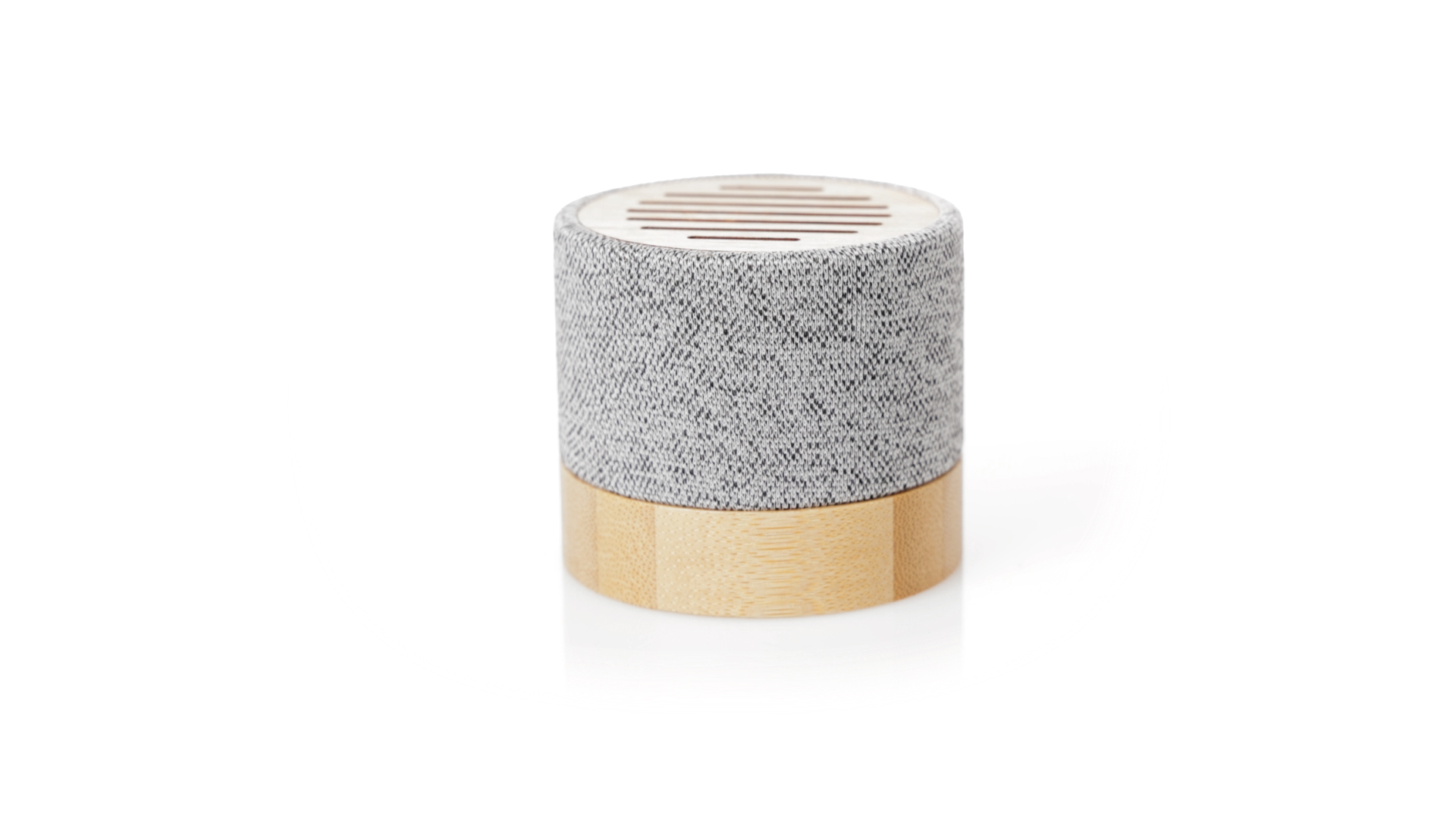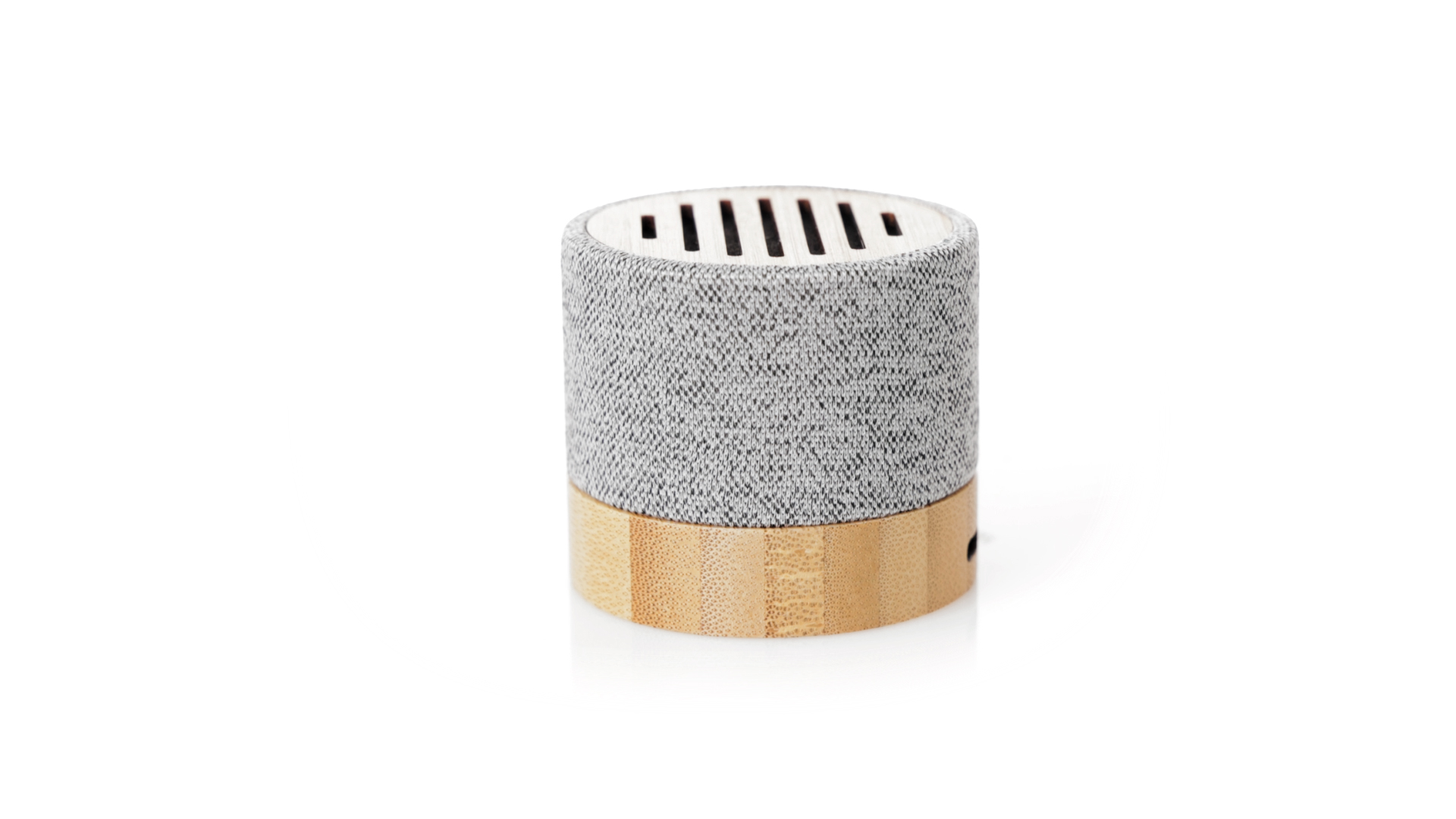 Kompakter Bluetooth®-Lautsprecher im Nature-Line-Design. Gehäuse aus Bambus und RPET-Material, hergestellt aus recyceltem Kunststoff, um die Wiederverwendung von Kunststoffabfällen zu fördern und zur Nachhaltigkeit des Planeten beizutragen. 3 W Leistung, 300 mAh Akku und Bluetooth® 5.0-Verbindung. Inklusive Typ-C-Ladekabel und Bedienungsanleitung in Englisch und Spanisch. Mit RPET-Logo und präsentiert in einer individuellen Kraft-Designbox.