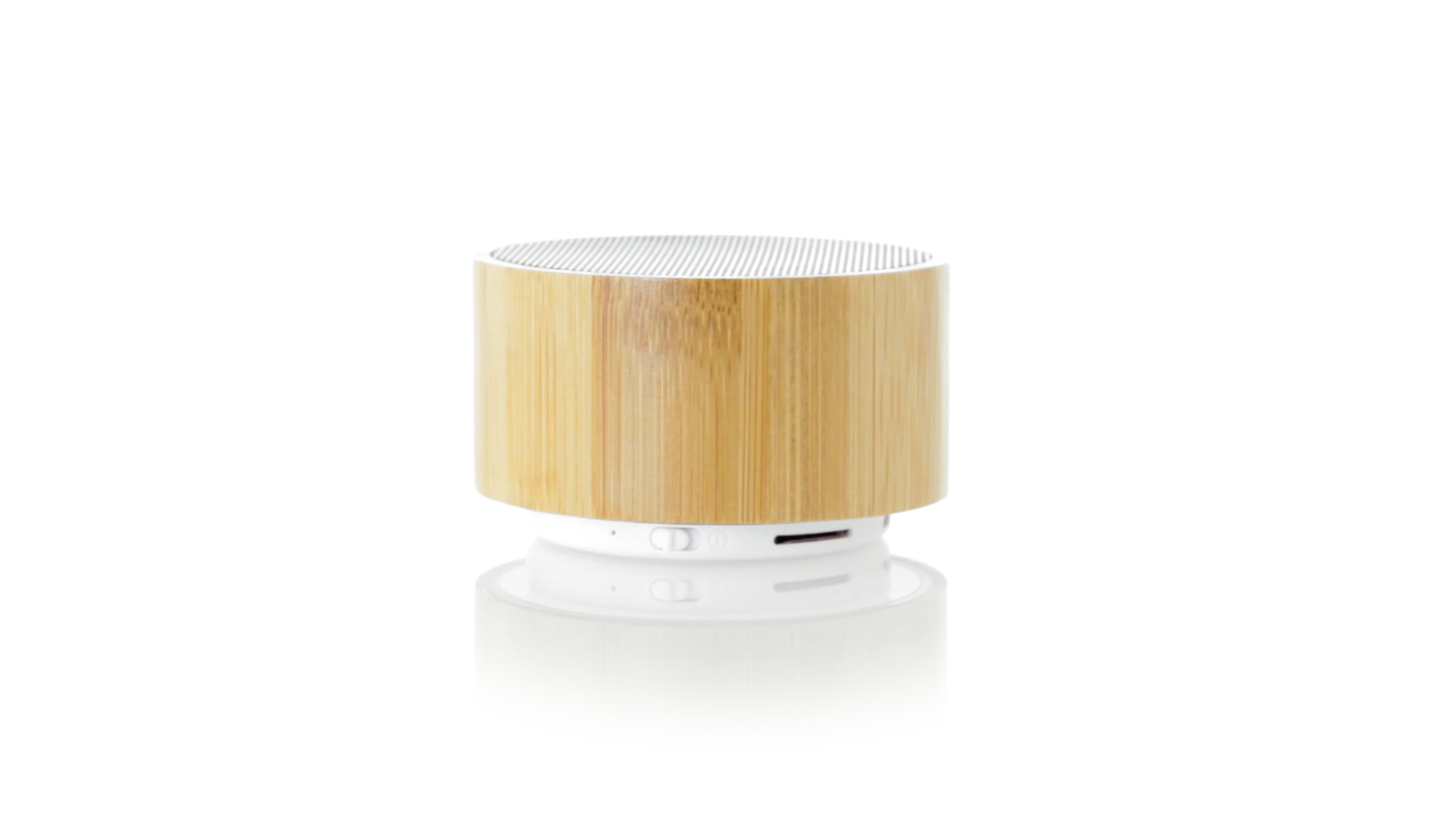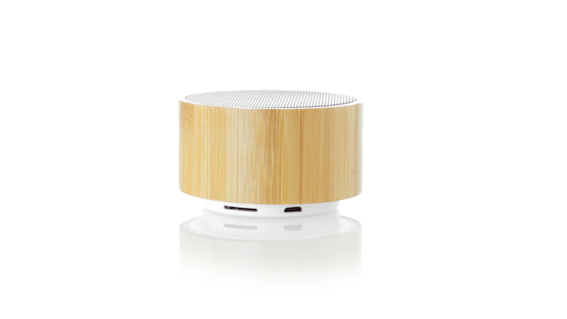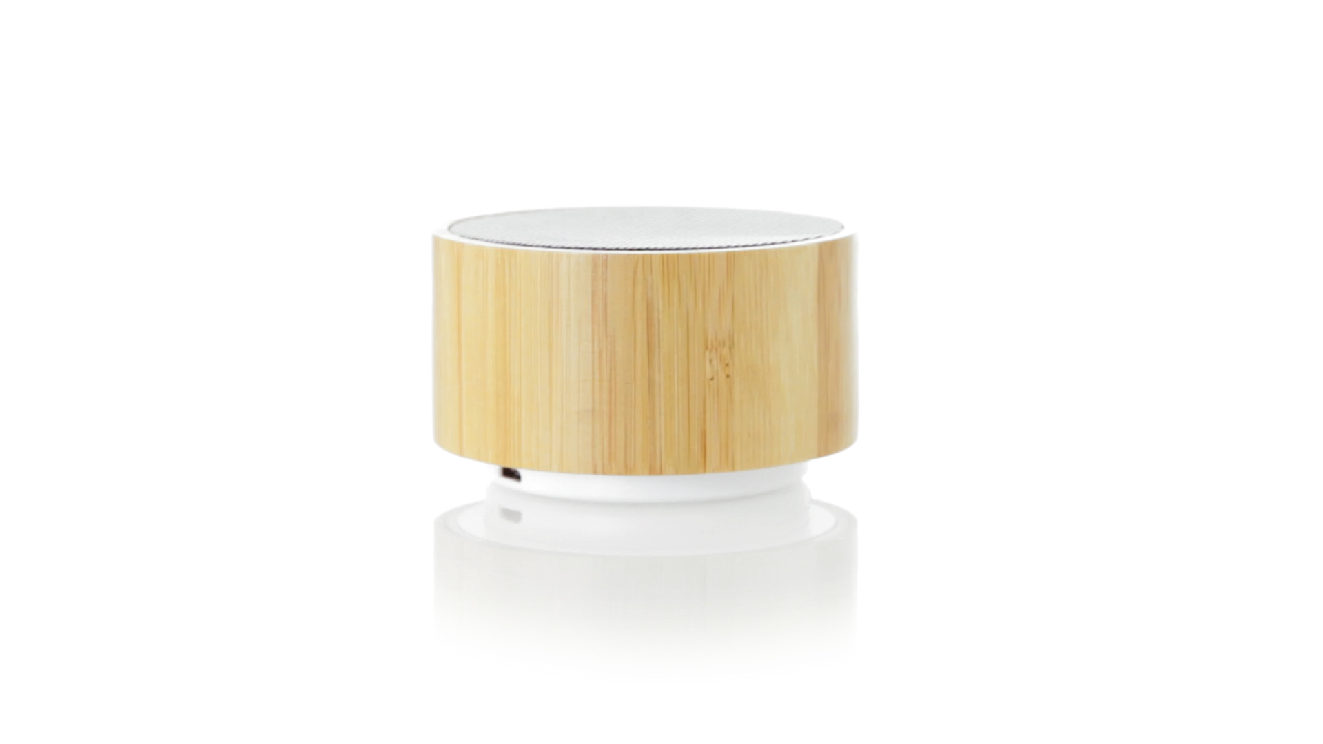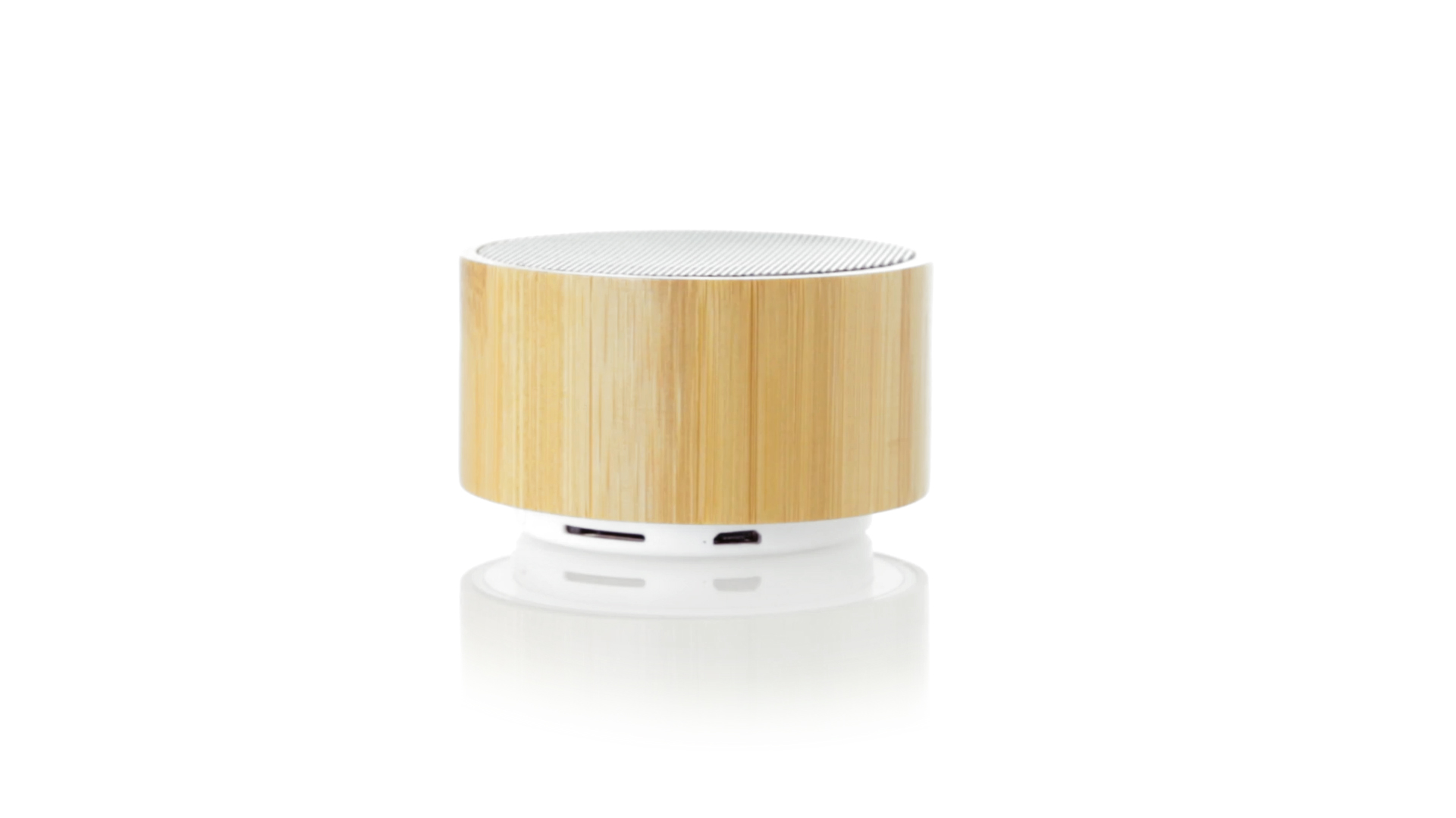 Kompakter Bluetooth®-Lautsprecher aus Bambus. Bietet 3 W Leistung, Freisprechfunktion und FM-Radio. Slot für Micro-SD-Karte. Aufladbar über USB-Kabel (inklusive). Mit rutschfestem Einsatz an der Unterseite. Präsentiert in einer attraktiven Designbox.