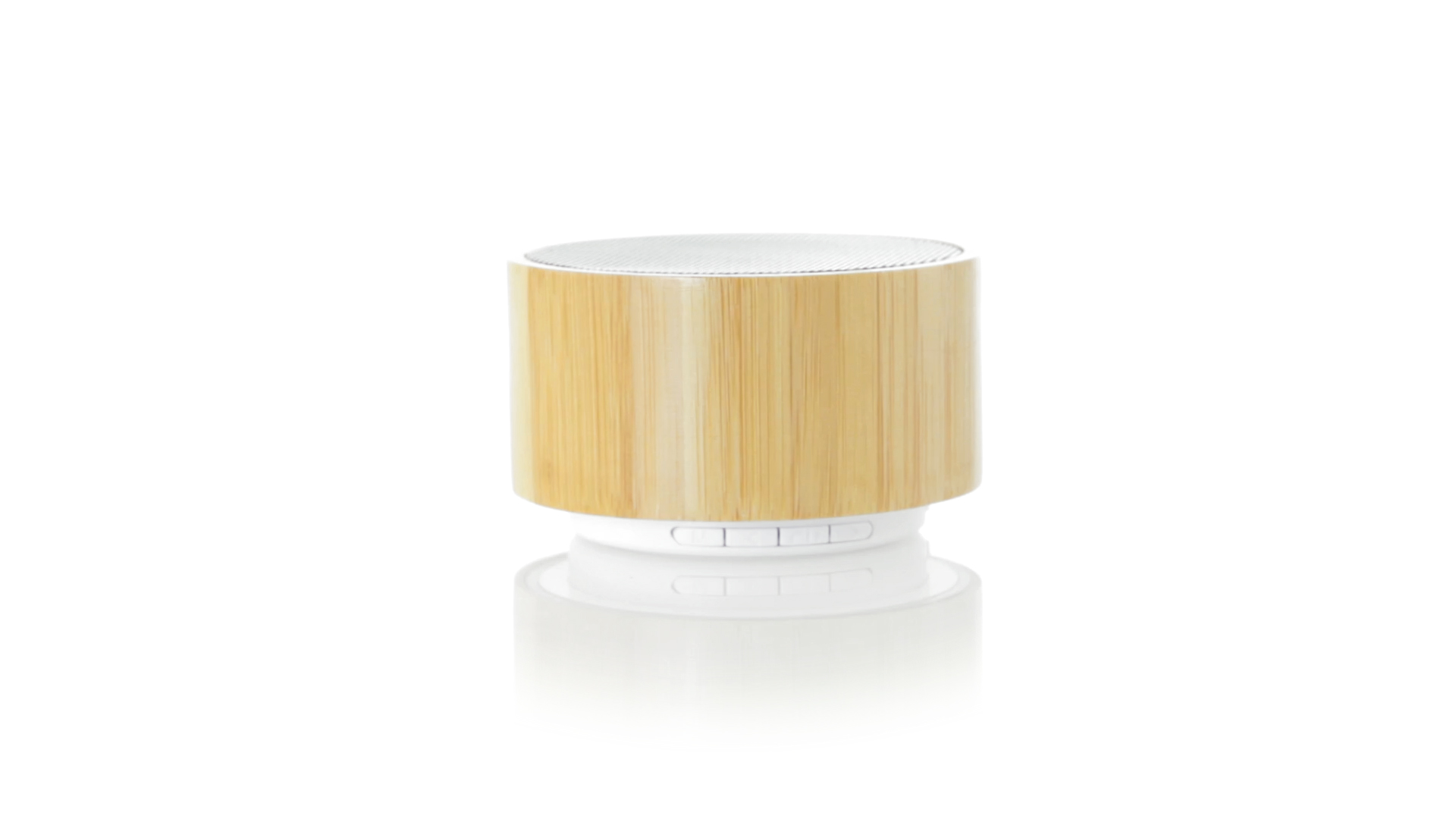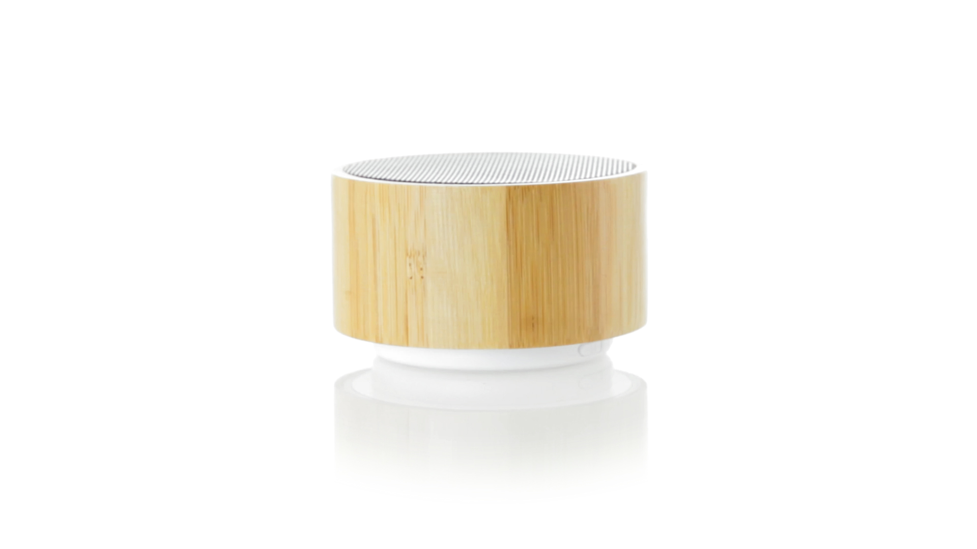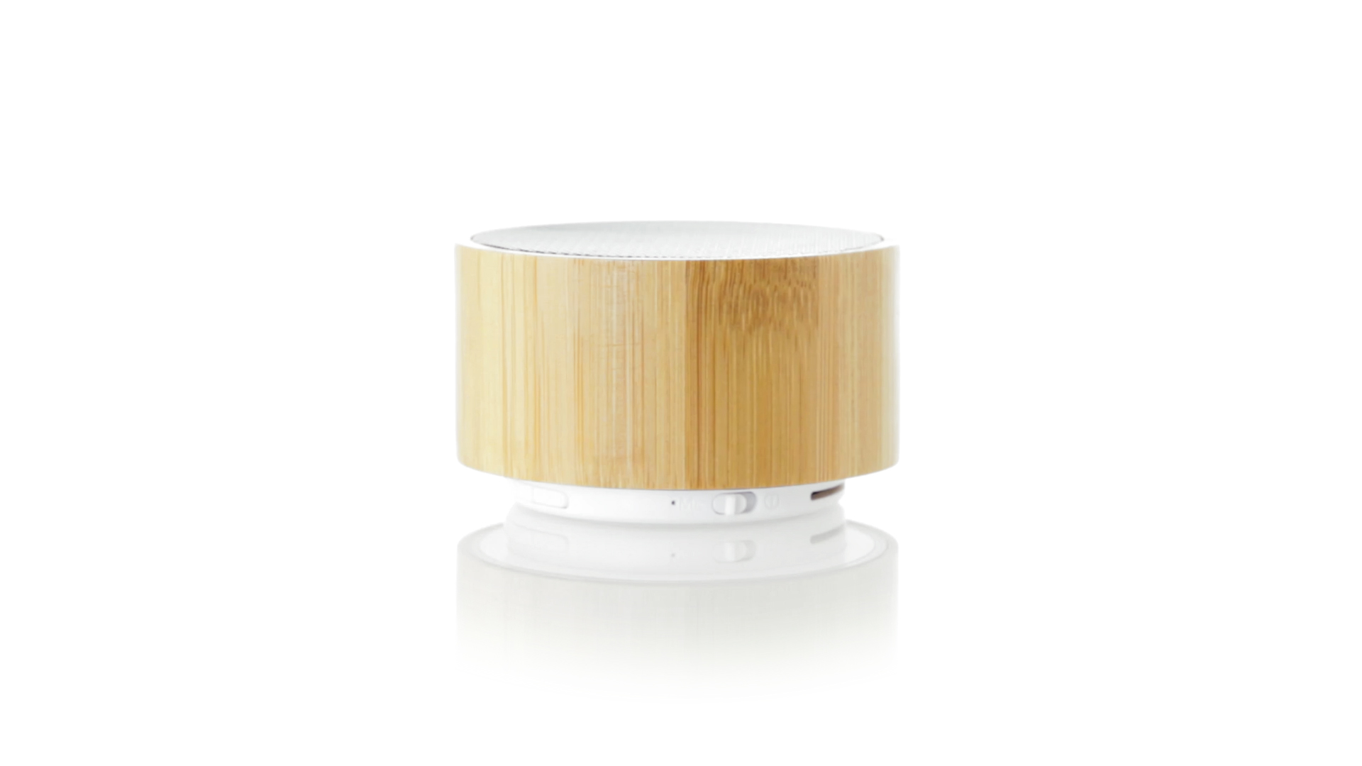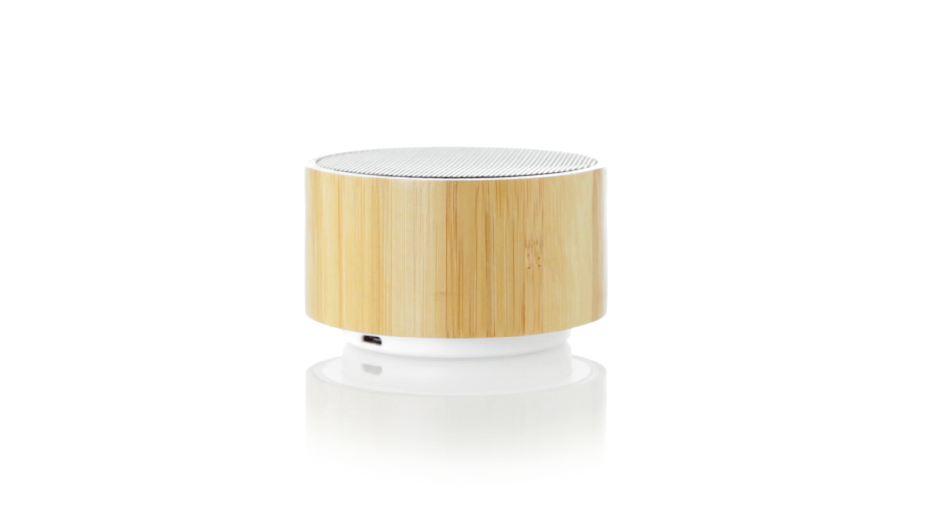 Kompakter Bluetooth®-Lautsprecher aus Bambus. Bietet 3 W Leistung, Freisprechfunktion und FM-Radio. Slot für Micro-SD-Karte. Aufladbar über USB-Kabel (inklusive). Mit rutschfestem Einsatz an der Unterseite. Präsentiert in einer attraktiven Designbox.