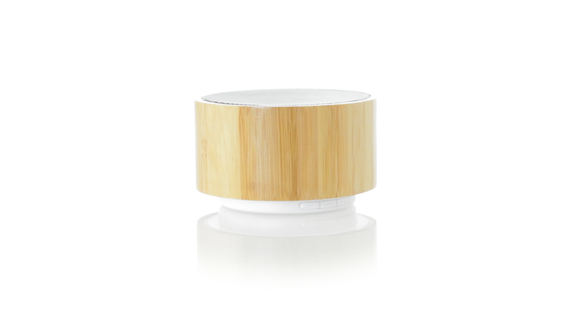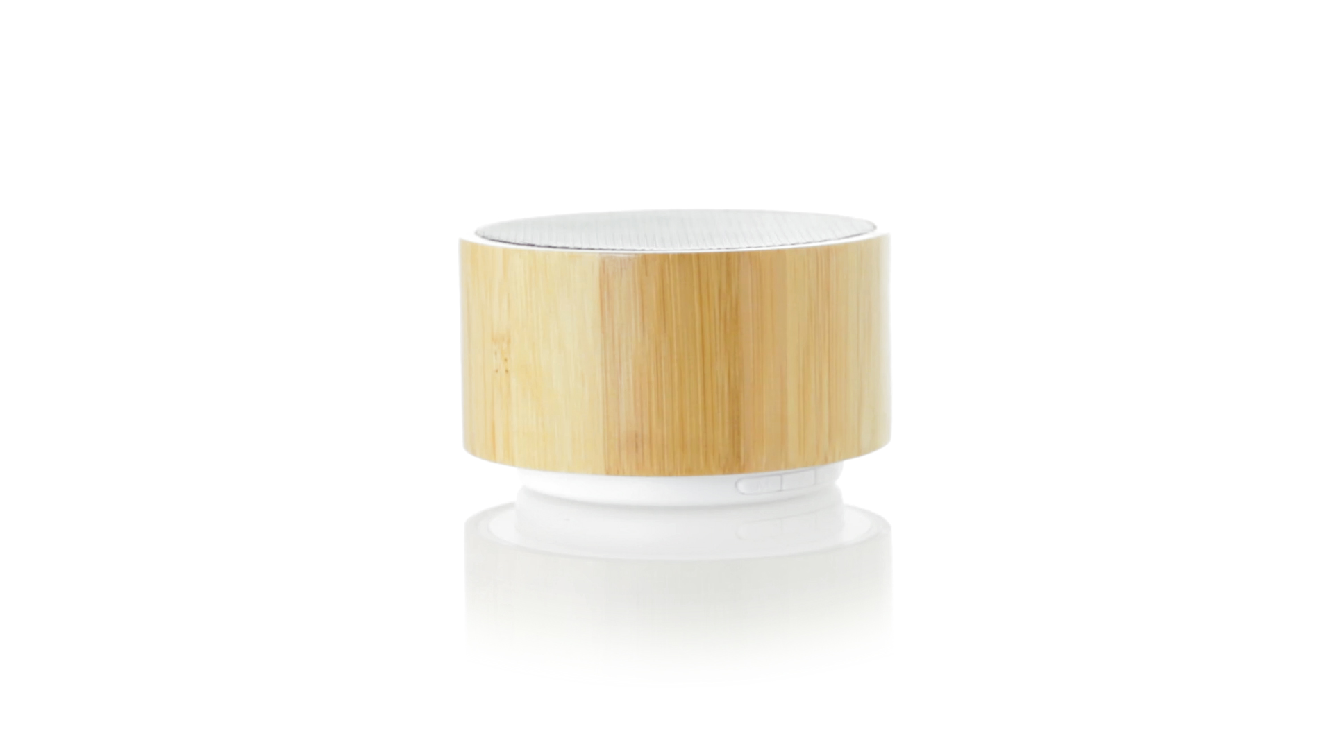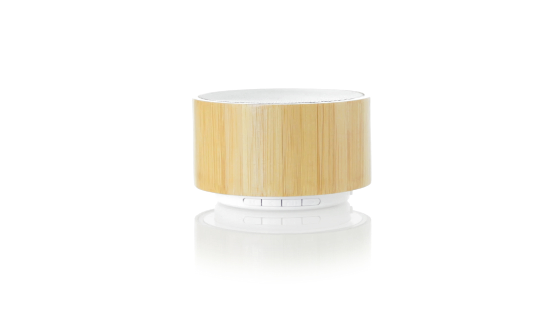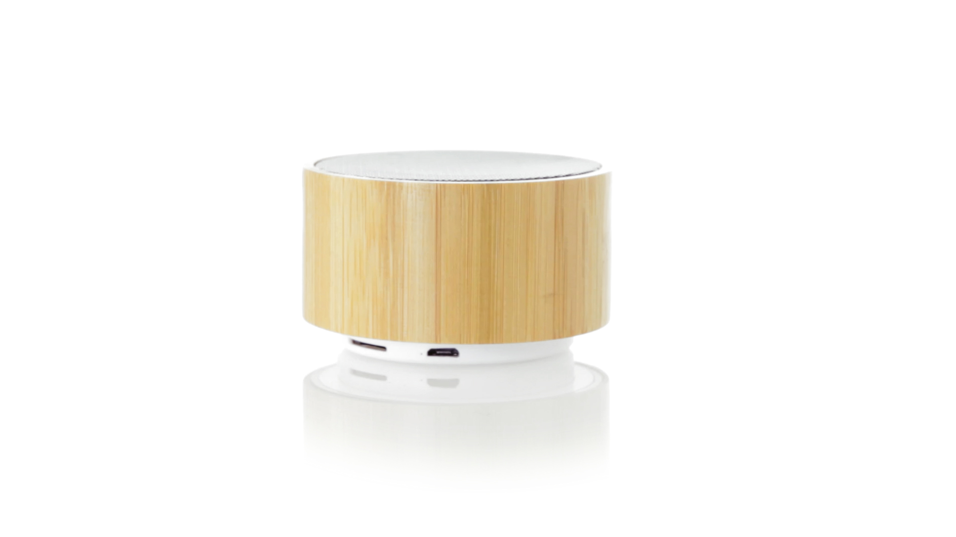 Kompakter Bluetooth®-Lautsprecher aus Bambus. Bietet 3 W Leistung, Freisprechfunktion und FM-Radio. Slot für Micro-SD-Karte. Aufladbar über USB-Kabel (inklusive). Mit rutschfestem Einsatz an der Unterseite. Präsentiert in einer attraktiven Designbox.