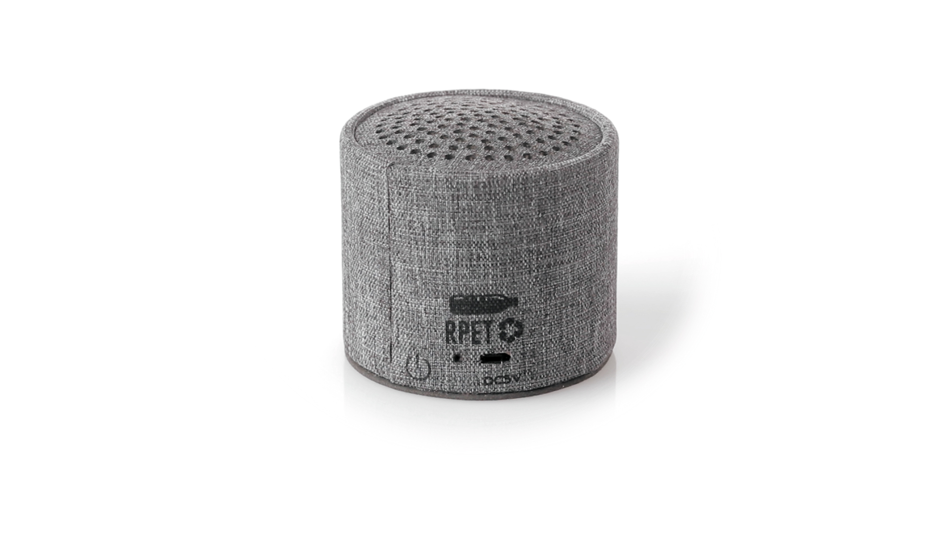 Kompakter Nature-Line-Lautsprecher mit Bluetooth® 5.0-Anschluss. Das Gehäuse besteht aus RPET-Polyester, das aus recyceltem Kunststoff hergestellt ist, um die Wiederverwendung von Kunststoffabfällen zu fördern und die Nachhaltigkeit unseres Planeten zu unterstützen.3 W Leistung, kompatibel mit iOS und Android. Inklusive Micro-USB-Ladekabel und rutschfestem Untergrund. Präsentiert in einer attraktiven Ökodesign-Box. Mit RPET-Lagbel auf dem Artikel.