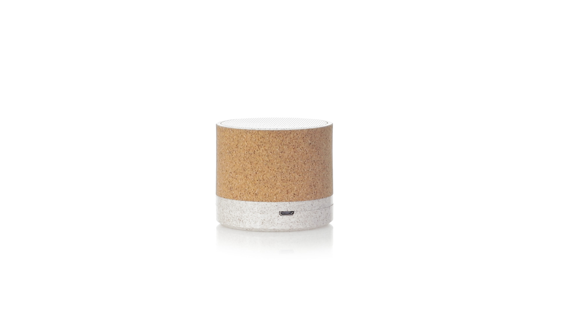 Kompaktlautsprecher mit Nature Line und Bluetooth 5.0-Anschluss. Gehäuse aus einer Kombination von Naturkork und Weizenrohrmaterialien, um die Verwendung natürlicher Rohstoffe zu fördern und umweltschädliche Emissionen zu reduzieren. Es bietet eine Leistung von 3 W, inklusive Micro-USB-Kabel und rutschfestem Standfuss. Präsentiert in einer attraktiven Box im Öko-Design.