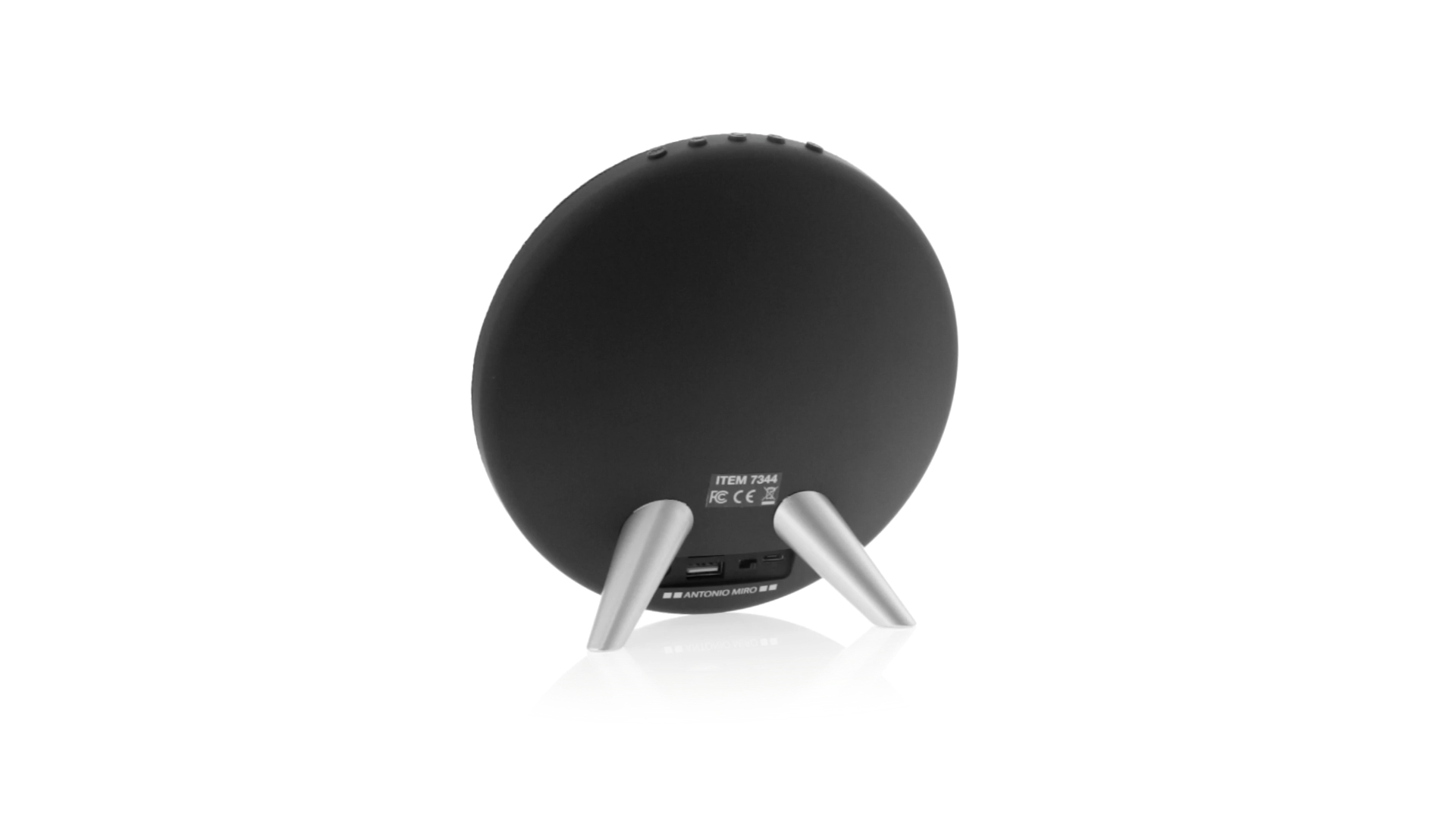 Bluetooth®-Lautsprecher in eleganter schwarzer Ausführung mit Kontrastdetails in Silber. Bietet 3 W Leistung, FM-Radiofunktion, Freisprechfunktion, Slot für Micro SD-Karten von bis zu 32 GB Speicherkapazität und 3,5-mm-Buchse für Audioeingang. Mit rutschfesten Gummi-Details an der Unterseite. Mini-USB-Ladekabel sowie 3,5-mm-Klinkenkabel inklusive. Kompatibel mit iOS- und Android-Geräten. Präsentiert in einer attraktiven Designbox.