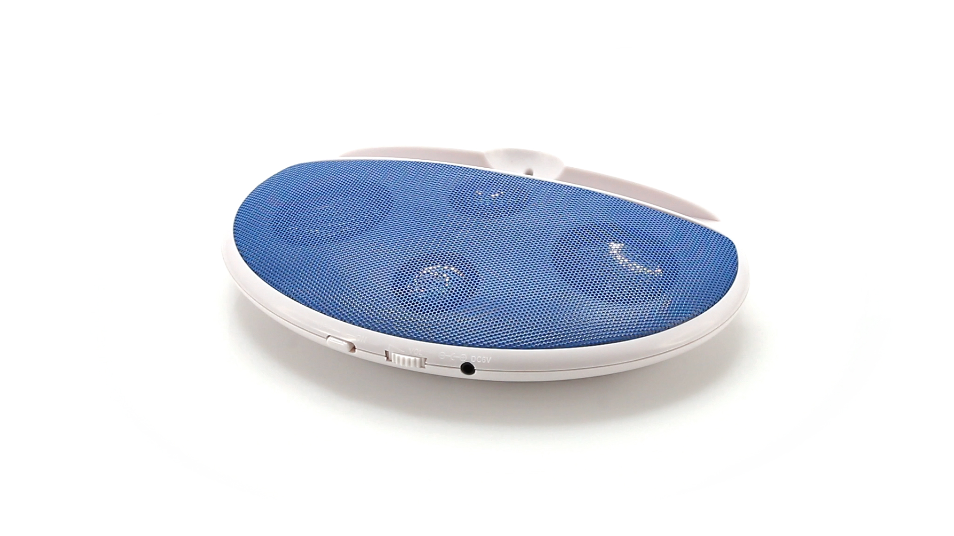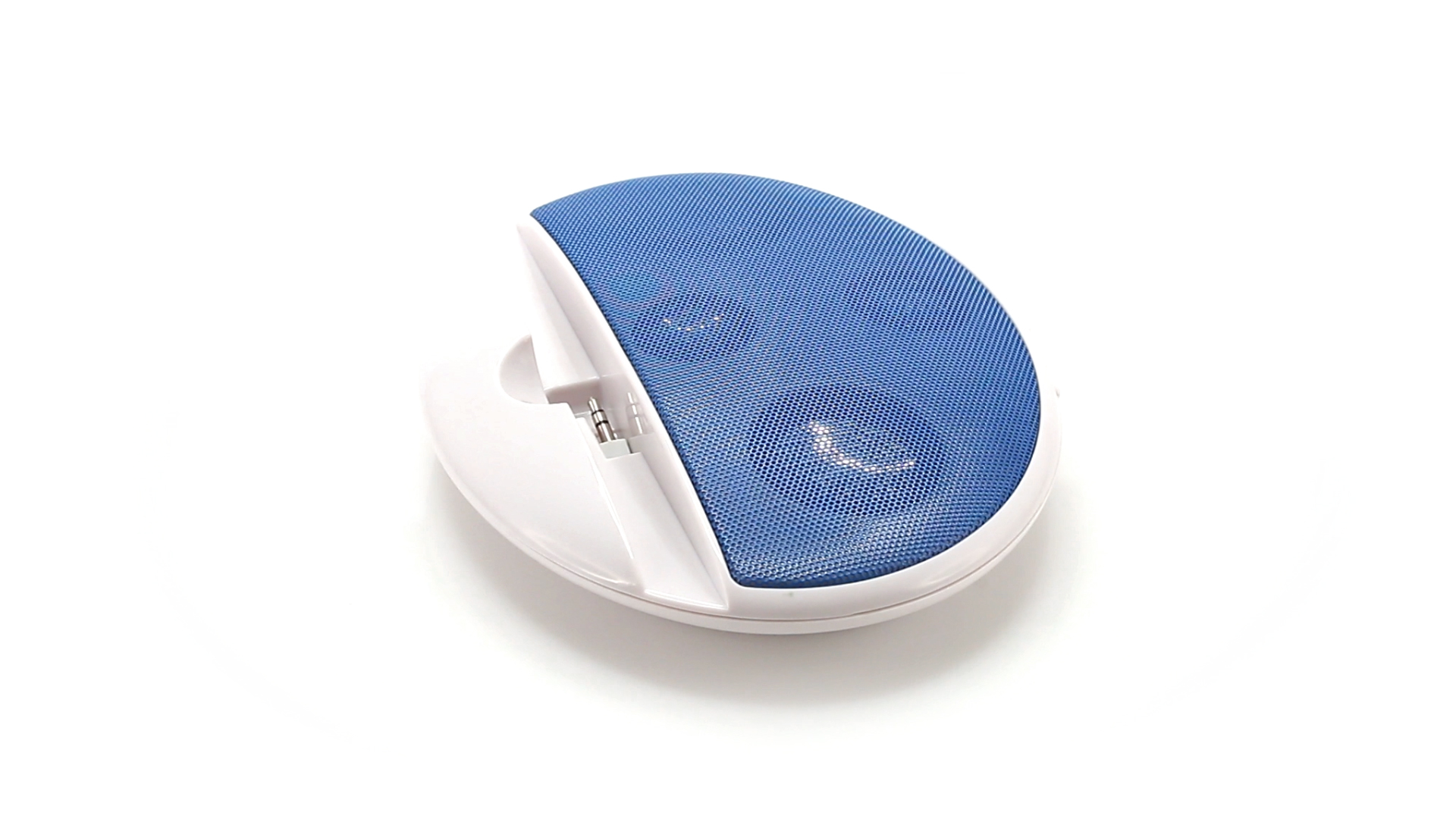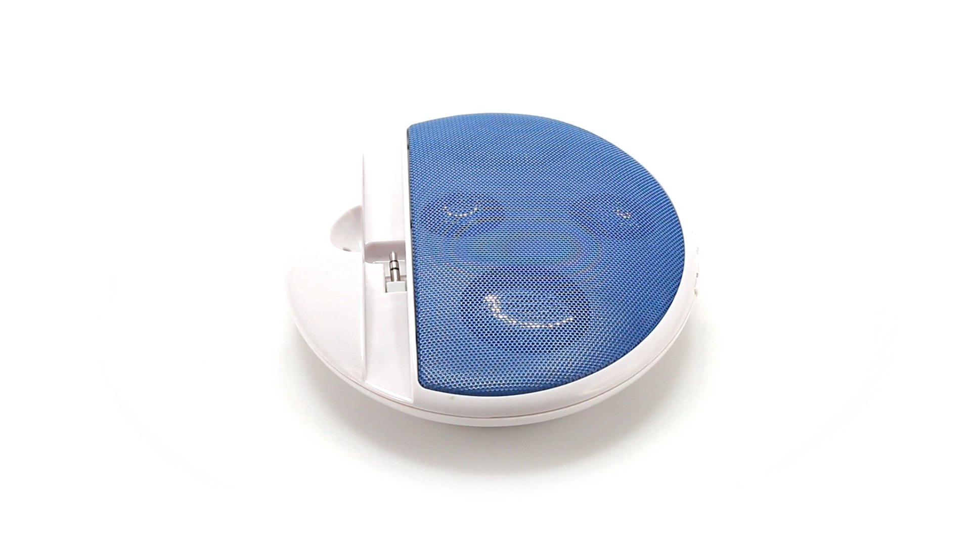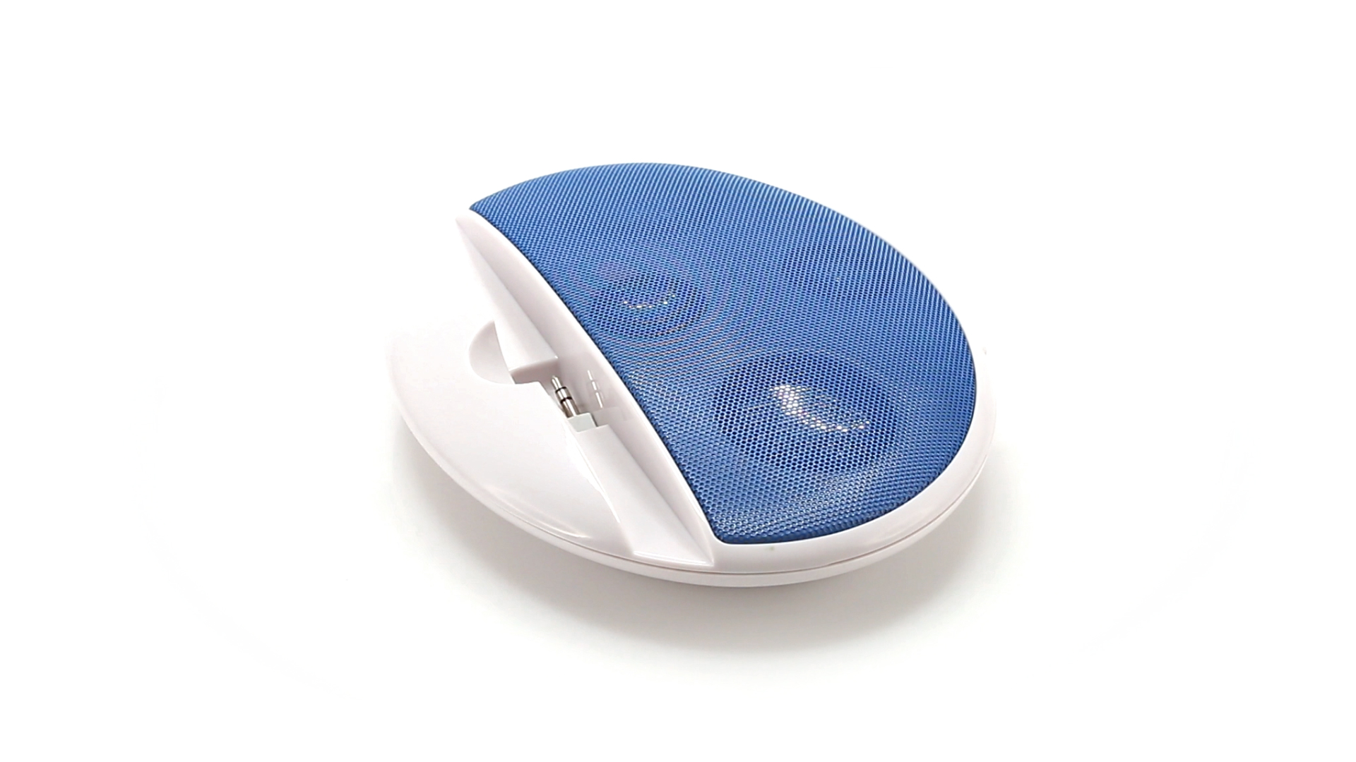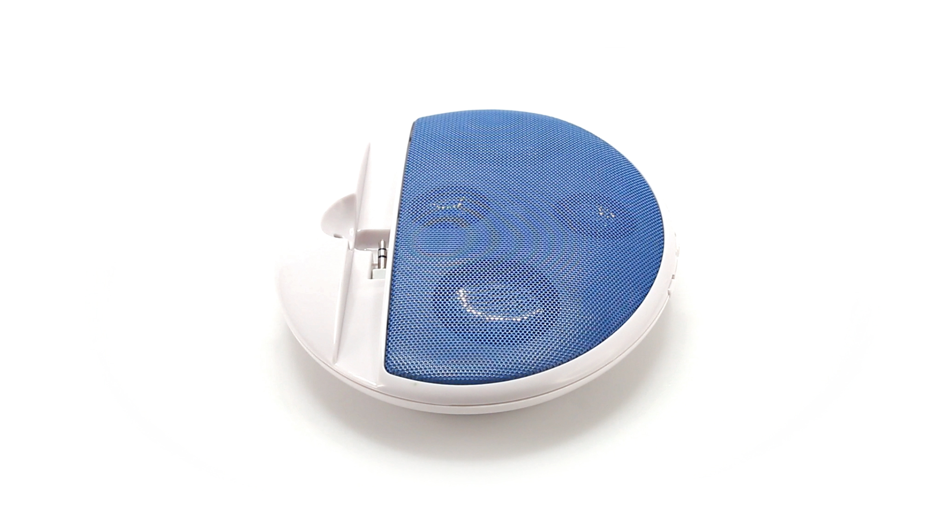 Kompakter Lautsprecher mit zweifarbigem Design. Auch als Ständer für Mobilltelefon nutzbar. Mit 2 W Leistung, Powerbutton, Lautstärkeregelung und 3,5-mm-Buchse. Batteriebetrieben - 4 x AAA nicht inklusive.