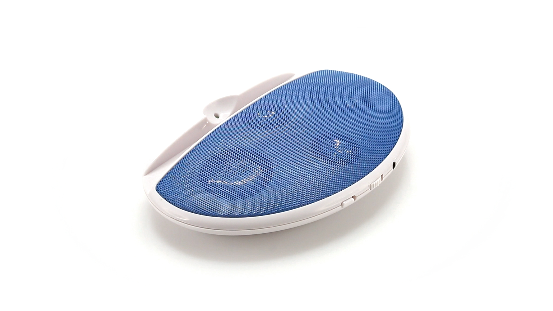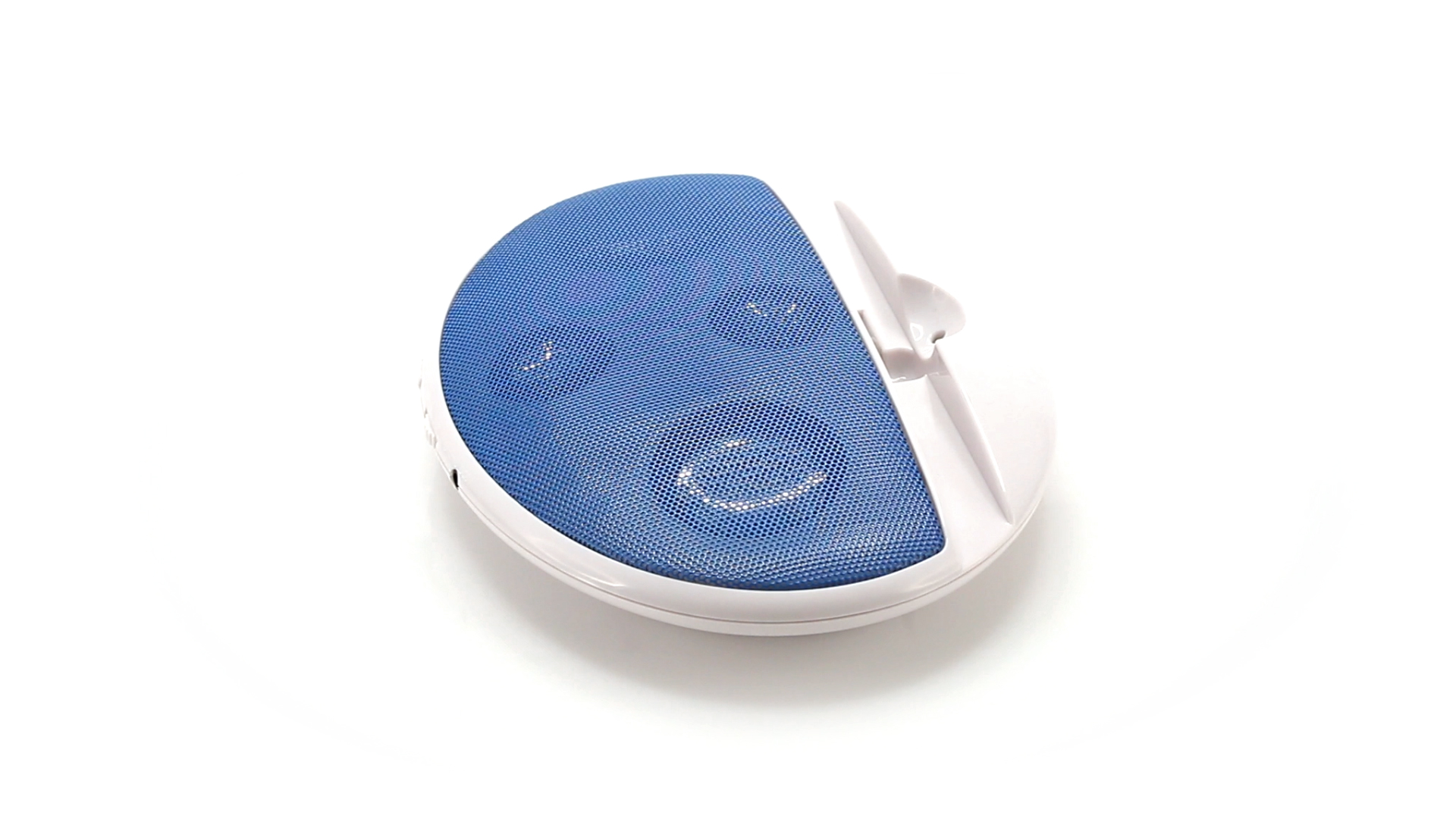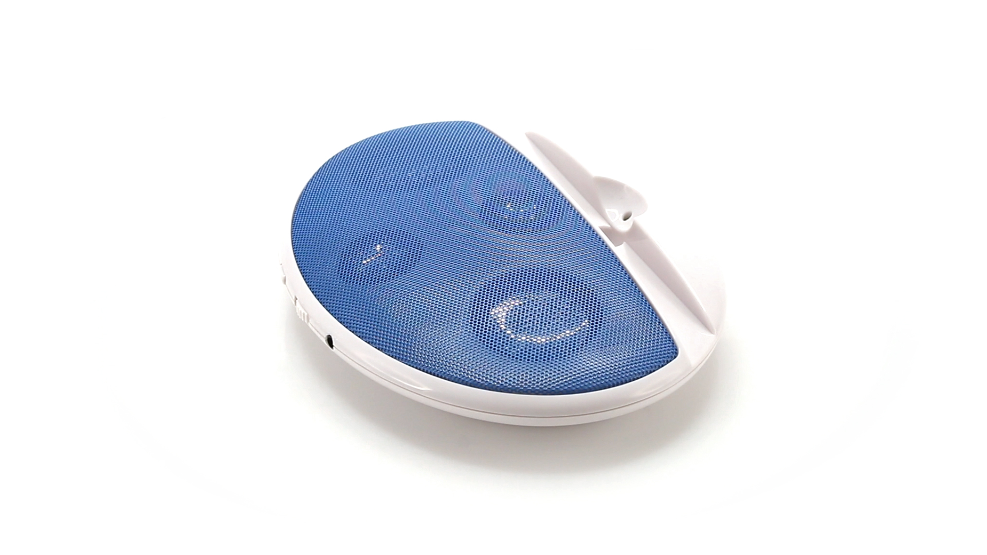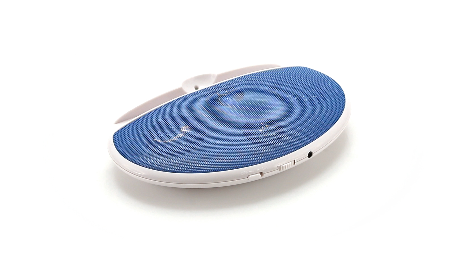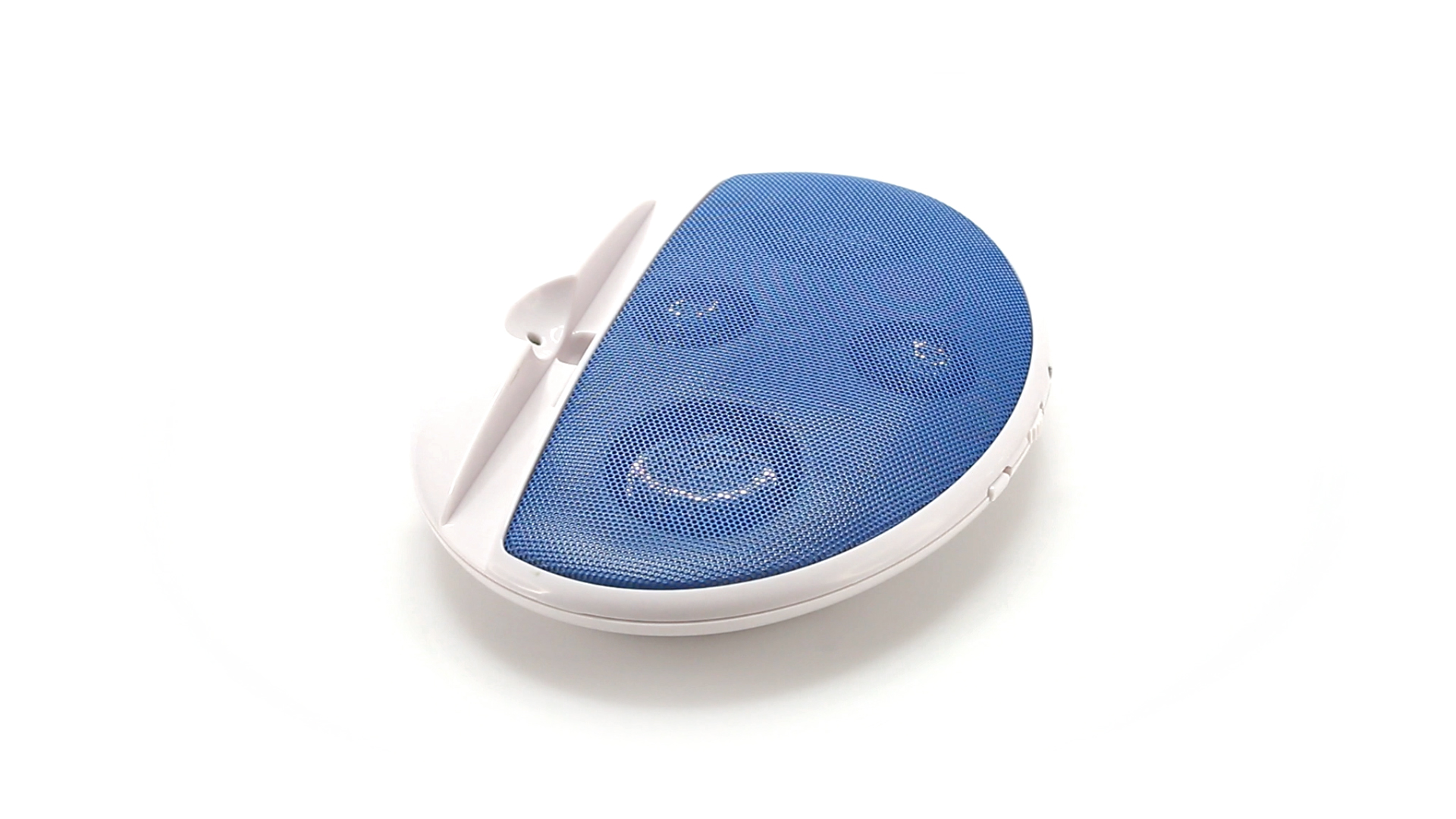 Kompakter Lautsprecher mit zweifarbigem Design. Auch als Ständer für Mobilltelefon nutzbar. Mit 2 W Leistung, Powerbutton, Lautstärkeregelung und 3,5-mm-Buchse. Batteriebetrieben - 4 x AAA nicht inklusive.