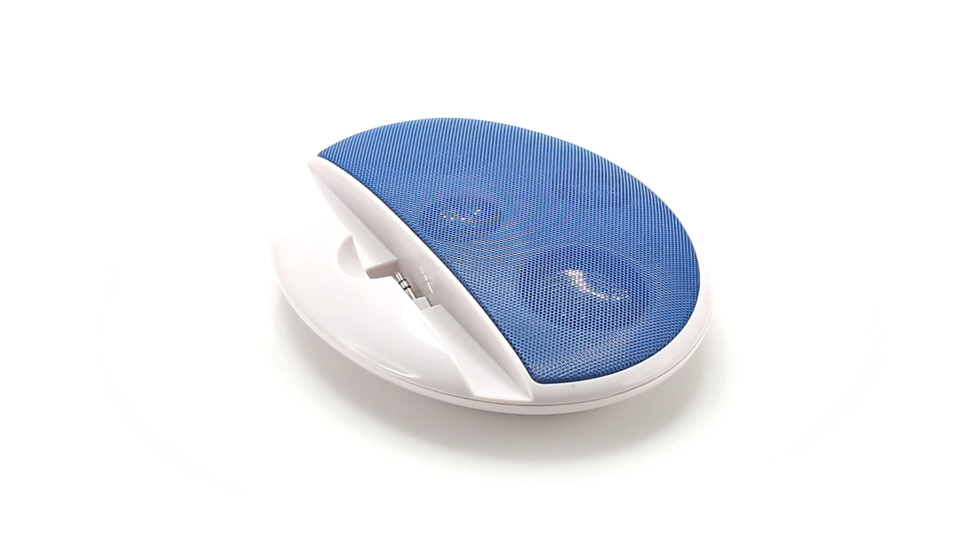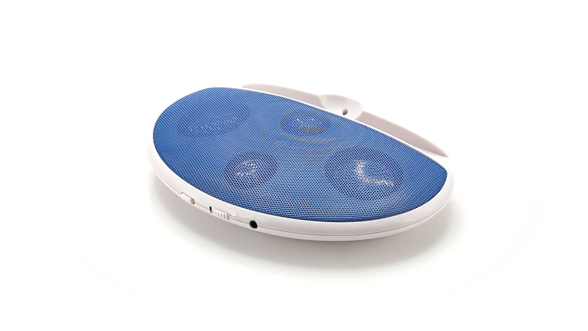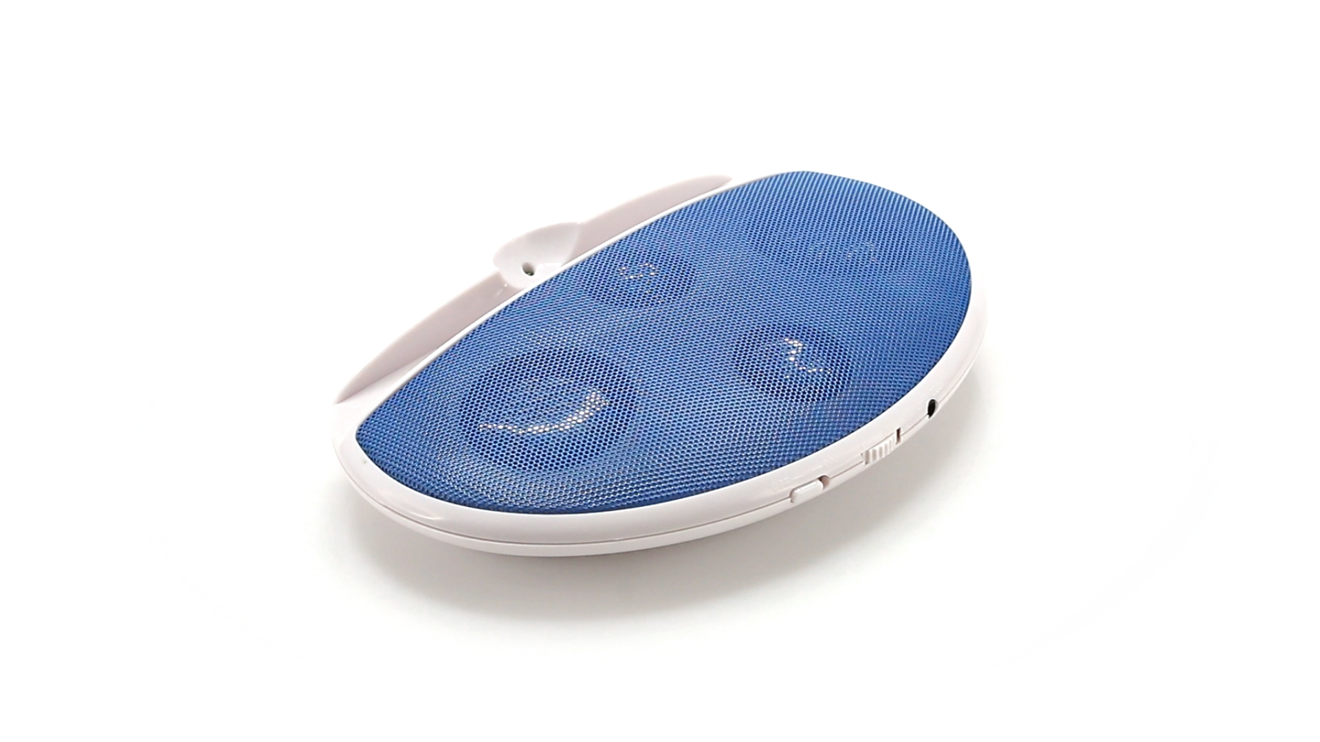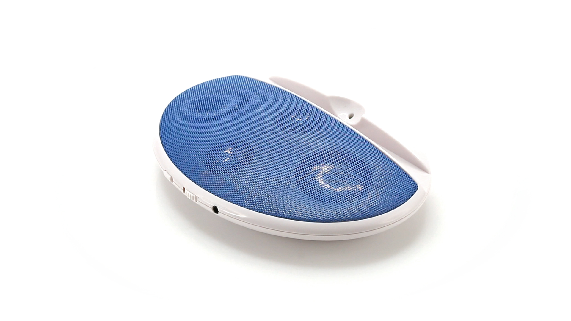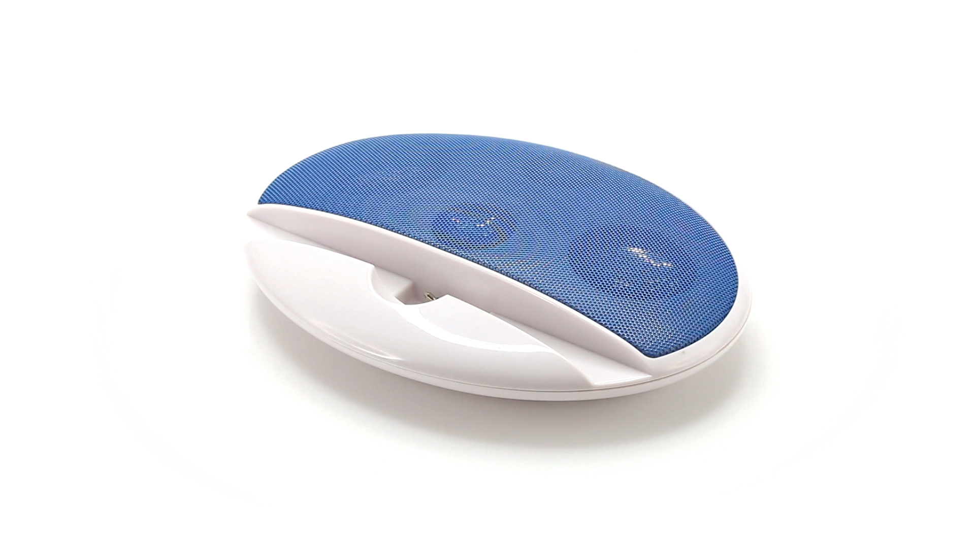 Kompakter Lautsprecher mit zweifarbigem Design. Auch als Ständer für Mobilltelefon nutzbar. Mit 2 W Leistung, Powerbutton, Lautstärkeregelung und 3,5-mm-Buchse. Batteriebetrieben - 4 x AAA nicht inklusive.