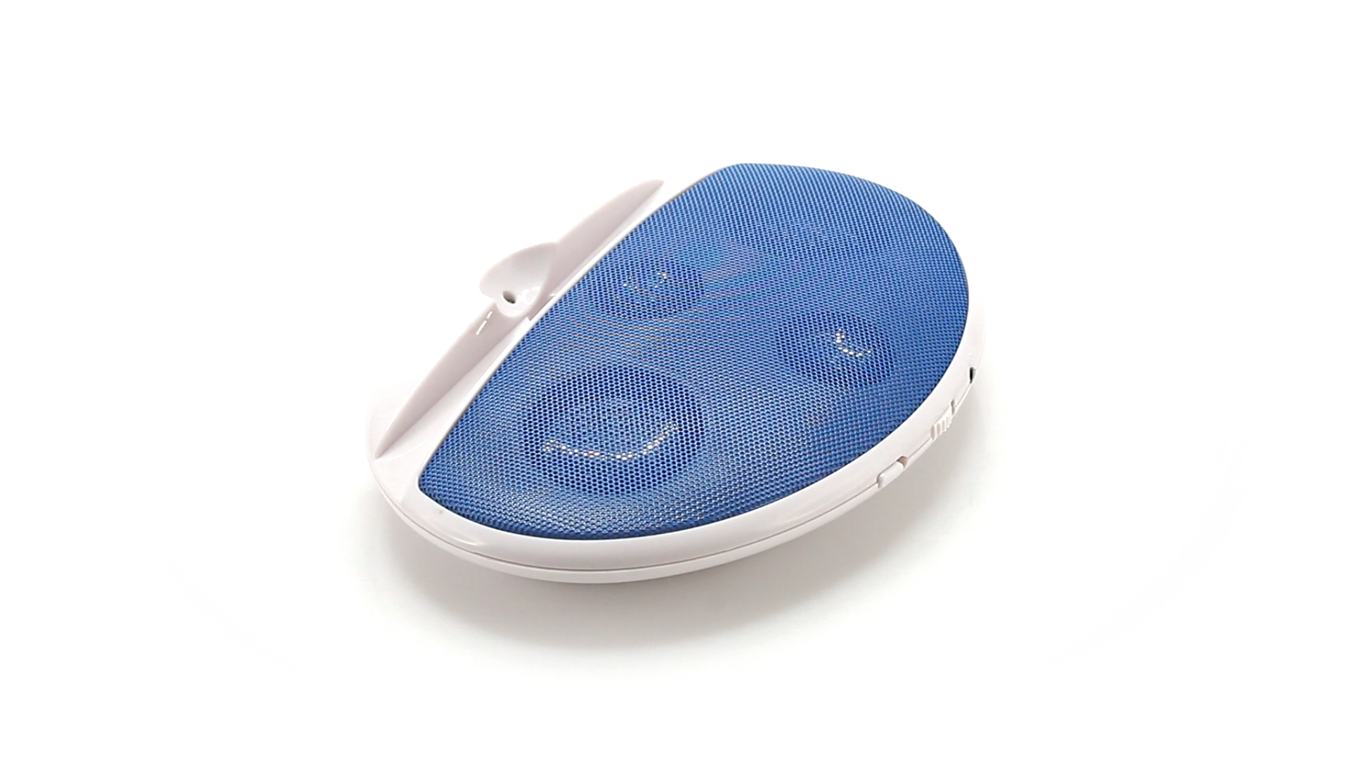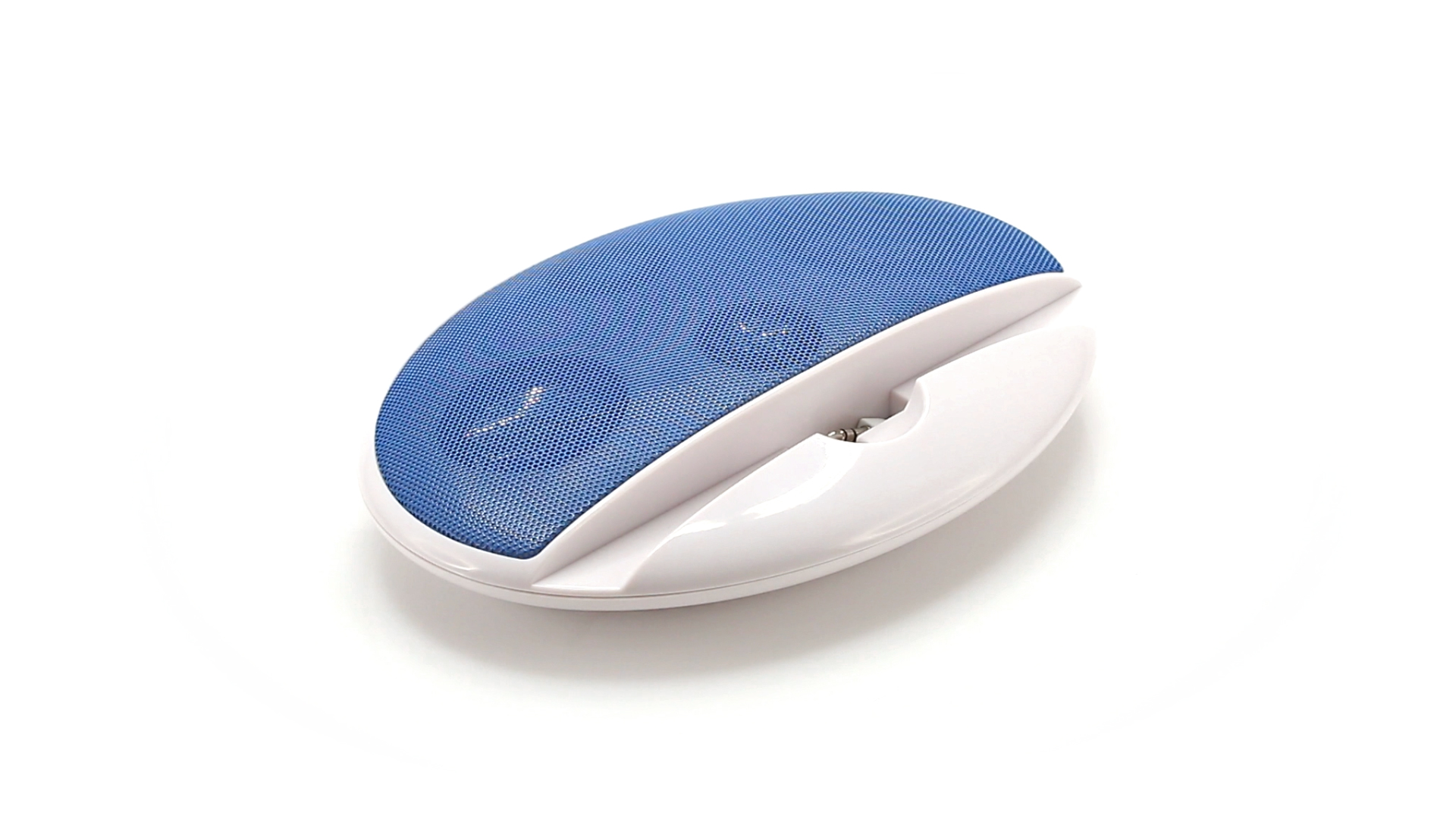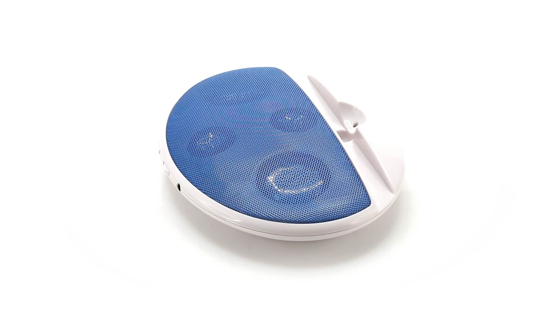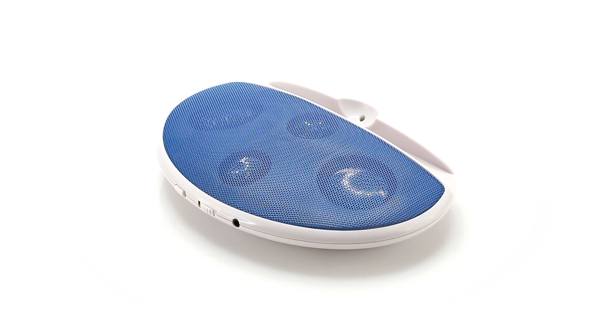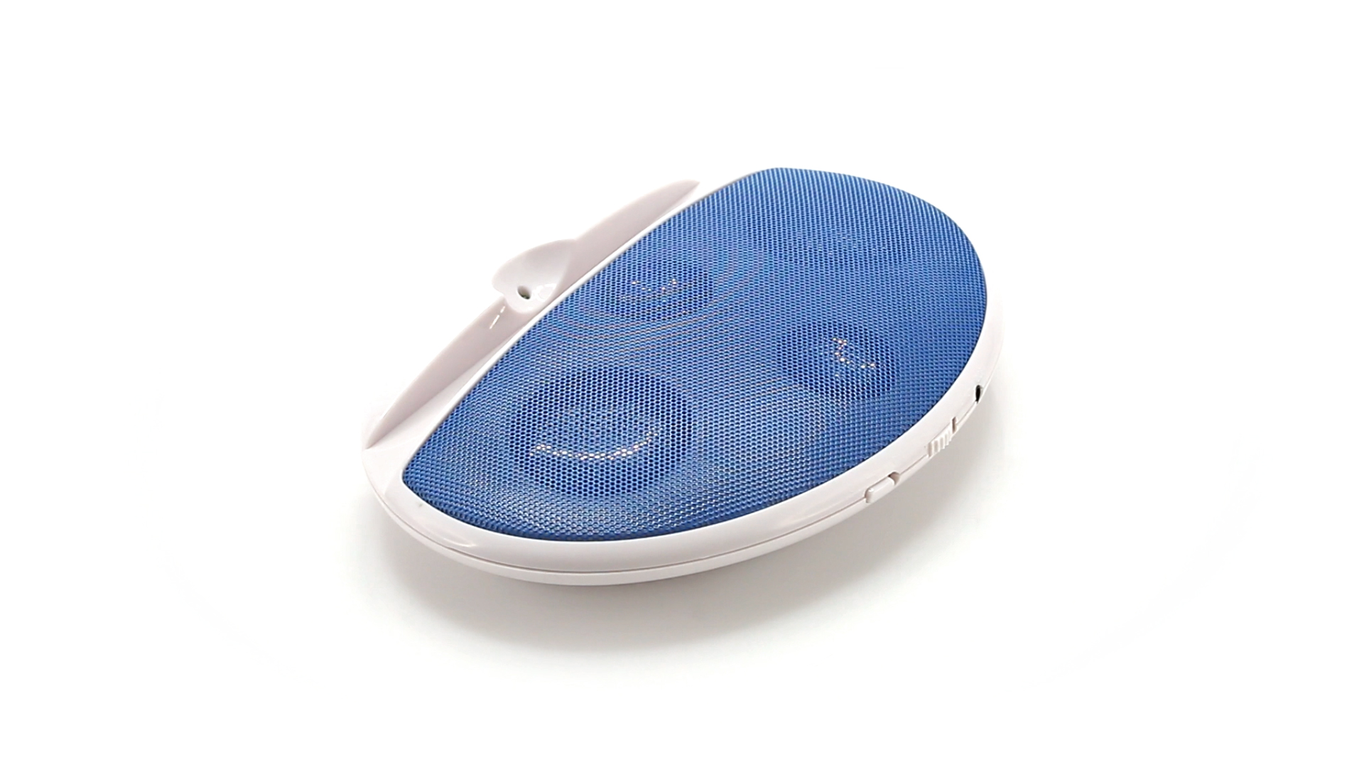 Kompakter Lautsprecher mit zweifarbigem Design. Auch als Ständer für Mobilltelefon nutzbar. Mit 2 W Leistung, Powerbutton, Lautstärkeregelung und 3,5-mm-Buchse. Batteriebetrieben - 4 x AAA nicht inklusive.