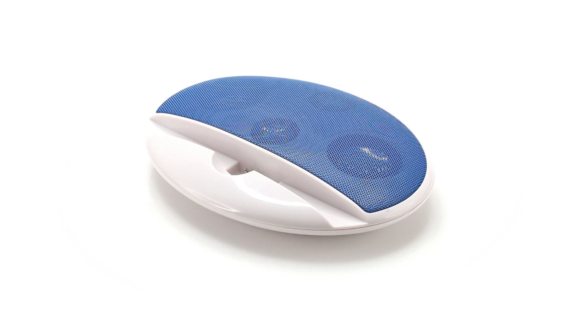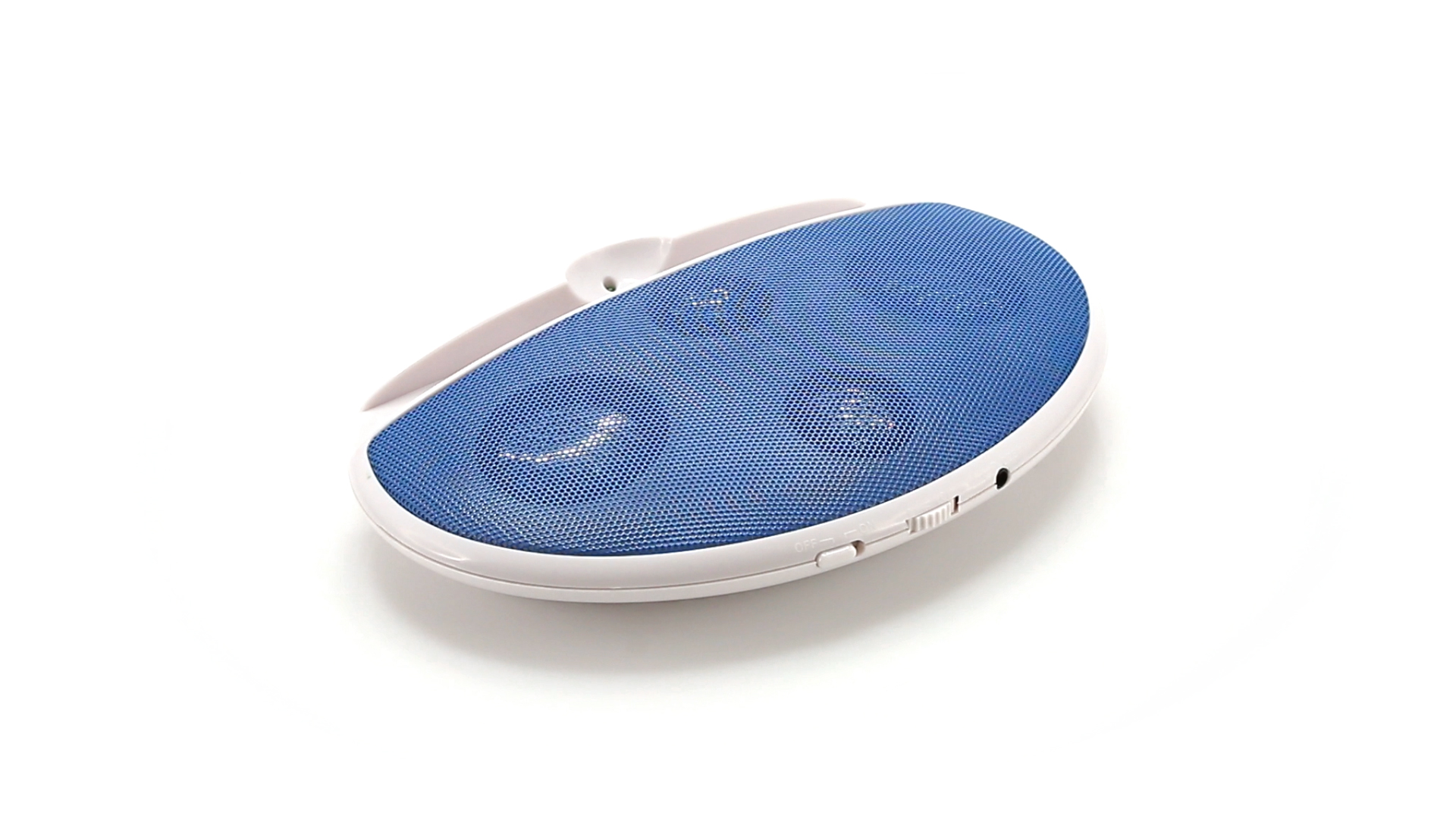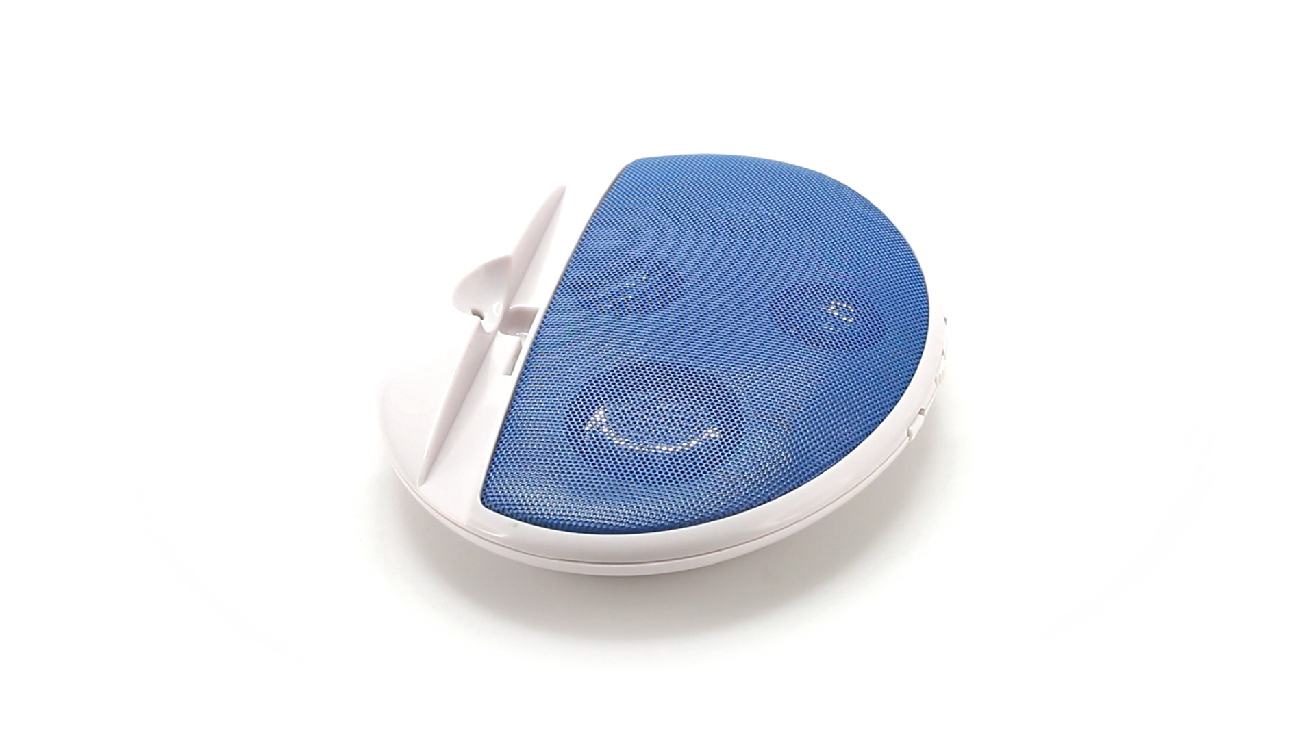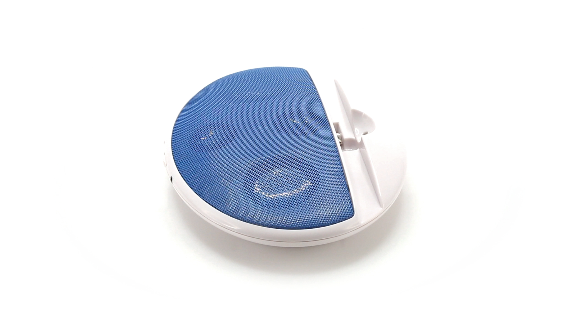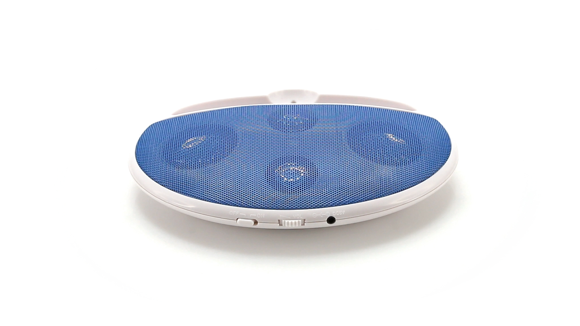 Kompakter Lautsprecher mit zweifarbigem Design. Auch als Ständer für Mobilltelefon nutzbar. Mit 2 W Leistung, Powerbutton, Lautstärkeregelung und 3,5-mm-Buchse. Batteriebetrieben - 4 x AAA nicht inklusive.