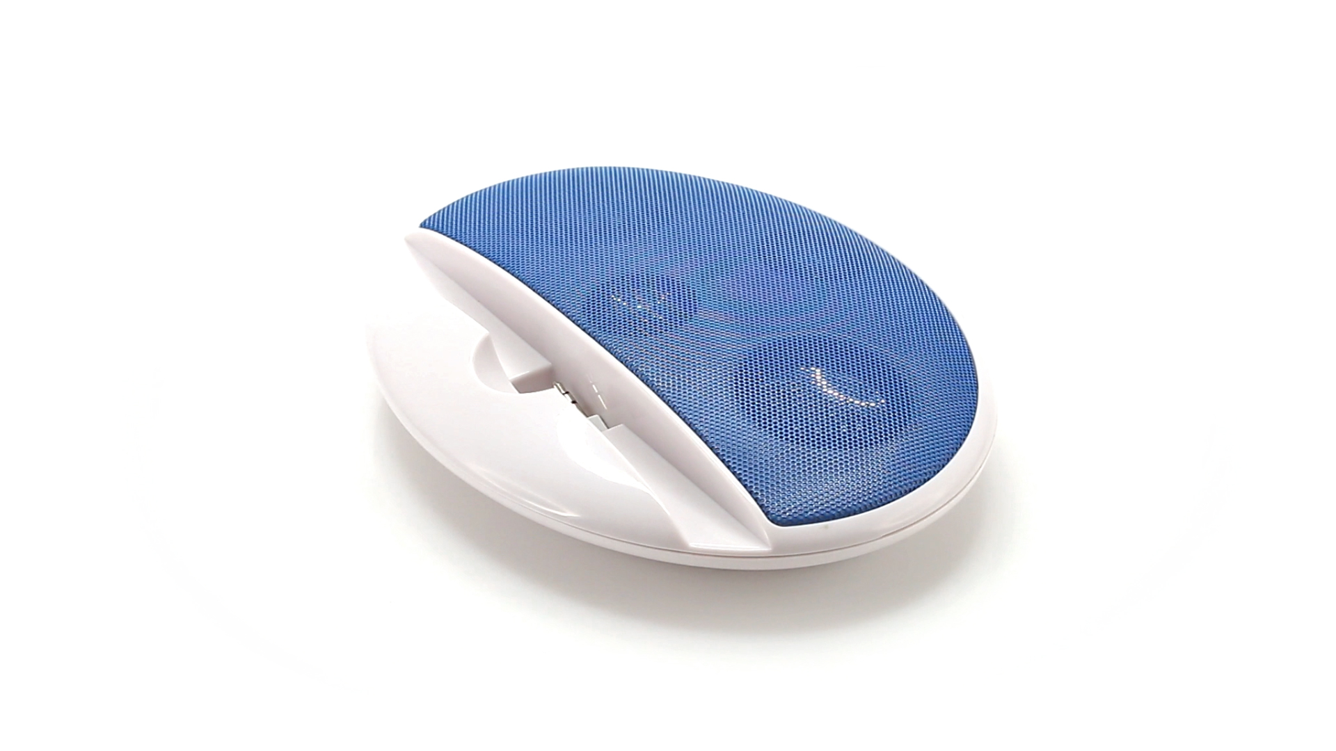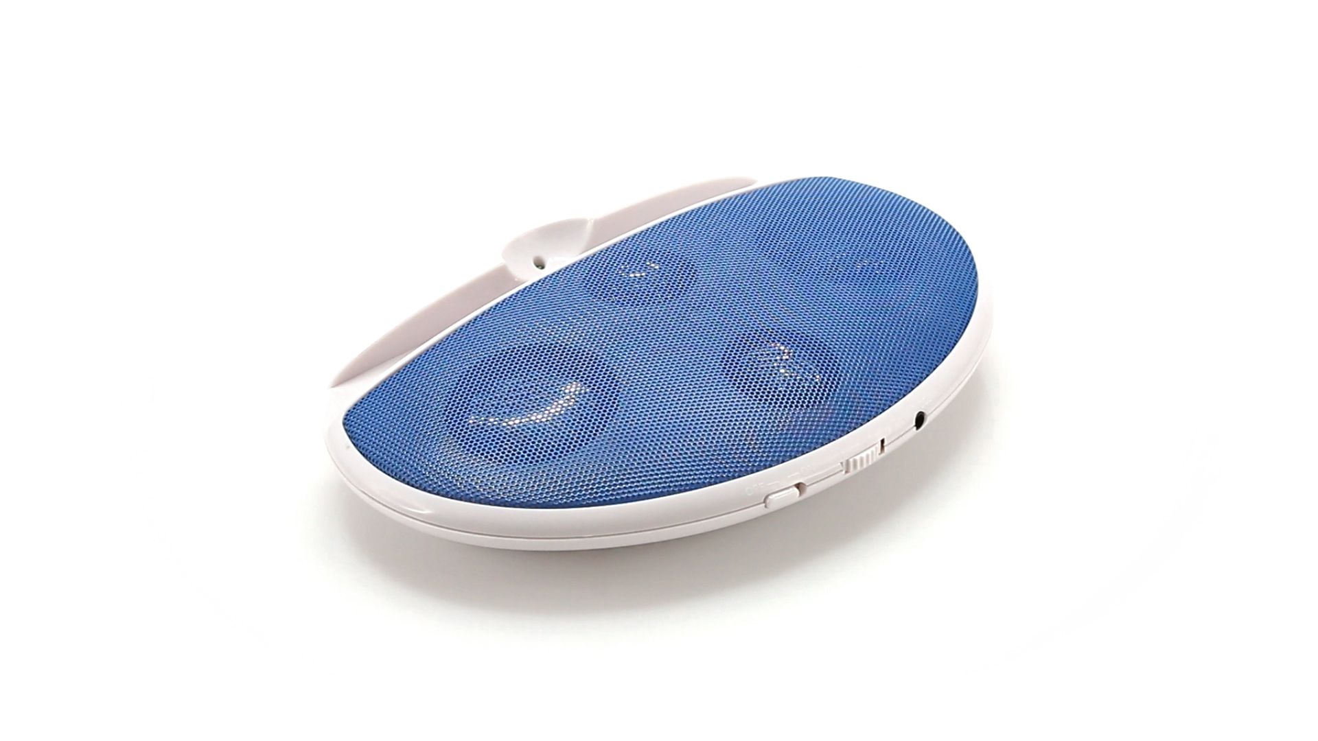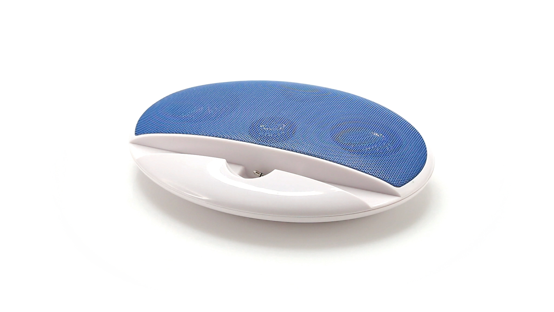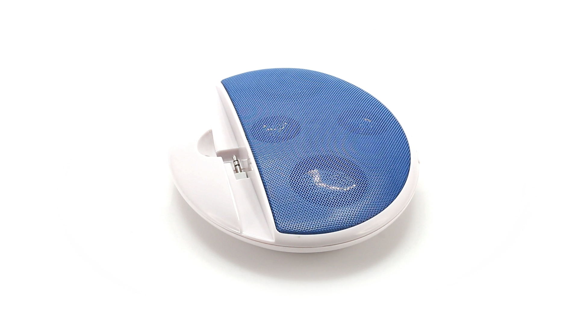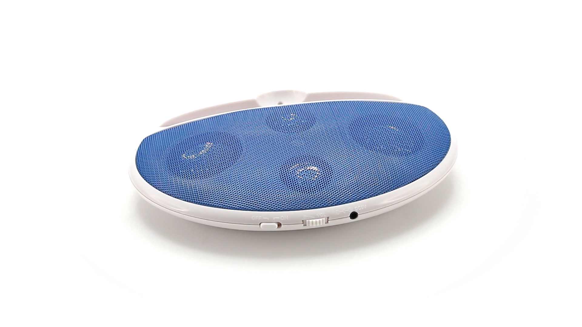 Kompakter Lautsprecher mit zweifarbigem Design. Auch als Ständer für Mobilltelefon nutzbar. Mit 2 W Leistung, Powerbutton, Lautstärkeregelung und 3,5-mm-Buchse. Batteriebetrieben - 4 x AAA nicht inklusive.