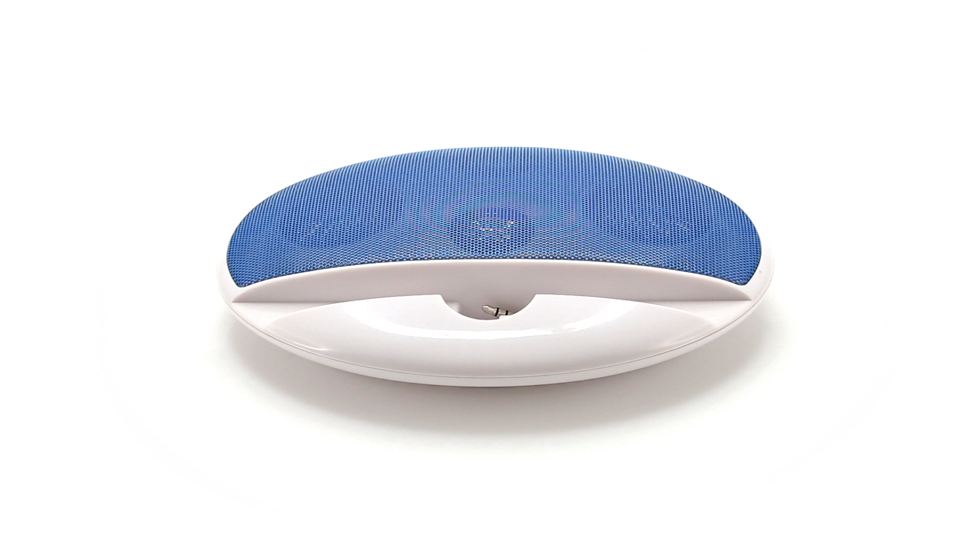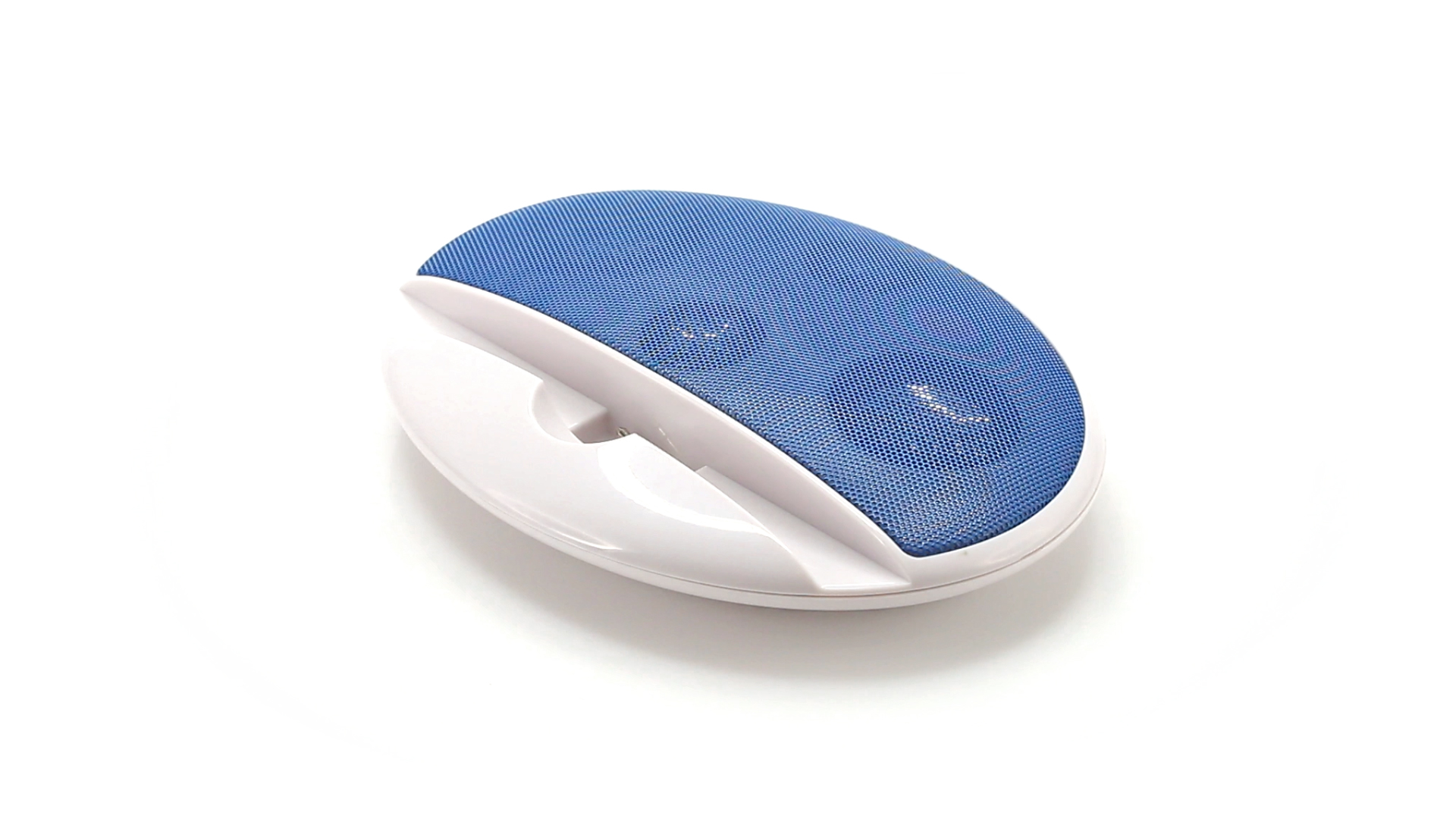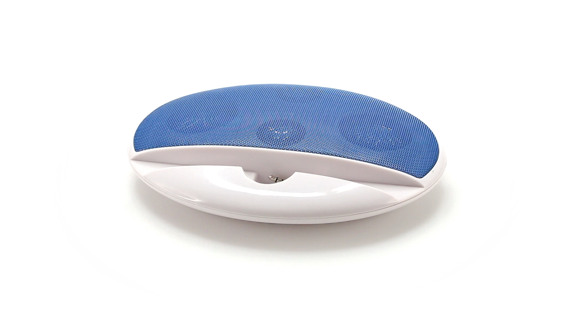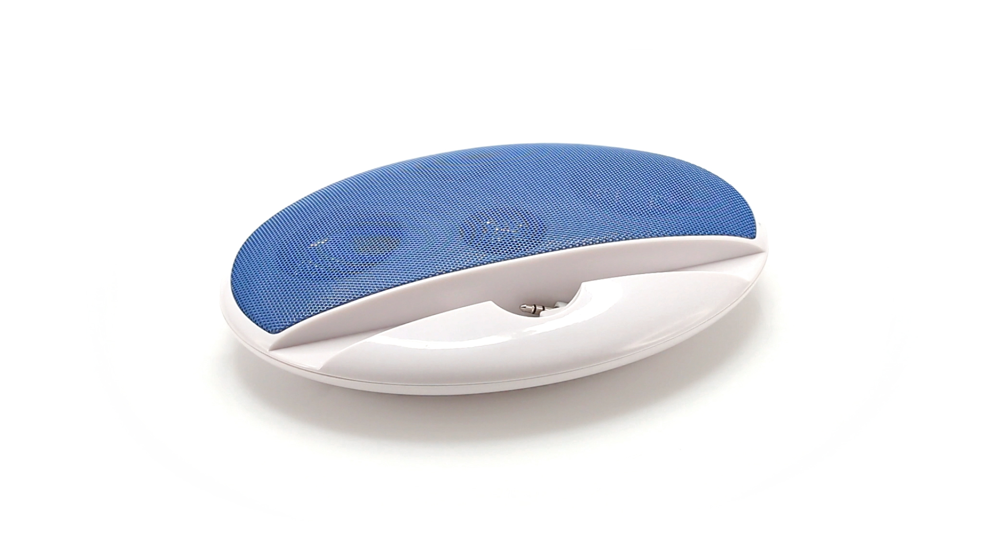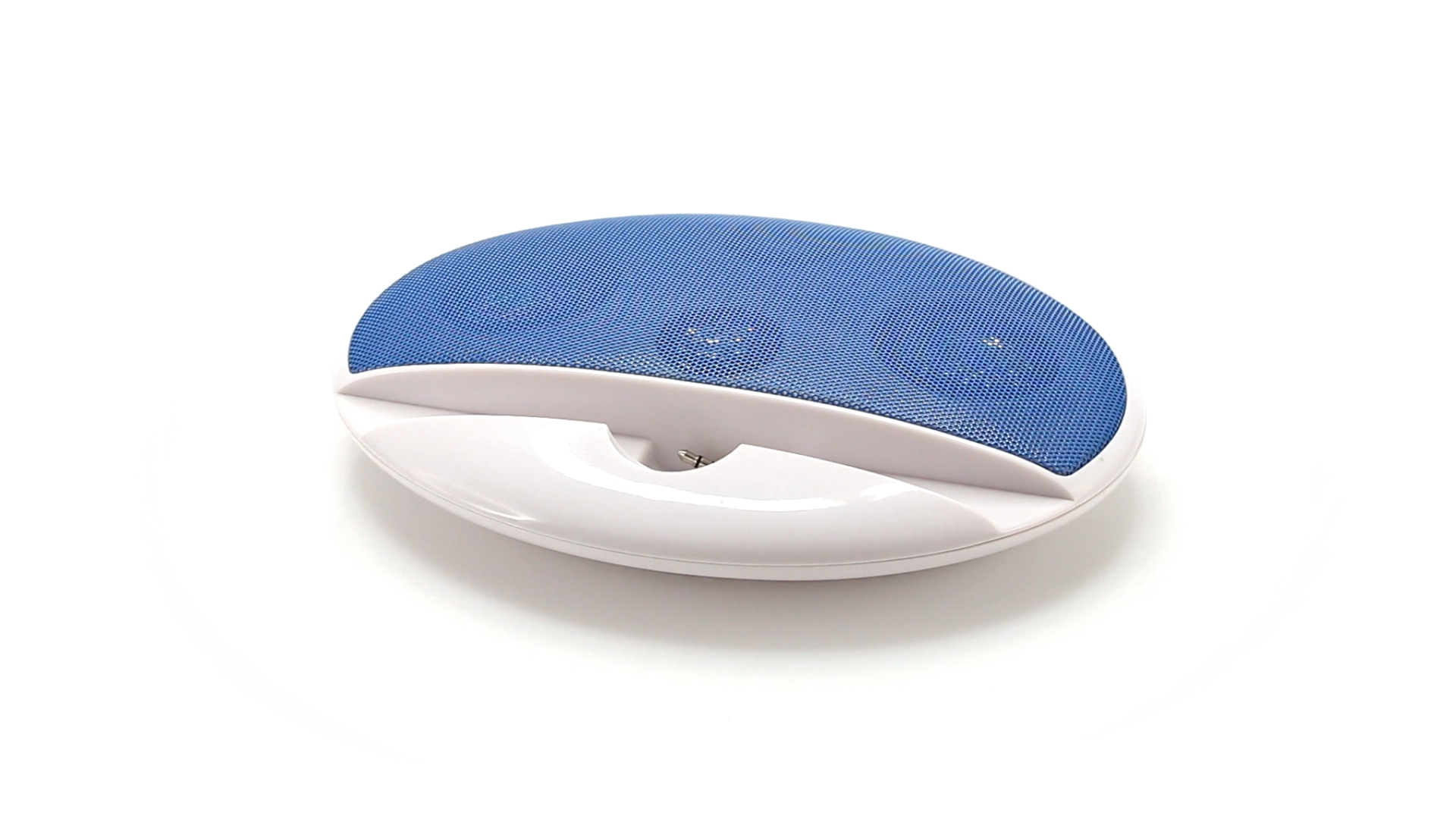 Kompakter Lautsprecher mit zweifarbigem Design. Auch als Ständer für Mobilltelefon nutzbar. Mit 2 W Leistung, Powerbutton, Lautstärkeregelung und 3,5-mm-Buchse. Batteriebetrieben - 4 x AAA nicht inklusive.