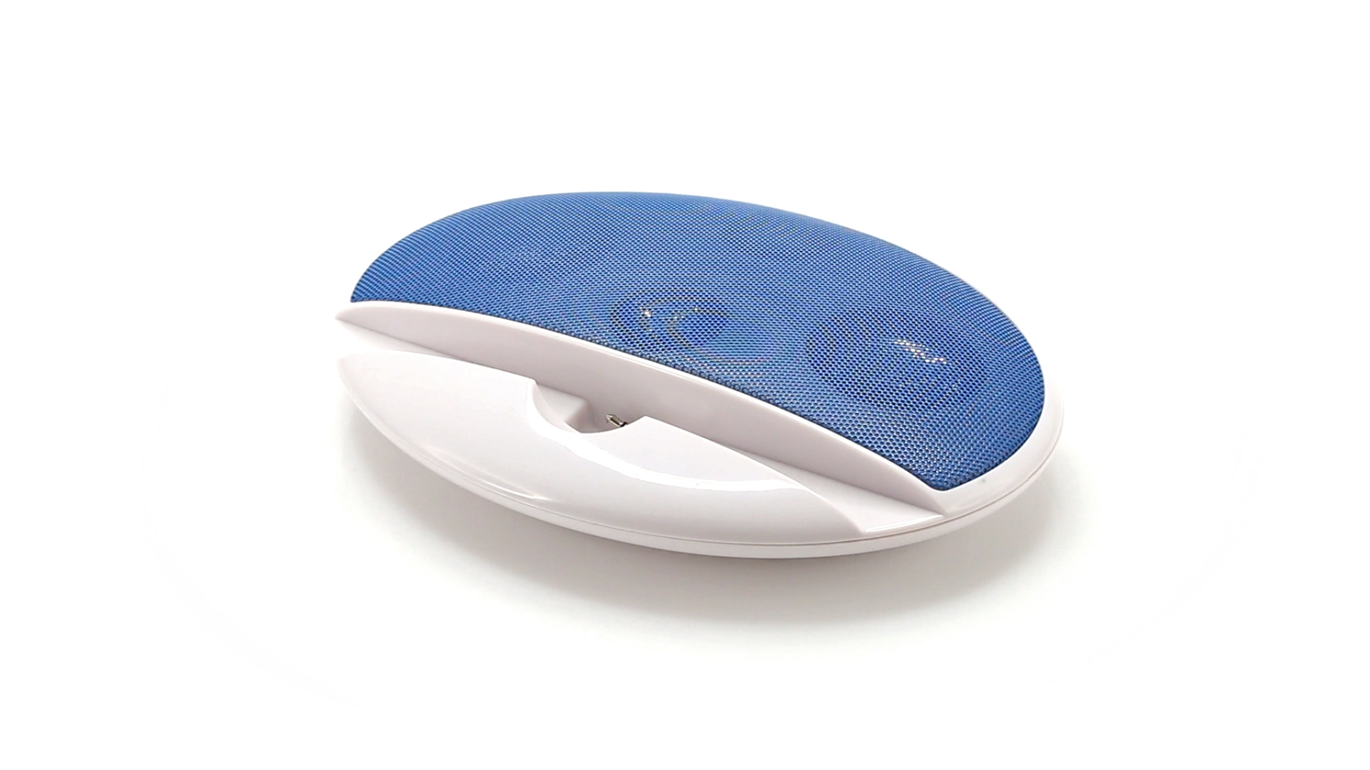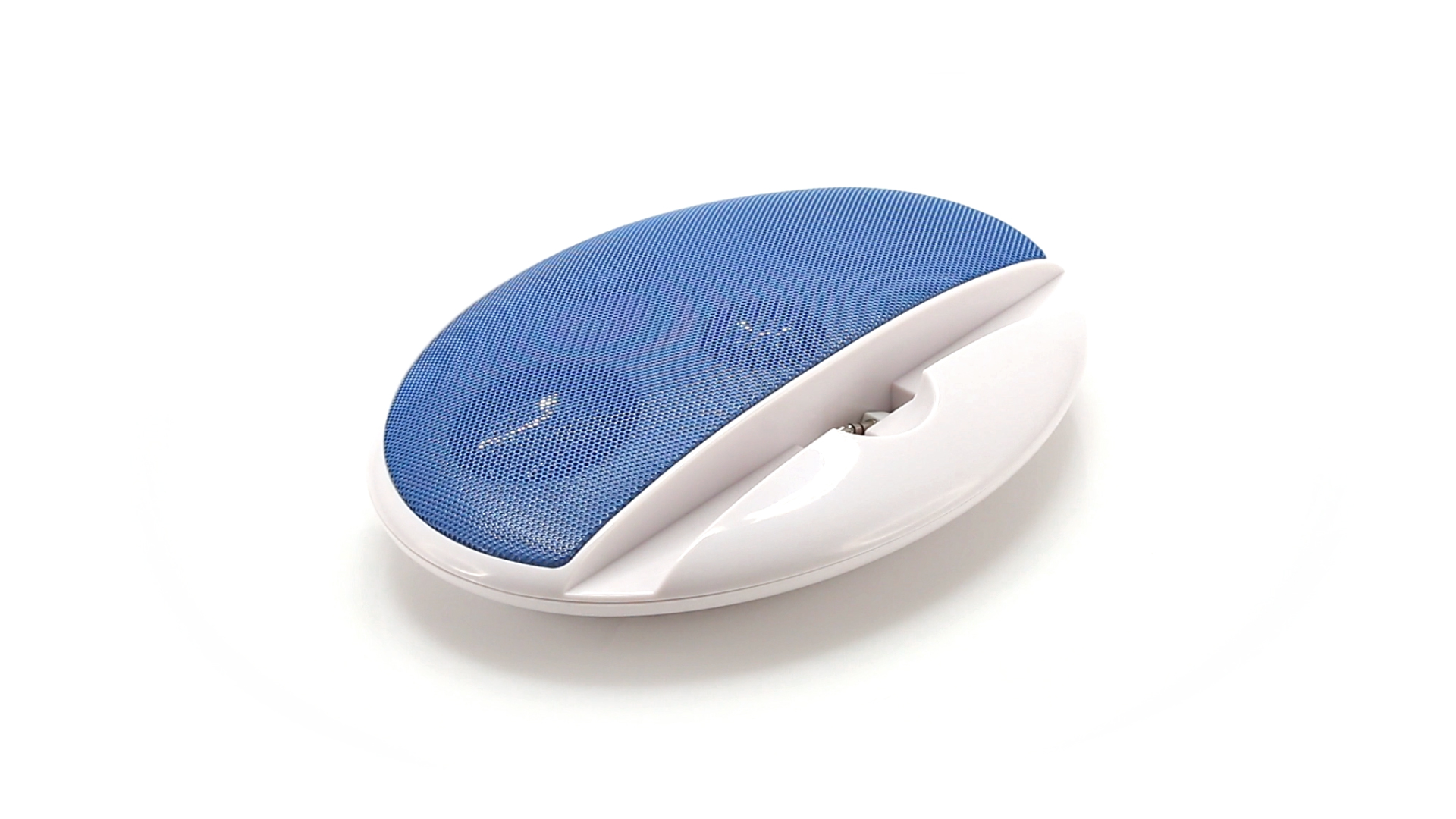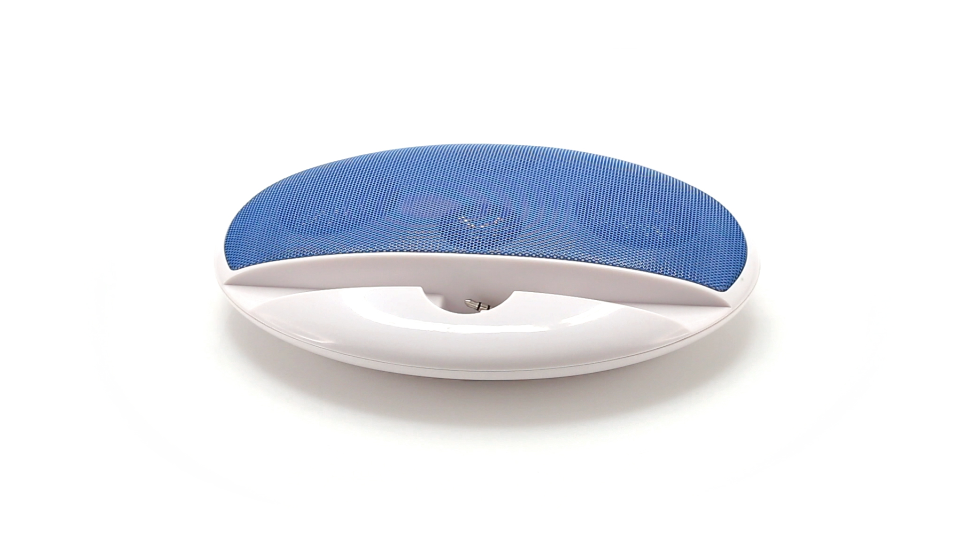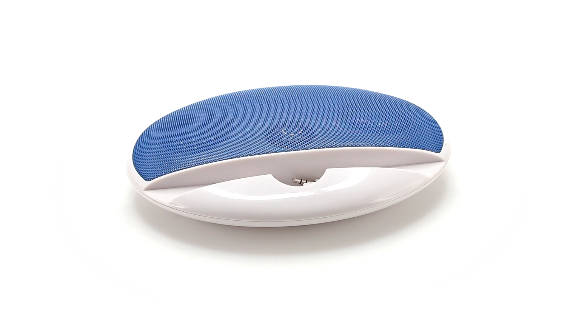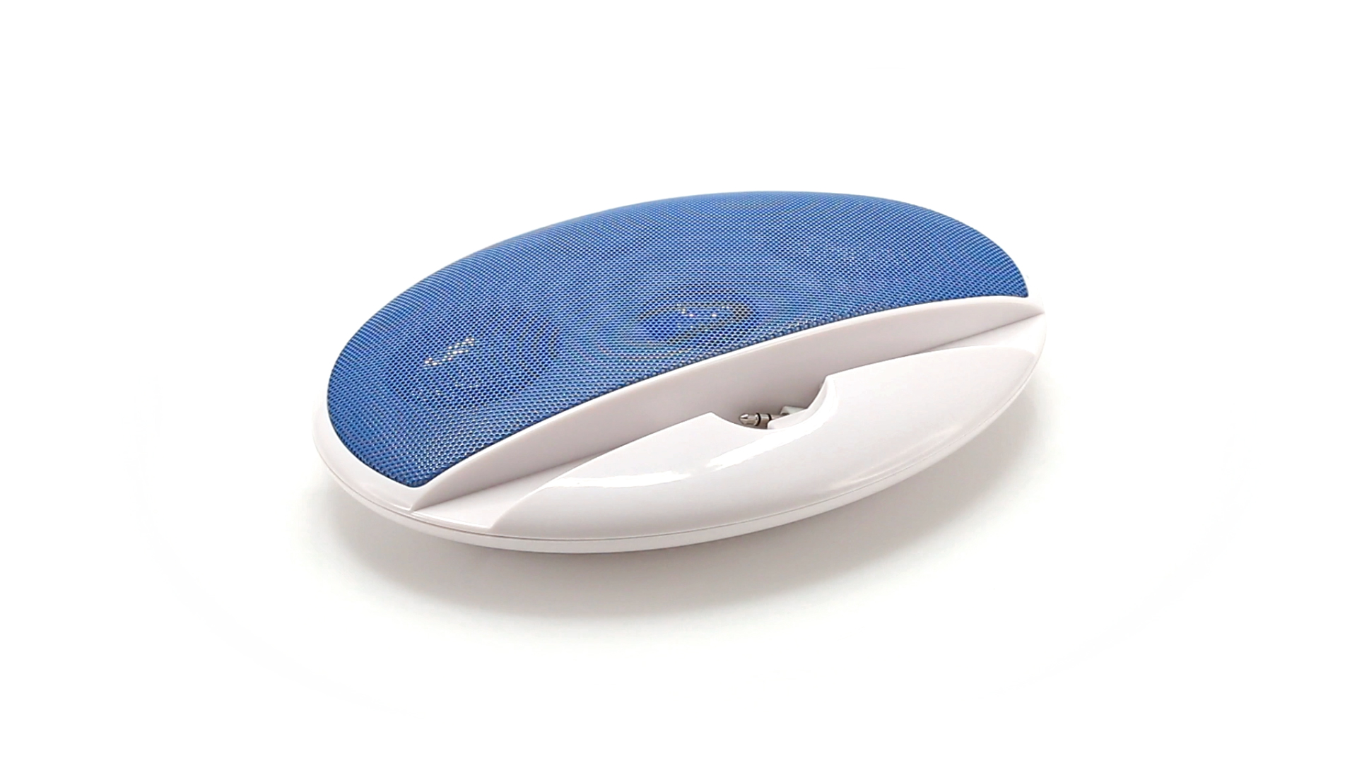 Kompakter Lautsprecher mit zweifarbigem Design. Auch als Ständer für Mobilltelefon nutzbar. Mit 2 W Leistung, Powerbutton, Lautstärkeregelung und 3,5-mm-Buchse. Batteriebetrieben - 4 x AAA nicht inklusive.