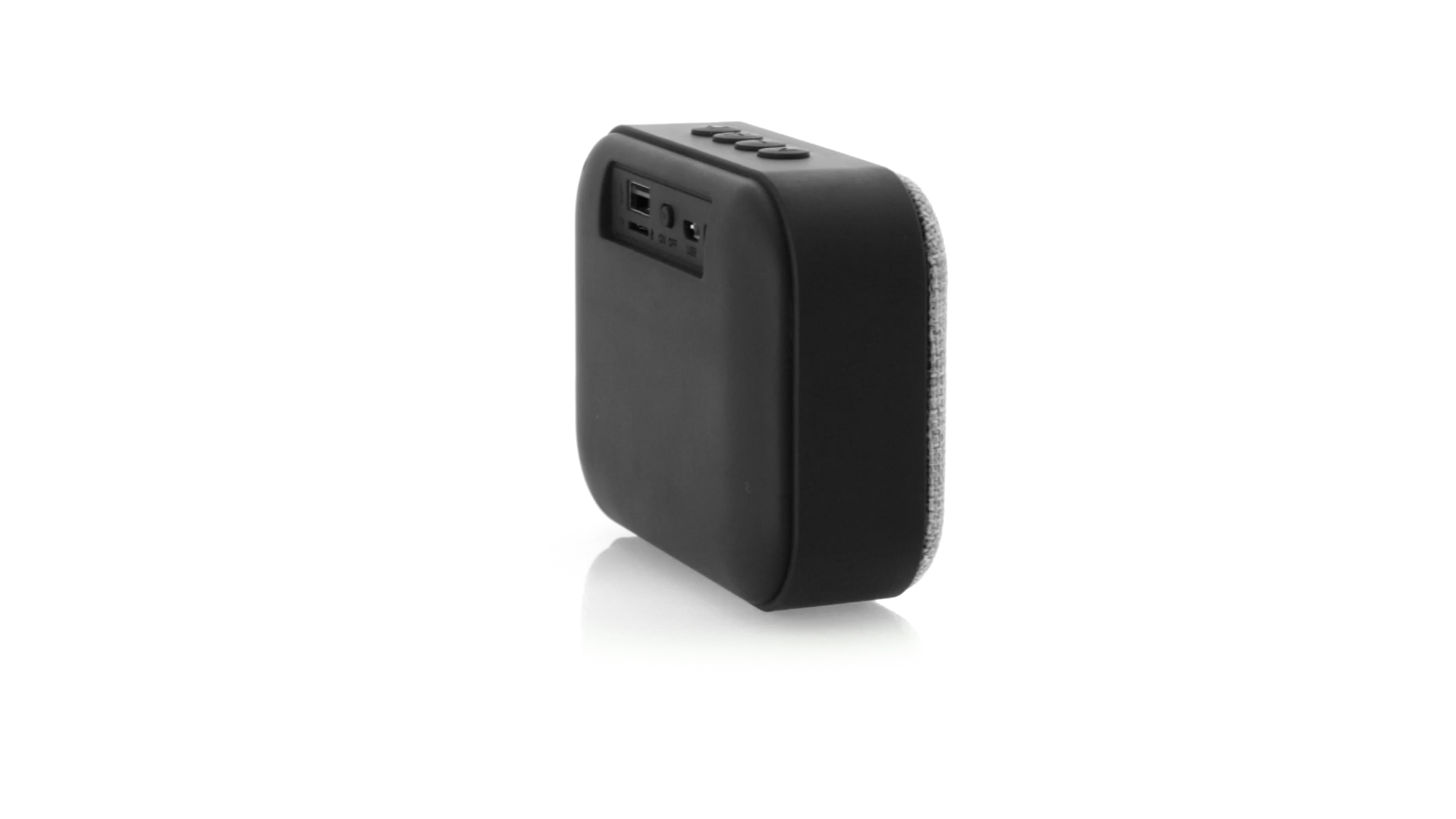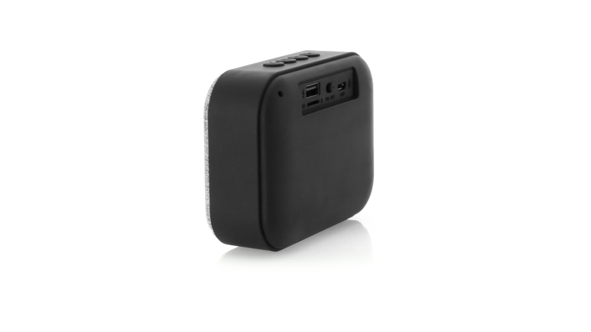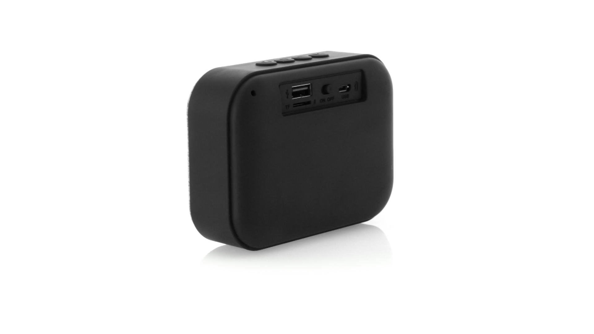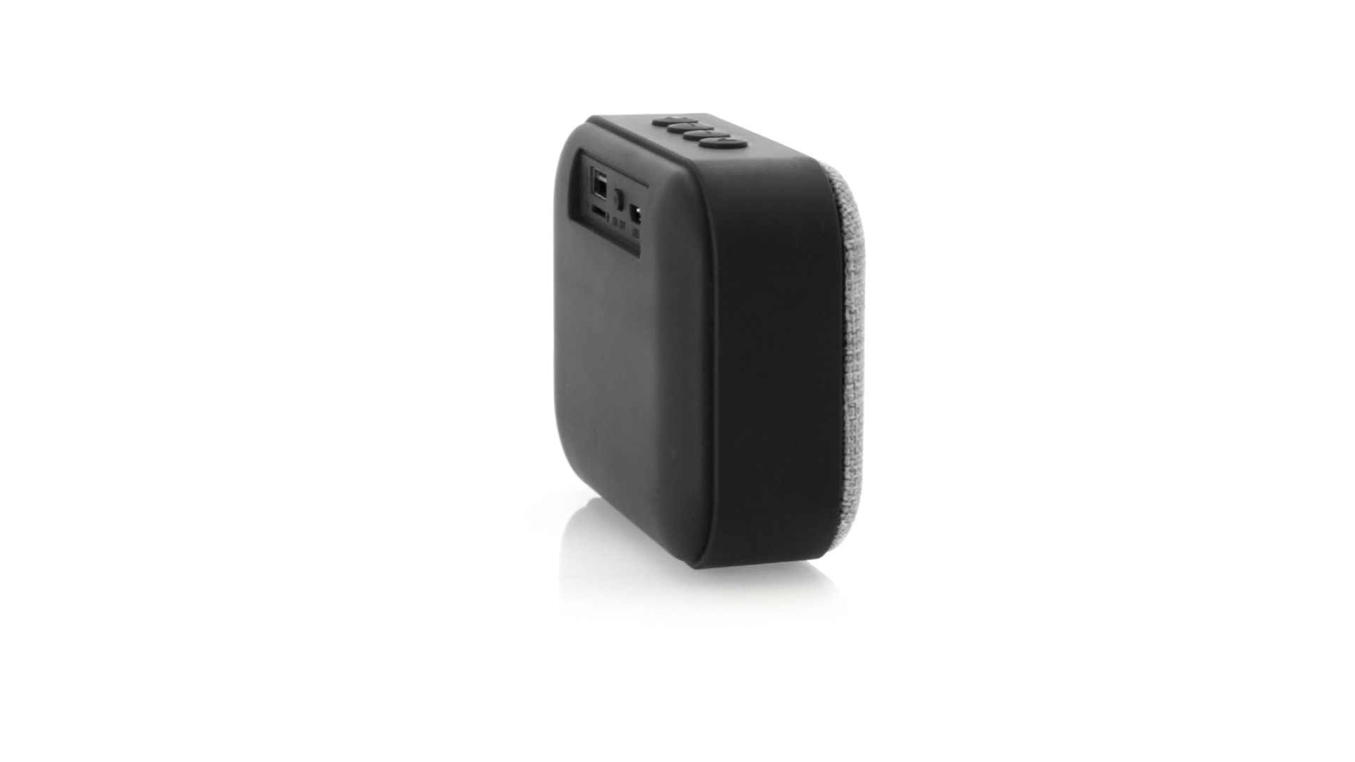 Bluetooth®-Lautsprecher mit Gehäuse aus weichem Gummi und zweifarbigen Polyester. Mit 3 W Leistung, Freisprechfunktion sowie Slot für Mini-SD-Karten von bis zu 32 GB Speicherkapazität und 3,5-mm-Buchse für Audioeingang. Mit rutschfesten Gummi-Details an der Unterseite. Mini-USB-Ladekabel sowie 3,5-mm-Klinkenkabel inklusive. Kompatibel mit iOS- und Android-Geräten. Präsentiert in einer individuellen Box.