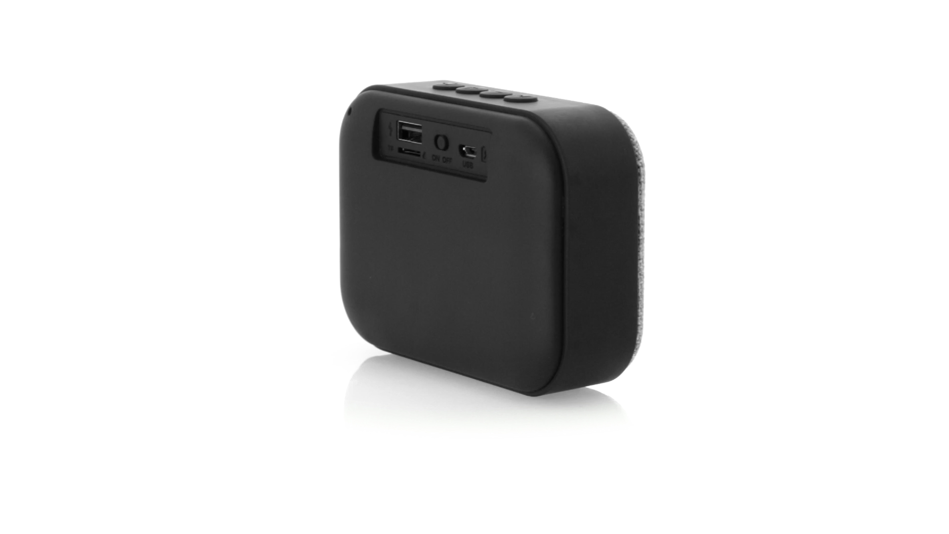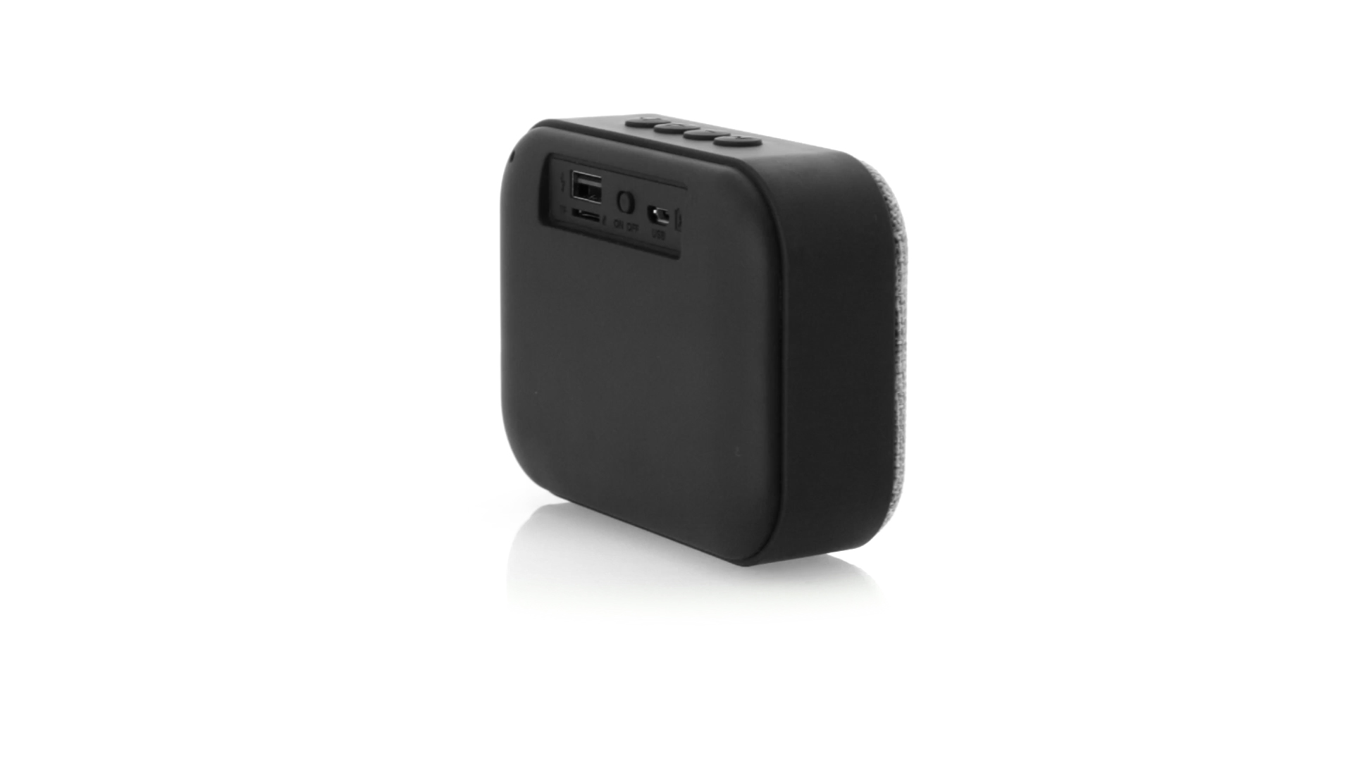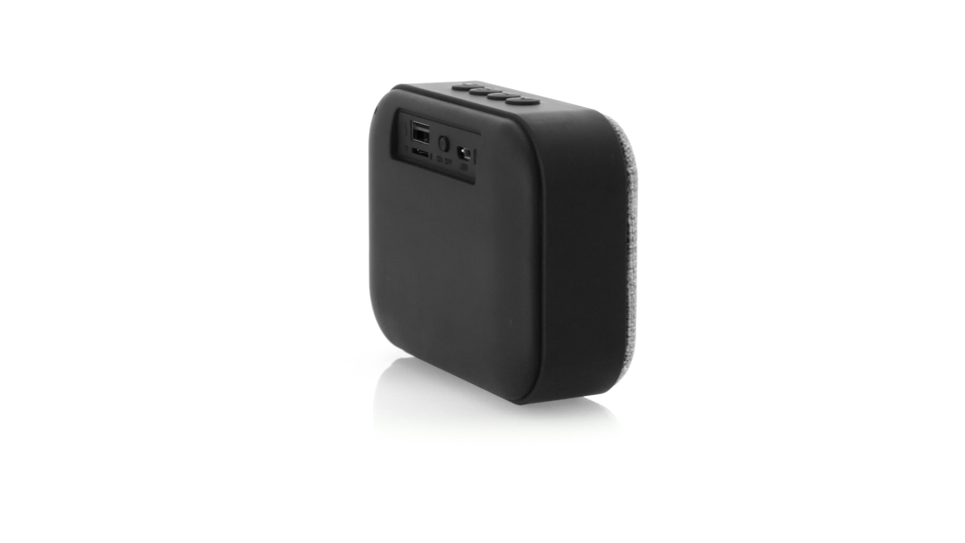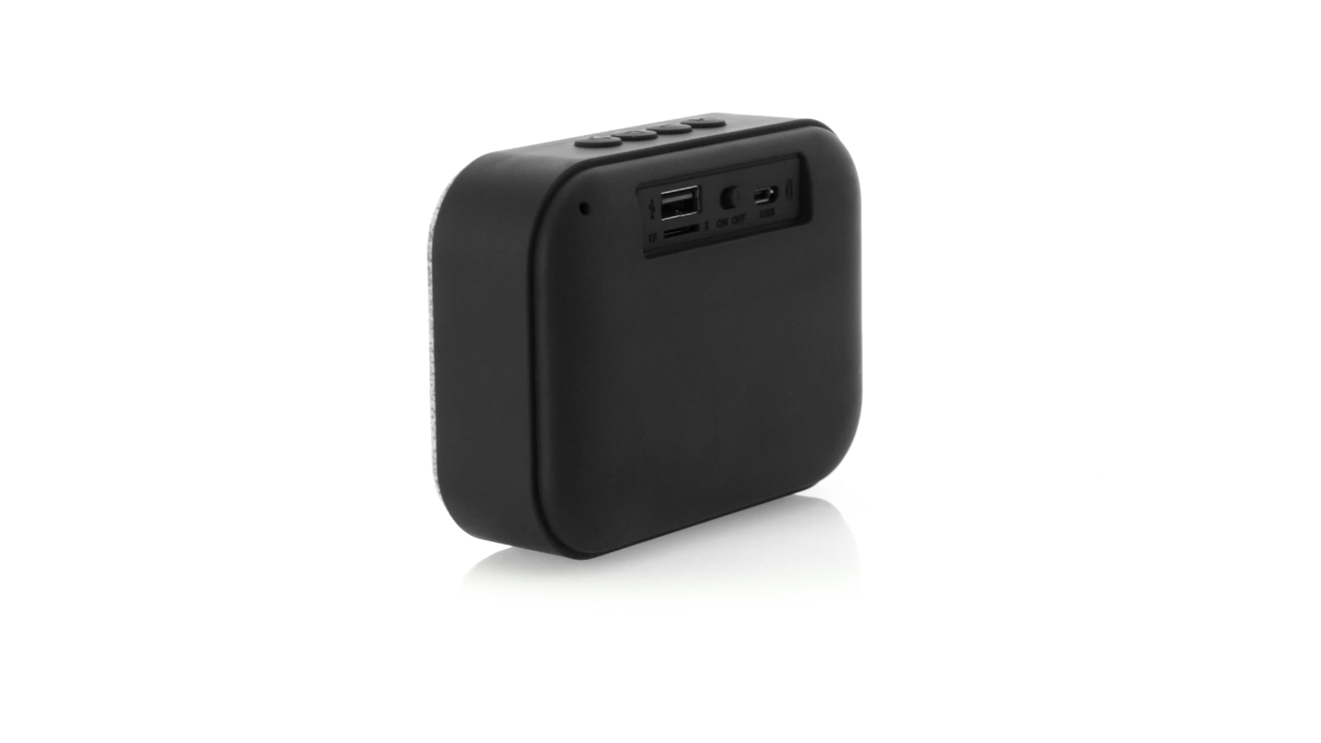 Bluetooth®-Lautsprecher mit Gehäuse aus weichem Gummi und zweifarbigen Polyester. Mit 3 W Leistung, Freisprechfunktion sowie Slot für Mini-SD-Karten von bis zu 32 GB Speicherkapazität und 3,5-mm-Buchse für Audioeingang. Mit rutschfesten Gummi-Details an der Unterseite. Mini-USB-Ladekabel sowie 3,5-mm-Klinkenkabel inklusive. Kompatibel mit iOS- und Android-Geräten. Präsentiert in einer individuellen Box.