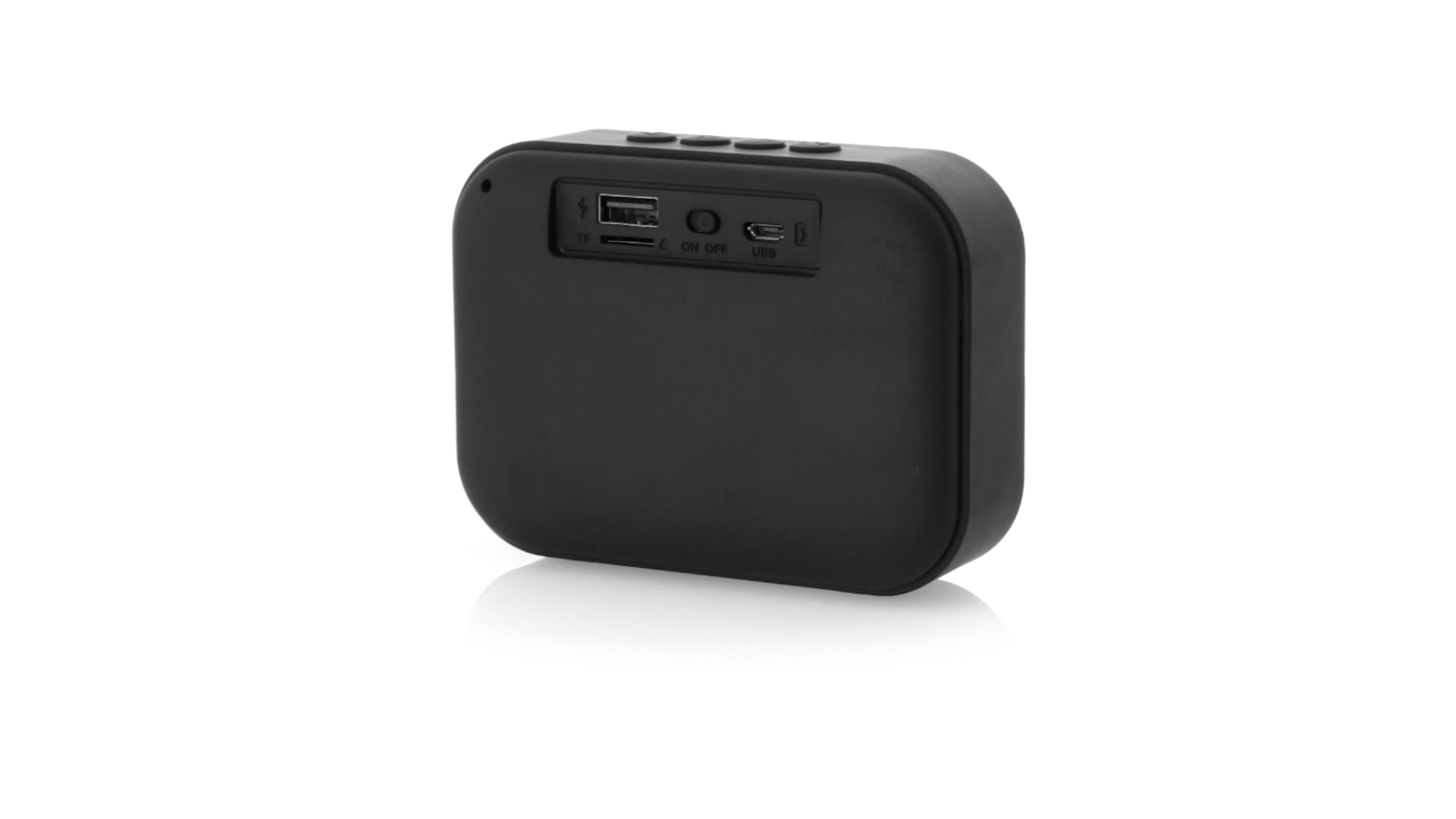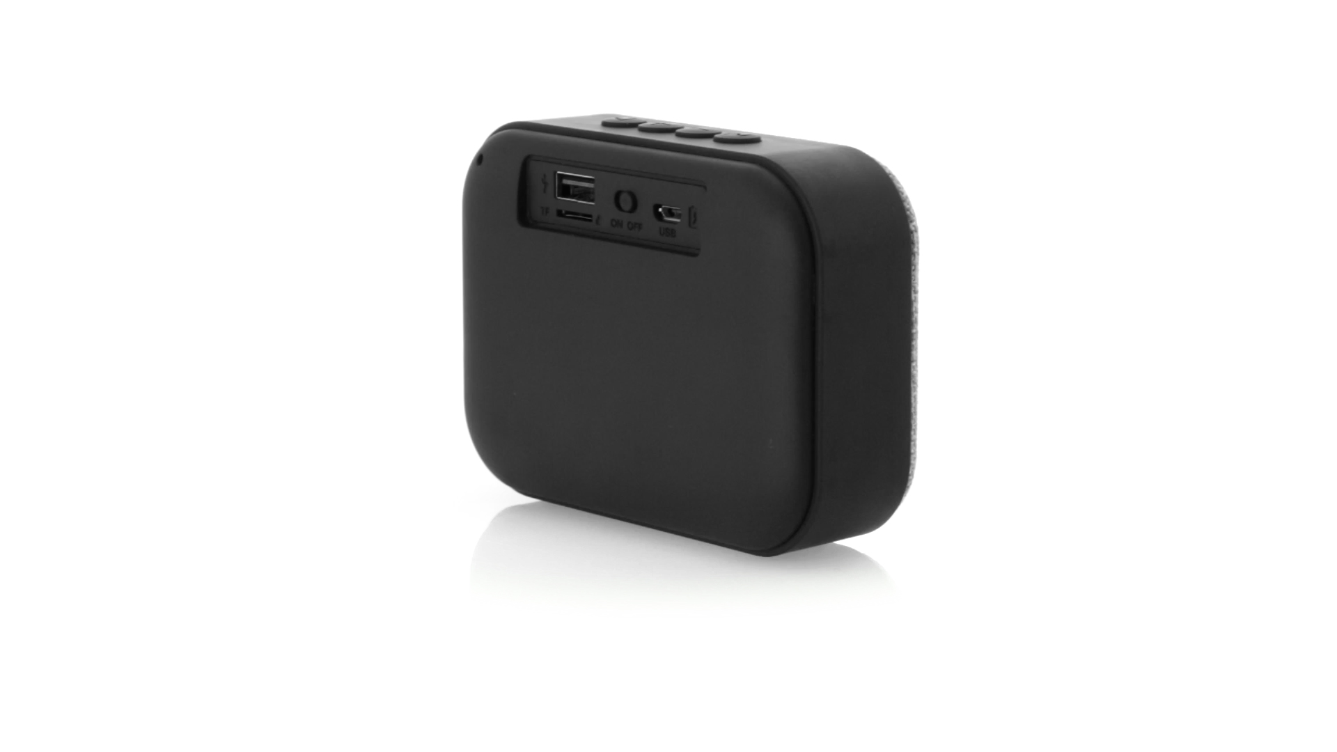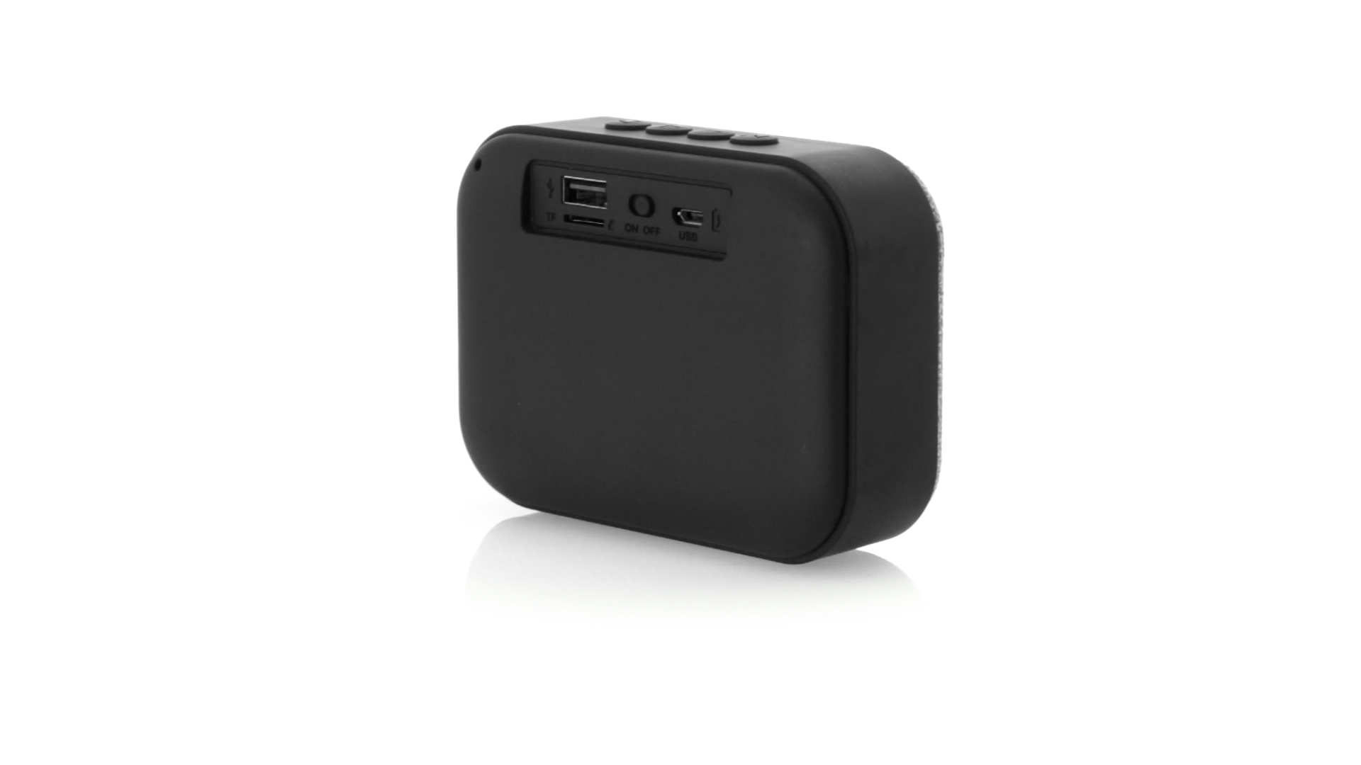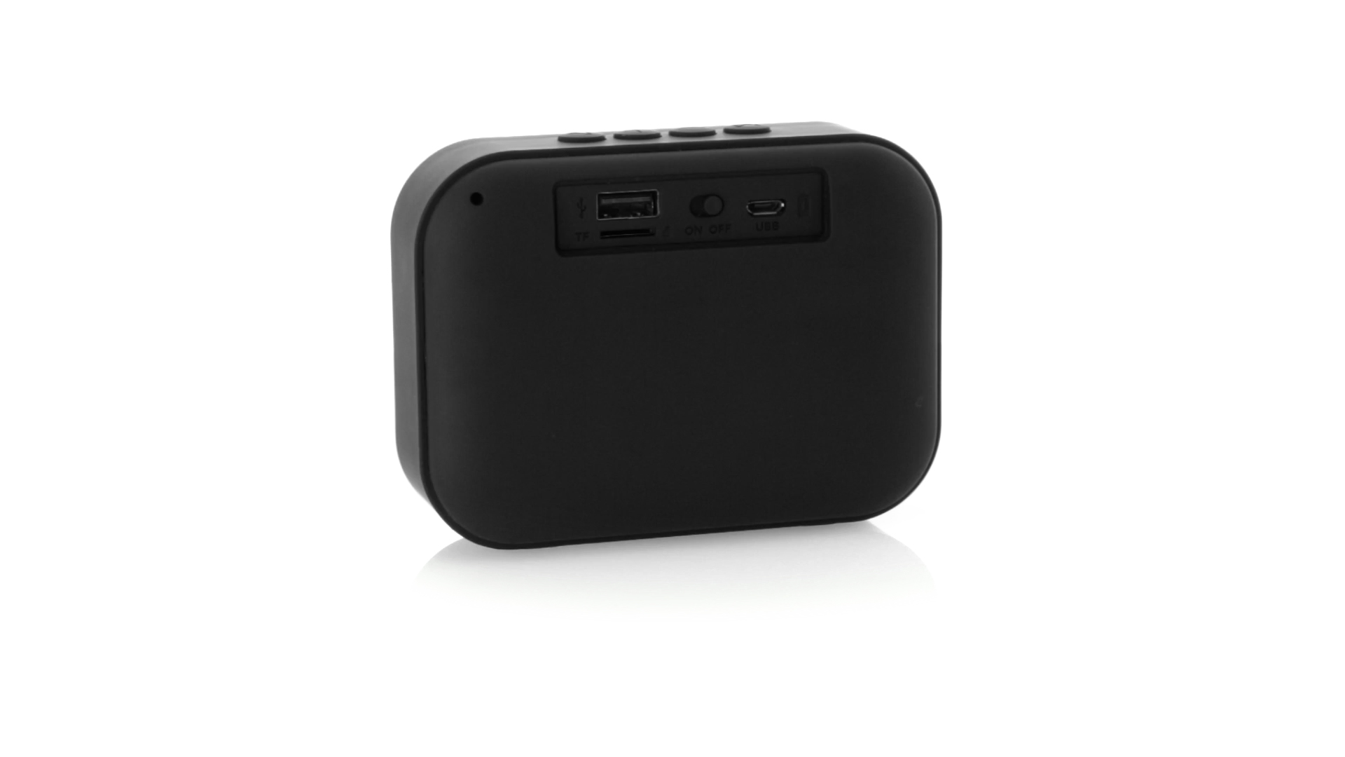 Bluetooth®-Lautsprecher mit Gehäuse aus weichem Gummi und zweifarbigen Polyester. Mit 3 W Leistung, Freisprechfunktion sowie Slot für Mini-SD-Karten von bis zu 32 GB Speicherkapazität und 3,5-mm-Buchse für Audioeingang. Mit rutschfesten Gummi-Details an der Unterseite. Mini-USB-Ladekabel sowie 3,5-mm-Klinkenkabel inklusive. Kompatibel mit iOS- und Android-Geräten. Präsentiert in einer individuellen Box.