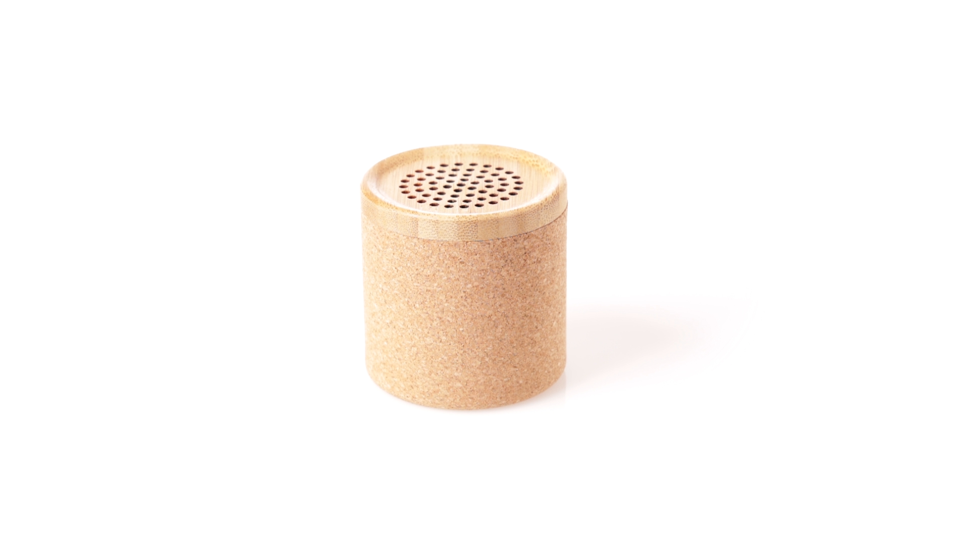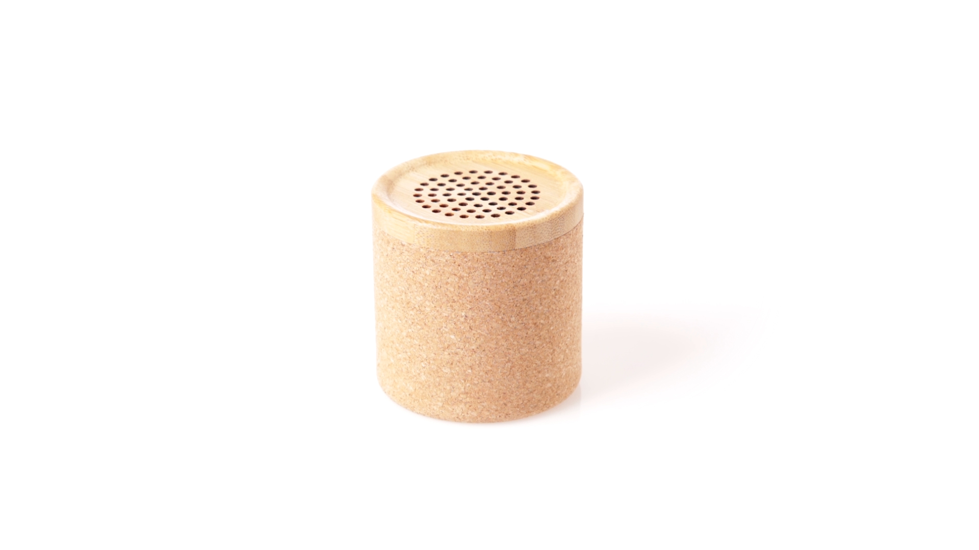 Bluetooth®-Lautsprecher mit kompakter Grösse und 3 W Leistung. Umweltfreundliche Kombination aus Naturkorkkörper und Bambusgitter, inklusive 300-mAh-Lithiumbatterie und Typ-C-Ladekabel. Präsentiert in einer individuellen Kraftpapier-Designbox, mit Bedienungsanleitung in Englisch und Spanisch.