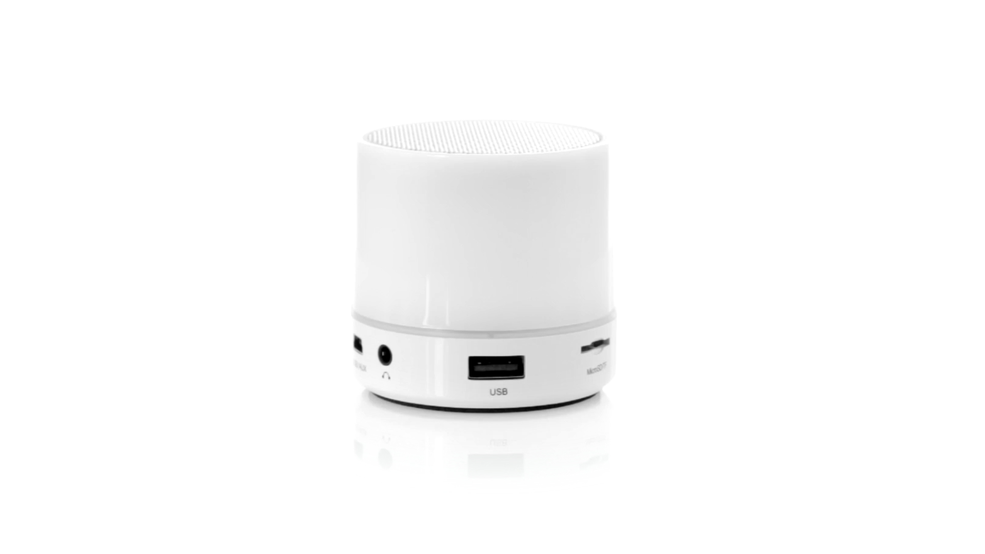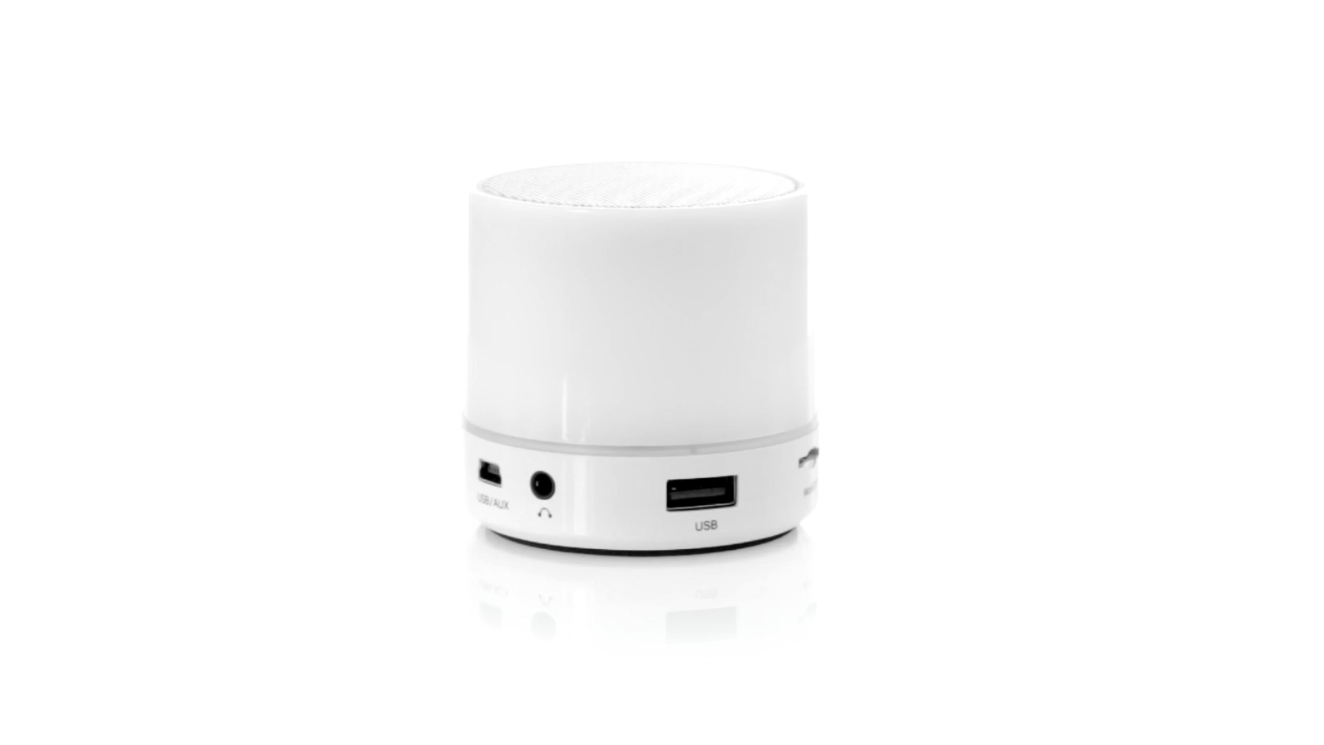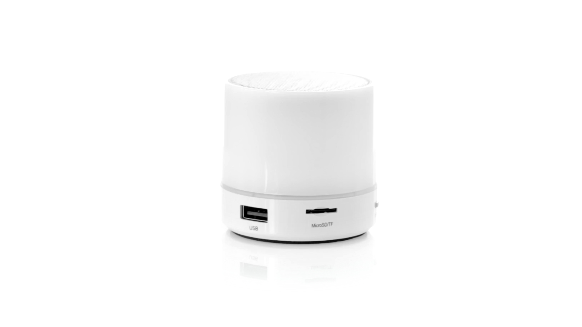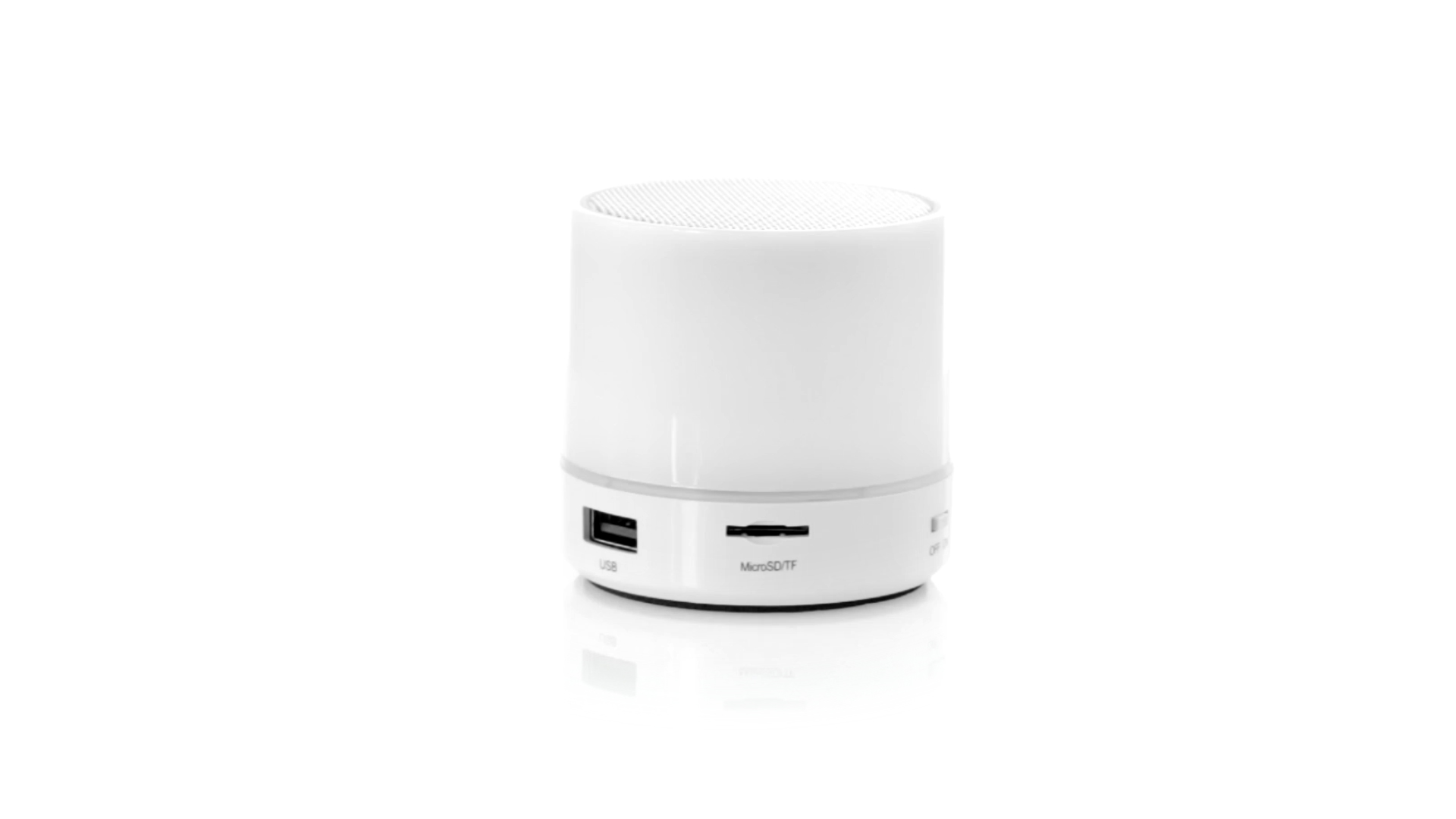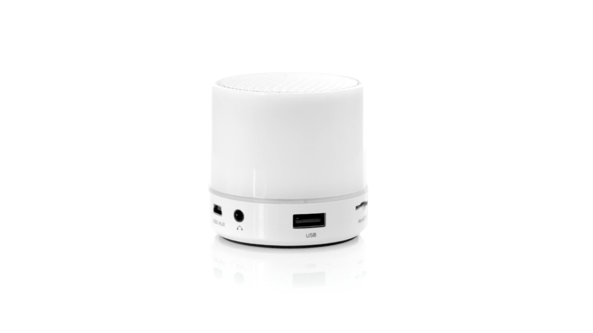 Intelligenter LED-Technologie-Lautsprecher mit Bluetooth-Verbindung®. Mit 3 W Leistung und Freisprechfunktion sowie einem Slot für eine Micro-SD-Karte von bis zu 32 GB Speicherkapazität. Zudem mit 3,5-mm-Buchse für Audioeingang und rutschfester Unterseite. Aufladbar über USB-Ladekabel (inklusive). Präsentiert in einer attraktiven Designbox.