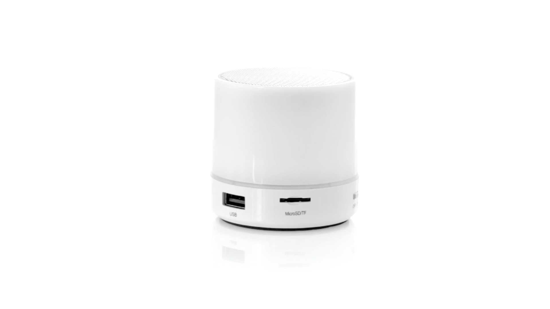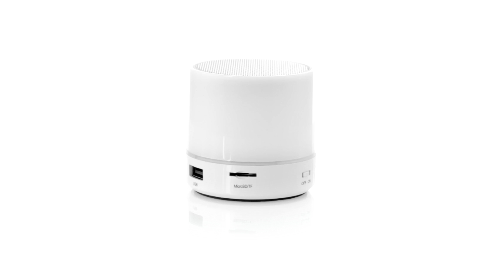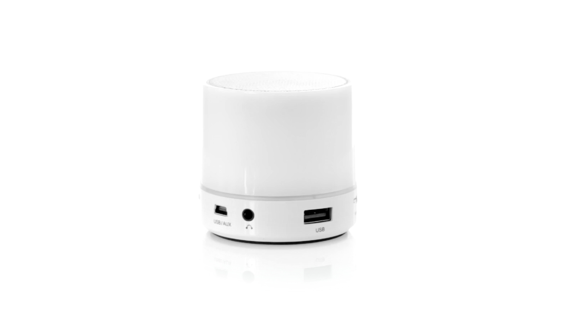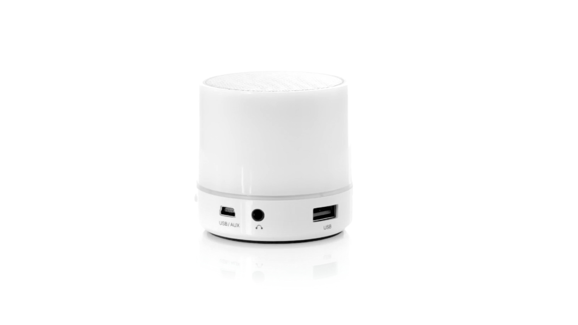 Intelligenter LED-Technologie-Lautsprecher mit Bluetooth-Verbindung®. Mit 3 W Leistung und Freisprechfunktion sowie einem Slot für eine Micro-SD-Karte von bis zu 32 GB Speicherkapazität. Zudem mit 3,5-mm-Buchse für Audioeingang und rutschfester Unterseite. Aufladbar über USB-Ladekabel (inklusive). Präsentiert in einer attraktiven Designbox.