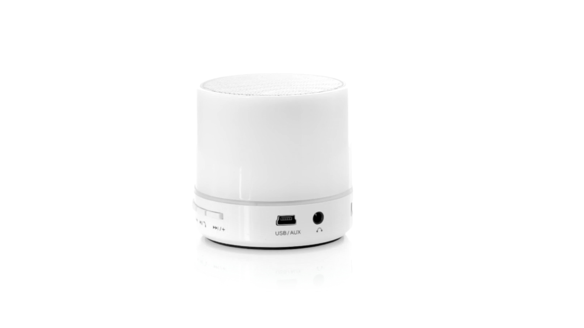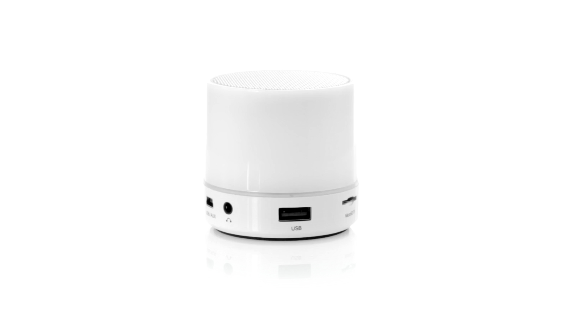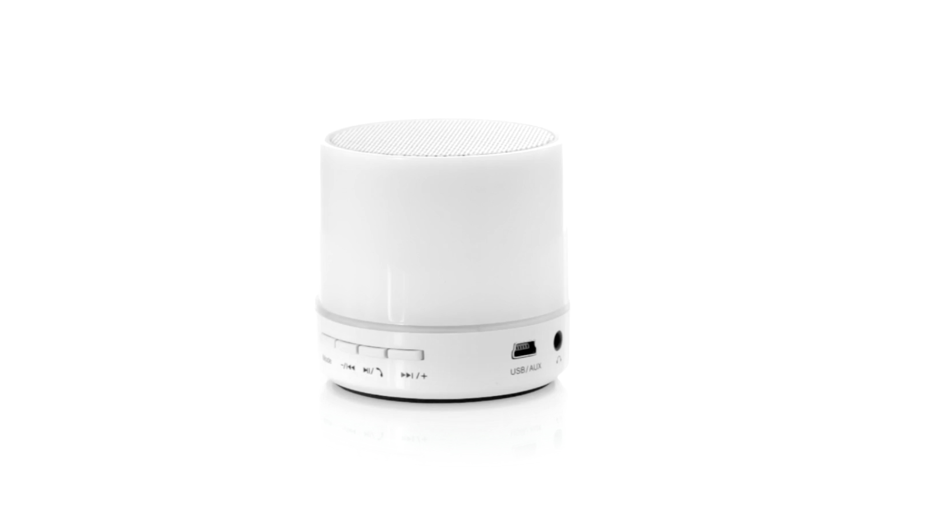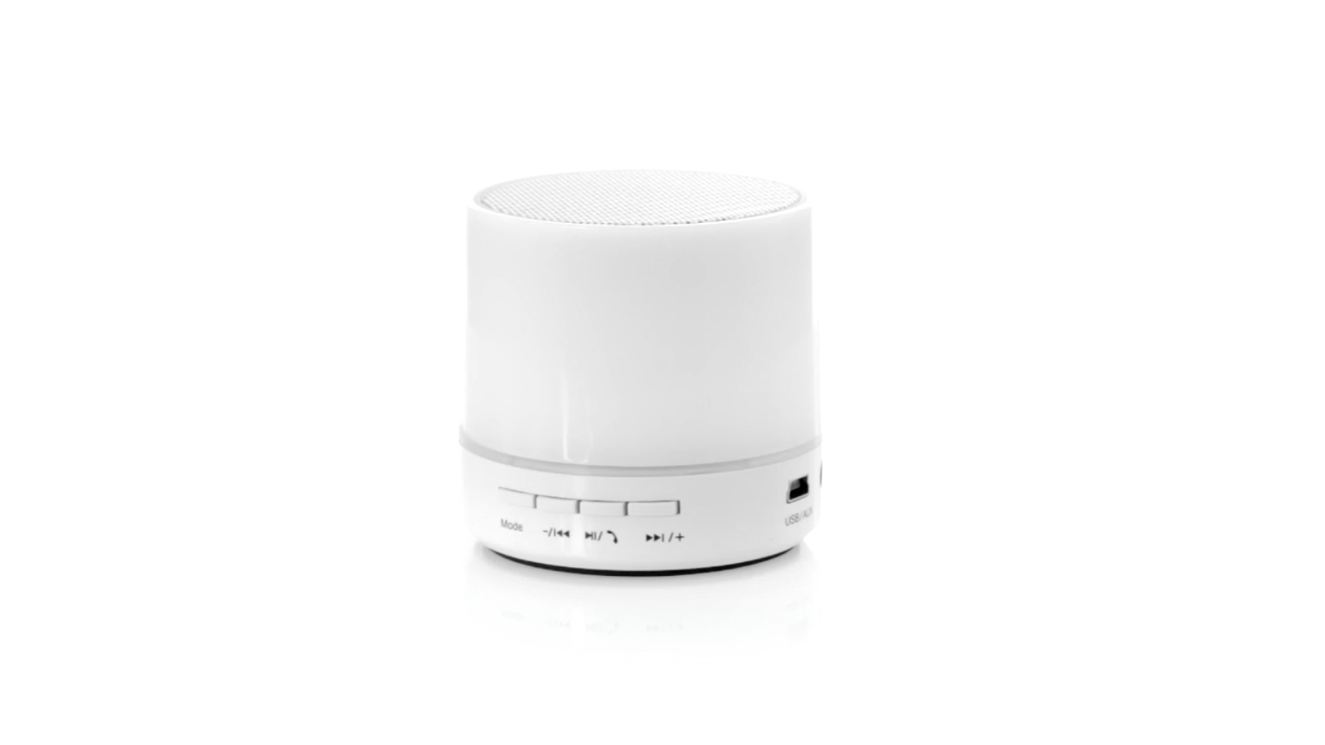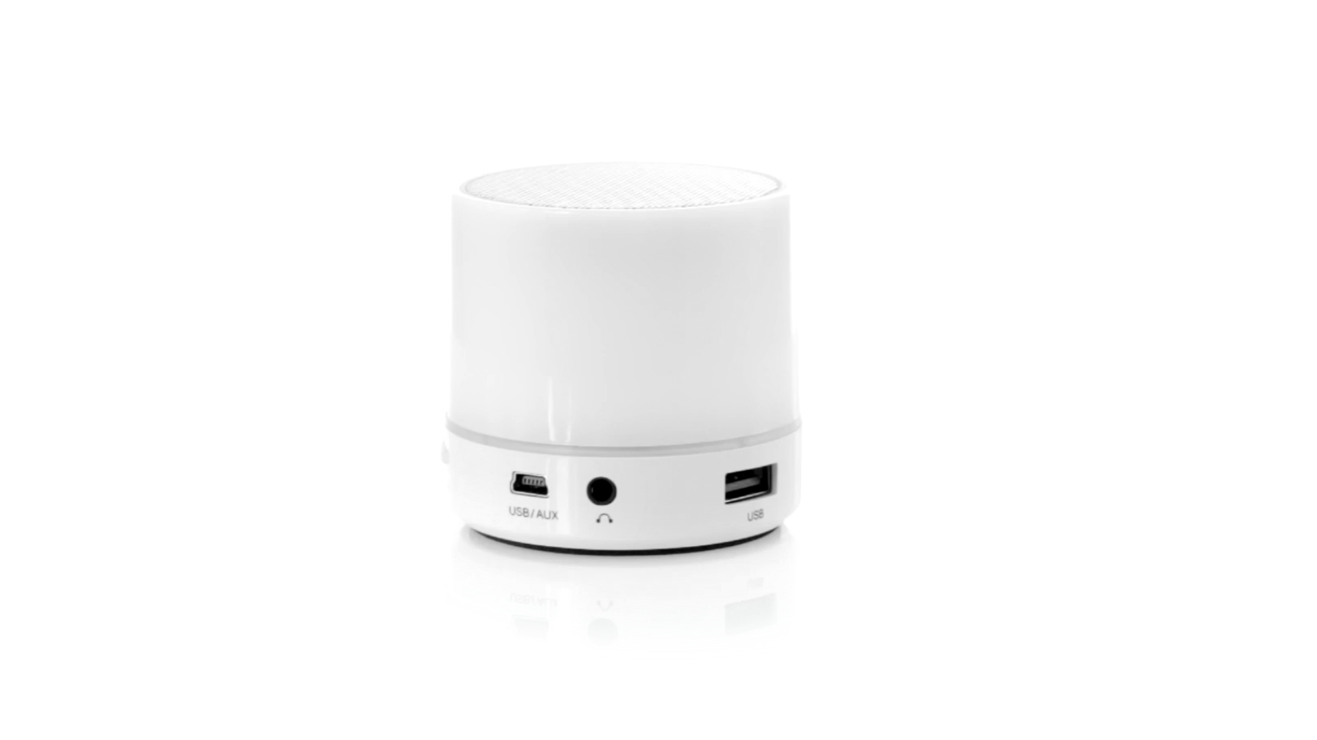 Intelligenter LED-Technologie-Lautsprecher mit Bluetooth-Verbindung®. Mit 3 W Leistung und Freisprechfunktion sowie einem Slot für eine Micro-SD-Karte von bis zu 32 GB Speicherkapazität. Zudem mit 3,5-mm-Buchse für Audioeingang und rutschfester Unterseite. Aufladbar über USB-Ladekabel (inklusive). Präsentiert in einer attraktiven Designbox.