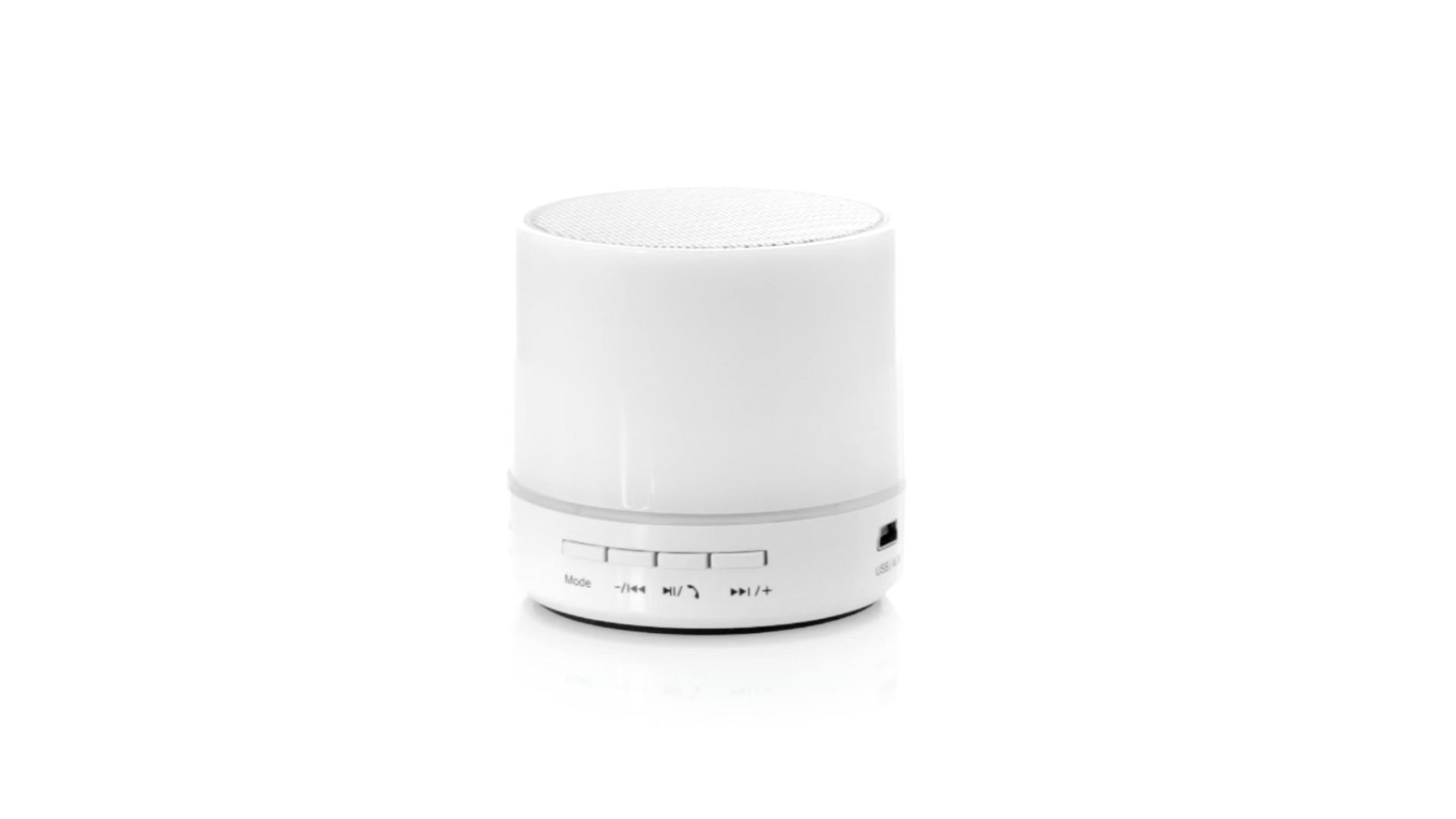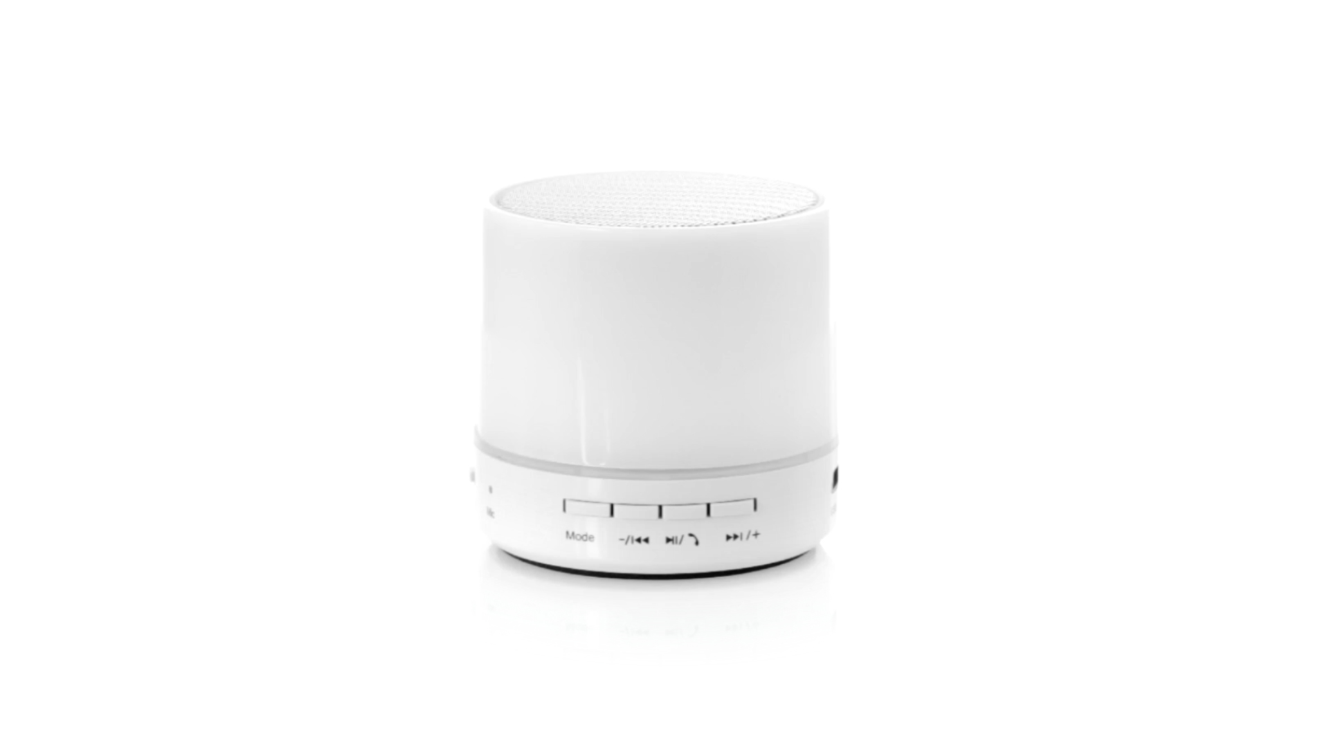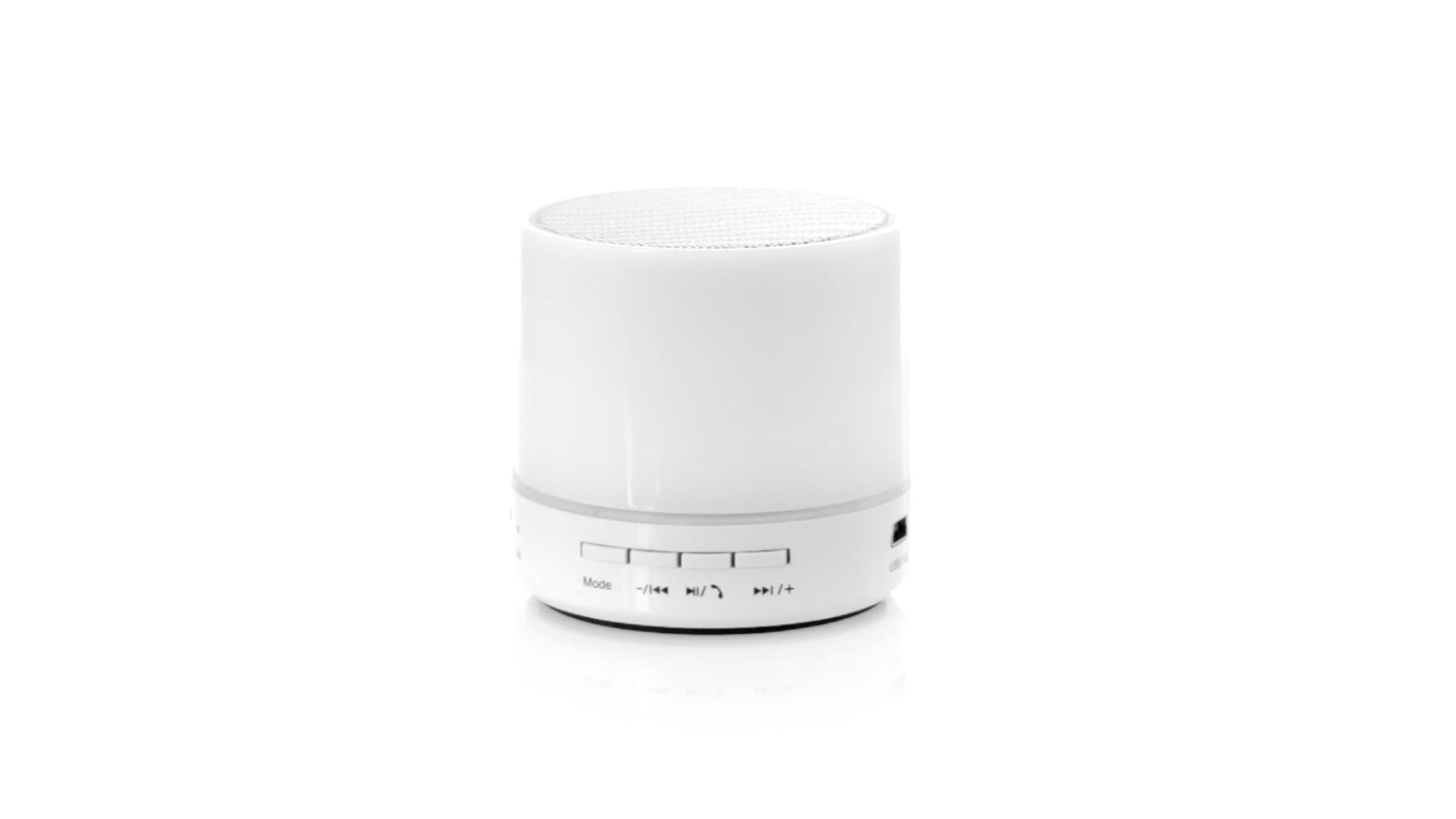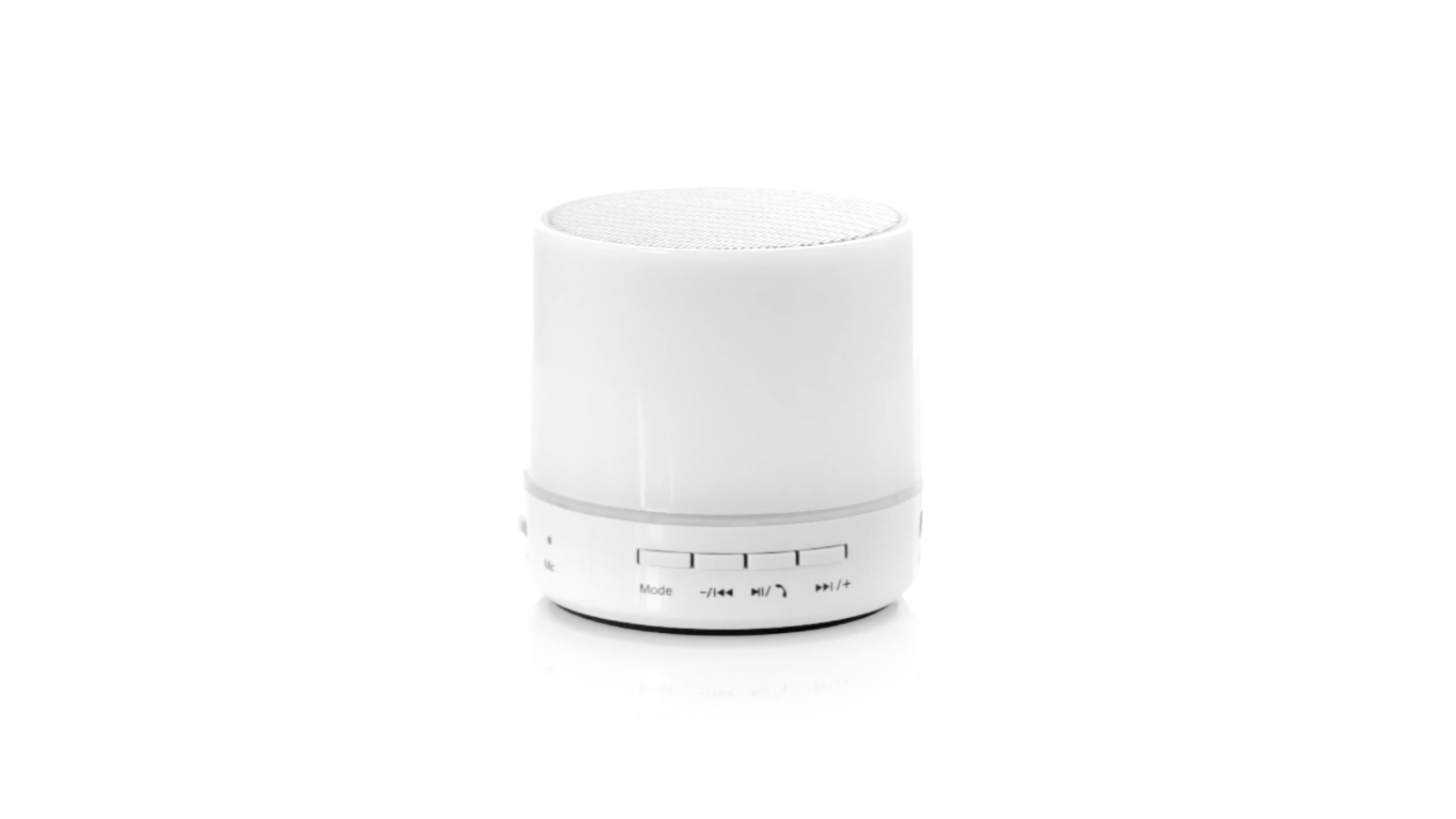 Intelligenter LED-Technologie-Lautsprecher mit Bluetooth-Verbindung®. Mit 3 W Leistung und Freisprechfunktion sowie einem Slot für eine Micro-SD-Karte von bis zu 32 GB Speicherkapazität. Zudem mit 3,5-mm-Buchse für Audioeingang und rutschfester Unterseite. Aufladbar über USB-Ladekabel (inklusive). Präsentiert in einer attraktiven Designbox.