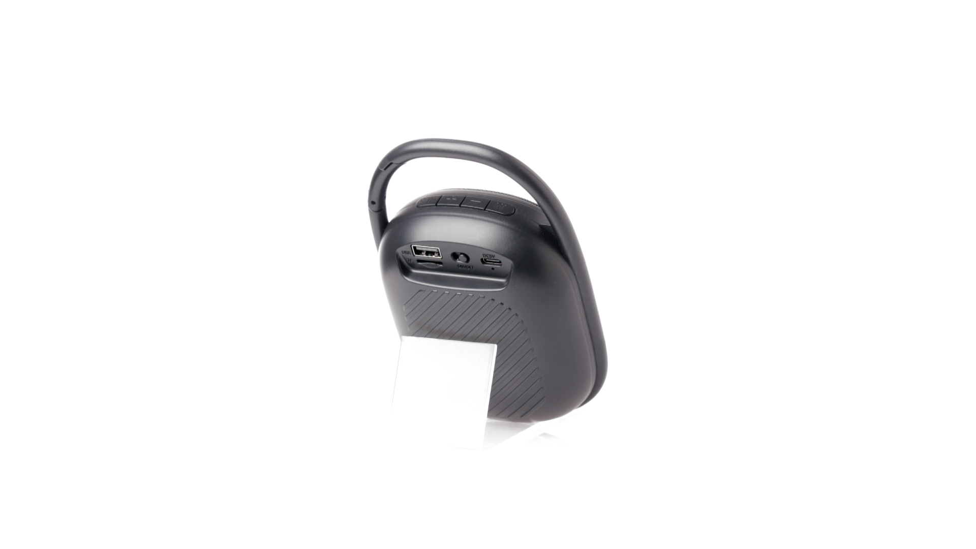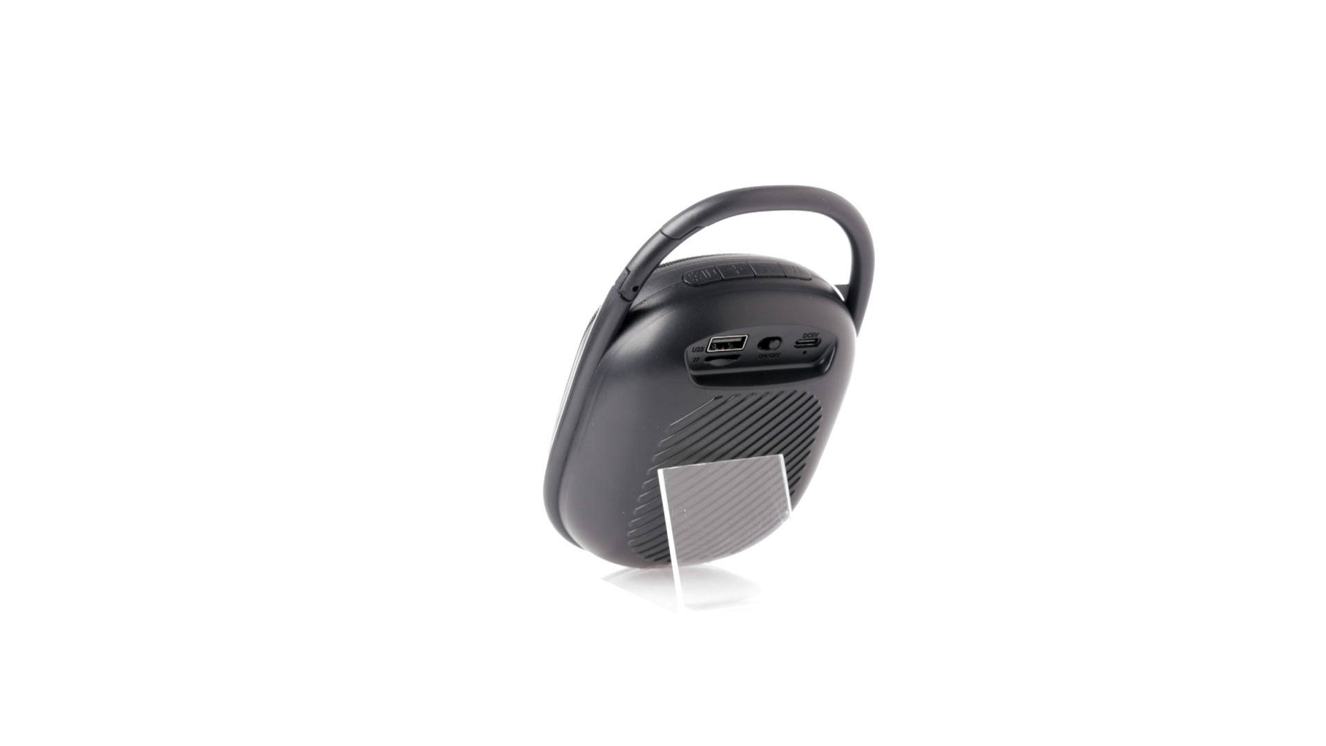 Leistungsstarker 5-W-Bluetooth®-Lautsprecher mit mehrfarbigem Licht. Tragbar und aus robustem ABS-Material in Mattschwarz gefertigt, mit integriertem Gitter und Aufhänger. Mit mehrfarbigen LED-Leuchten und 5 Beleuchtungspositionen. Bluetooth 5.0 + EDR-Verbindung (Ehanced Data Transmission Rate). Integriertes Bedienfeld oben auf dem Lautsprecher und volle Konnektivität, mit Freisprechfunktion, USB-Anschluss für die Wiedergabe von einem USB-Stick, Micro-SD-Kartensteckplatz (bis zu 32 GB) und UKW-Radiofunktion. Mit 1.200 mAh Lithium-Akku und Typ-C-Ladekabel im Lieferumfang enthalten. Integriertes Abzeichen auf dem Kühlergrill für einfaches Branding und präsentiert in einer individuellen Kraft-Designbox, mit Bedienungsanleitung in Englisch und Spanisch.