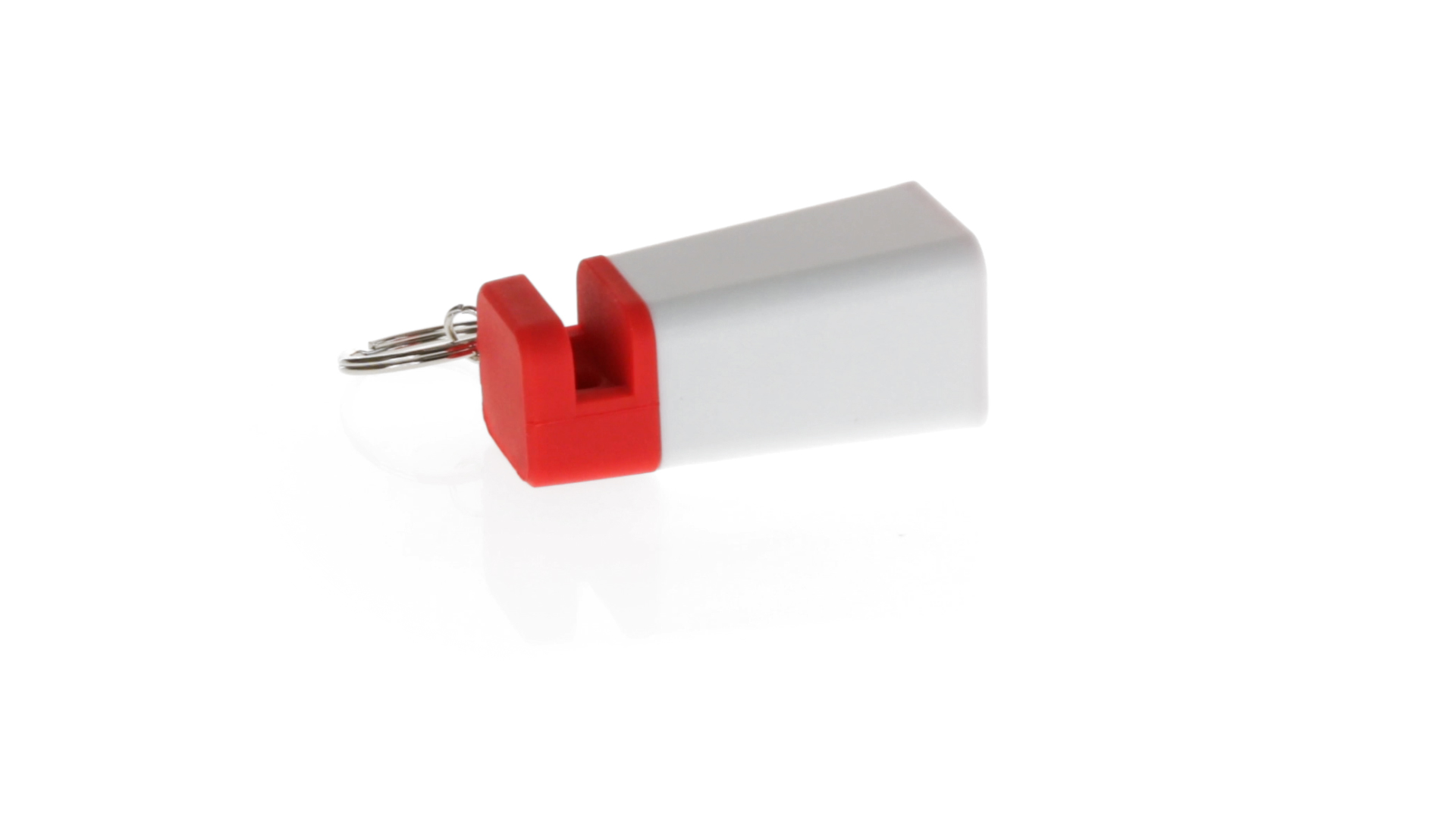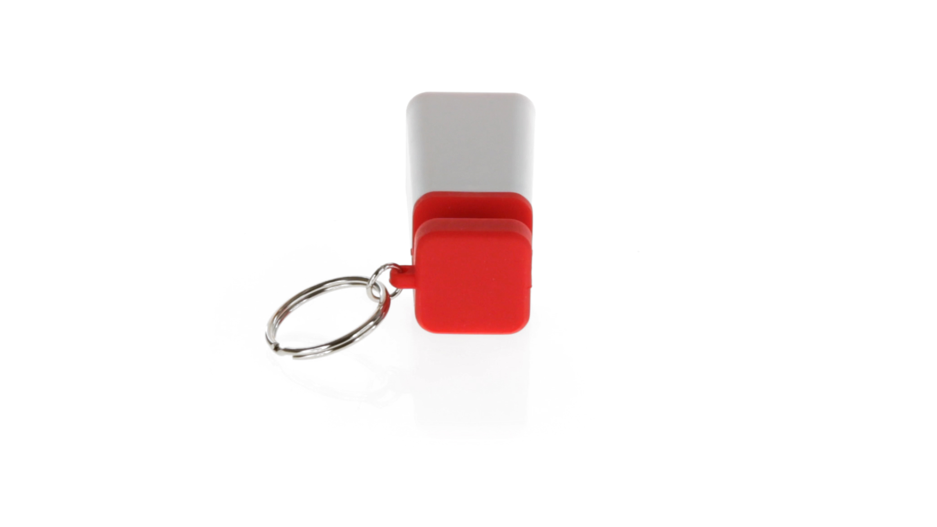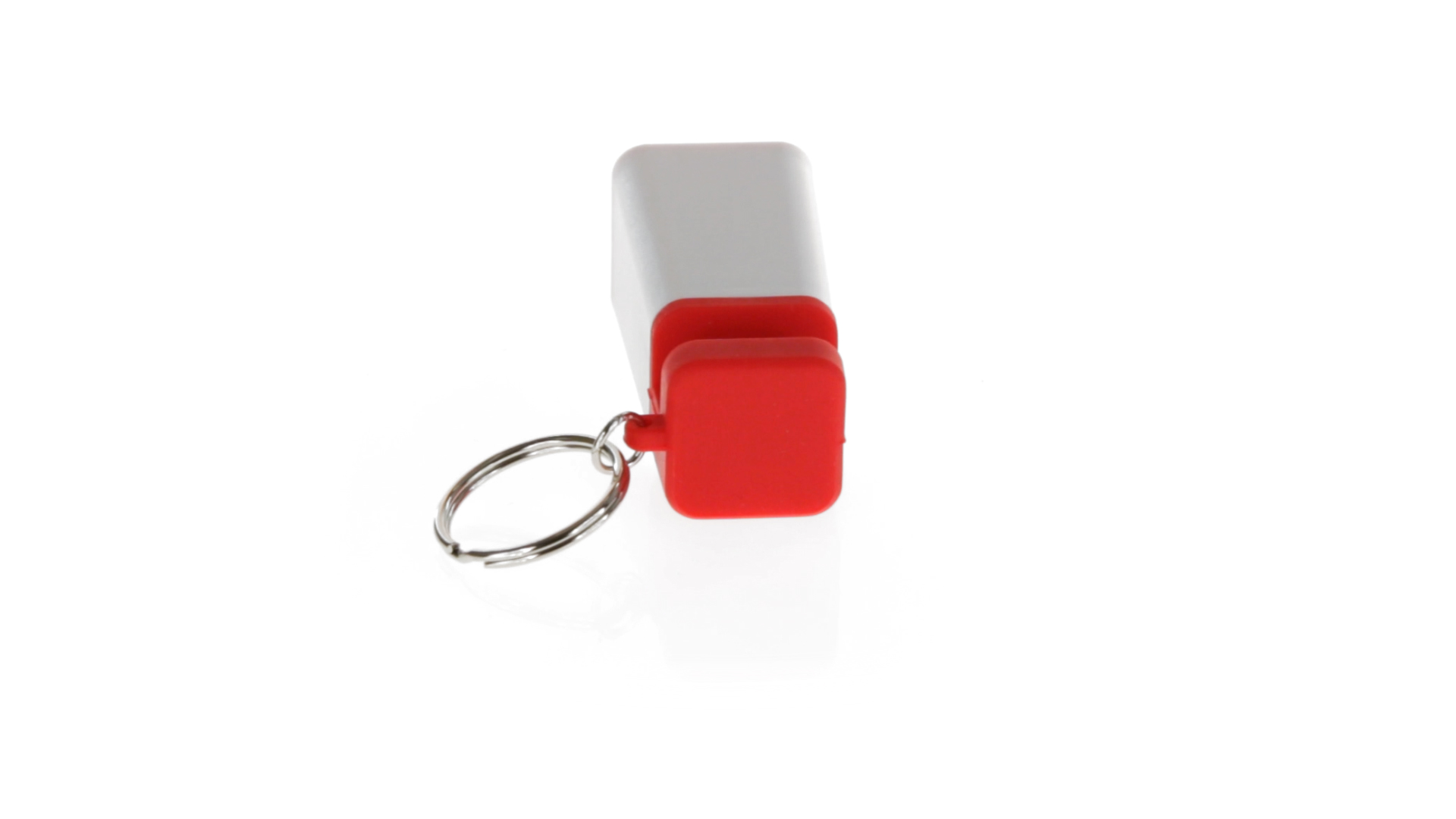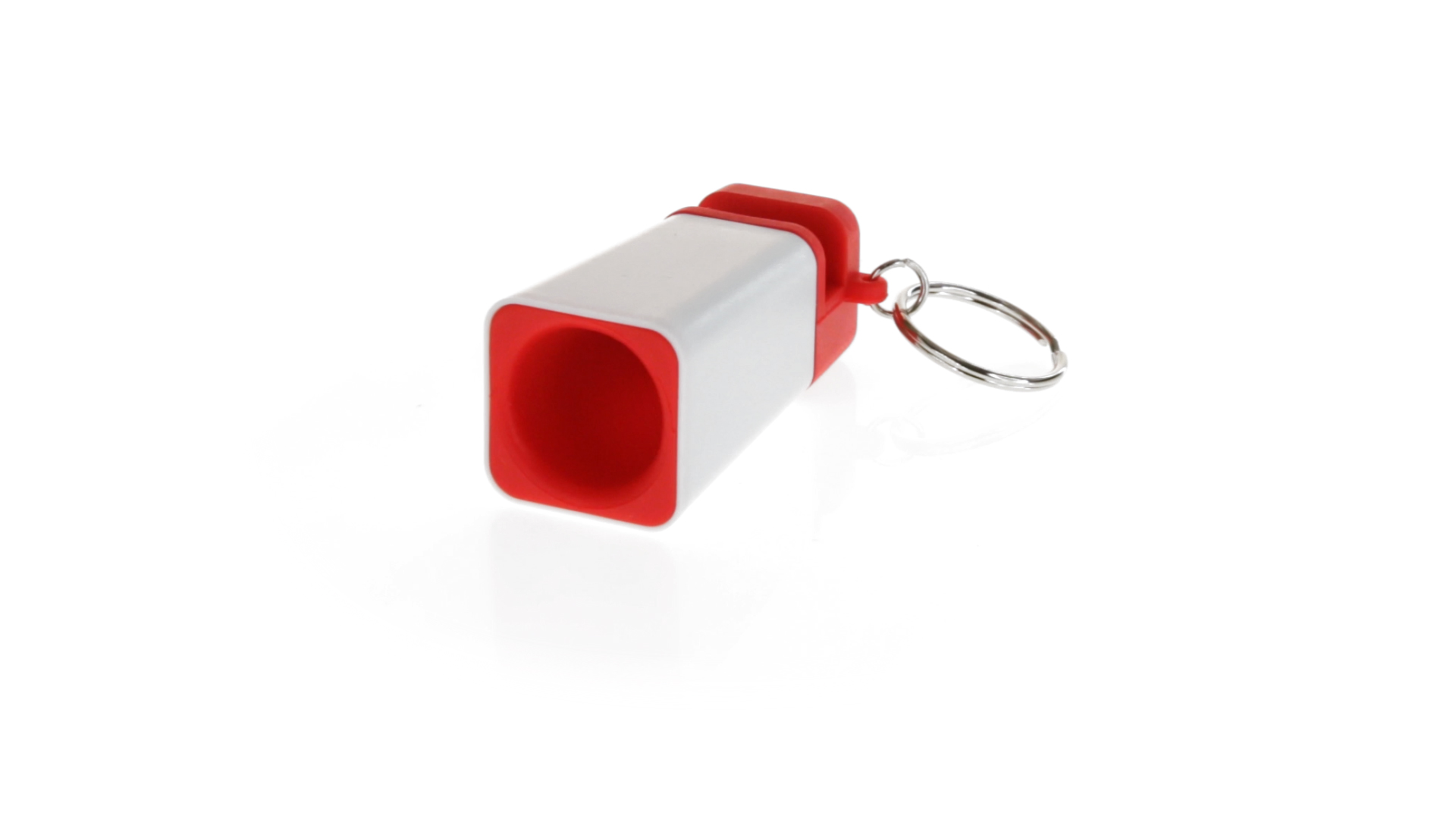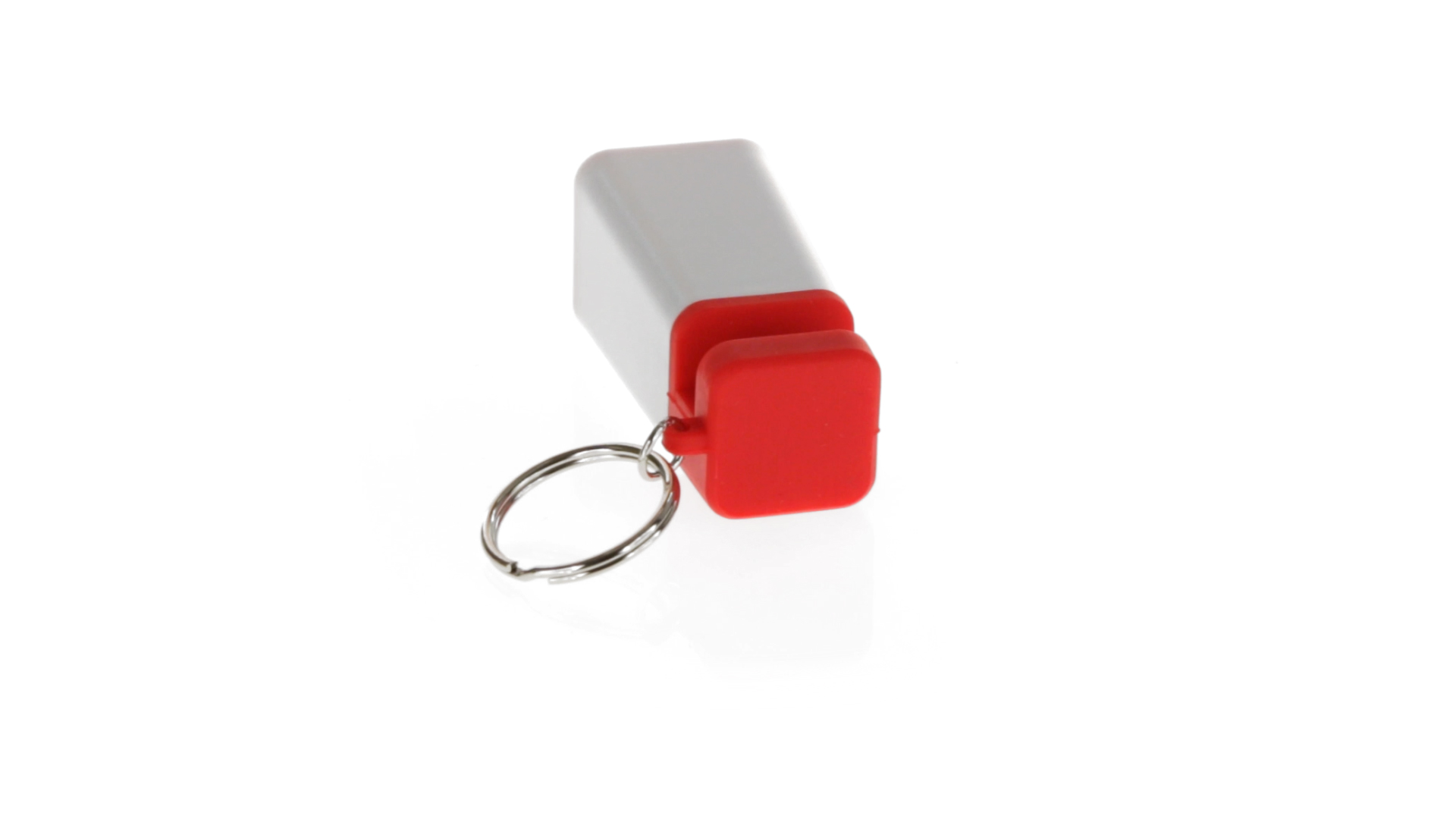 Schlüsselanhänger mit Smartphone-Ständer und manuellem Lautsprecher mit minimalistischem, zweifarbigem Design - speziell entwickelt für den Tampondruck.