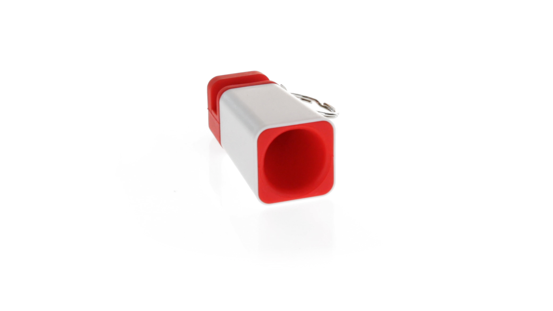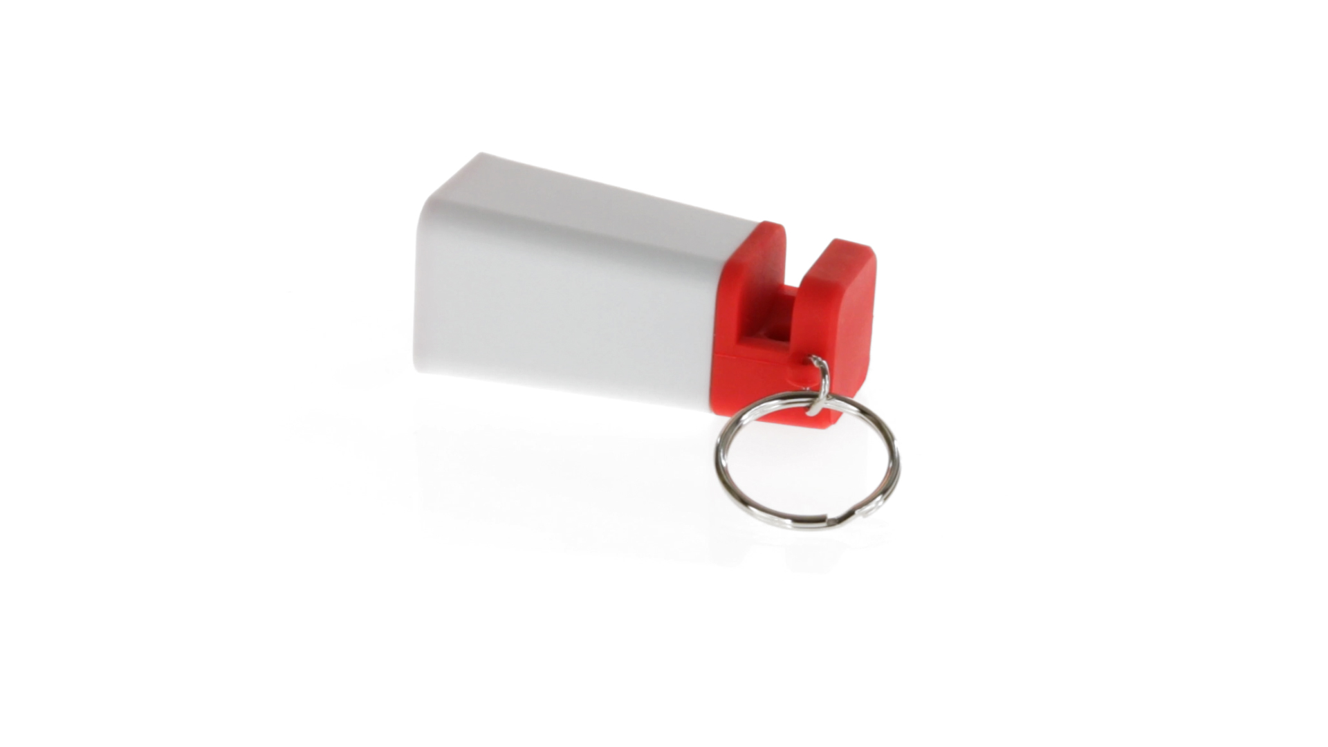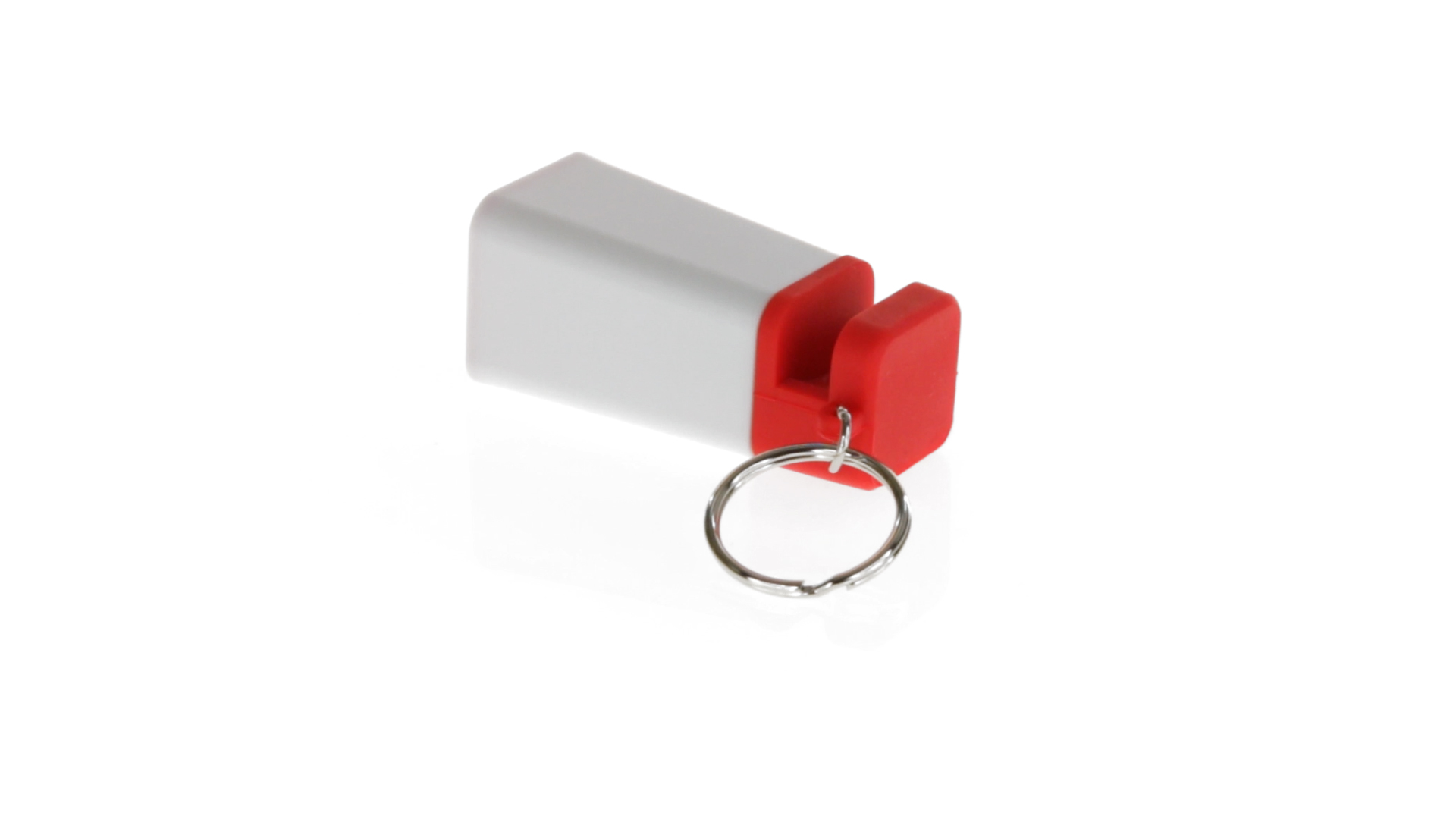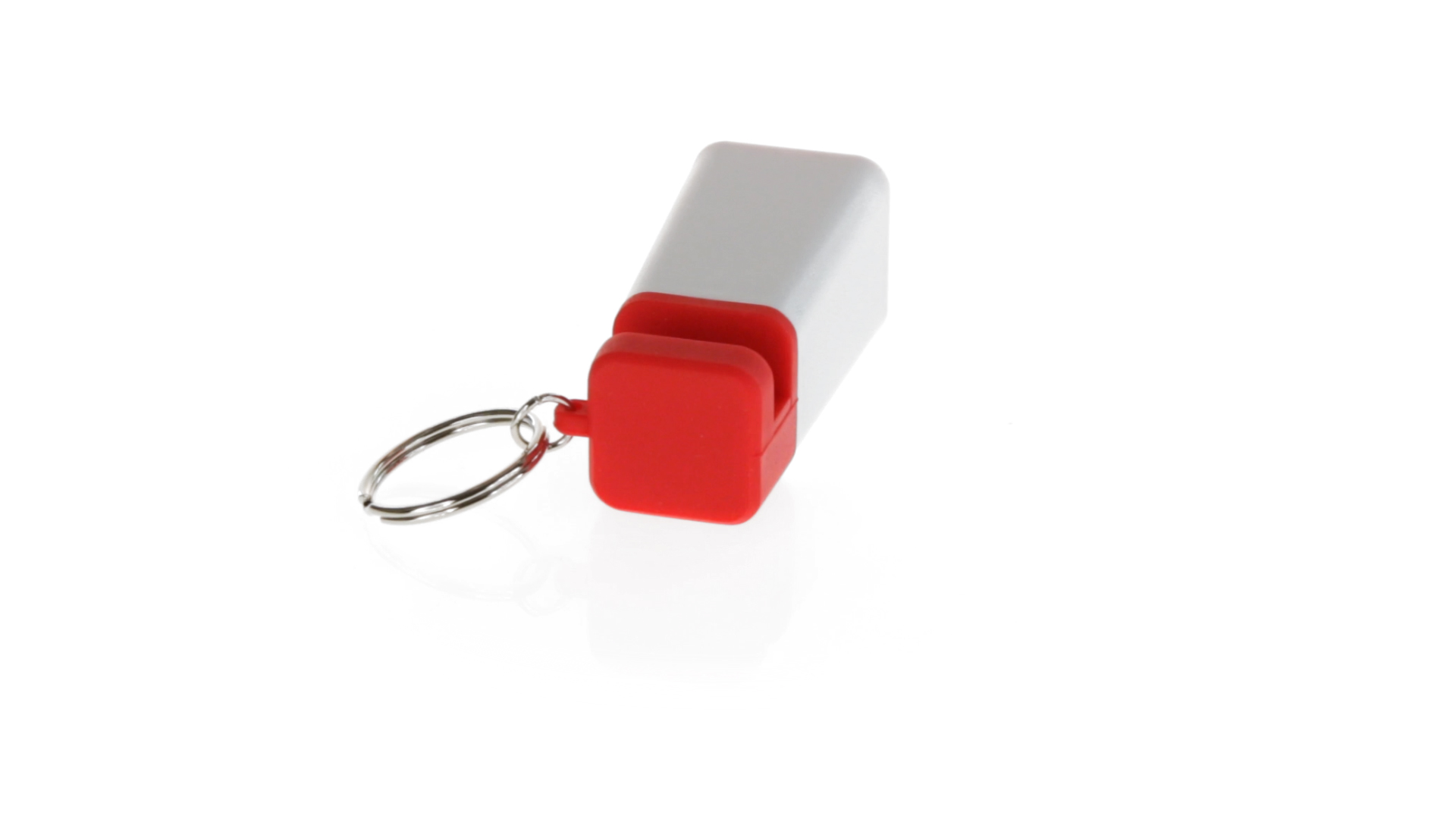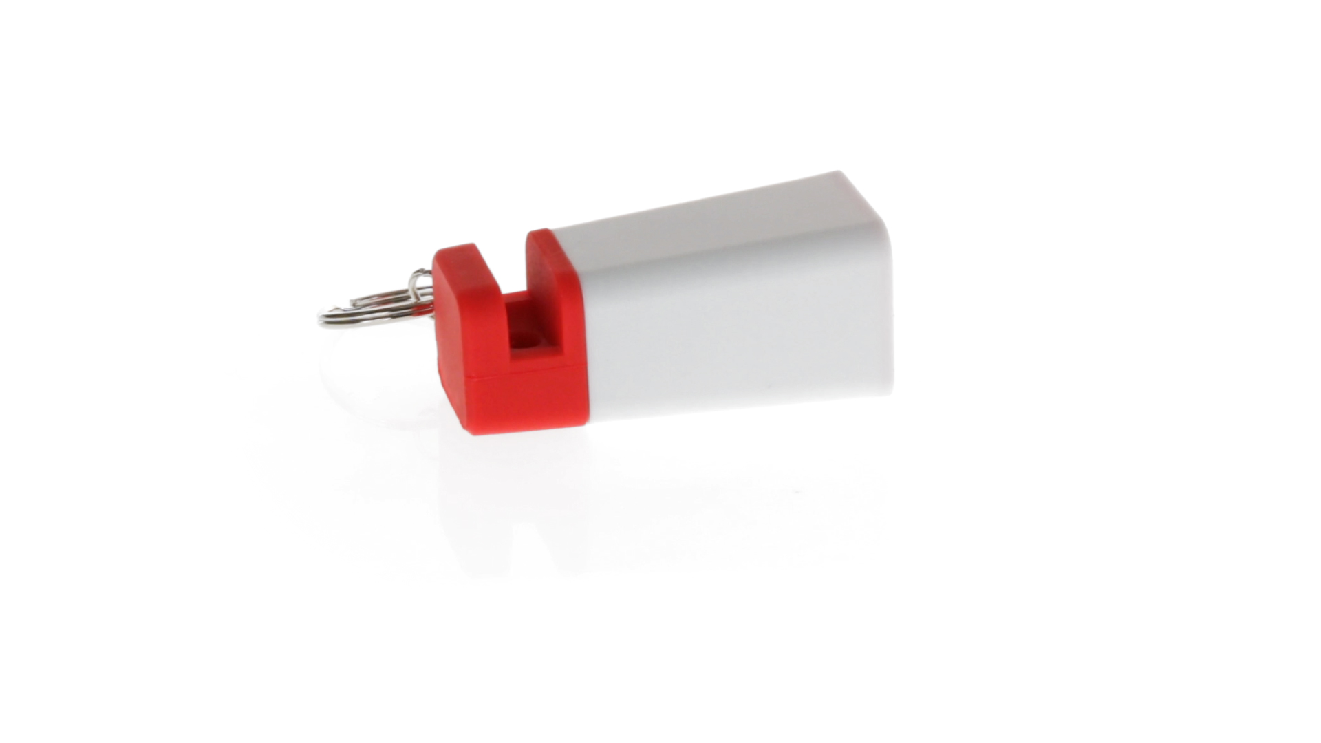 Schlüsselanhänger mit Smartphone-Ständer und manuellem Lautsprecher mit minimalistischem, zweifarbigem Design - speziell entwickelt für den Tampondruck.