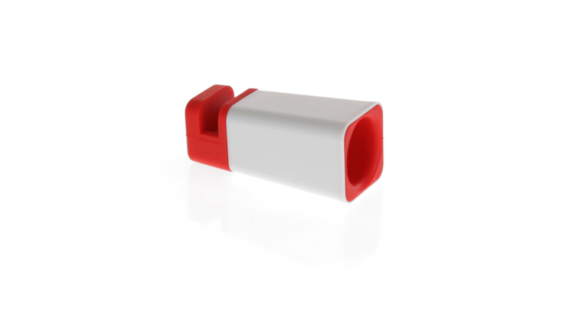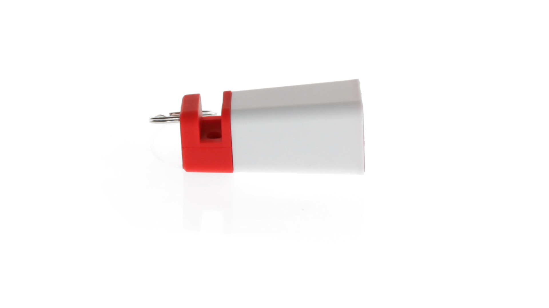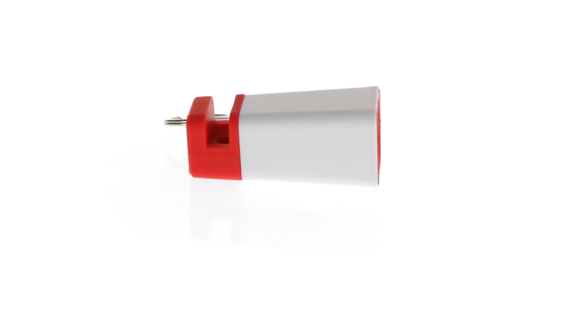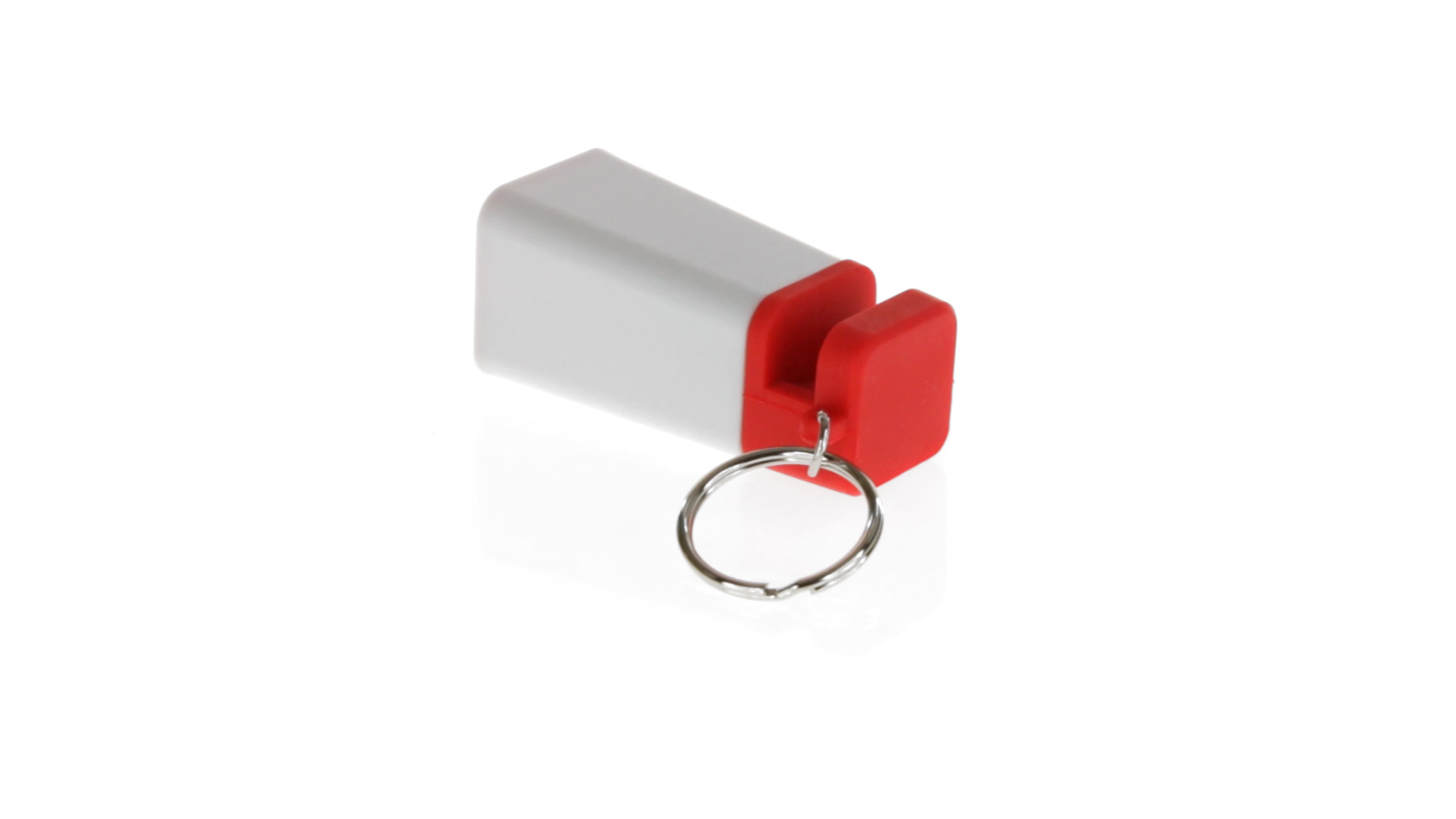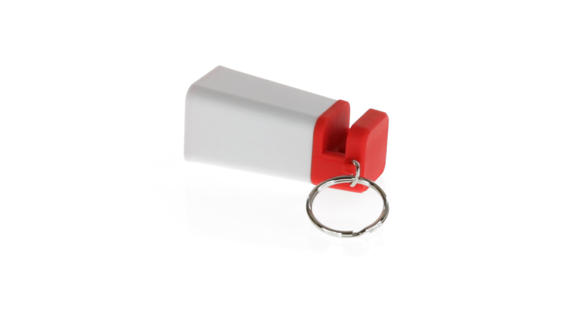 Schlüsselanhänger mit Smartphone-Ständer und manuellem Lautsprecher mit minimalistischem, zweifarbigem Design - speziell entwickelt für den Tampondruck.