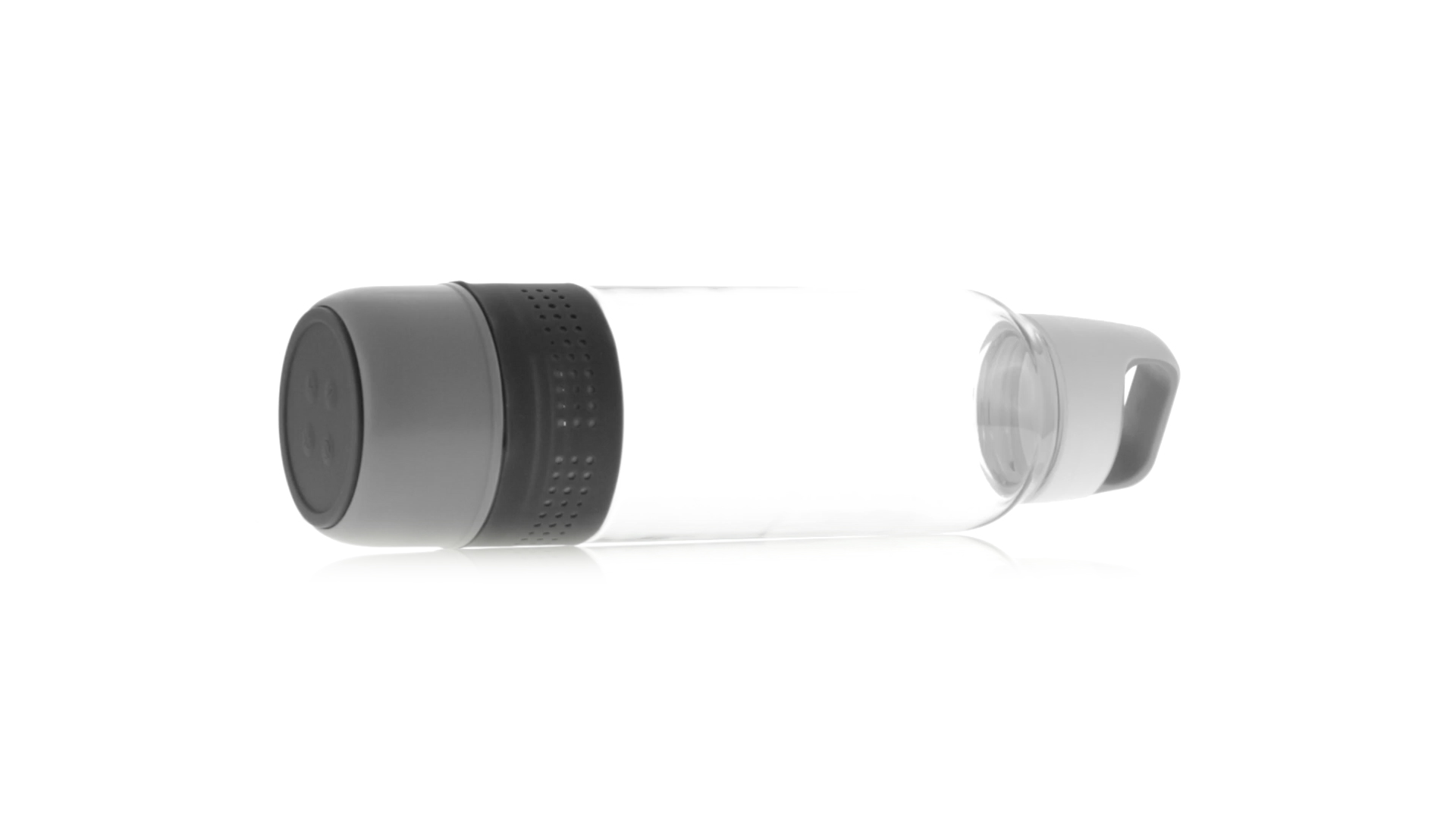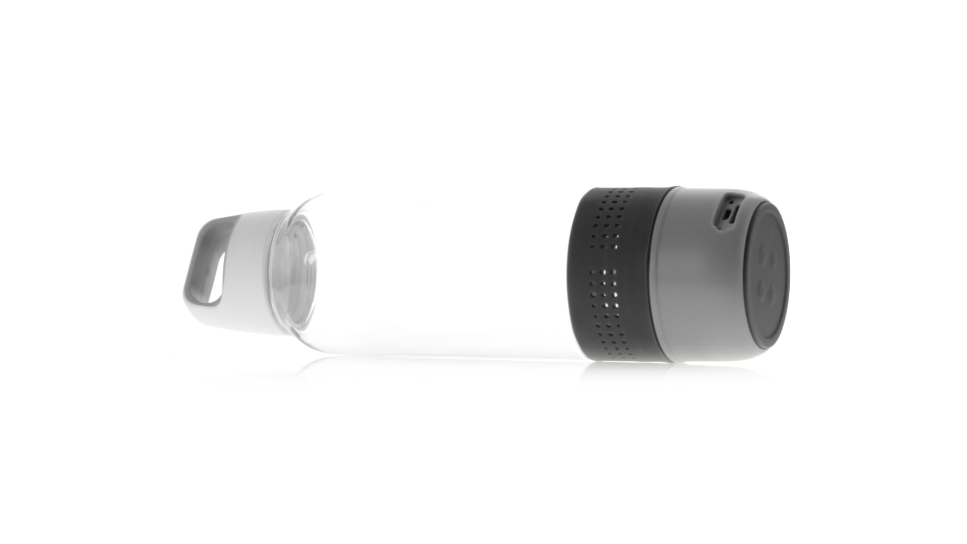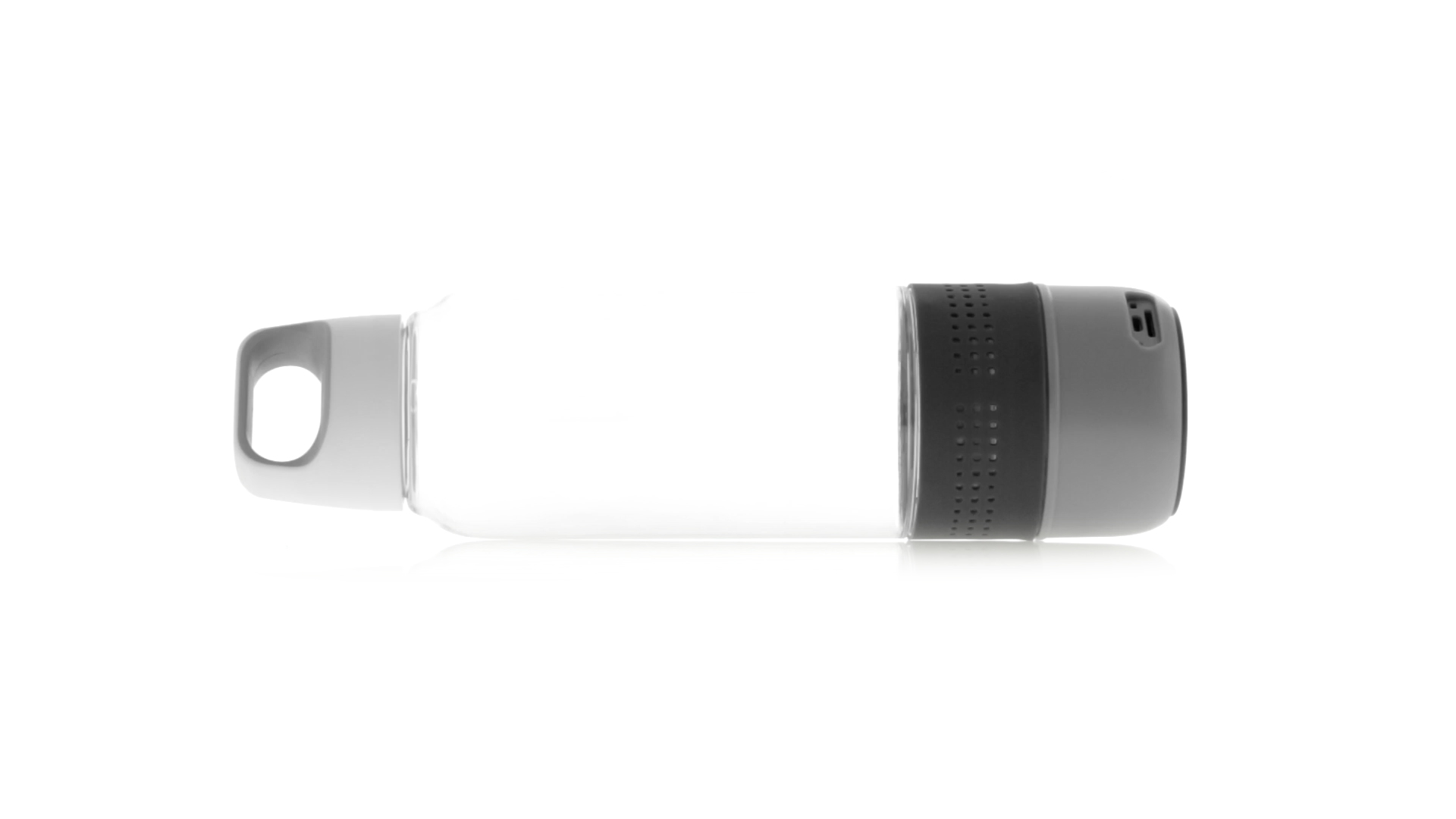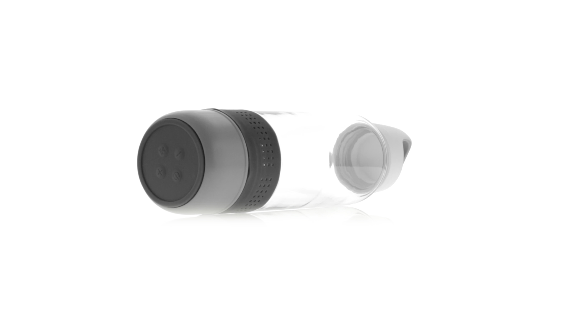 Trinkflasche mit 500 ml Fassungsvermögen und integriertem Bluetooth®-Lautsprecher. Transparente Flasche aus hitzeresistentem (70º) und BPA-freiem Tritan-Material mit Sicherheitsverschluss und integriertem Griff. Im Boden integrierter Lautsprecher mit 3W Leistung, Freisprechfunktion und Slot für Micro-SD-Karten von bis zu 32 GB Speicherkapazität. Mit rutschfesten Gummi-Details an der Unterseite. Mini-USB-Ladekabel inklusive. Kompatibel mit iOS- und Android-Geräten. Präsentiert in einer attraktiven Designbox.