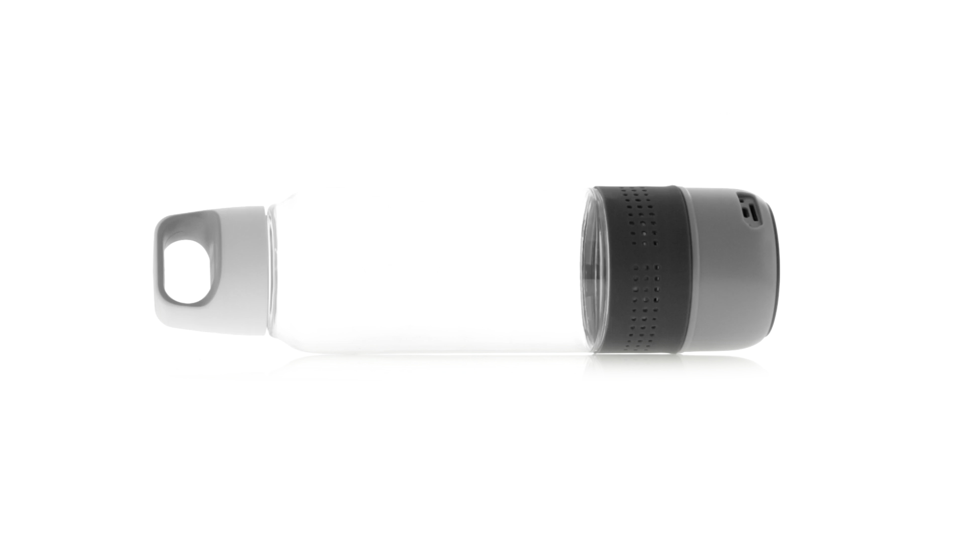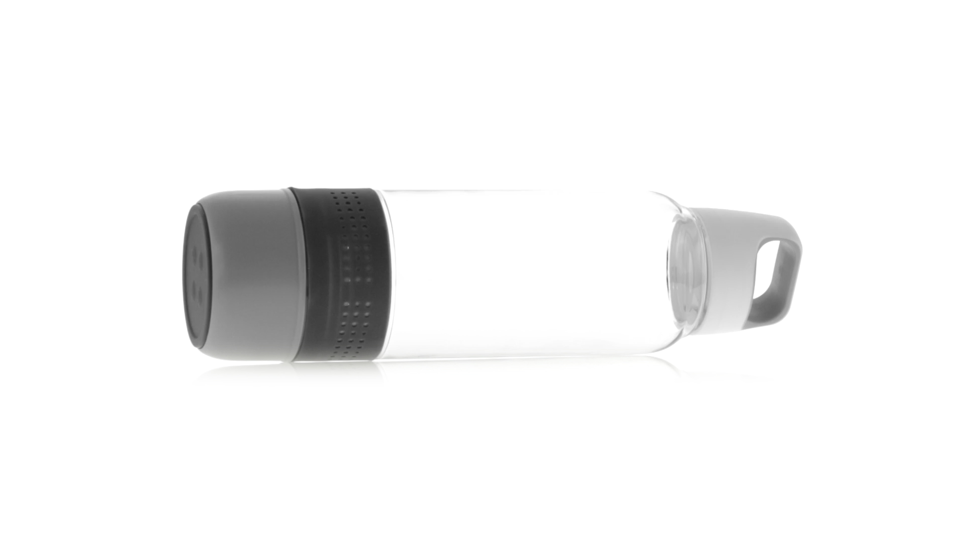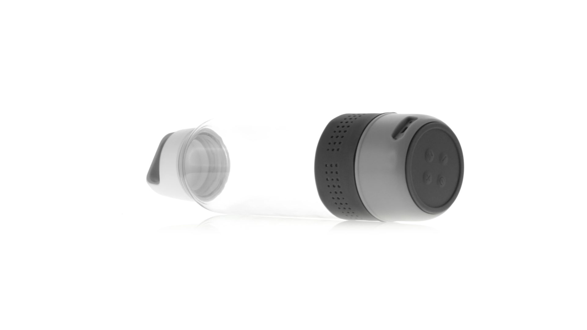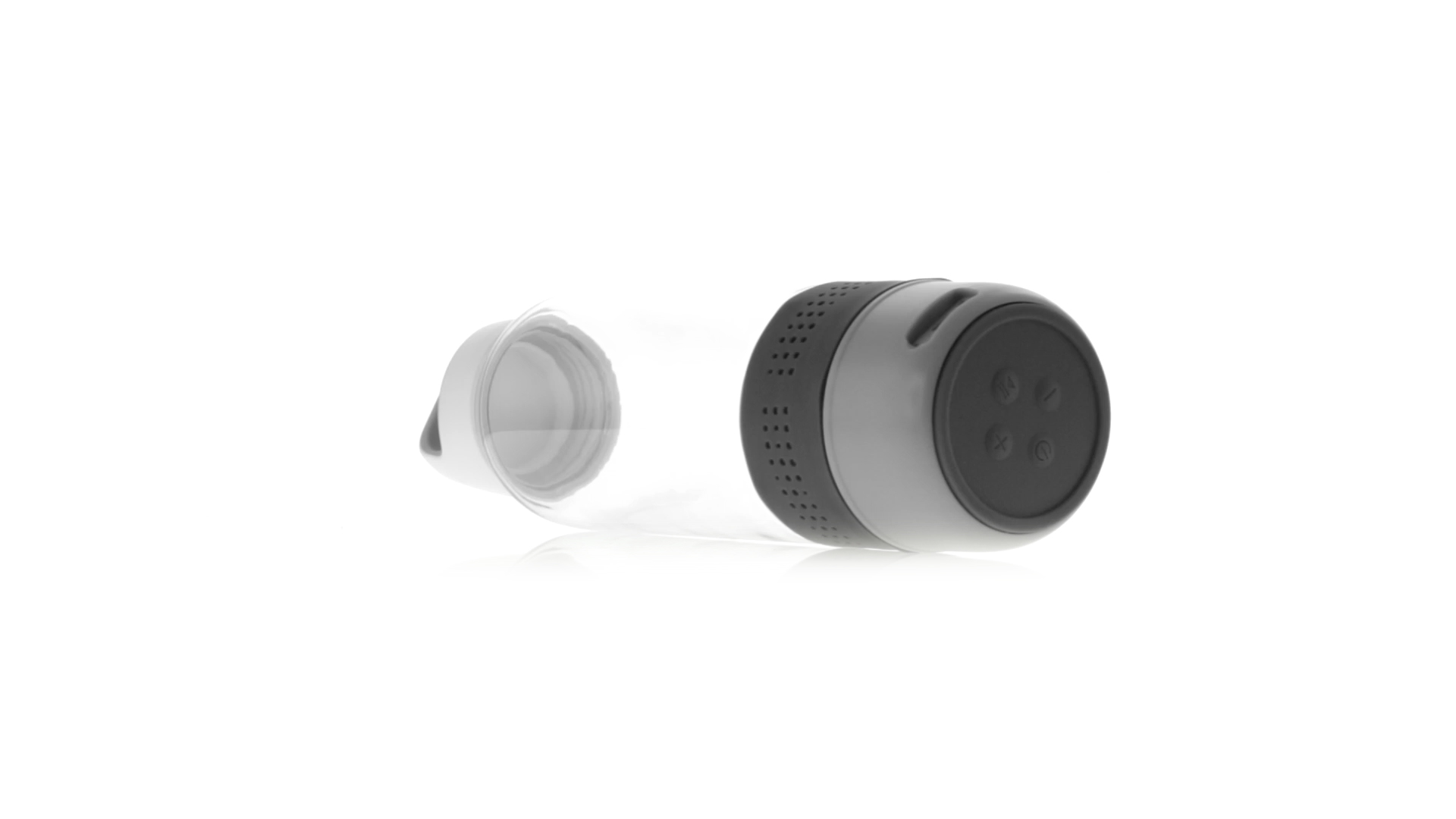 Trinkflasche mit 500 ml Fassungsvermögen und integriertem Bluetooth®-Lautsprecher. Transparente Flasche aus hitzeresistentem (70º) und BPA-freiem Tritan-Material mit Sicherheitsverschluss und integriertem Griff. Im Boden integrierter Lautsprecher mit 3W Leistung, Freisprechfunktion und Slot für Micro-SD-Karten von bis zu 32 GB Speicherkapazität. Mit rutschfesten Gummi-Details an der Unterseite. Mini-USB-Ladekabel inklusive. Kompatibel mit iOS- und Android-Geräten. Präsentiert in einer attraktiven Designbox.