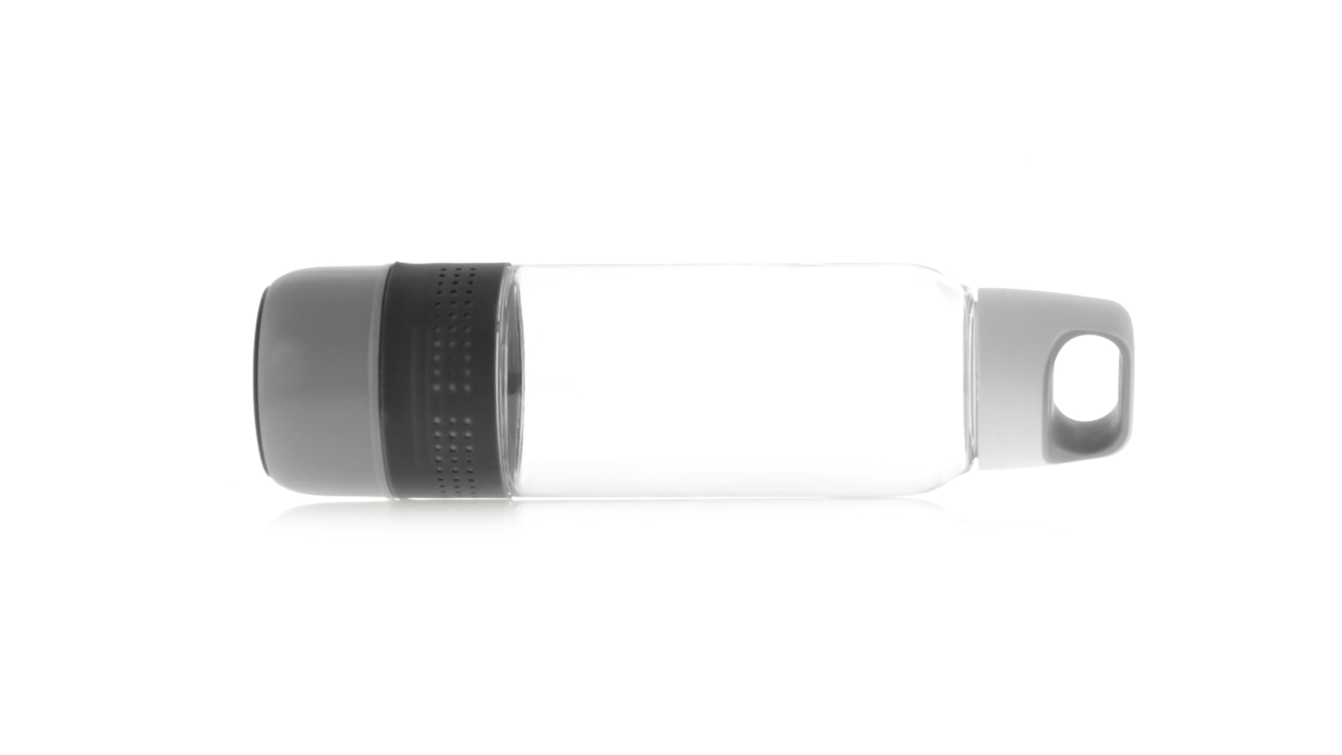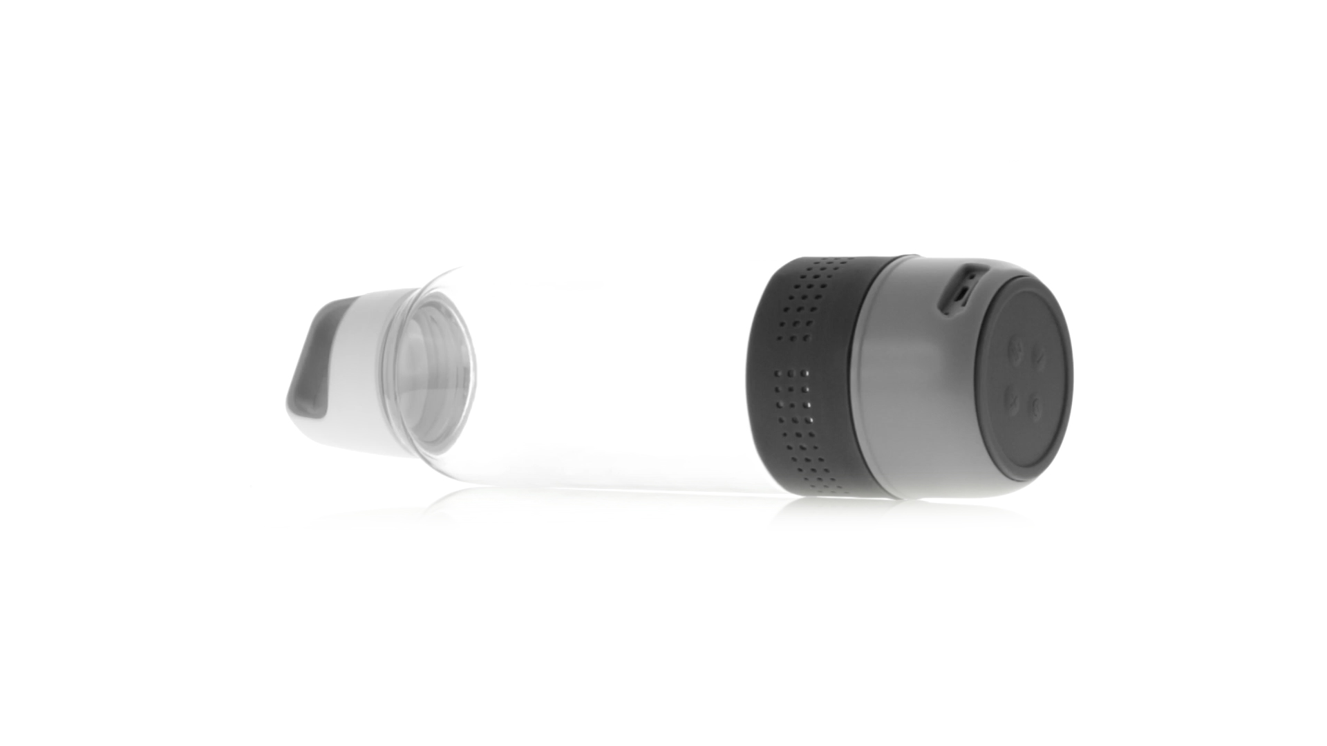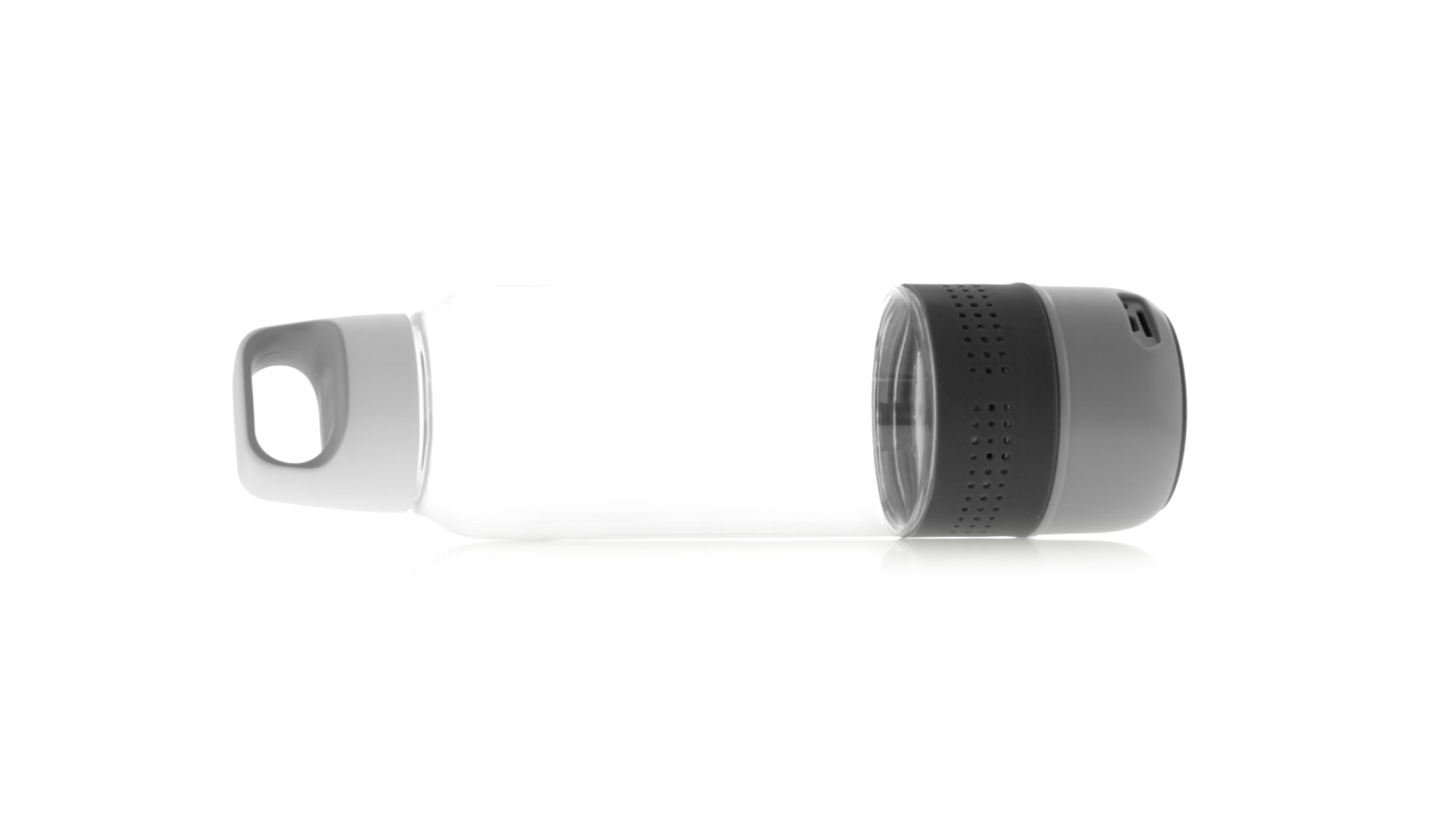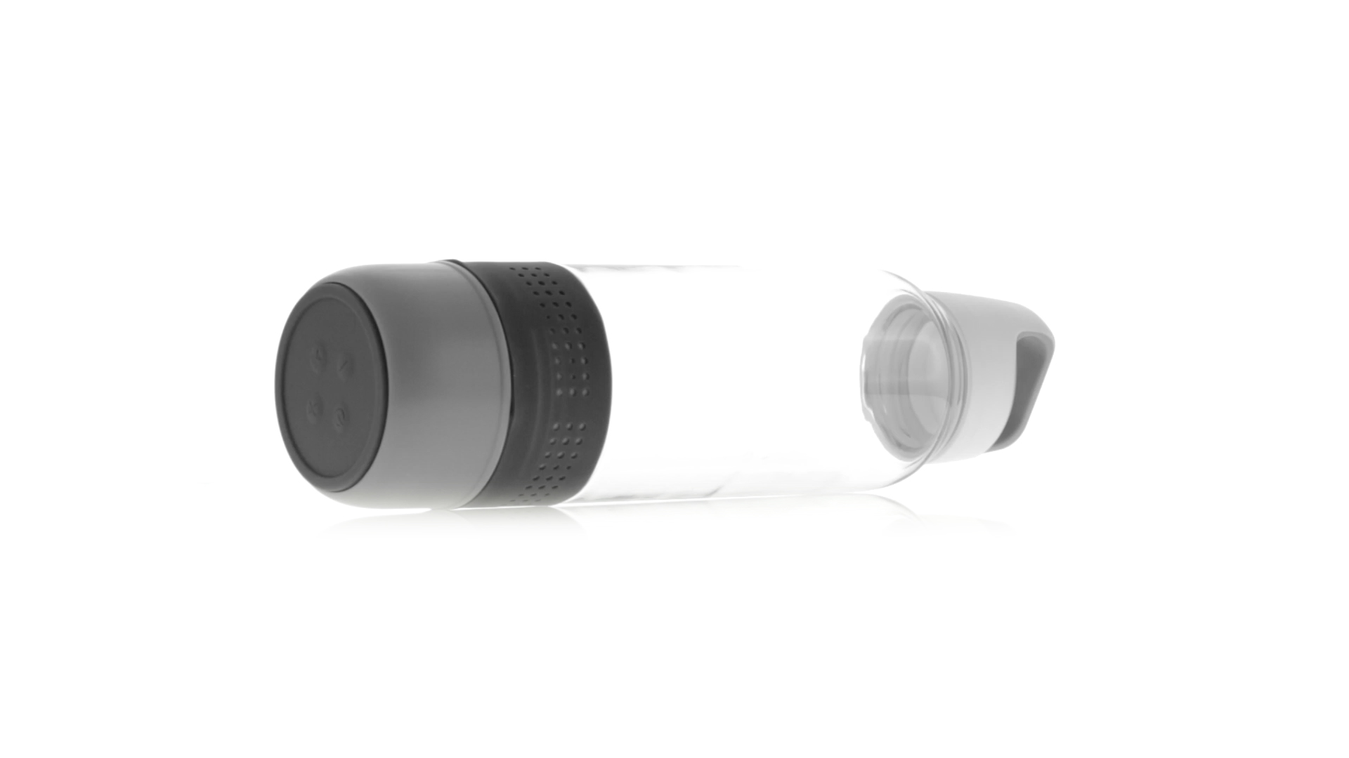 Trinkflasche mit 500 ml Fassungsvermögen und integriertem Bluetooth®-Lautsprecher. Transparente Flasche aus hitzeresistentem (70º) und BPA-freiem Tritan-Material mit Sicherheitsverschluss und integriertem Griff. Im Boden integrierter Lautsprecher mit 3W Leistung, Freisprechfunktion und Slot für Micro-SD-Karten von bis zu 32 GB Speicherkapazität. Mit rutschfesten Gummi-Details an der Unterseite. Mini-USB-Ladekabel inklusive. Kompatibel mit iOS- und Android-Geräten. Präsentiert in einer attraktiven Designbox.