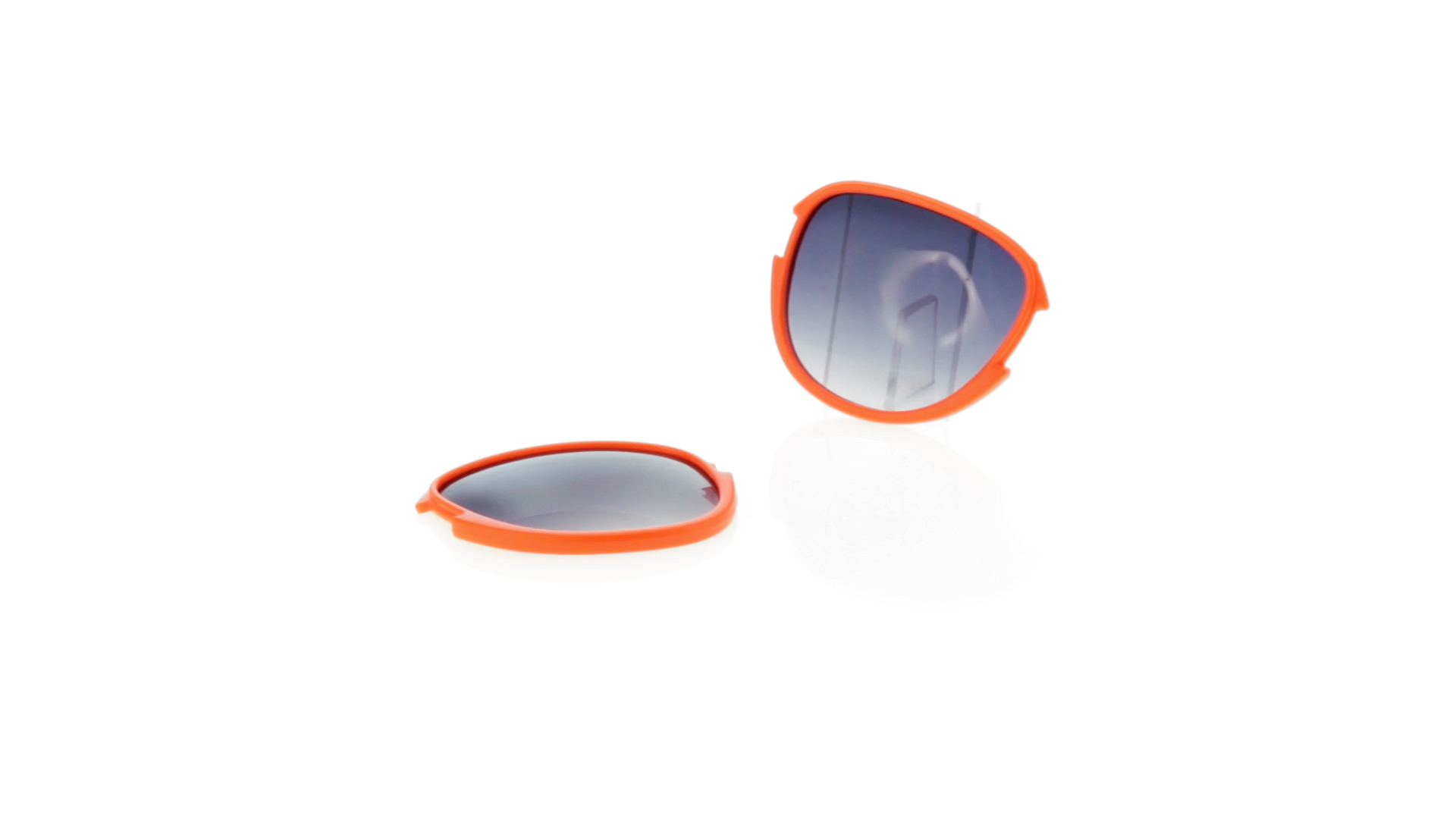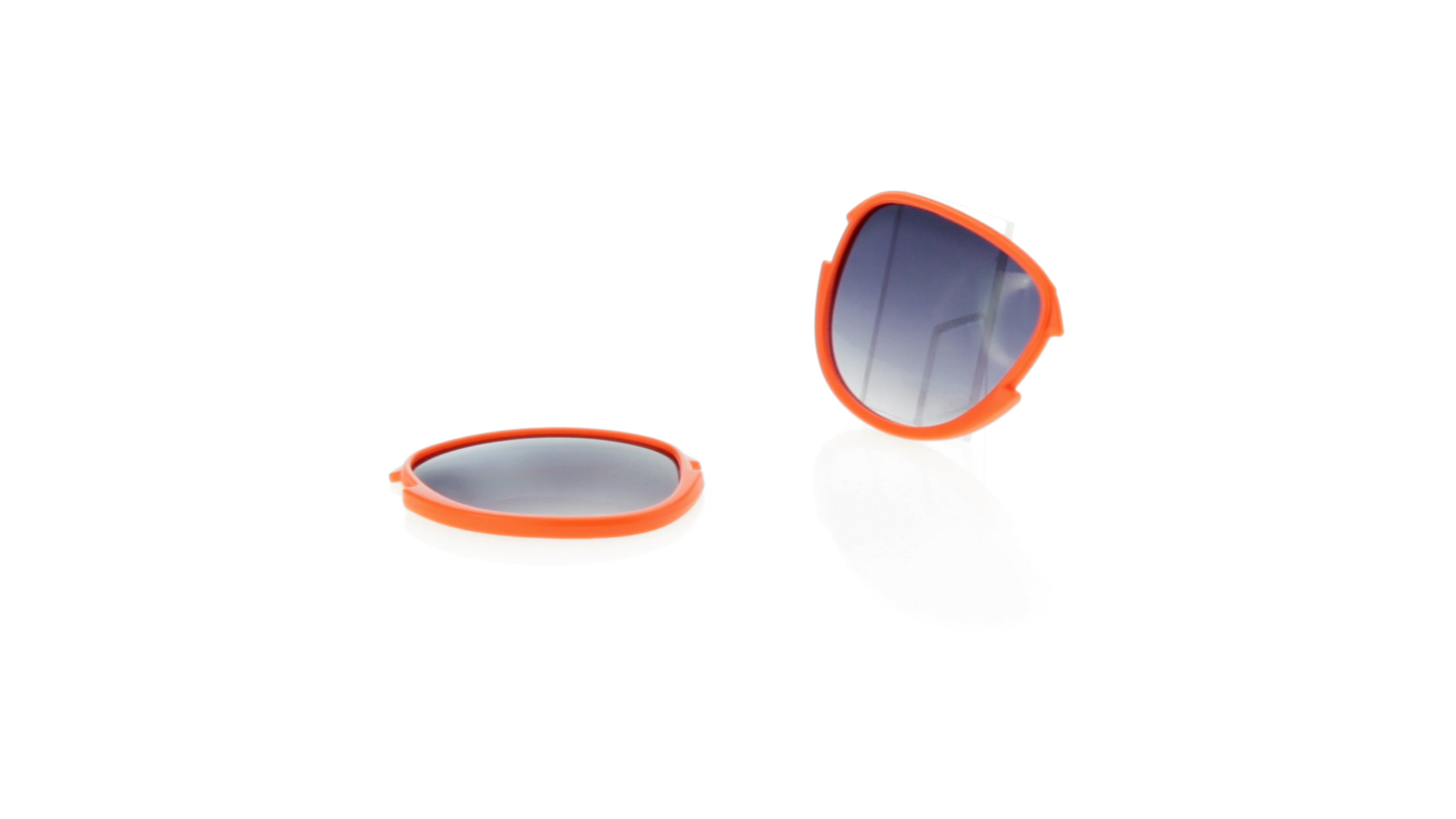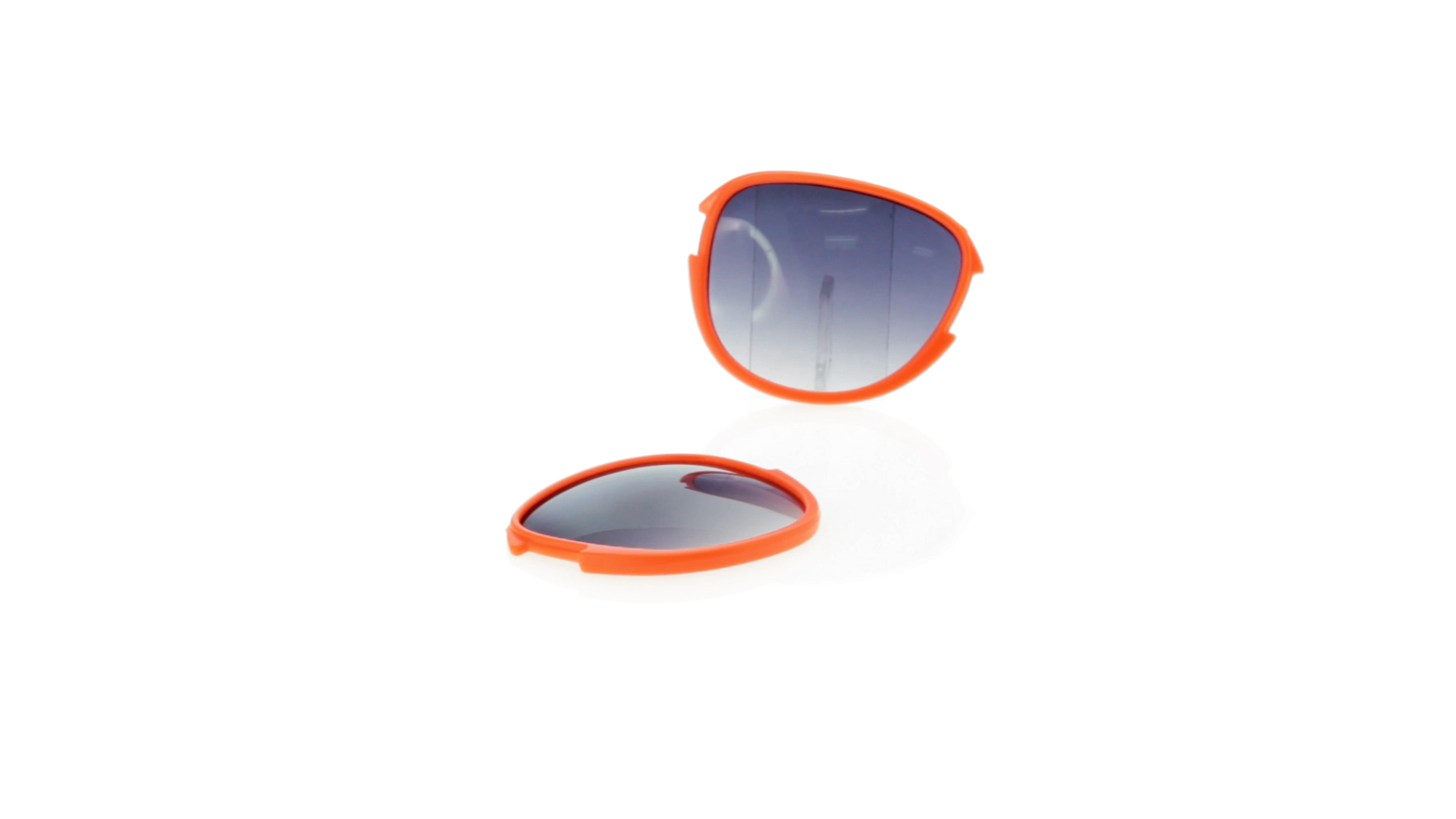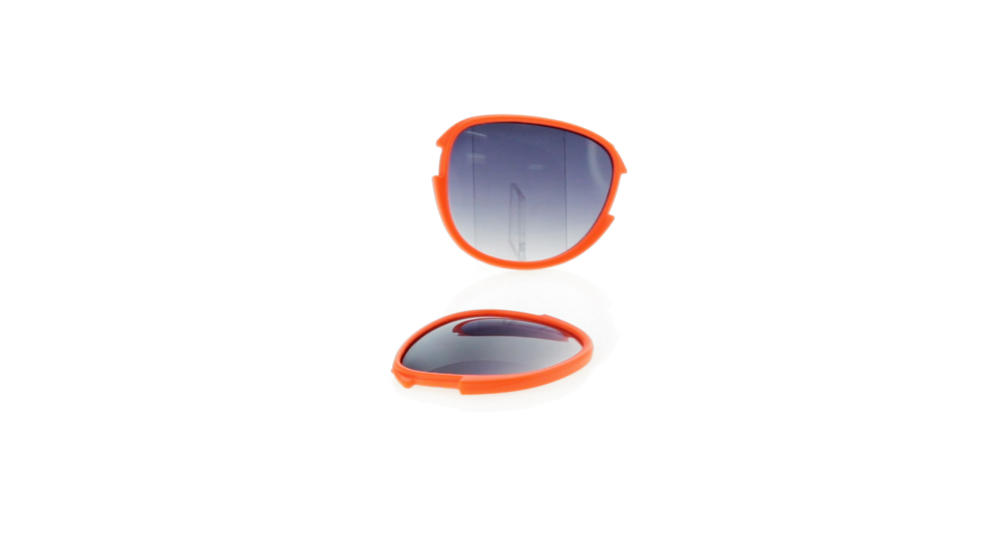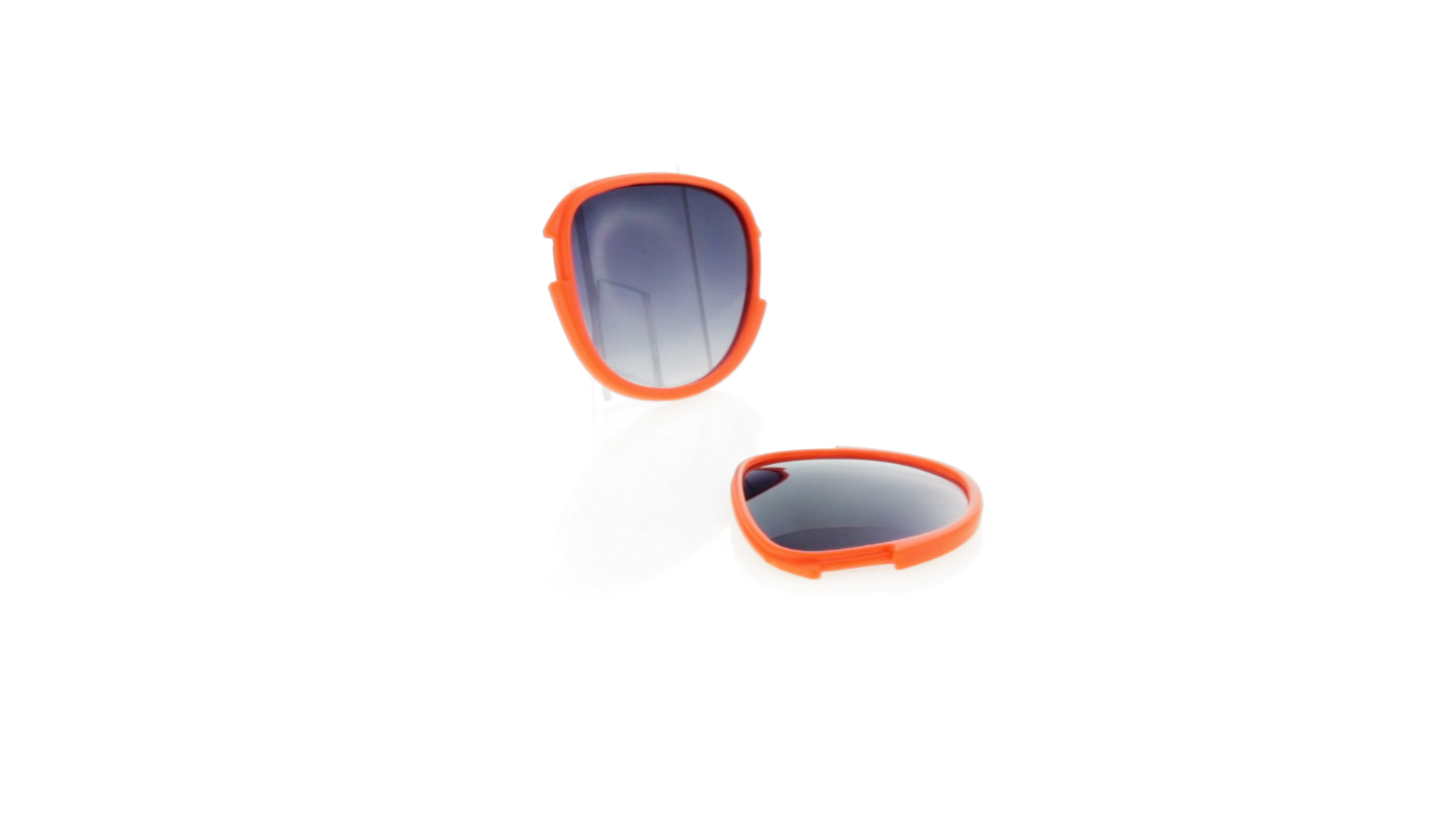 Rauchfarbene Gläser mit UV-400-Schutz und Rahmen in verschiedenen kräftigen Farben. Zum Einsetzen in Gestell mit spezieller Stanzung (separat erhältlich).